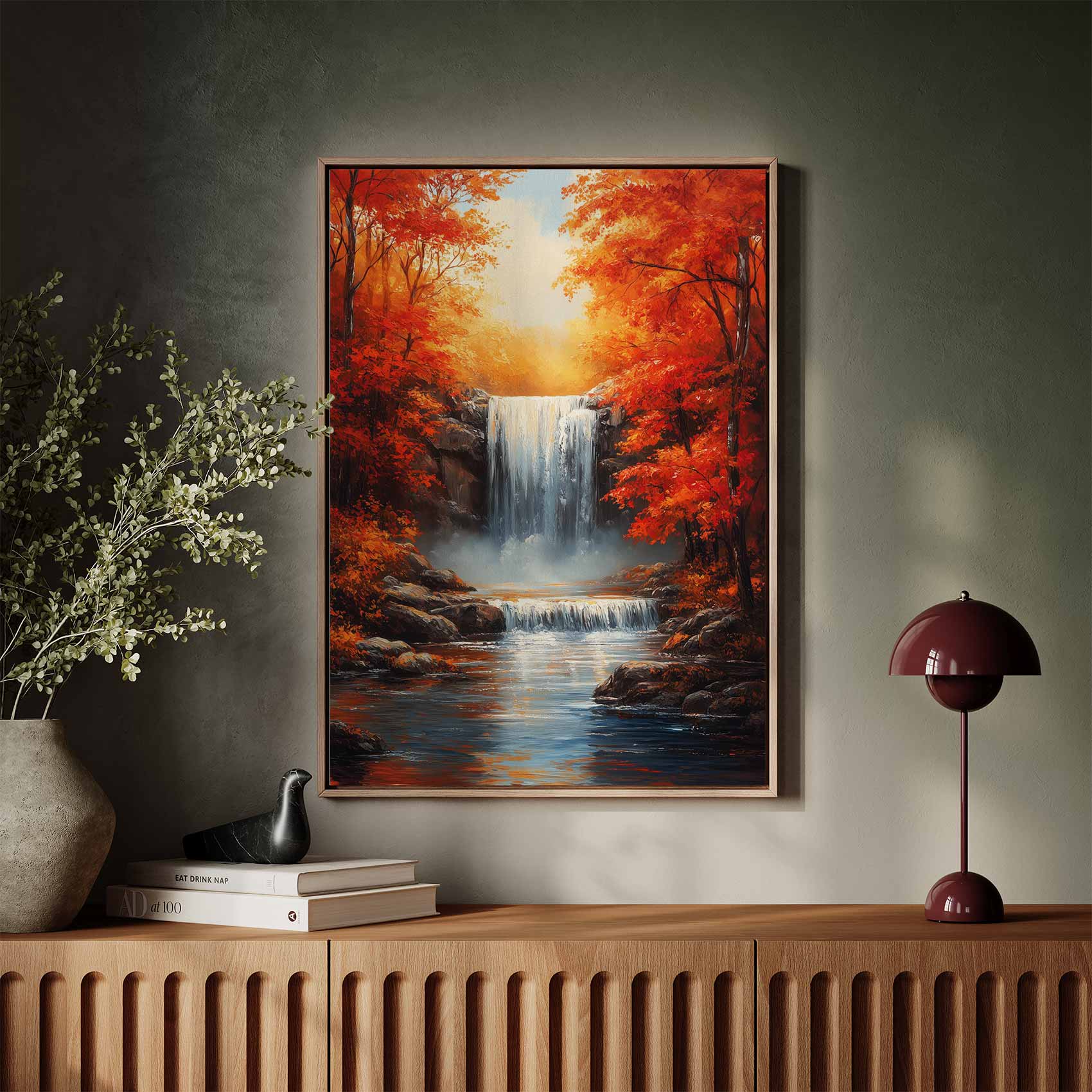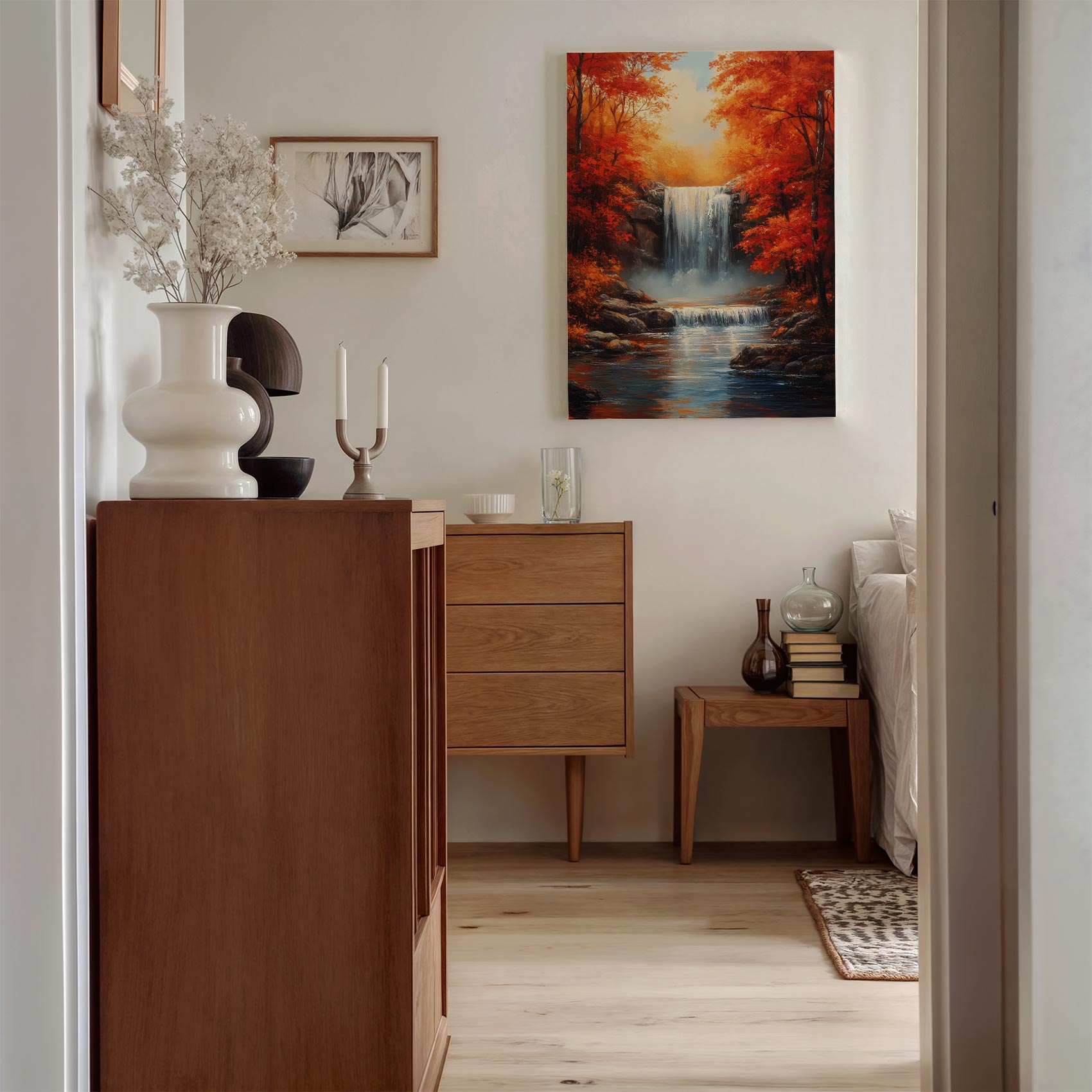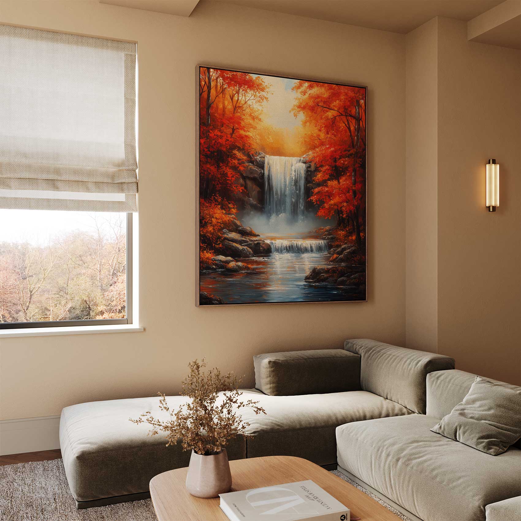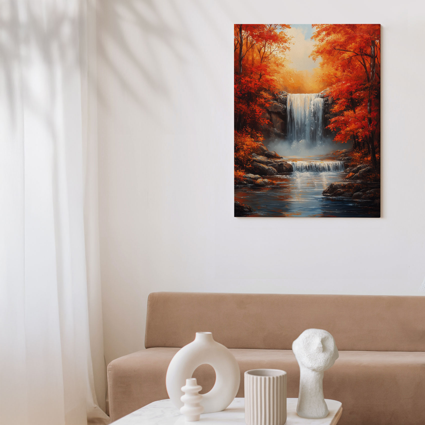 Herfstige waterval met oranje bladeren