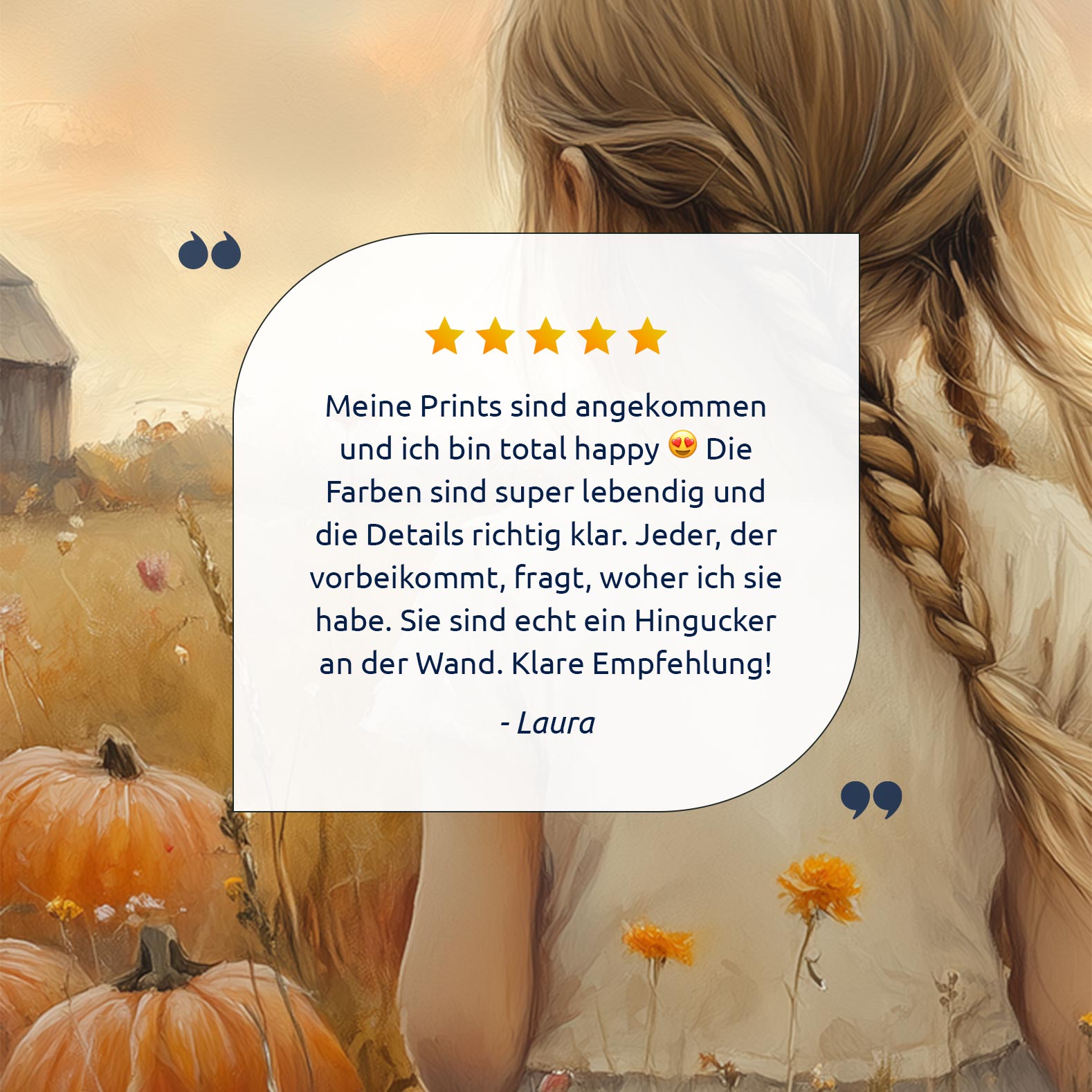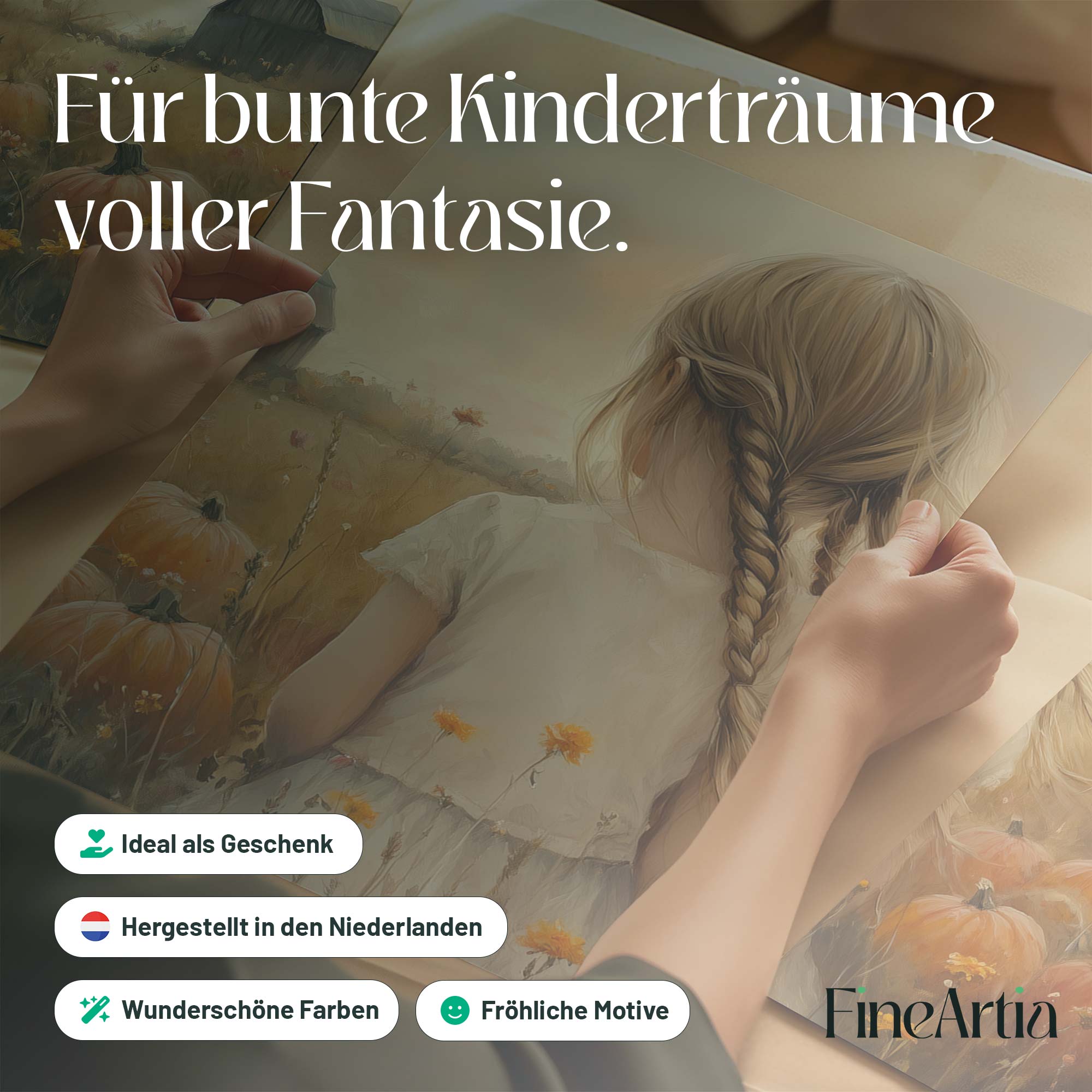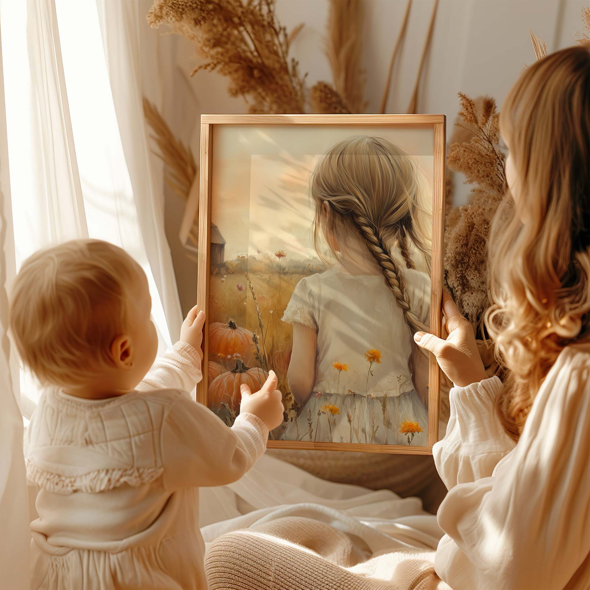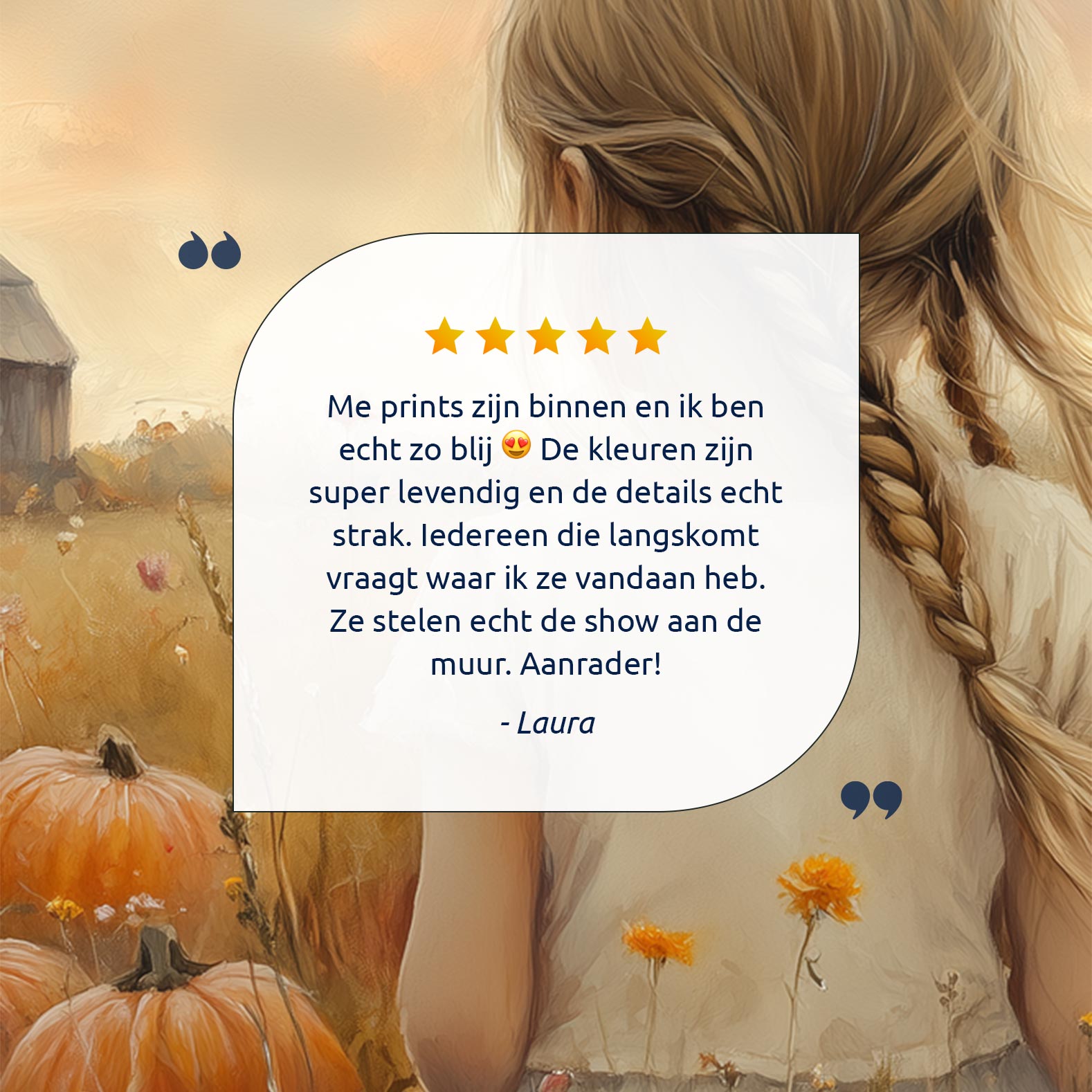 Terug naar collectie Posters Herfstmagie: Meisje tussen pompoenenvelden