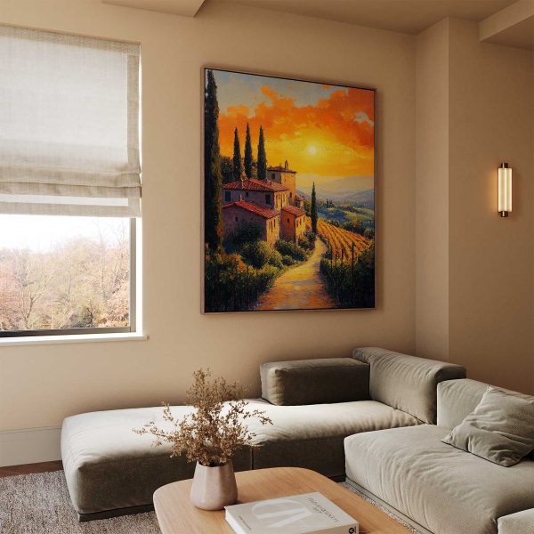Terug naar collectie Canvas Idyllisch zonsondergang dorpje