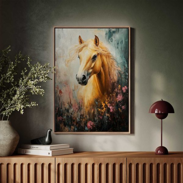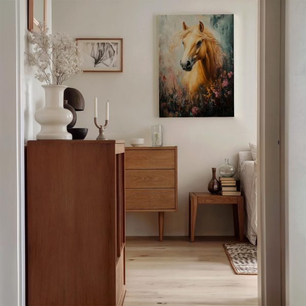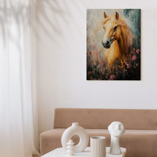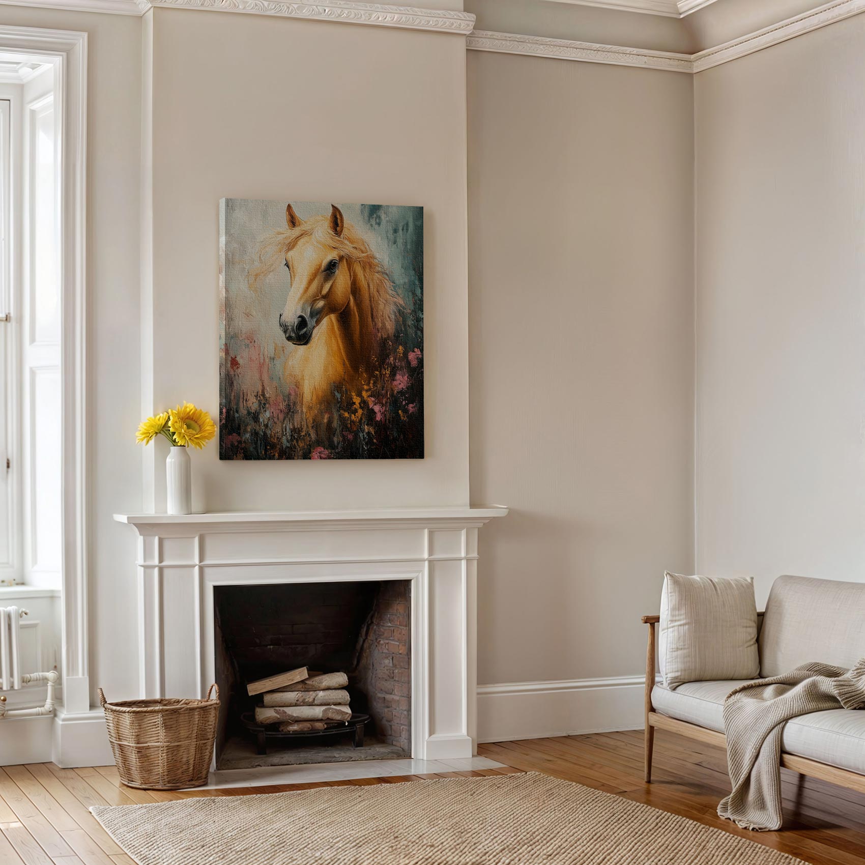 Terug naar collectie Canvas Impressionistisch paard in bloemenveld
