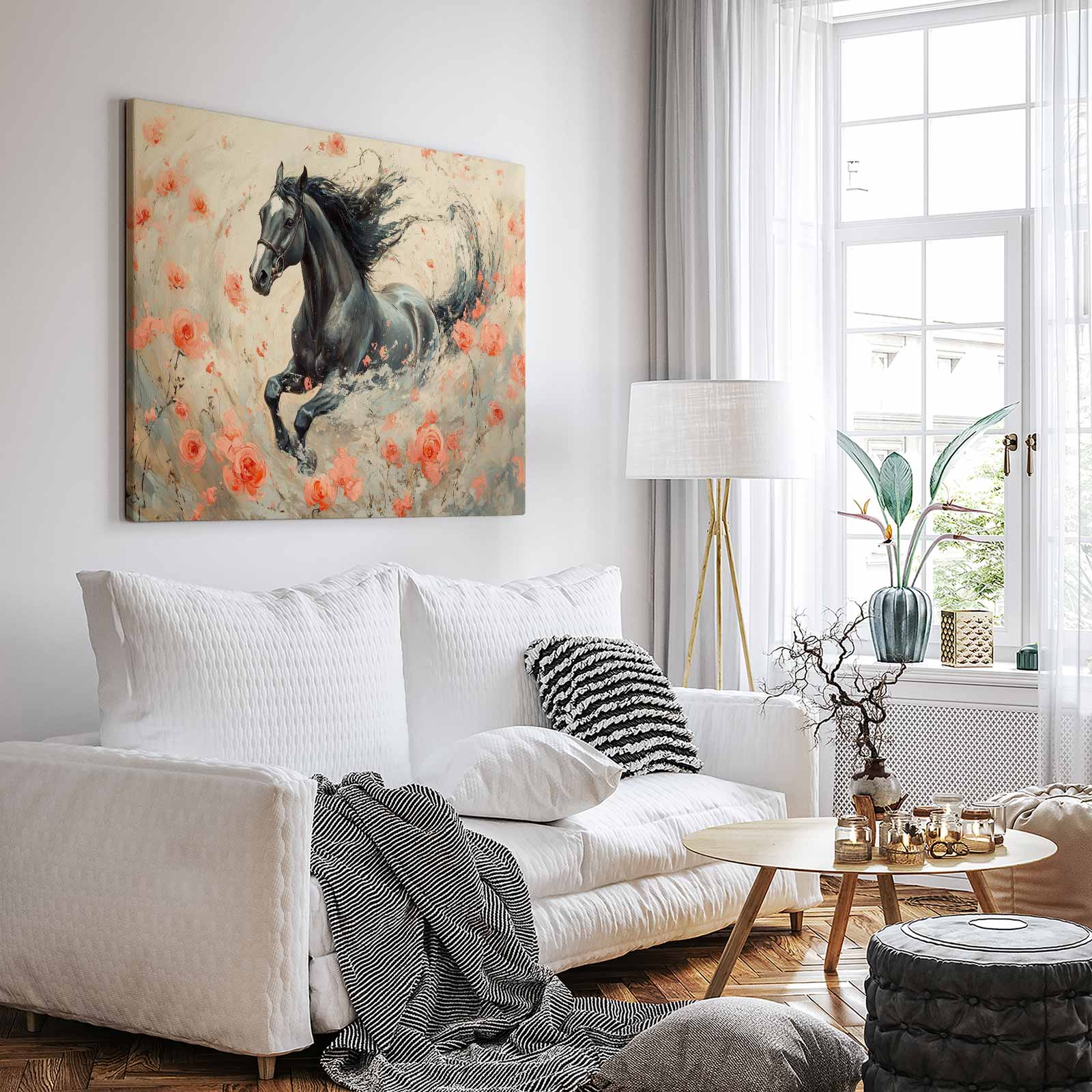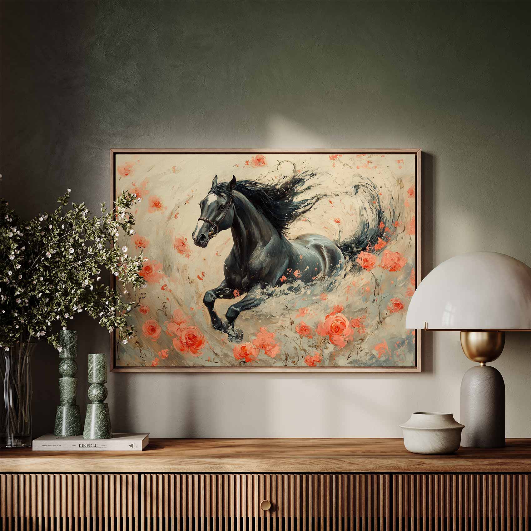 Impressionistische galopperende zwarte paard