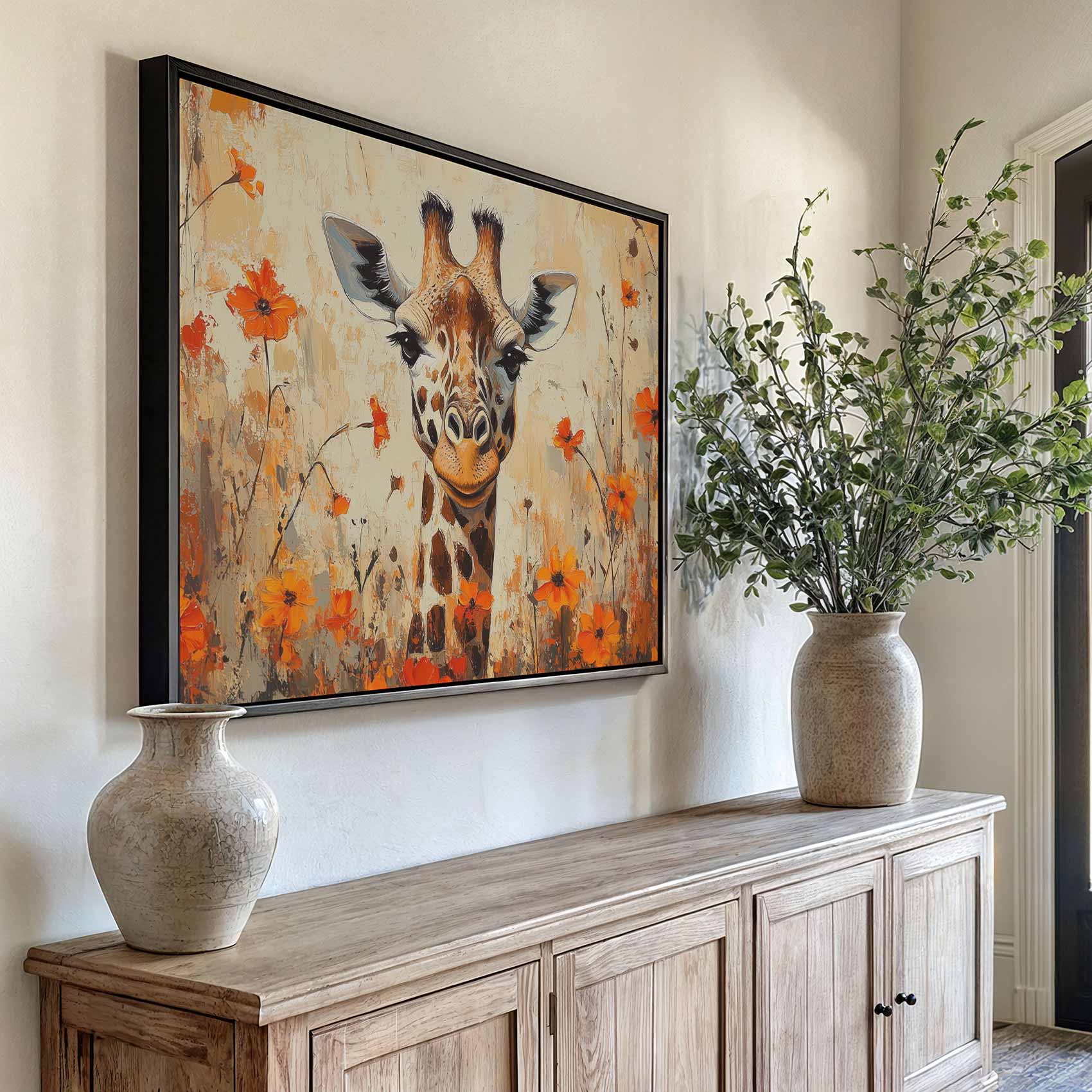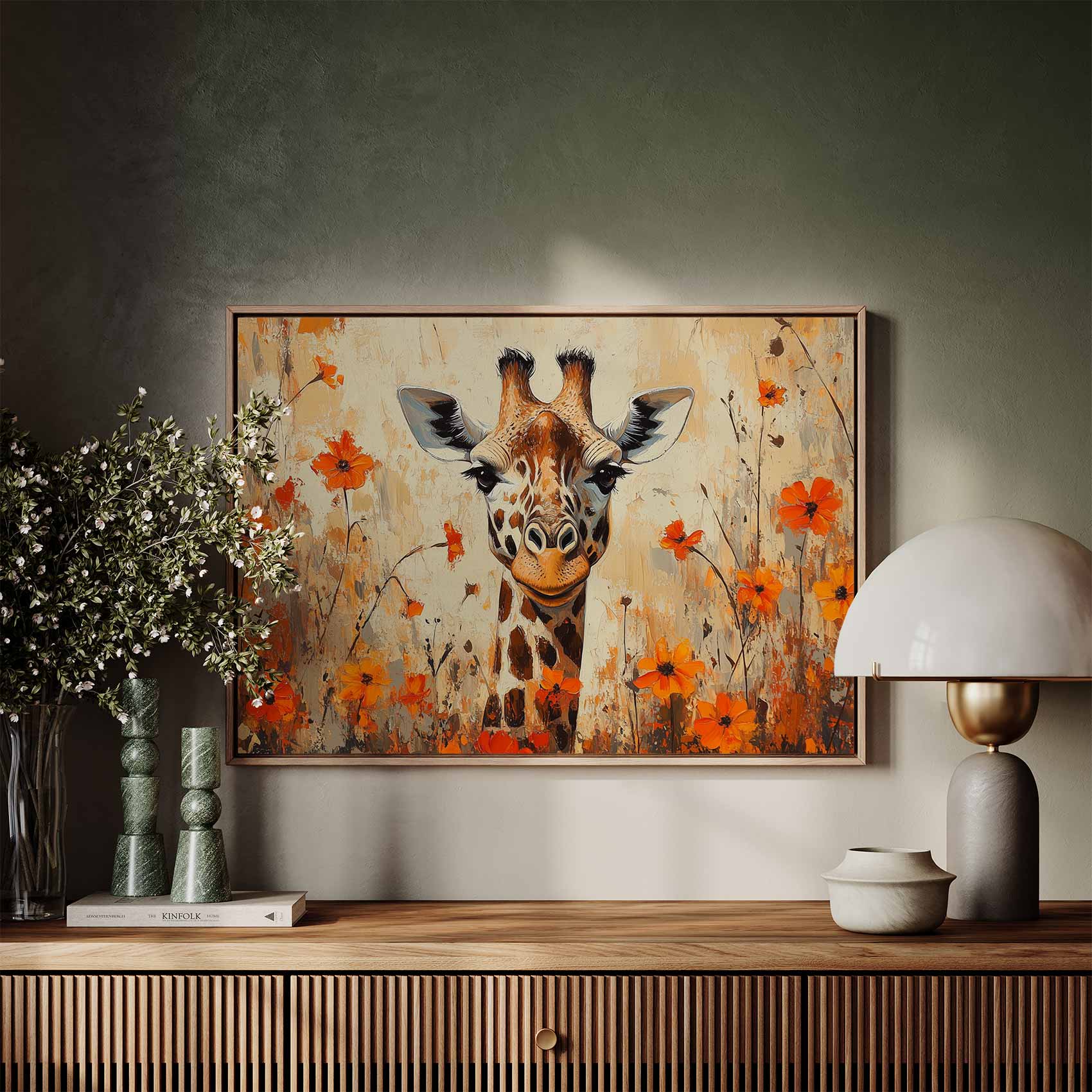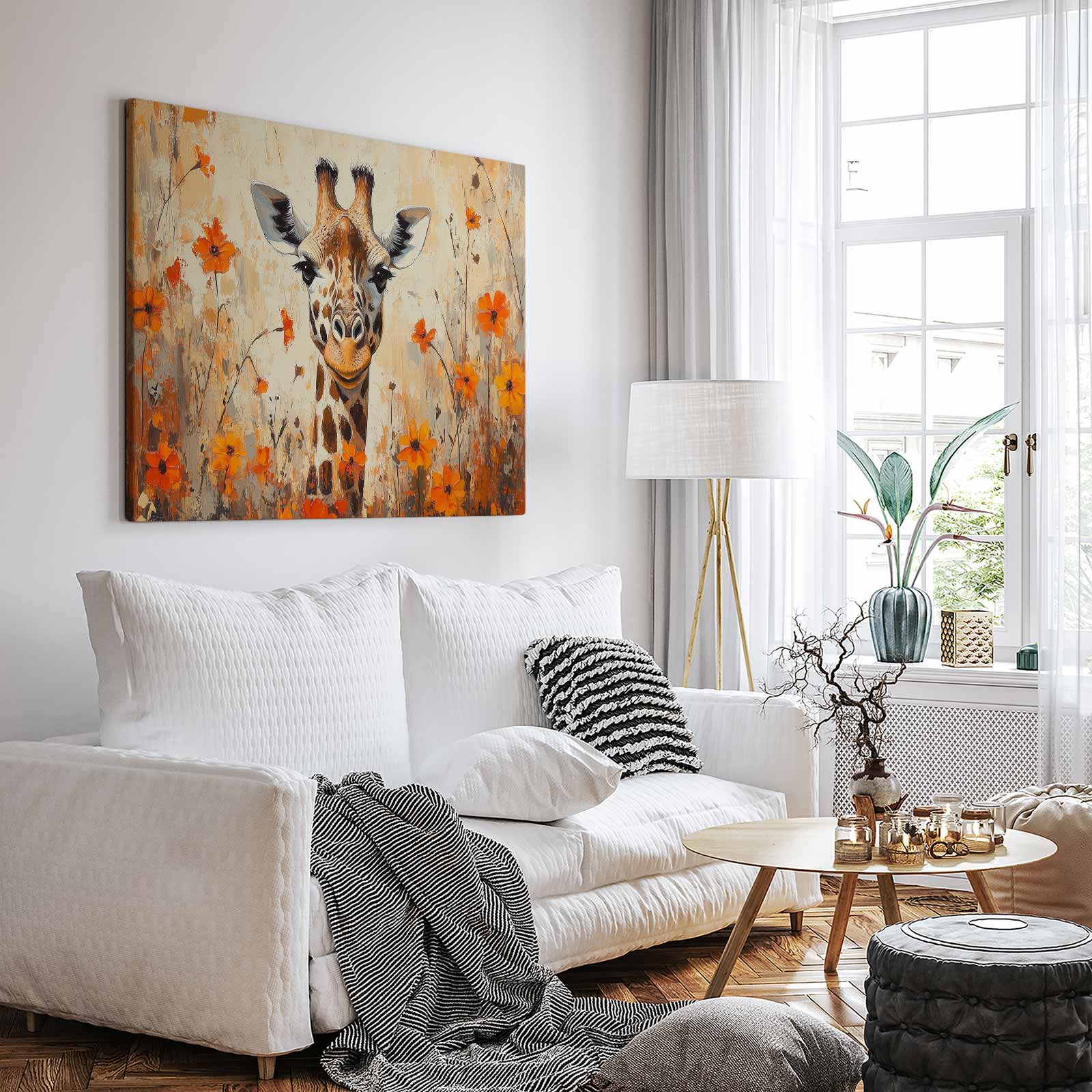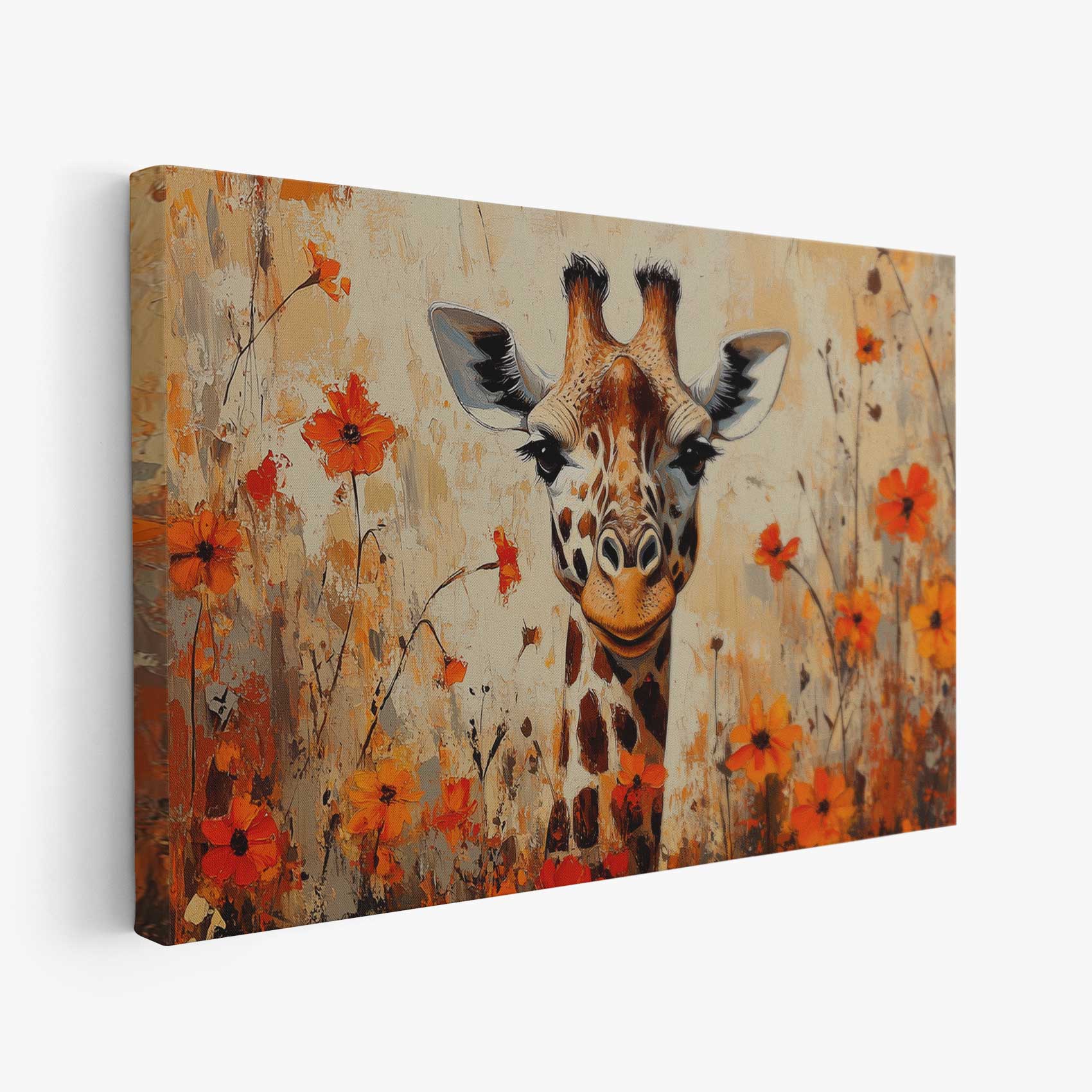 Terug naar collectie Canvas Impressionistische giraf tussen bloemen