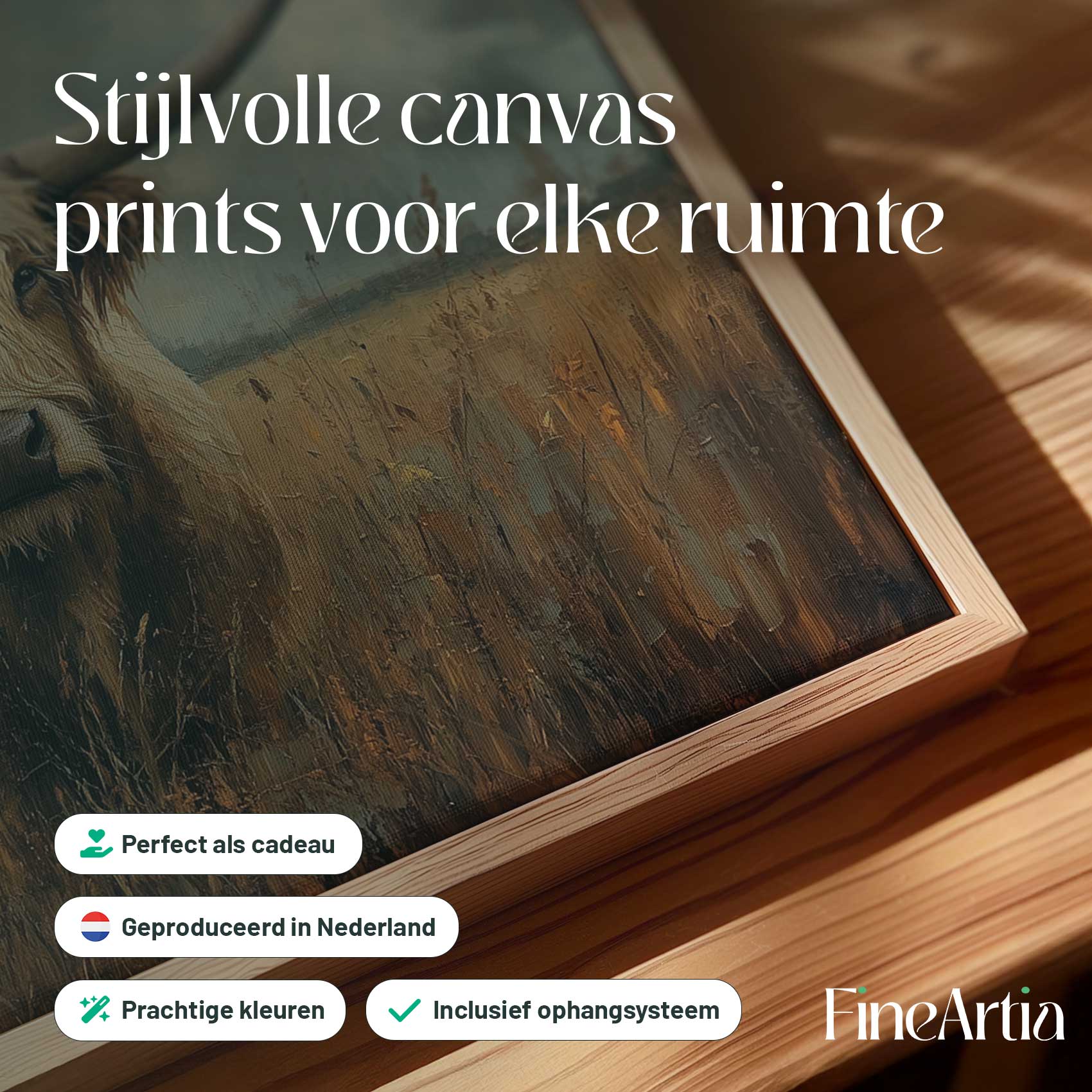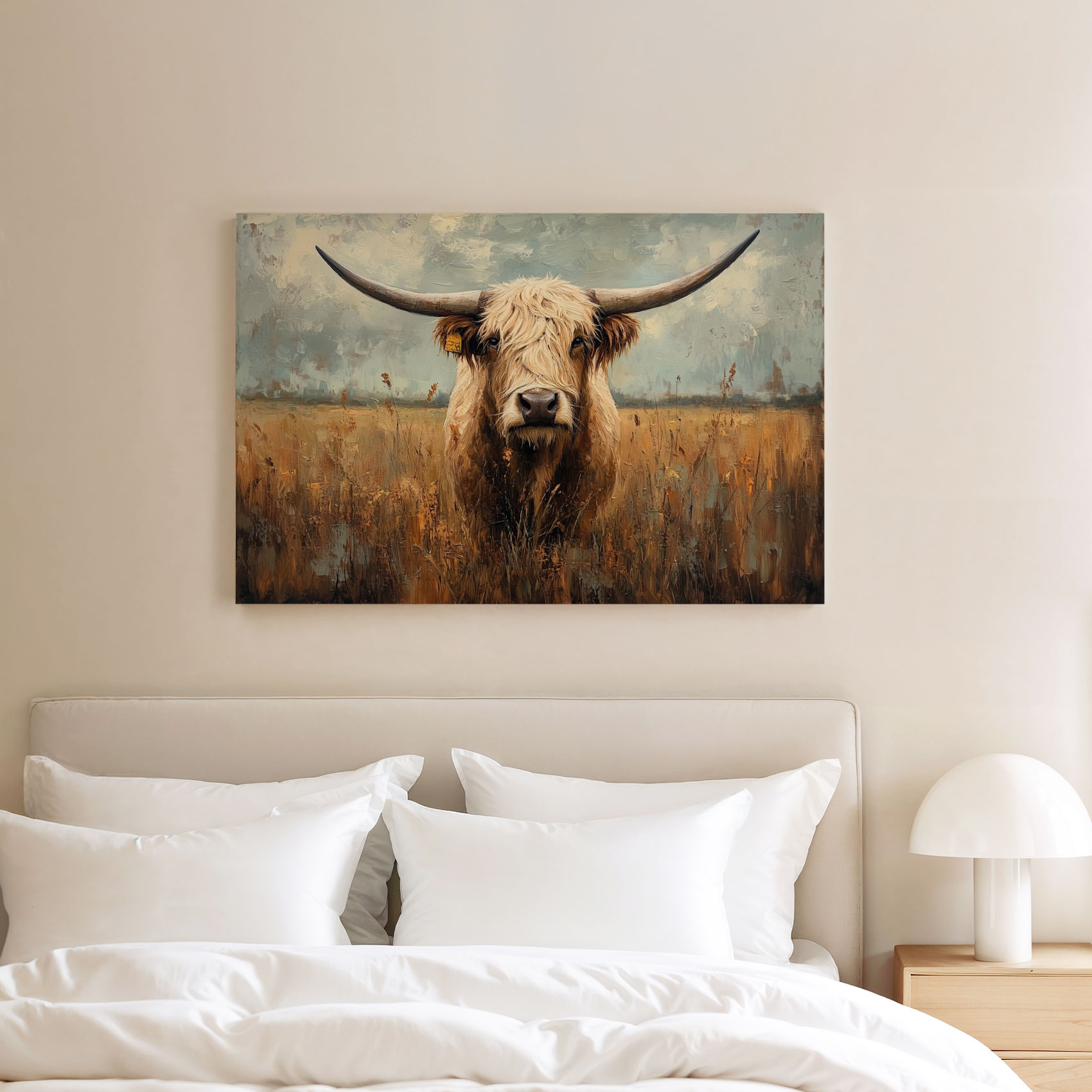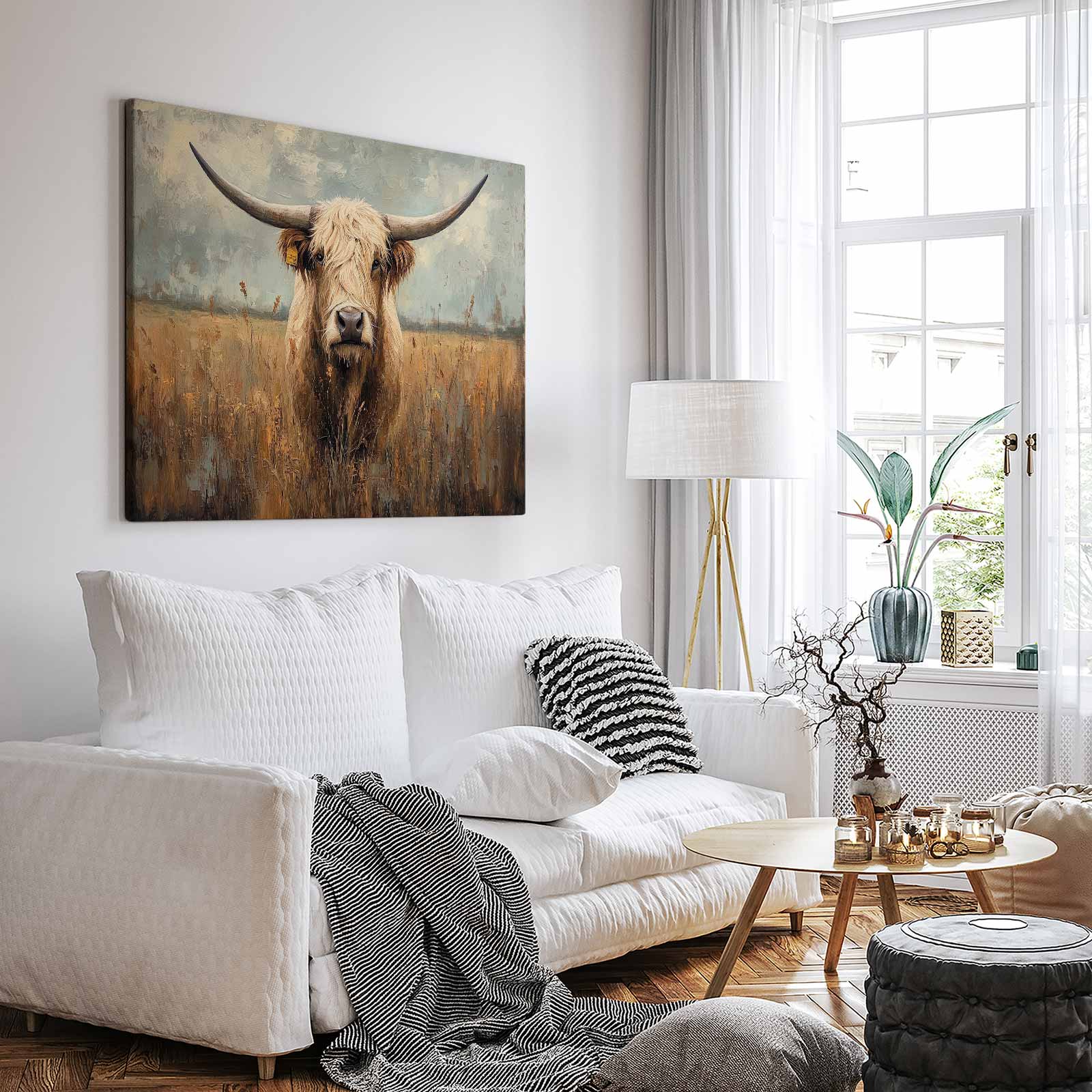 Terug naar collectie Canvas Impressionistische hoornkoe in veld