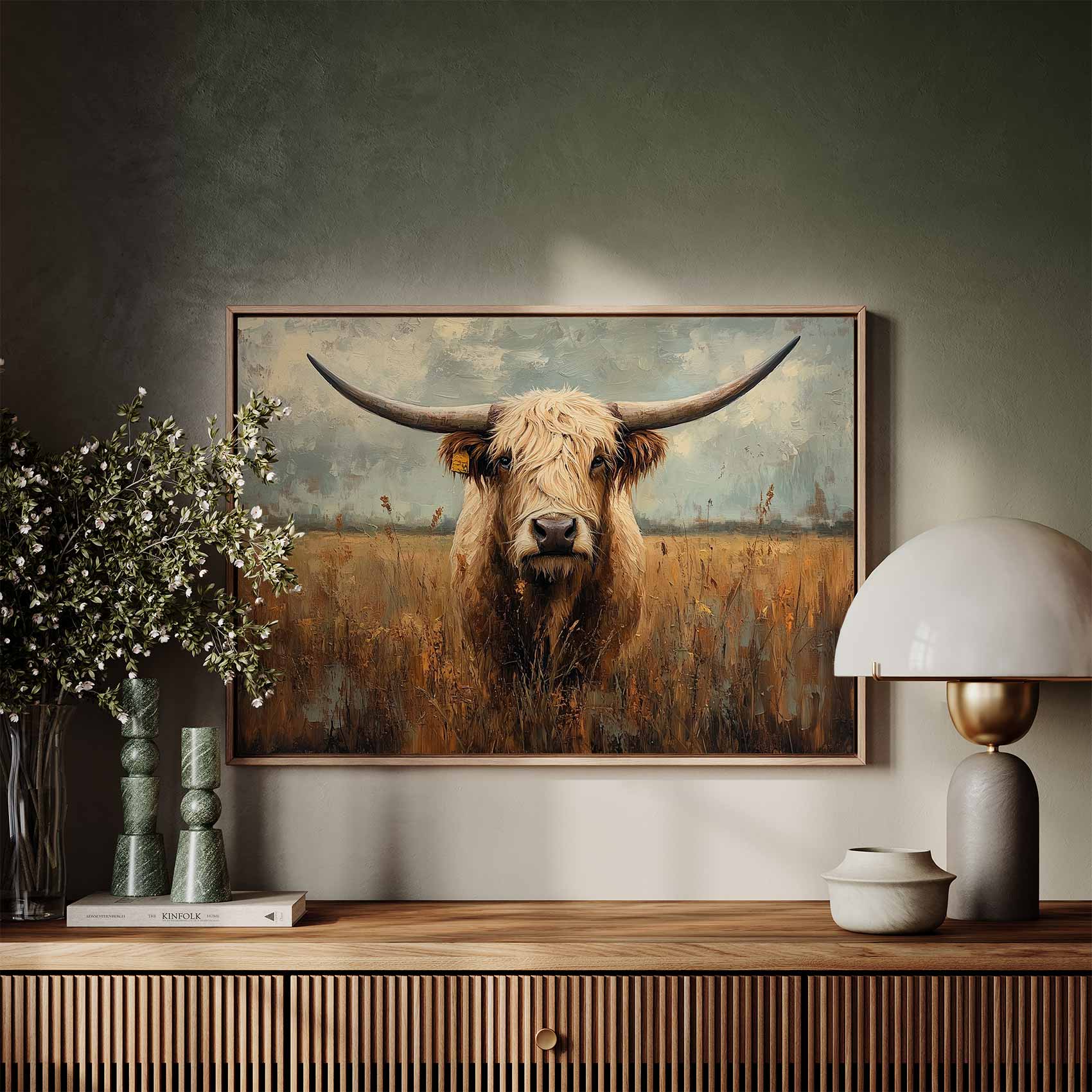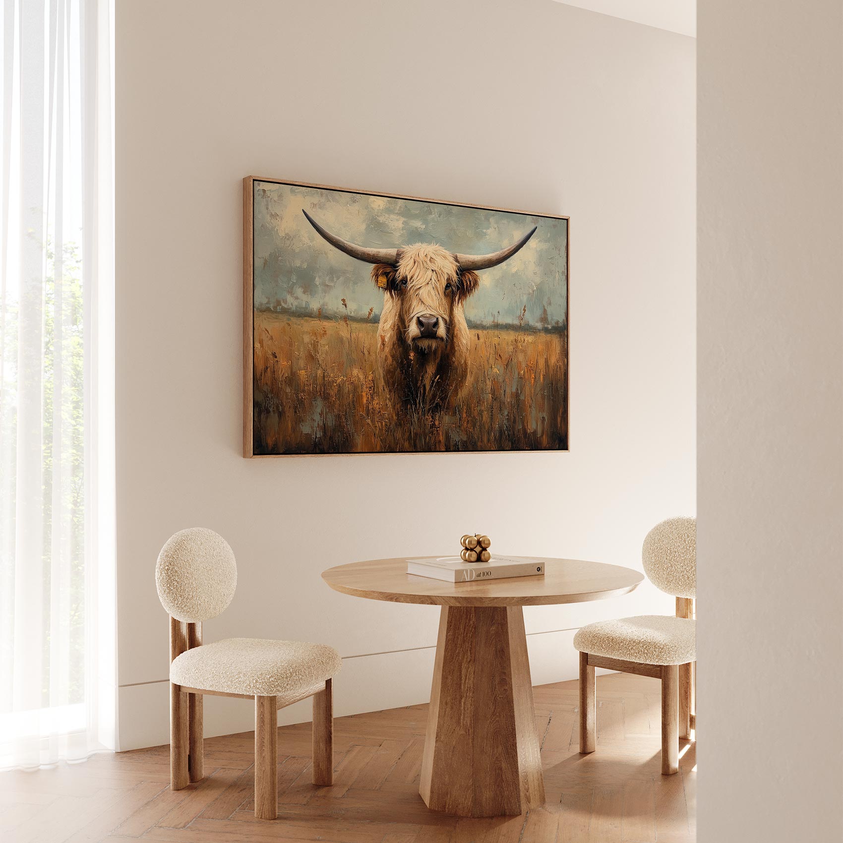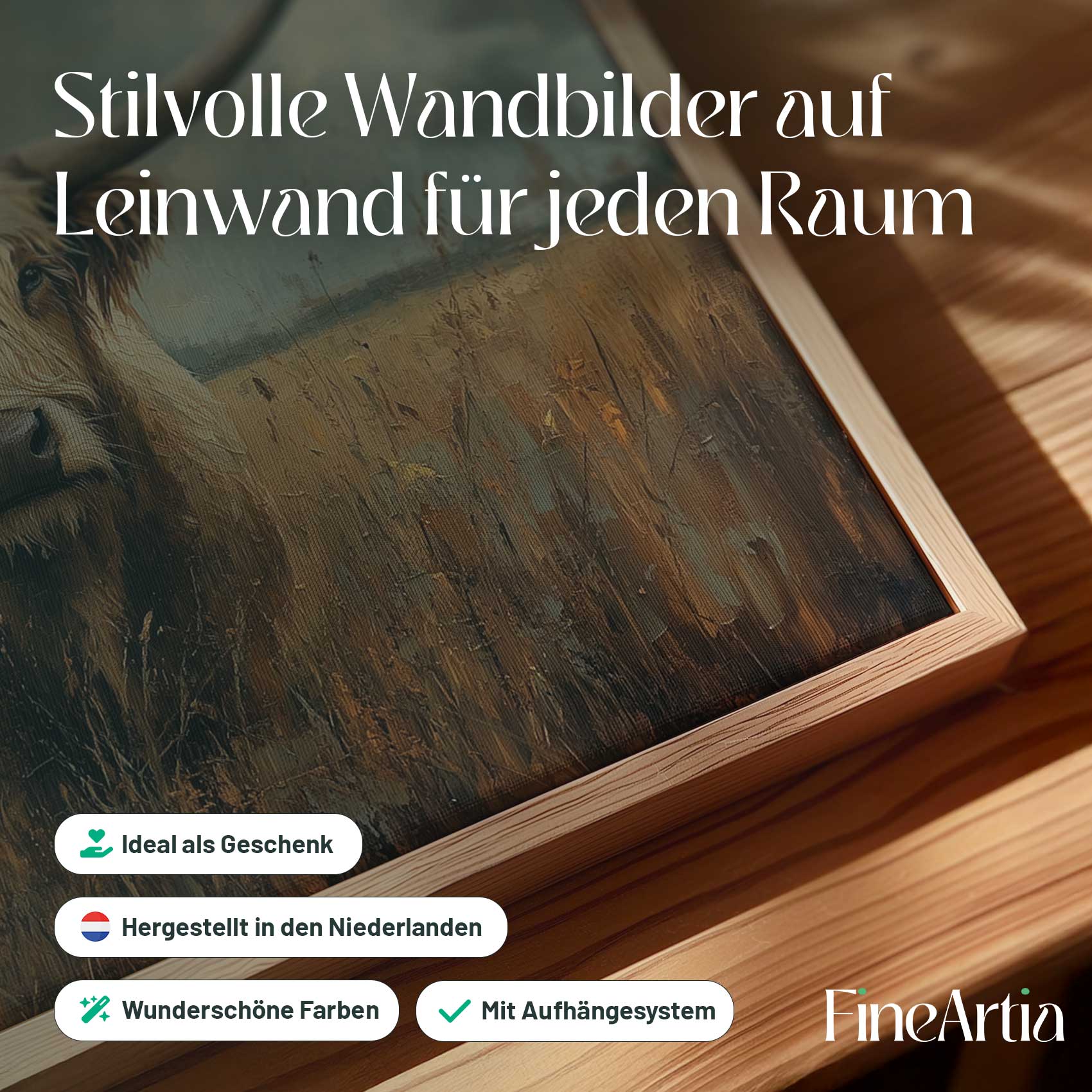 Terug naar collectie Canvas Impressionistische hoornkoe in veld