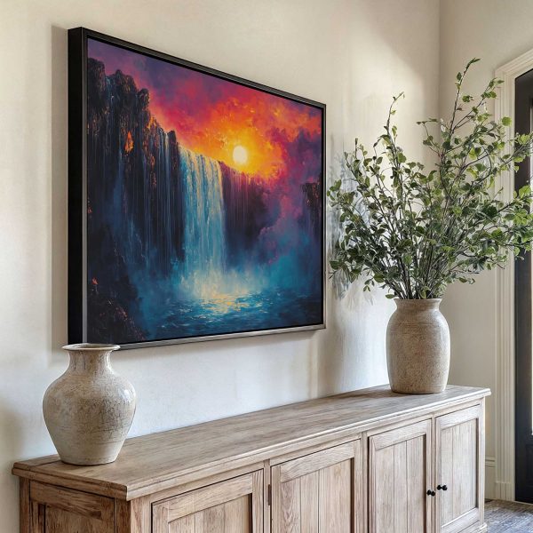 Impressionistische waterval zonsondergang