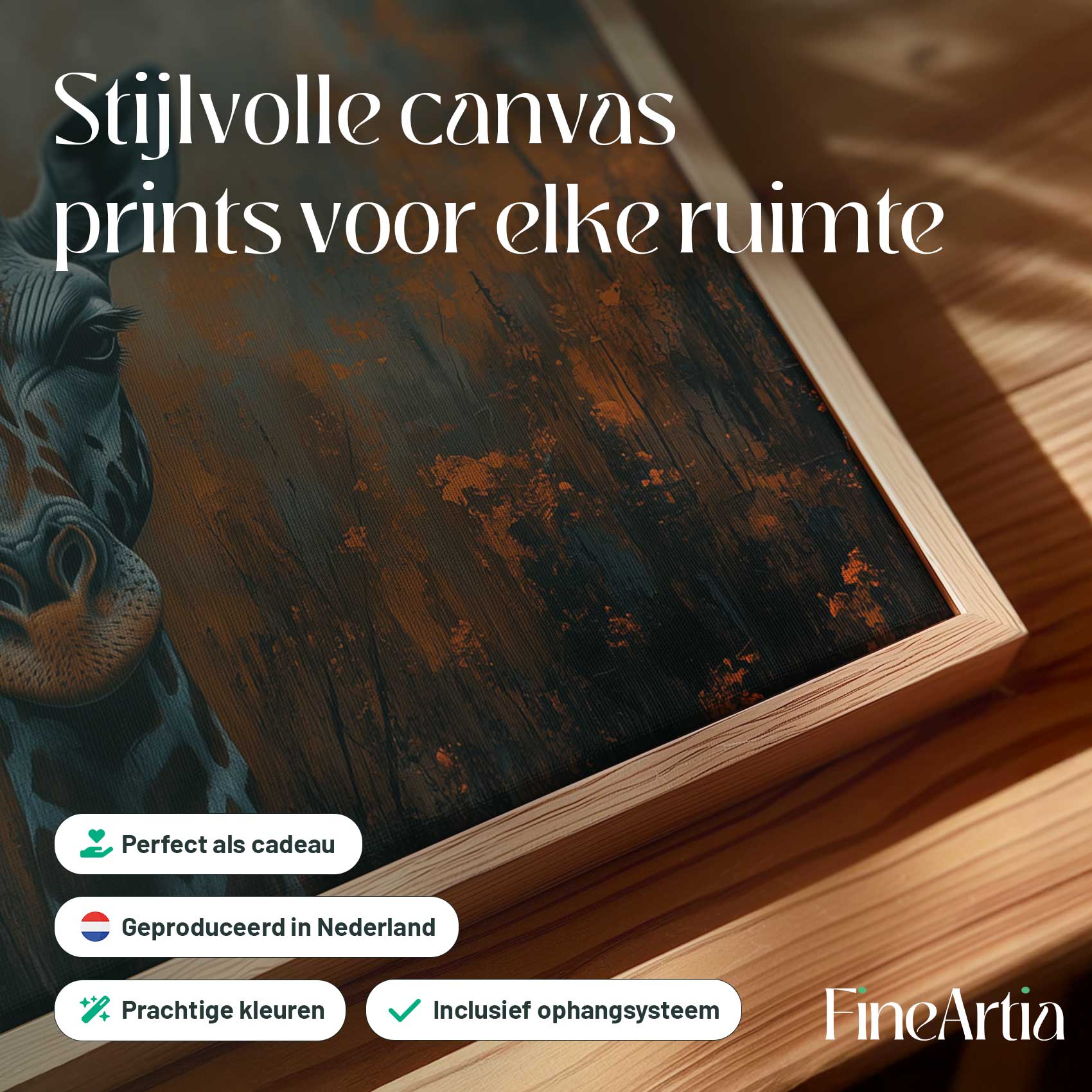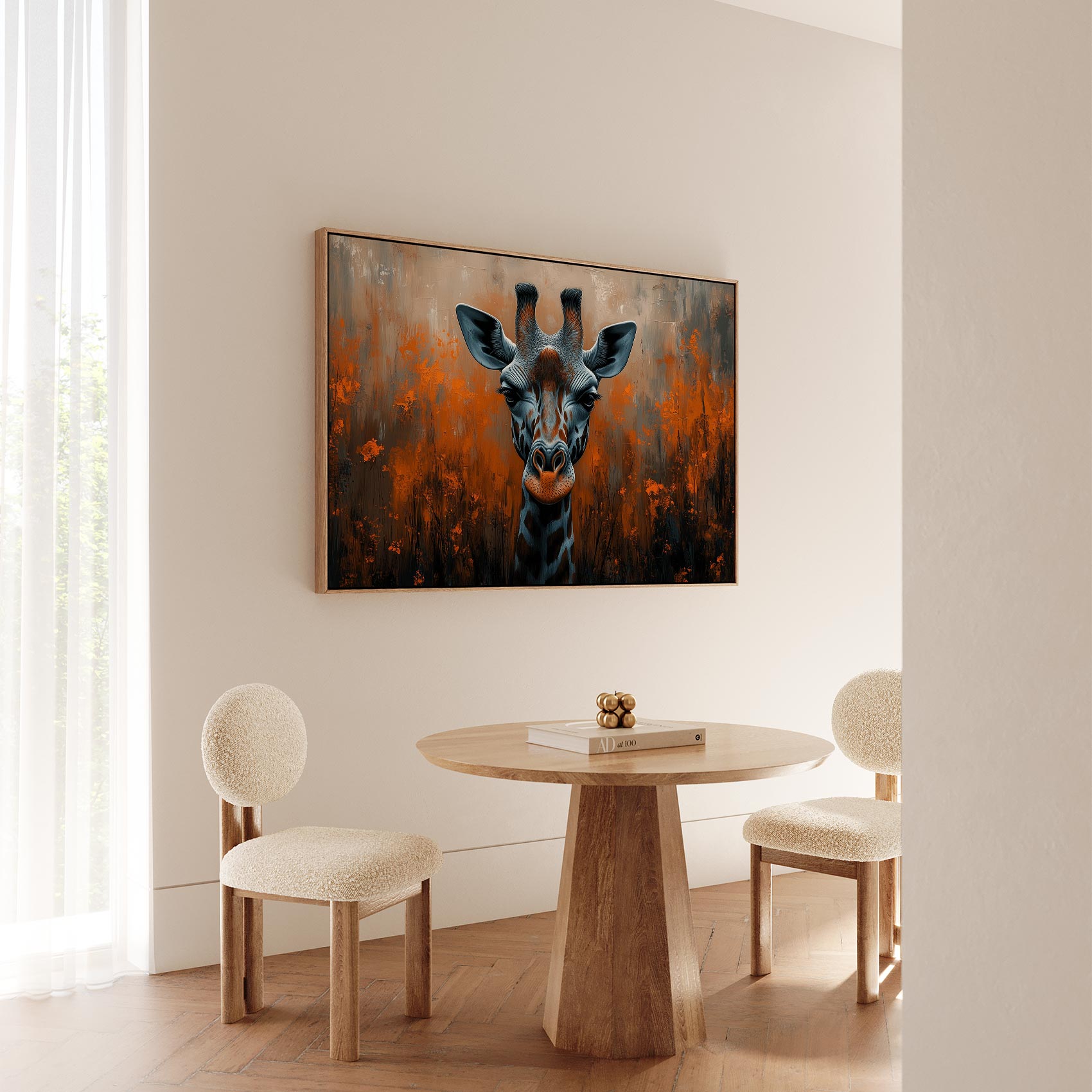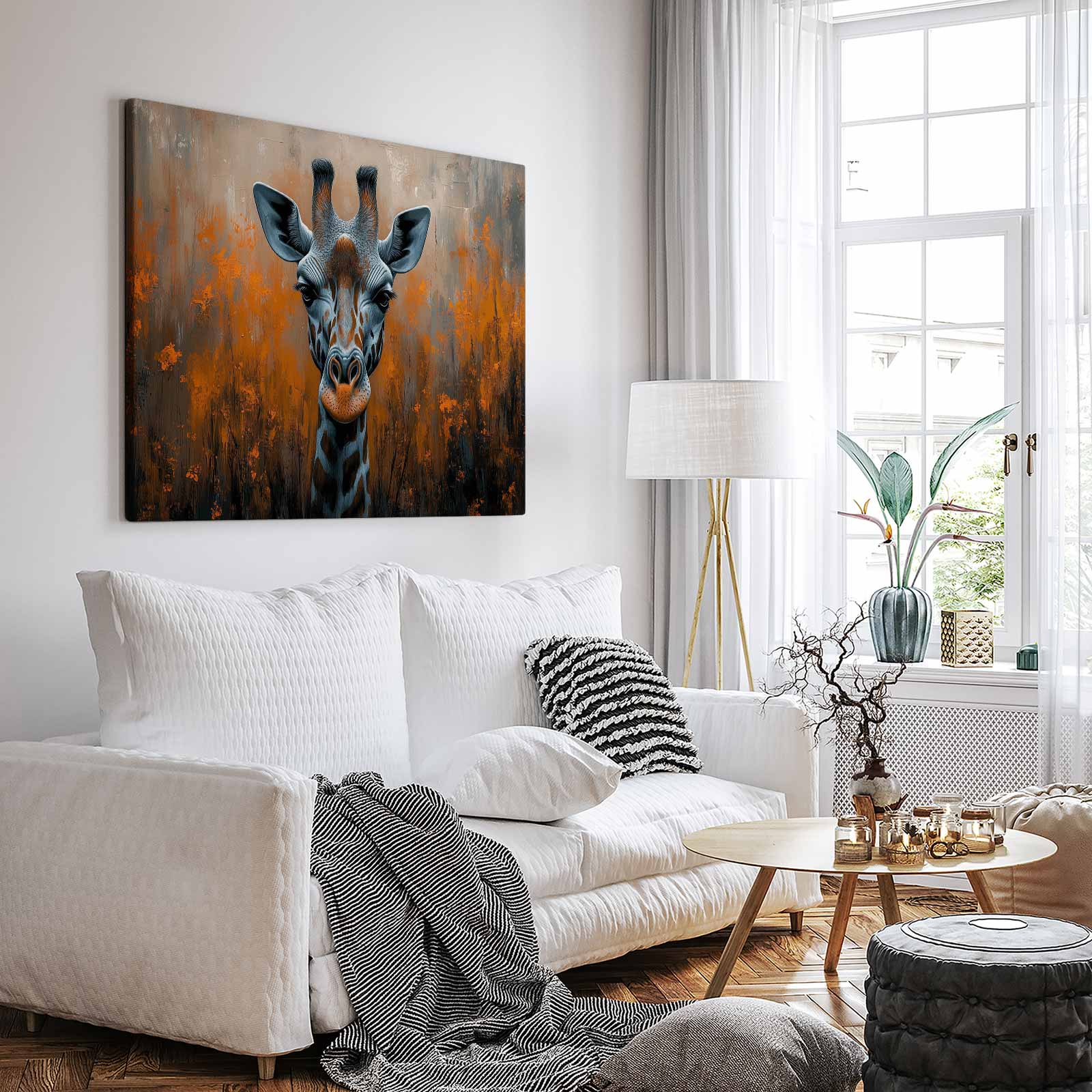 Terug naar collectie Canvas Intieme giraffe close-up oranje-zwart