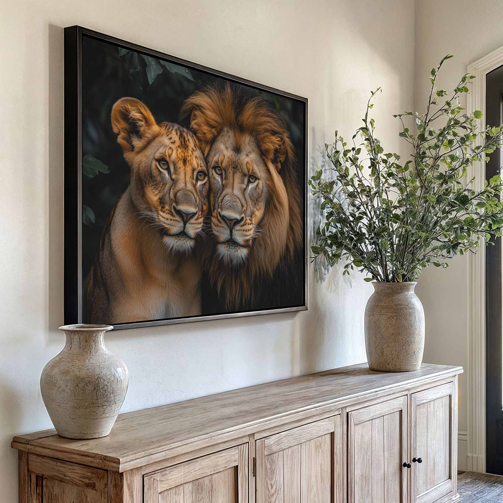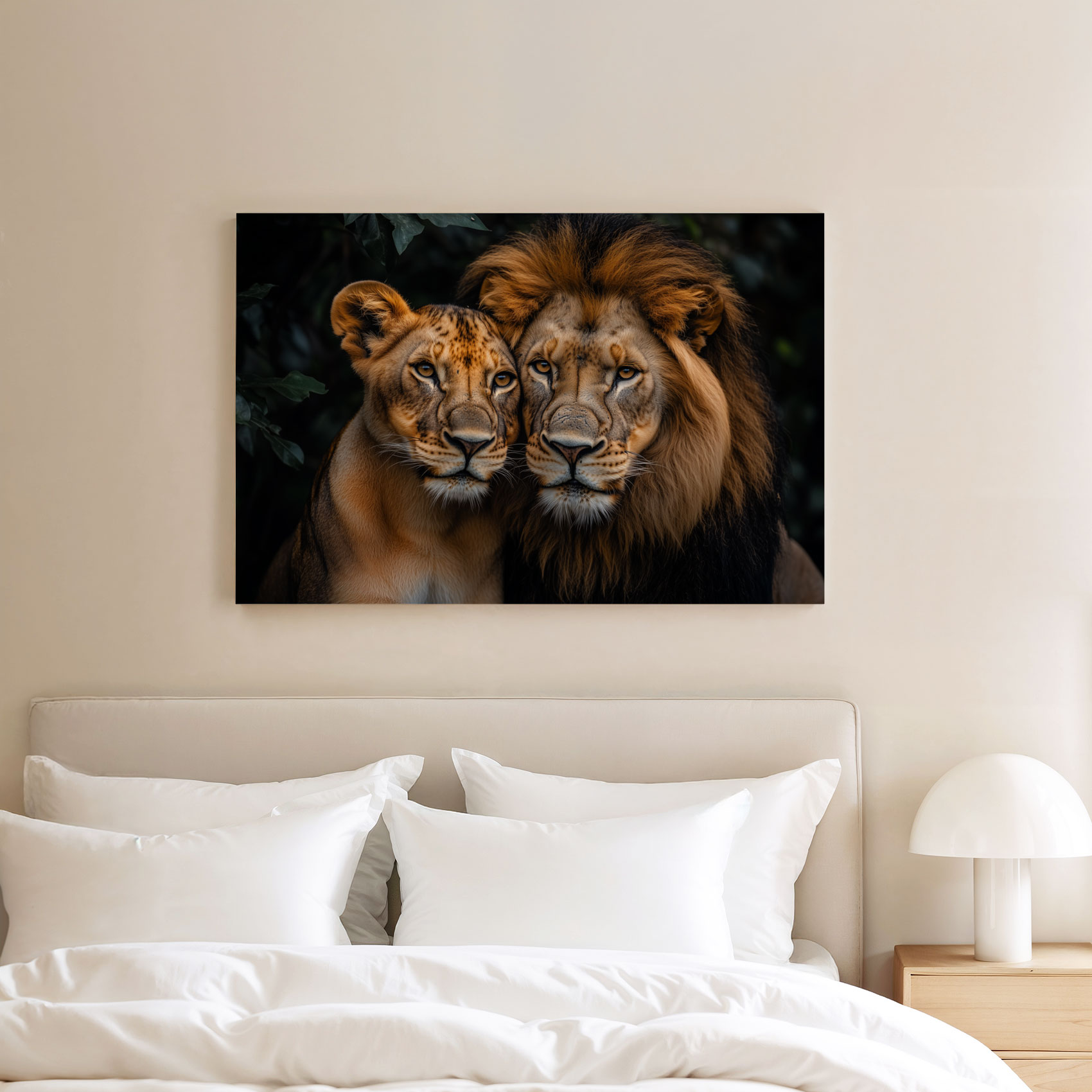 Terug naar collectie Canvas Intieme leeuwenkoppel in natuur