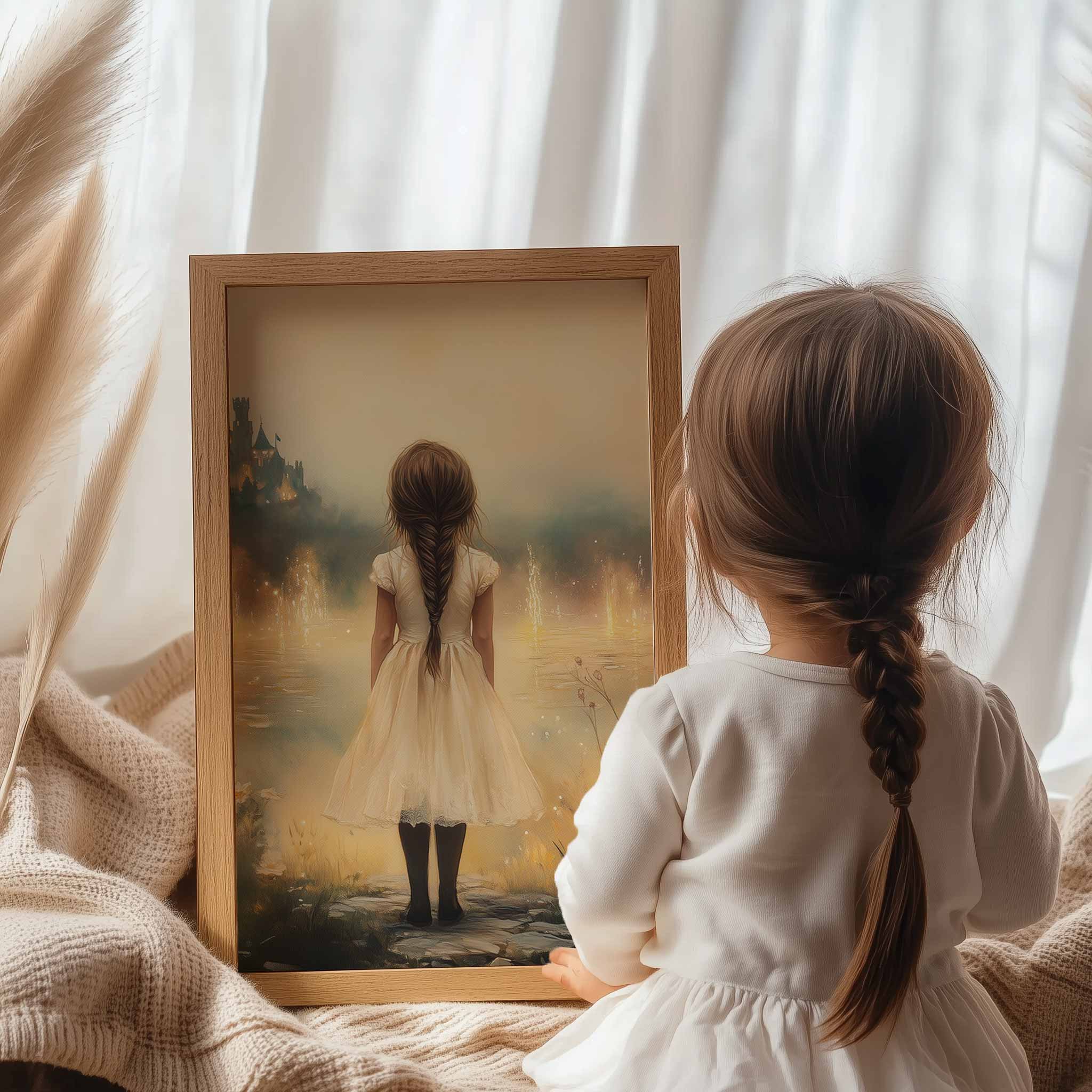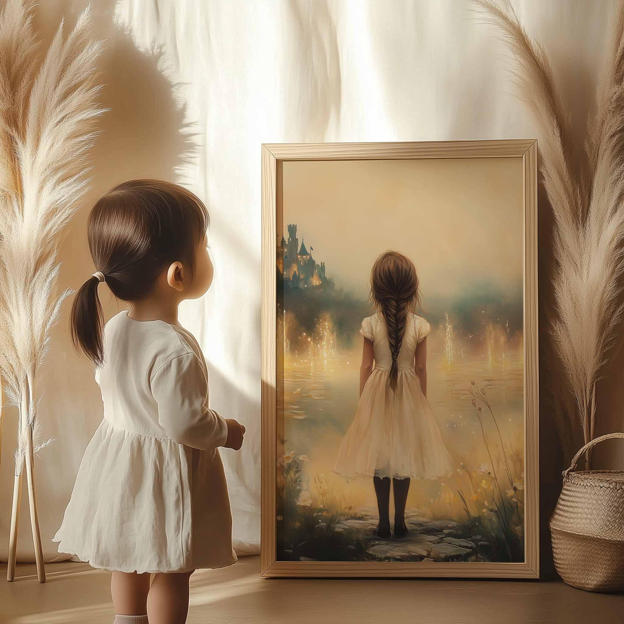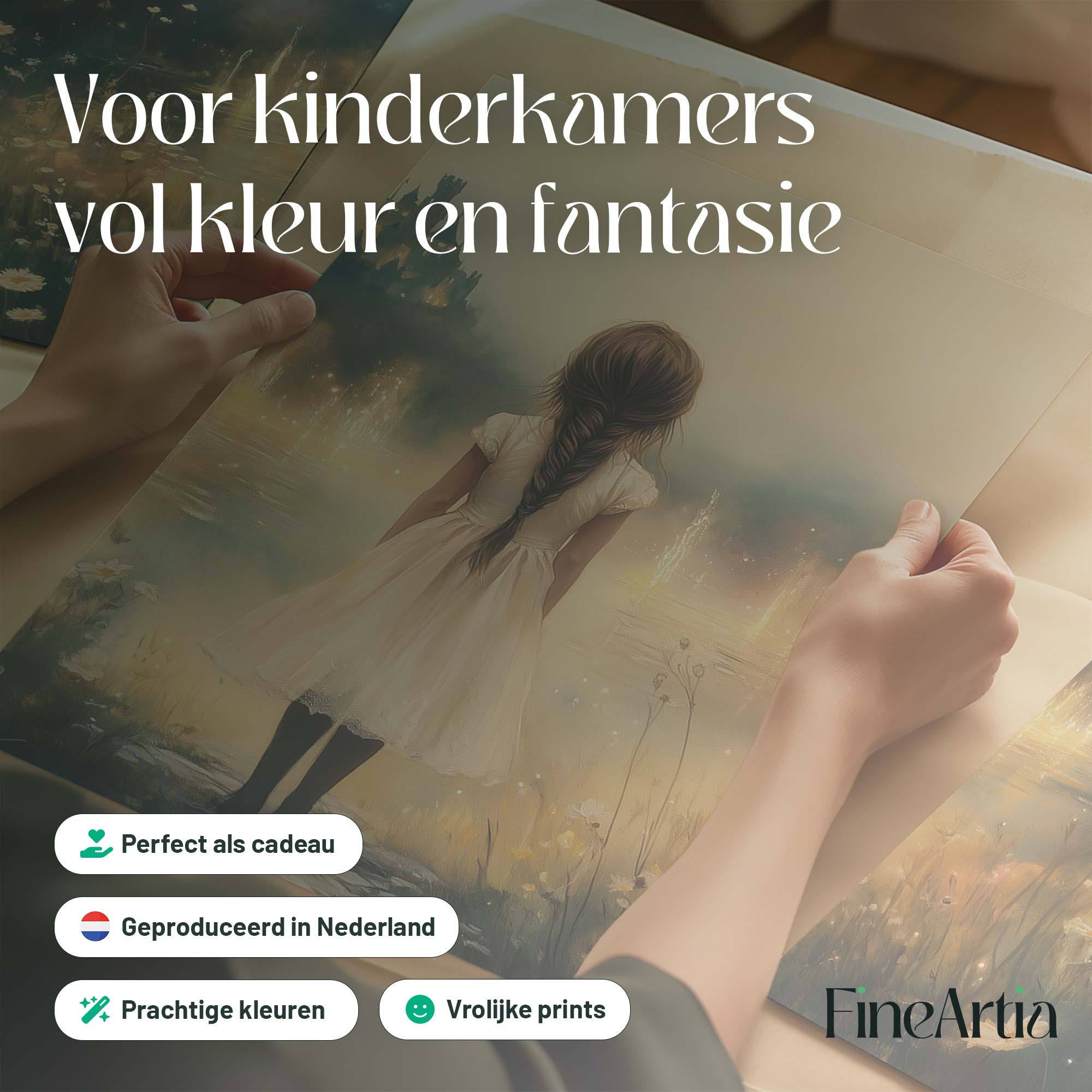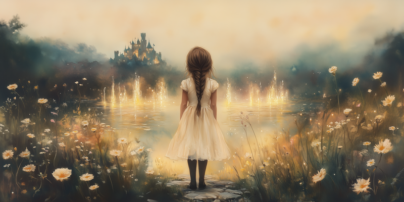 Jong Meisje in Dromerig Bloemenveld bij Kasteel
