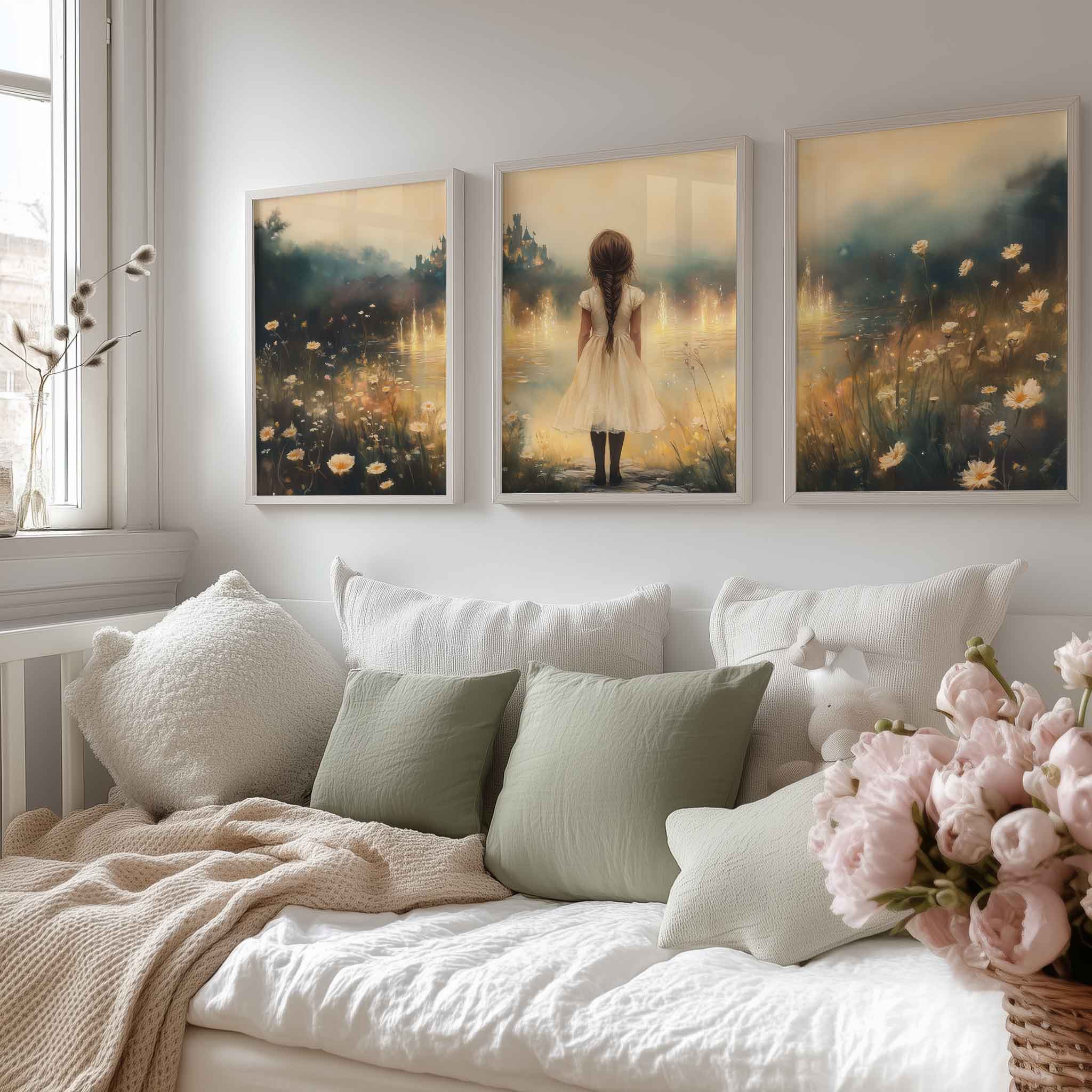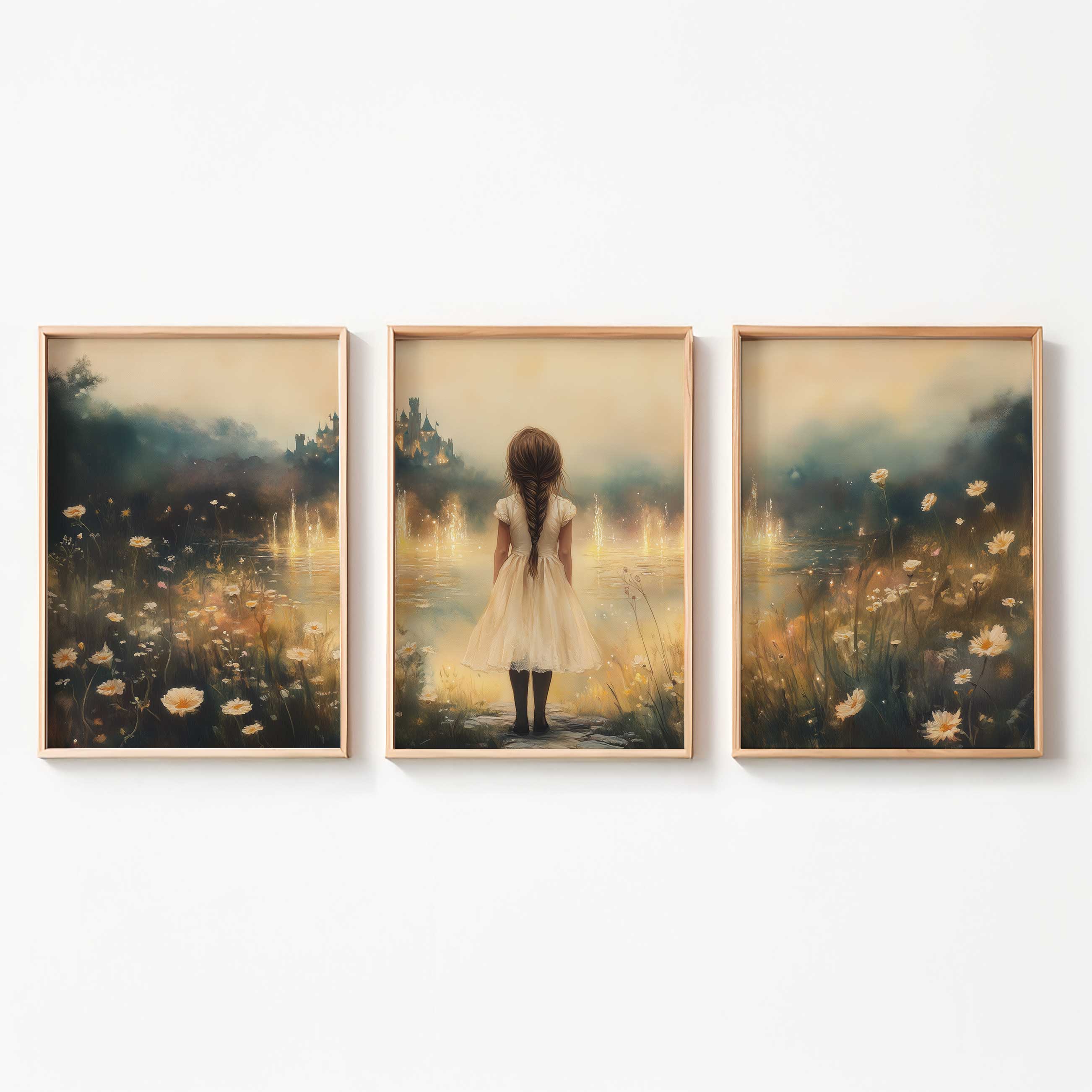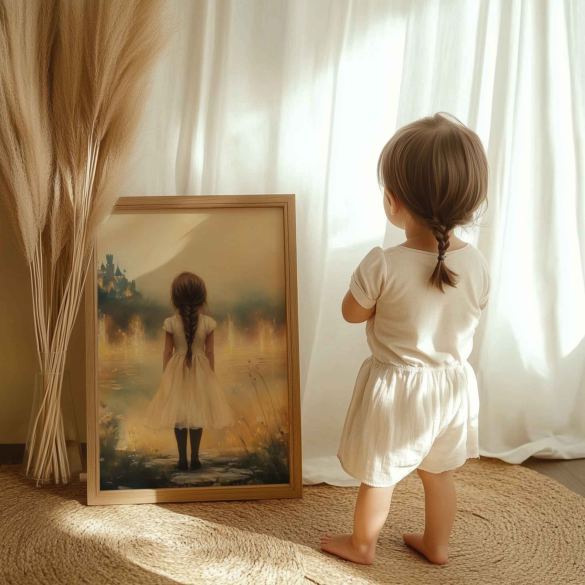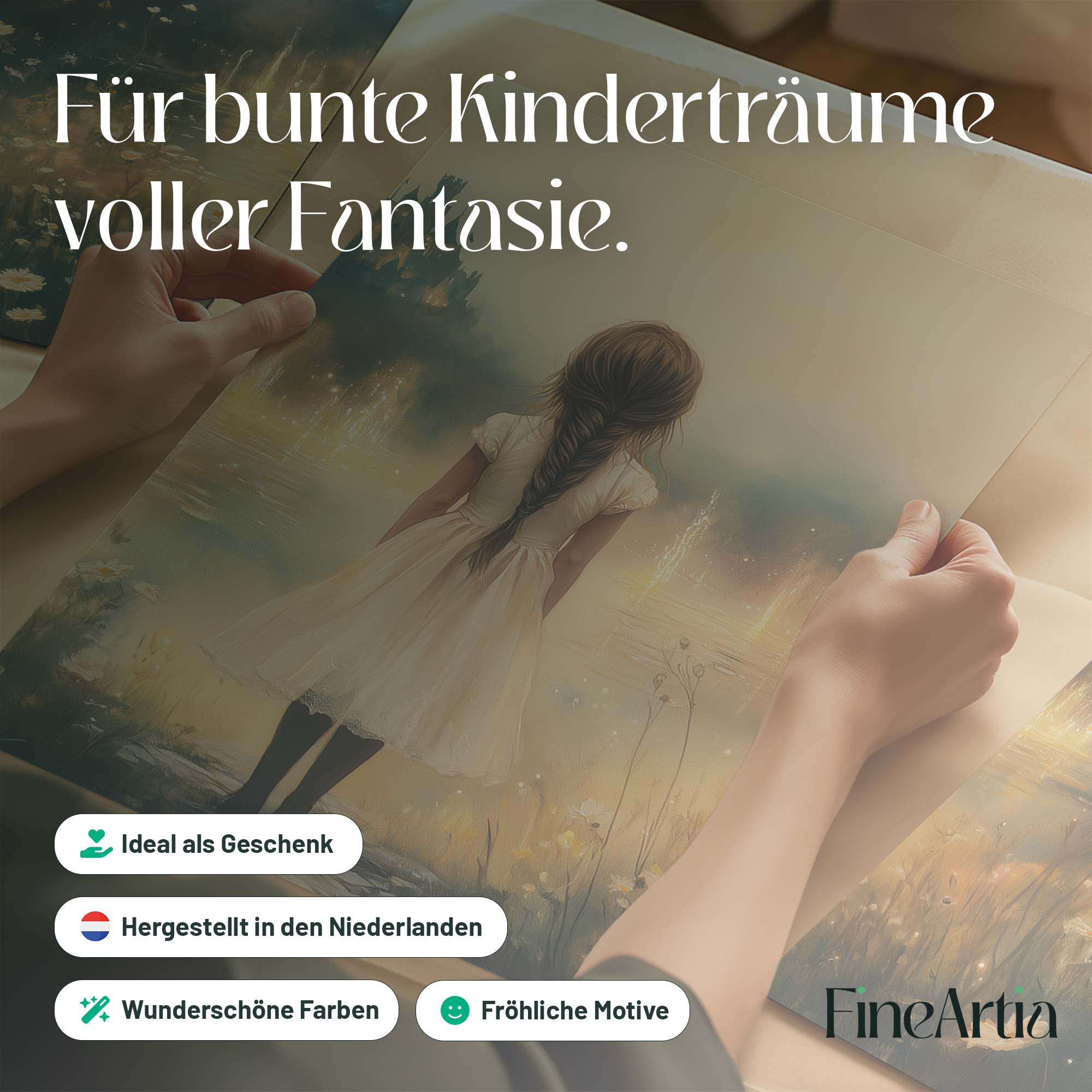 Jong Meisje in Dromerig Bloemenveld bij Kasteel