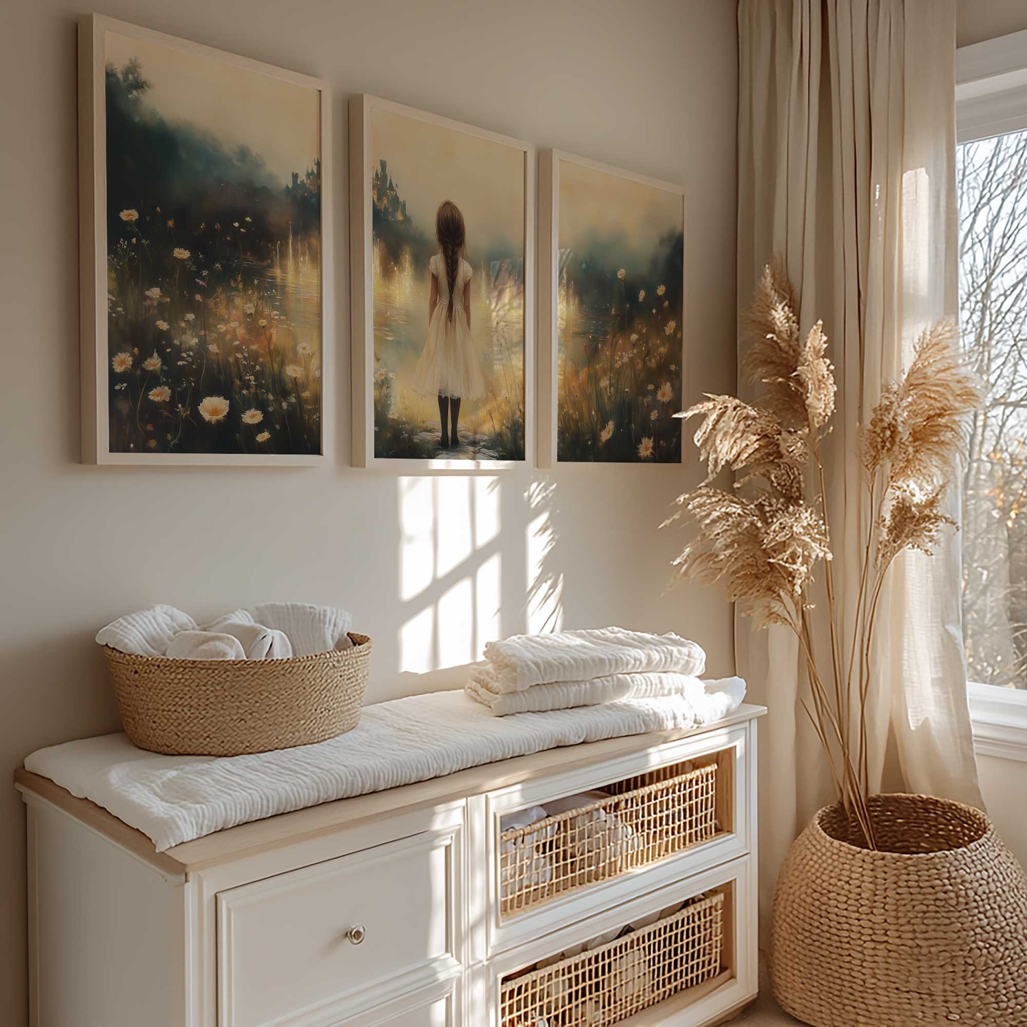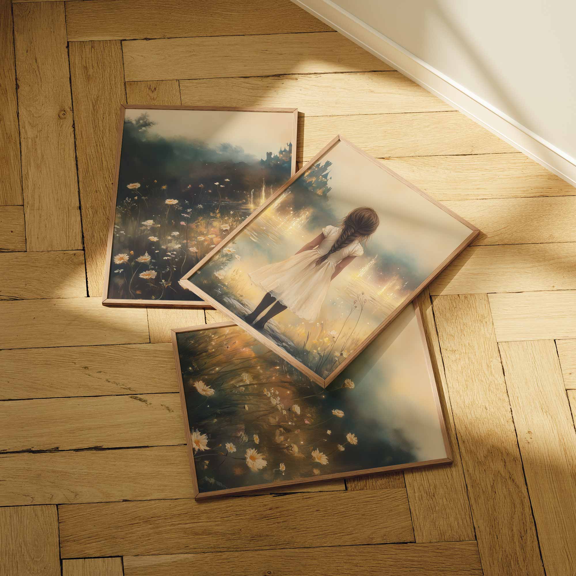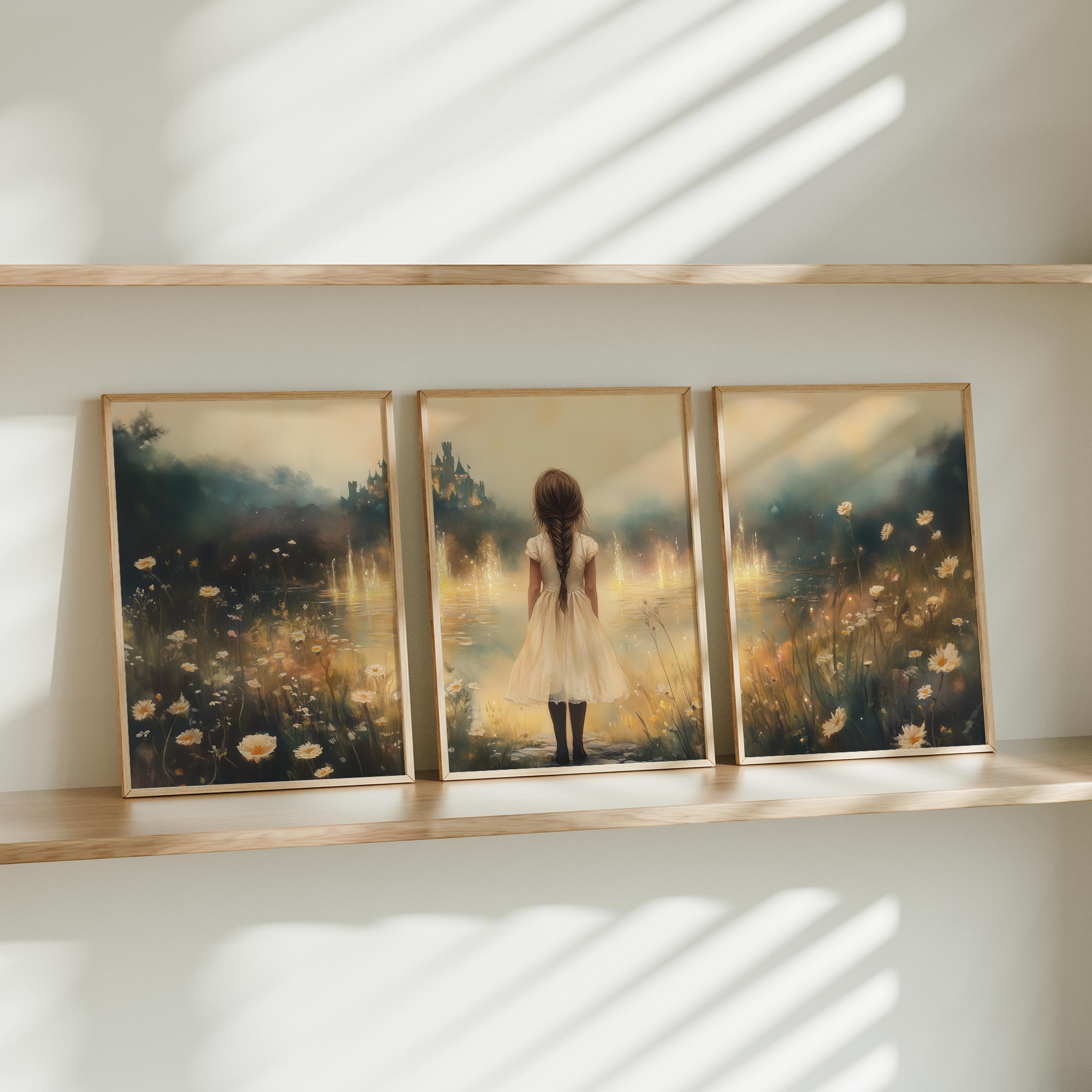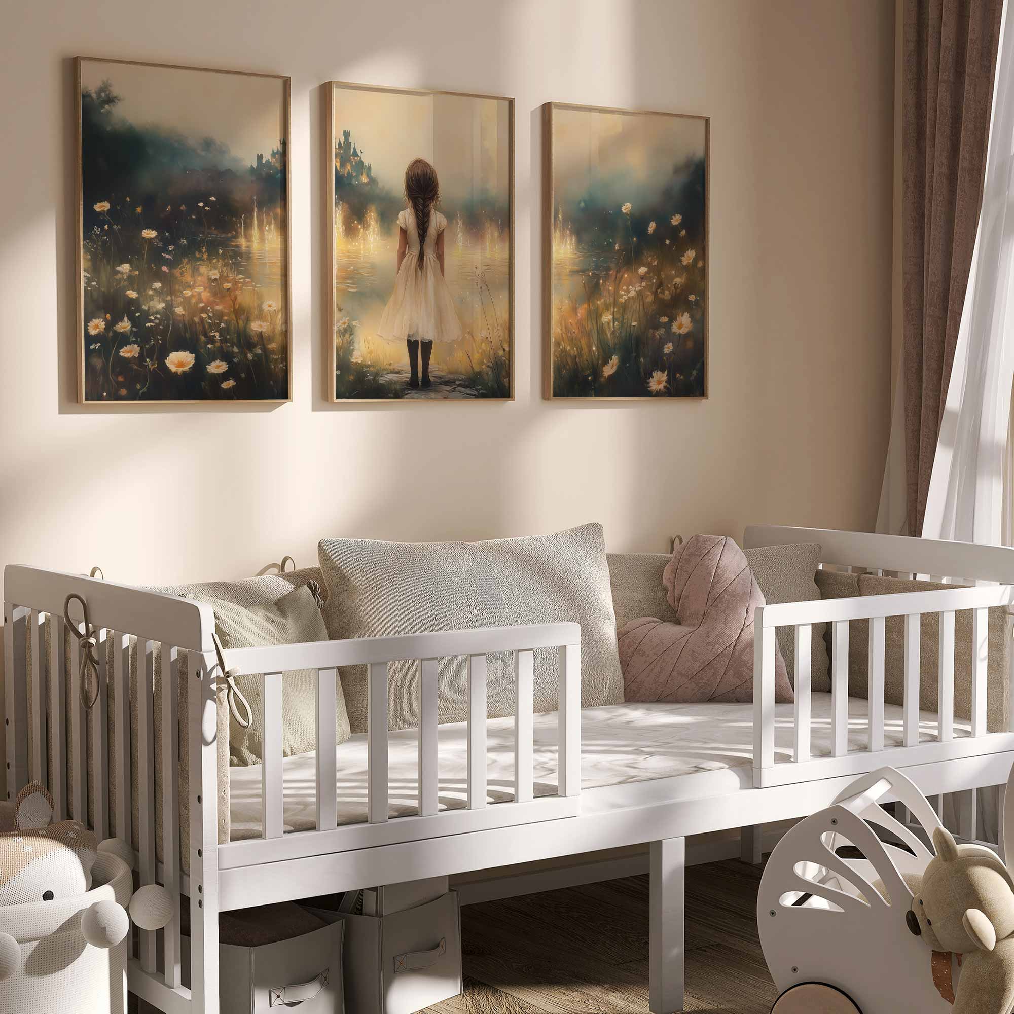 Jong Meisje in Dromerig Bloemenveld bij Kasteel