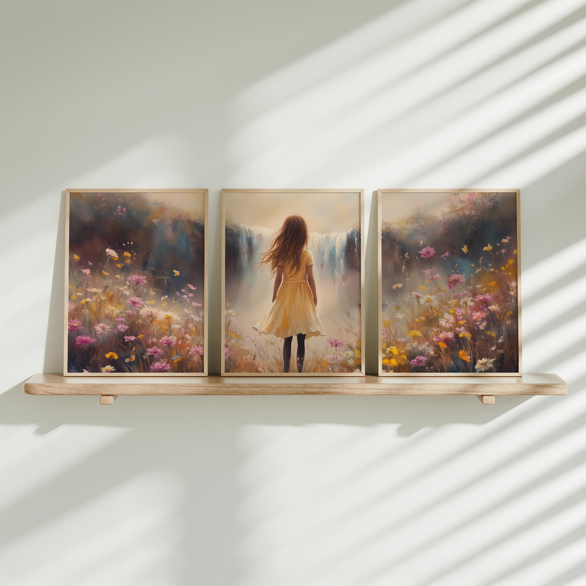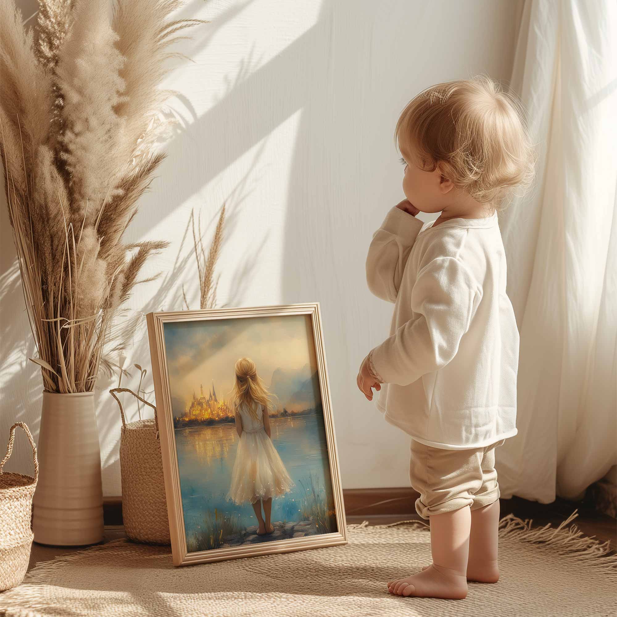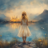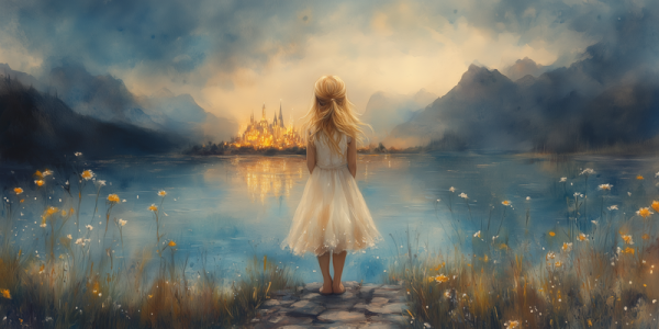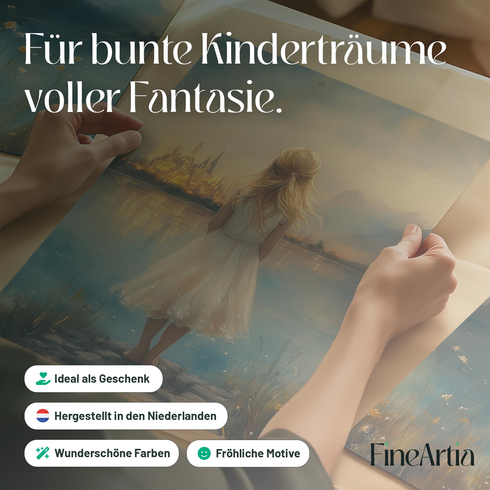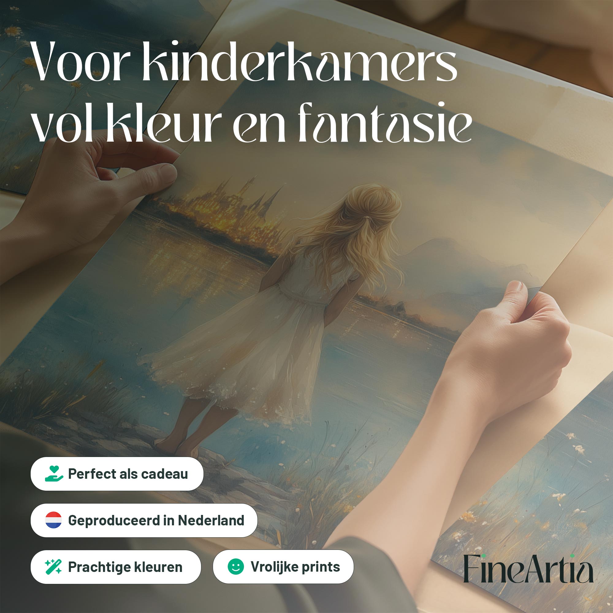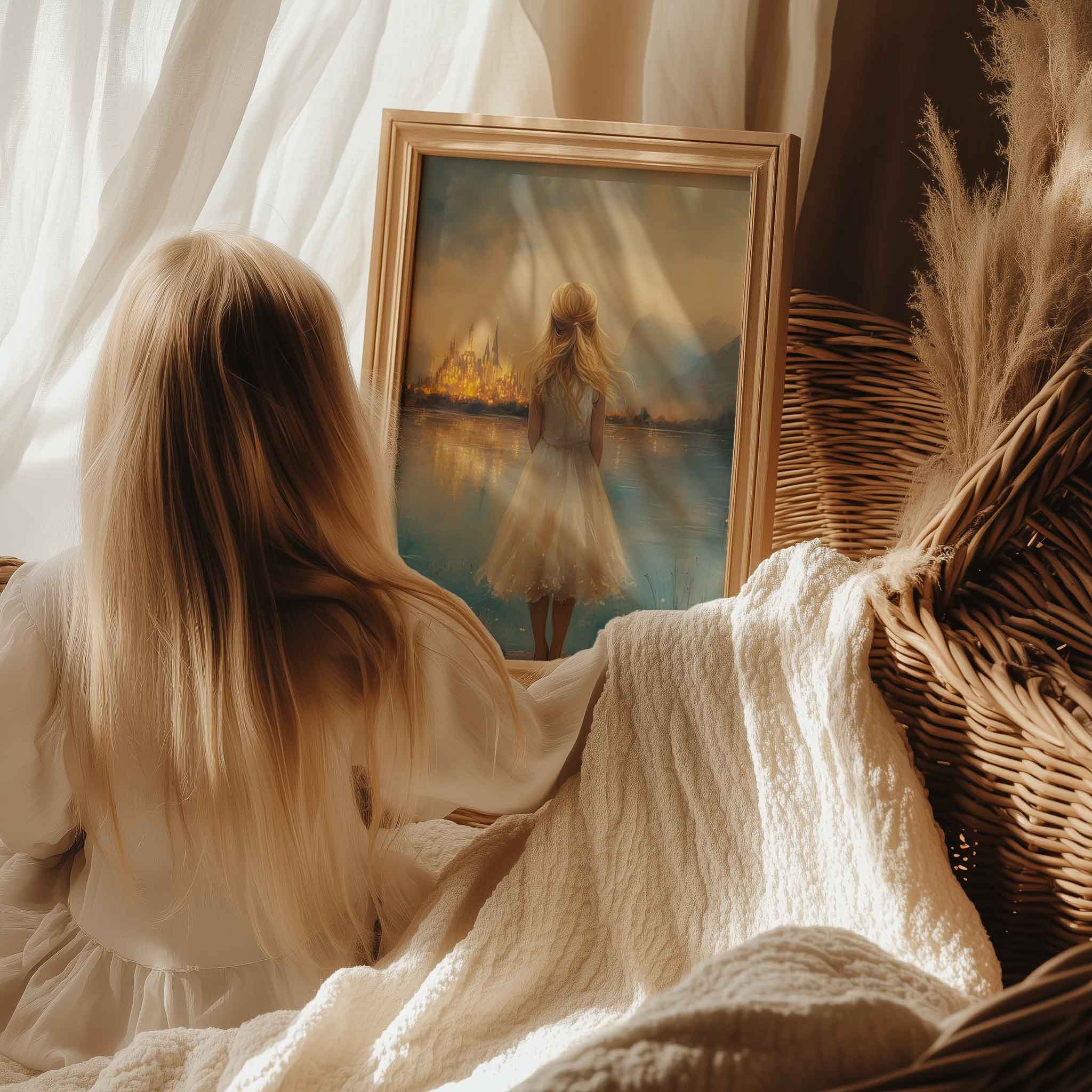 Jong Meisje in Dromerig Landschap – Zachte Sereniteit