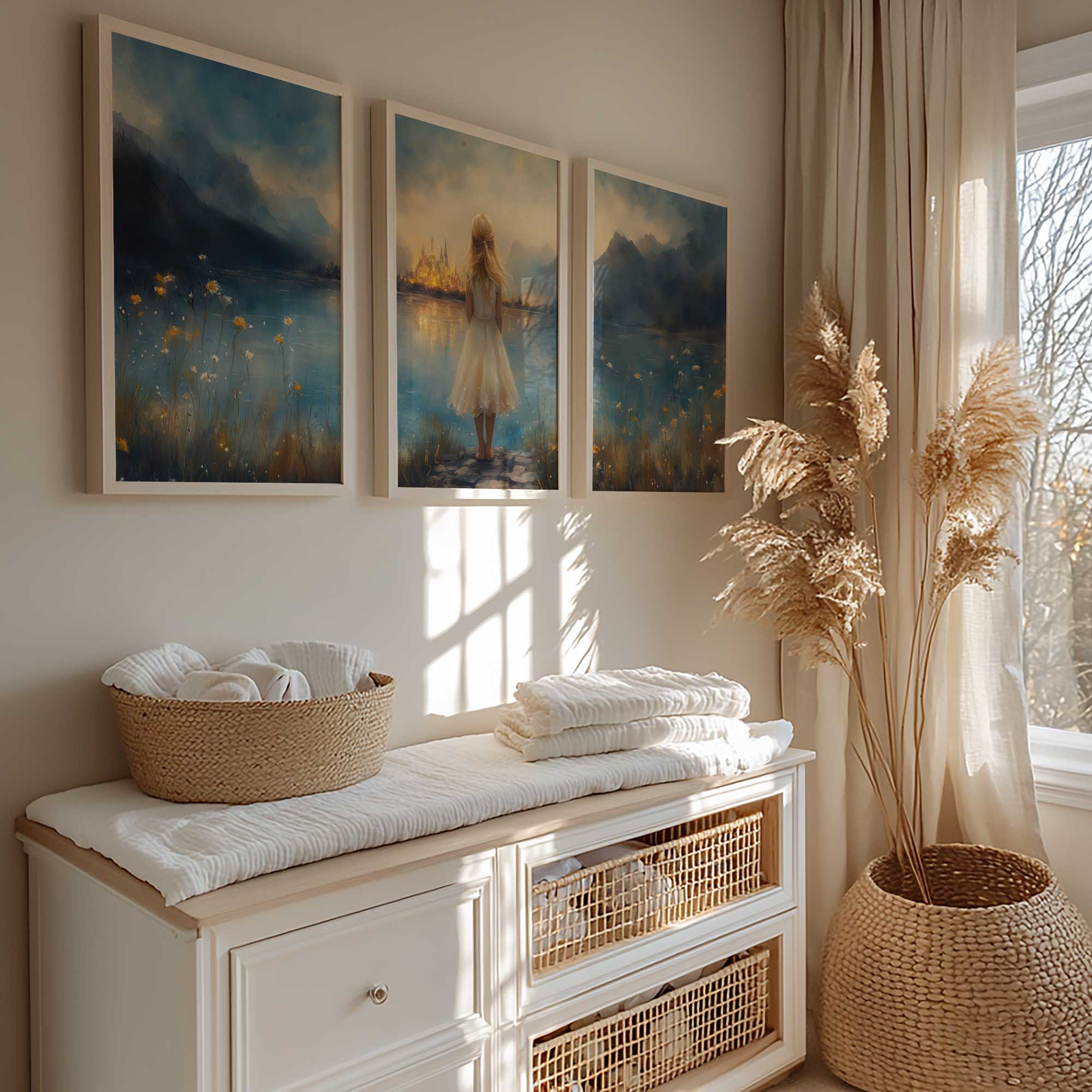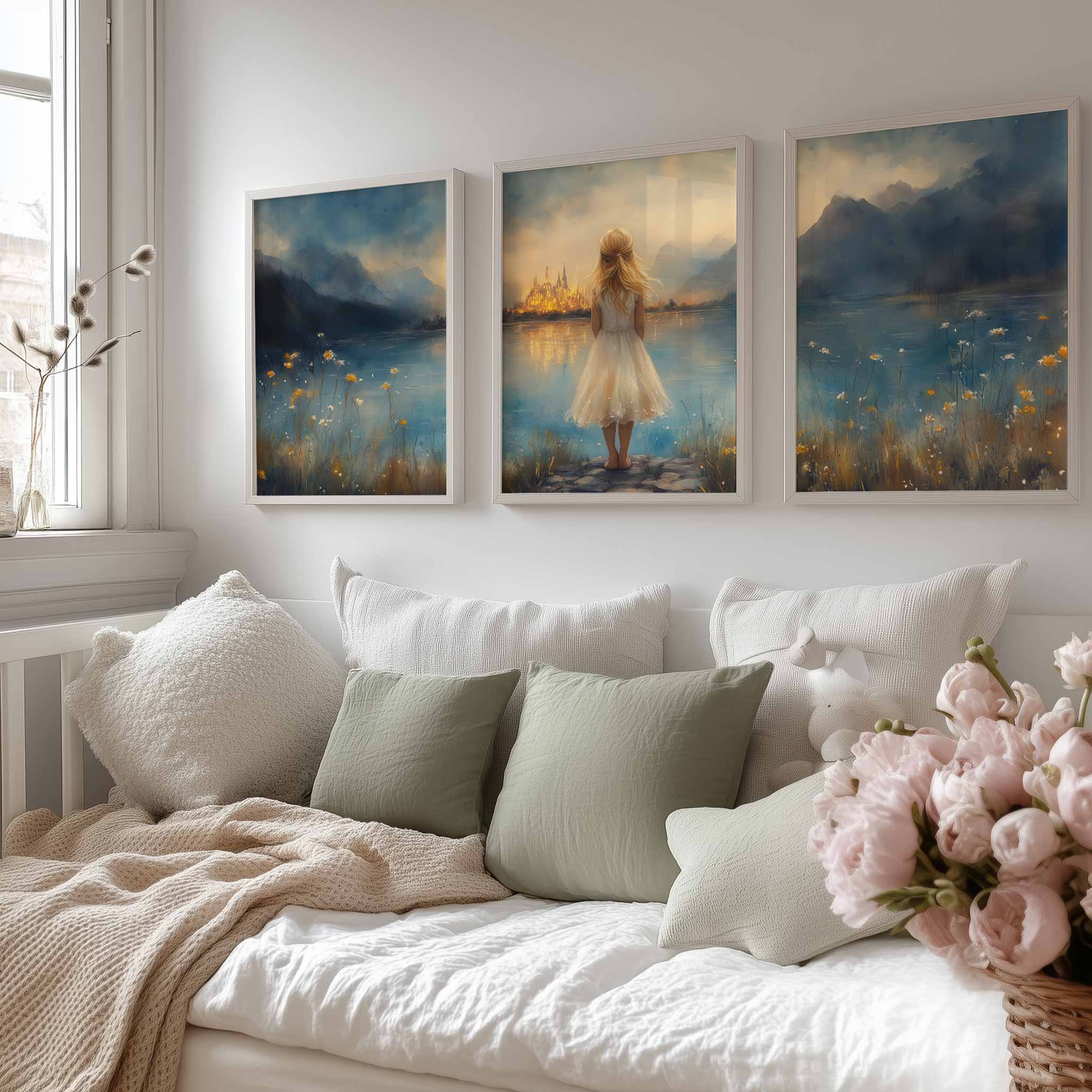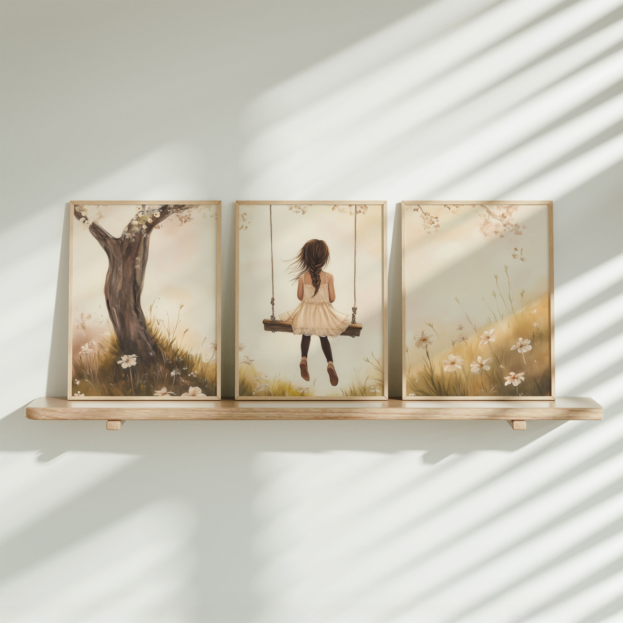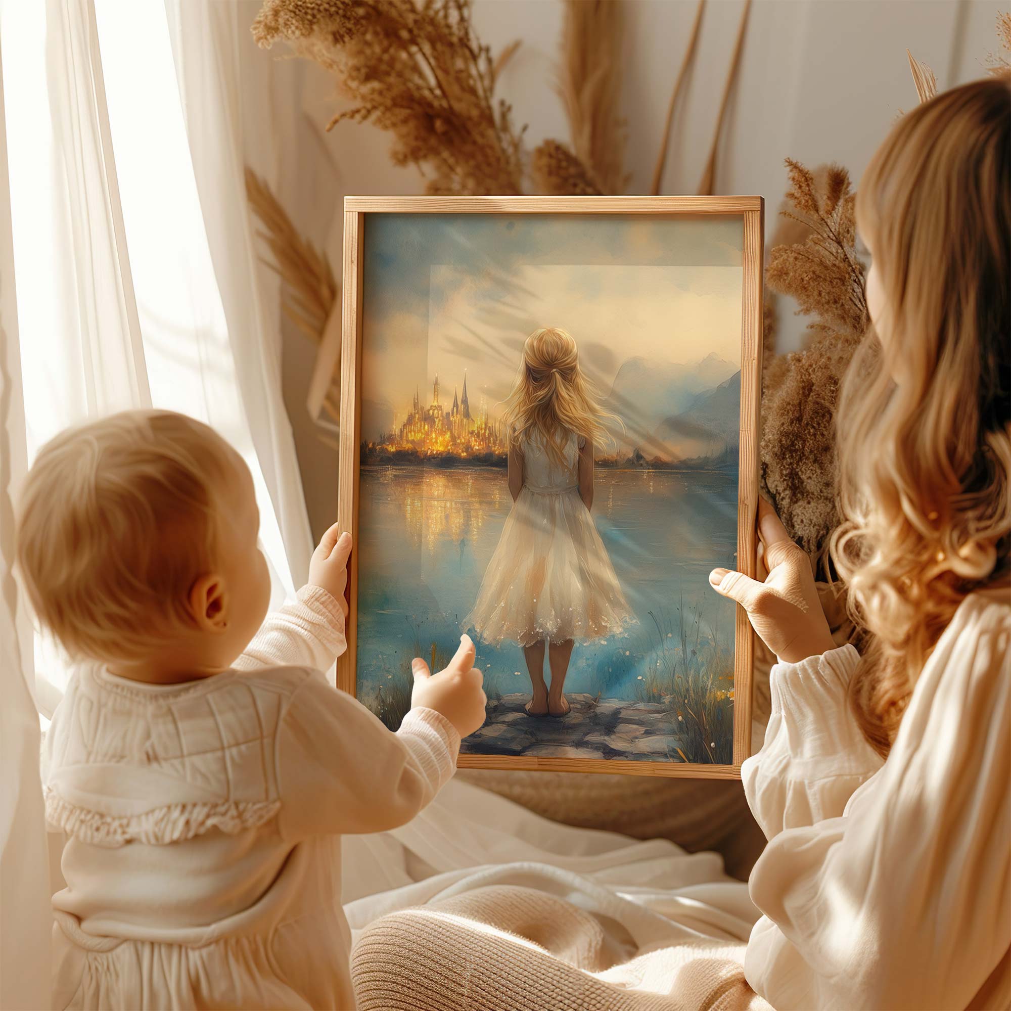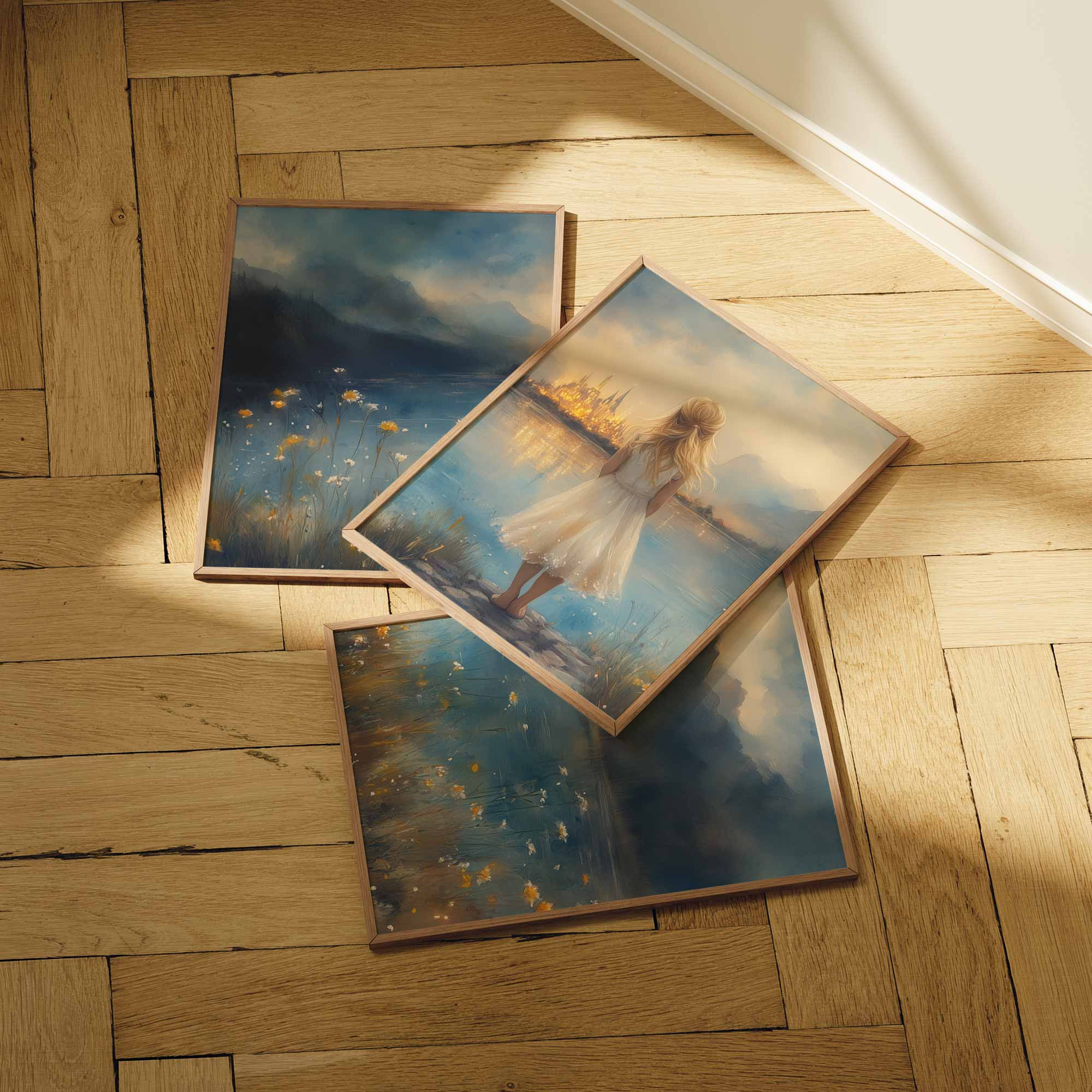 Jong Meisje in Dromerig Landschap – Zachte Sereniteit