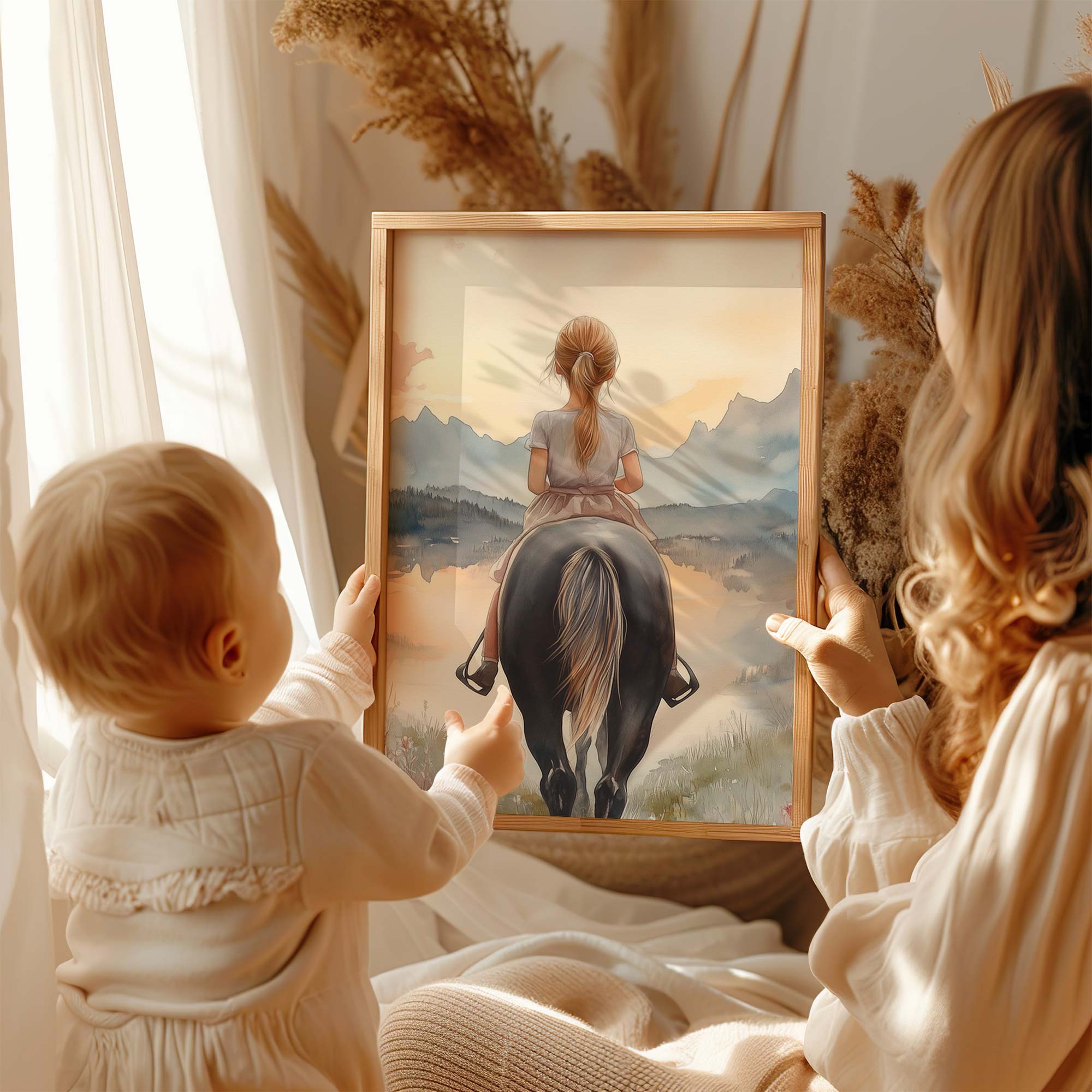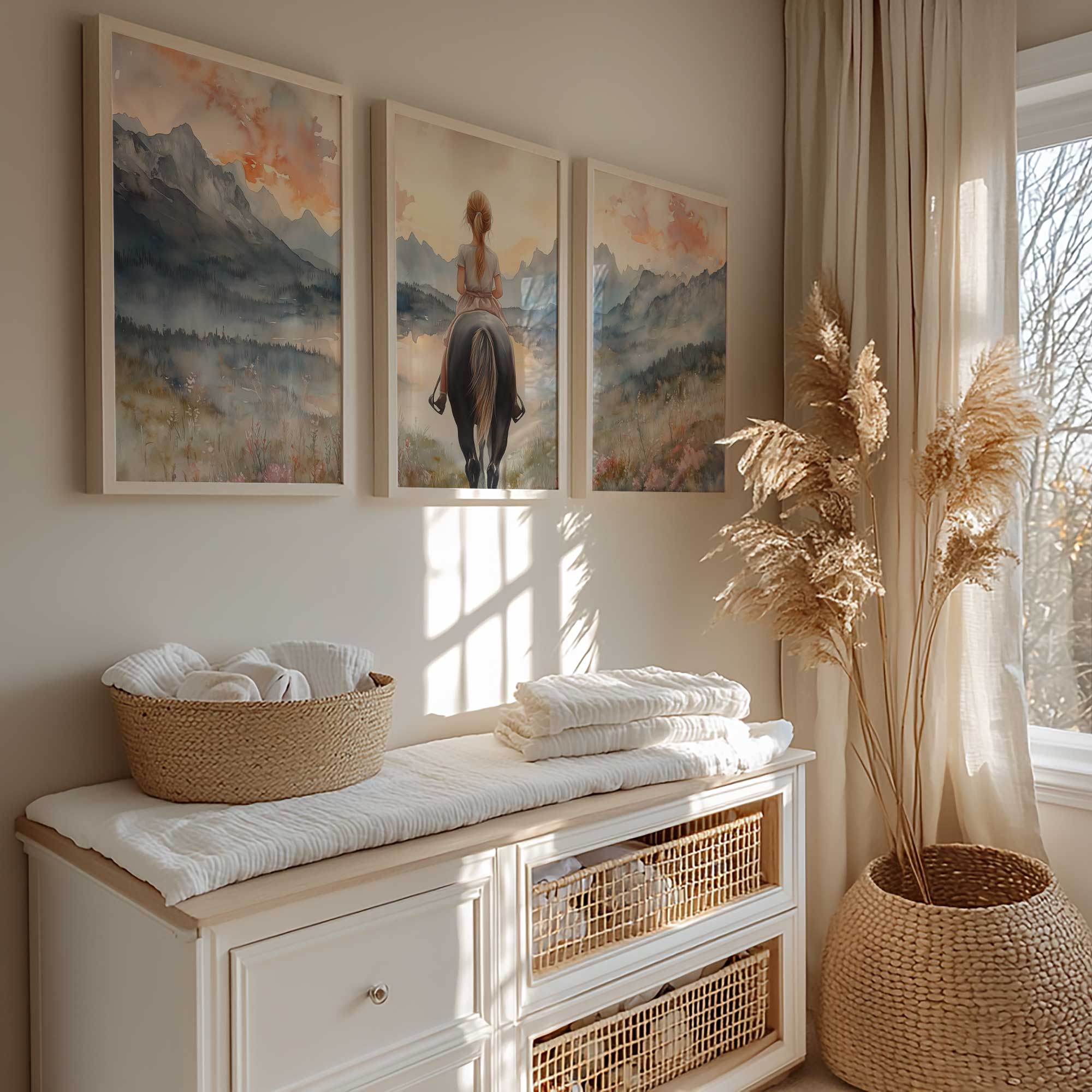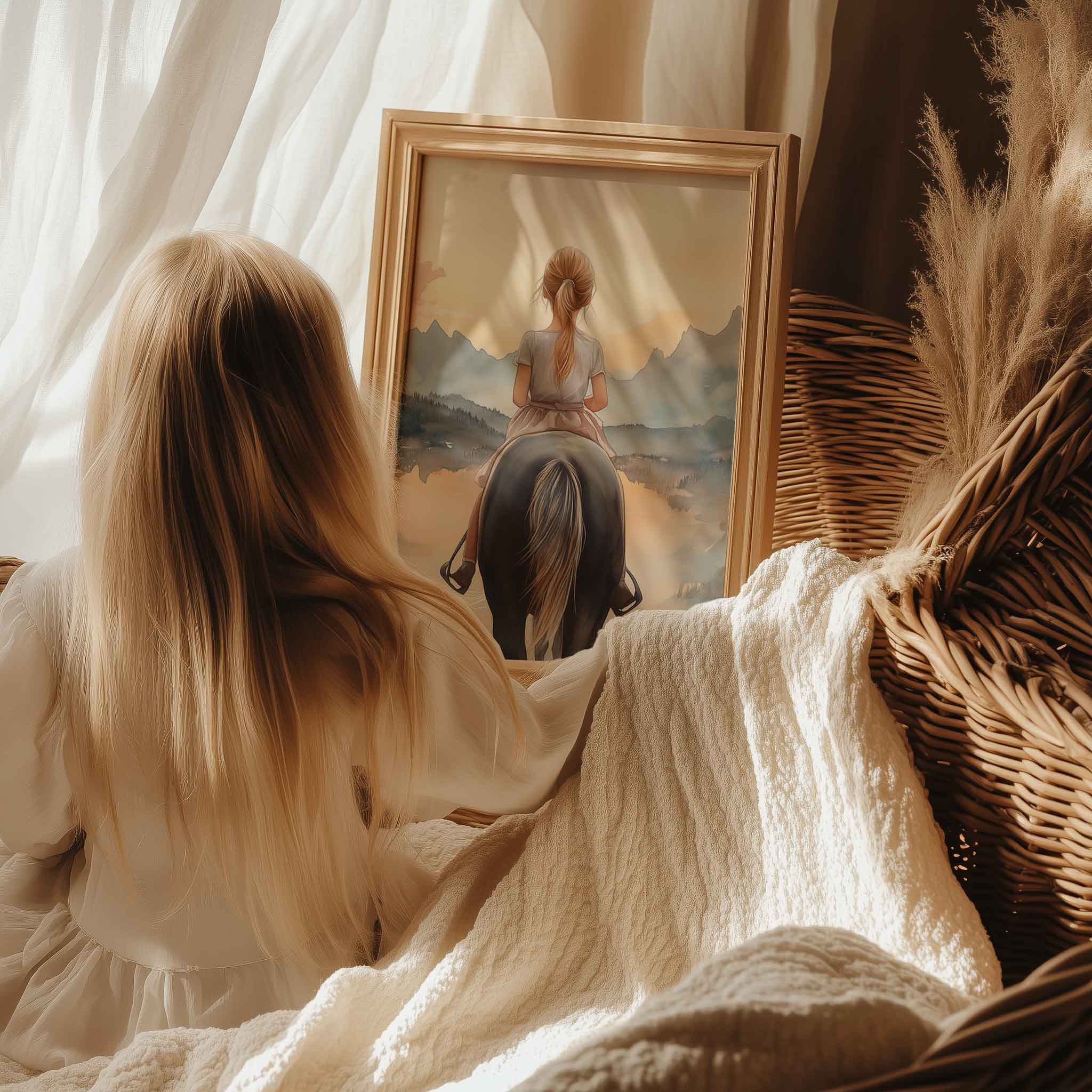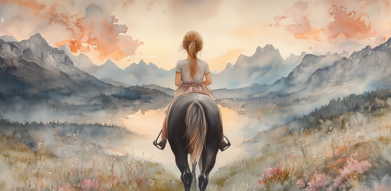 Jonge Amazone in Pastel Landschap