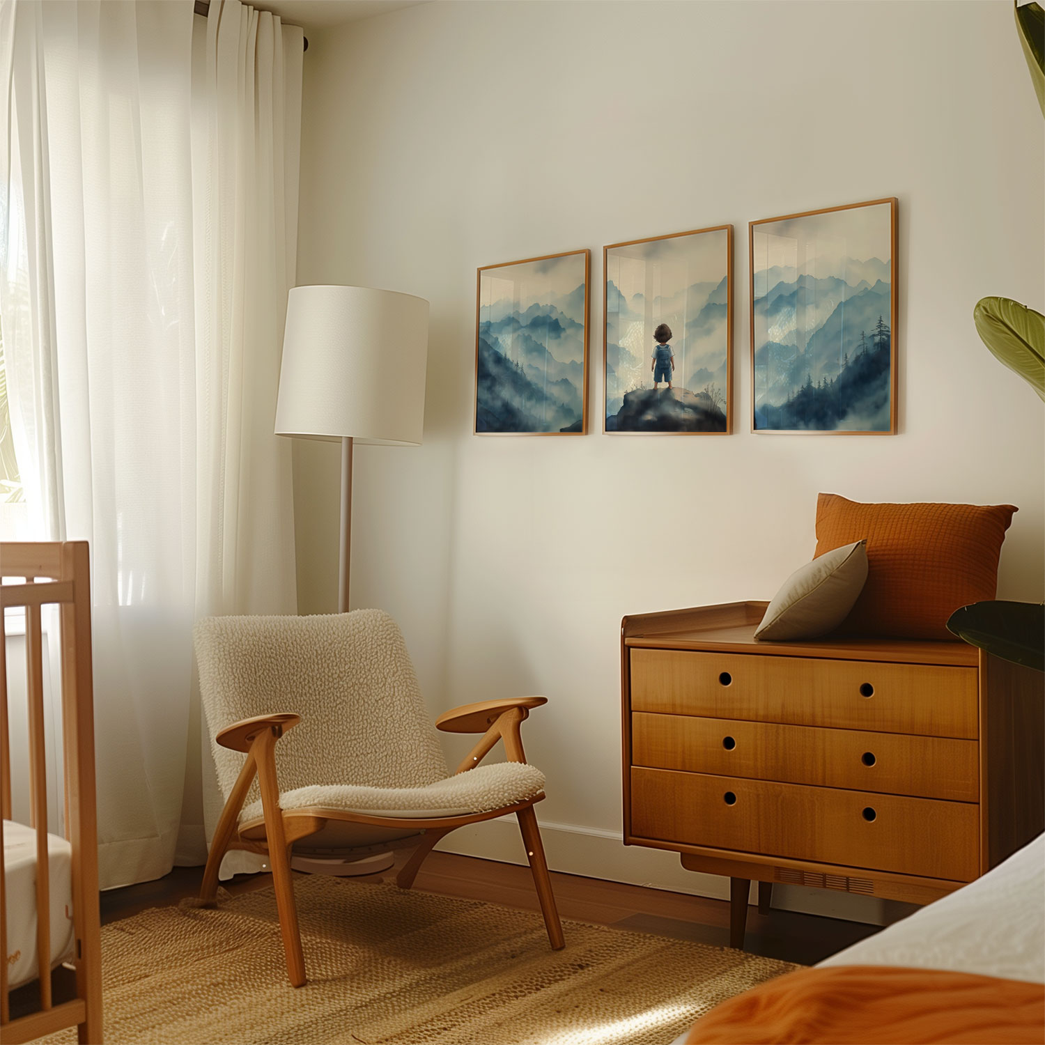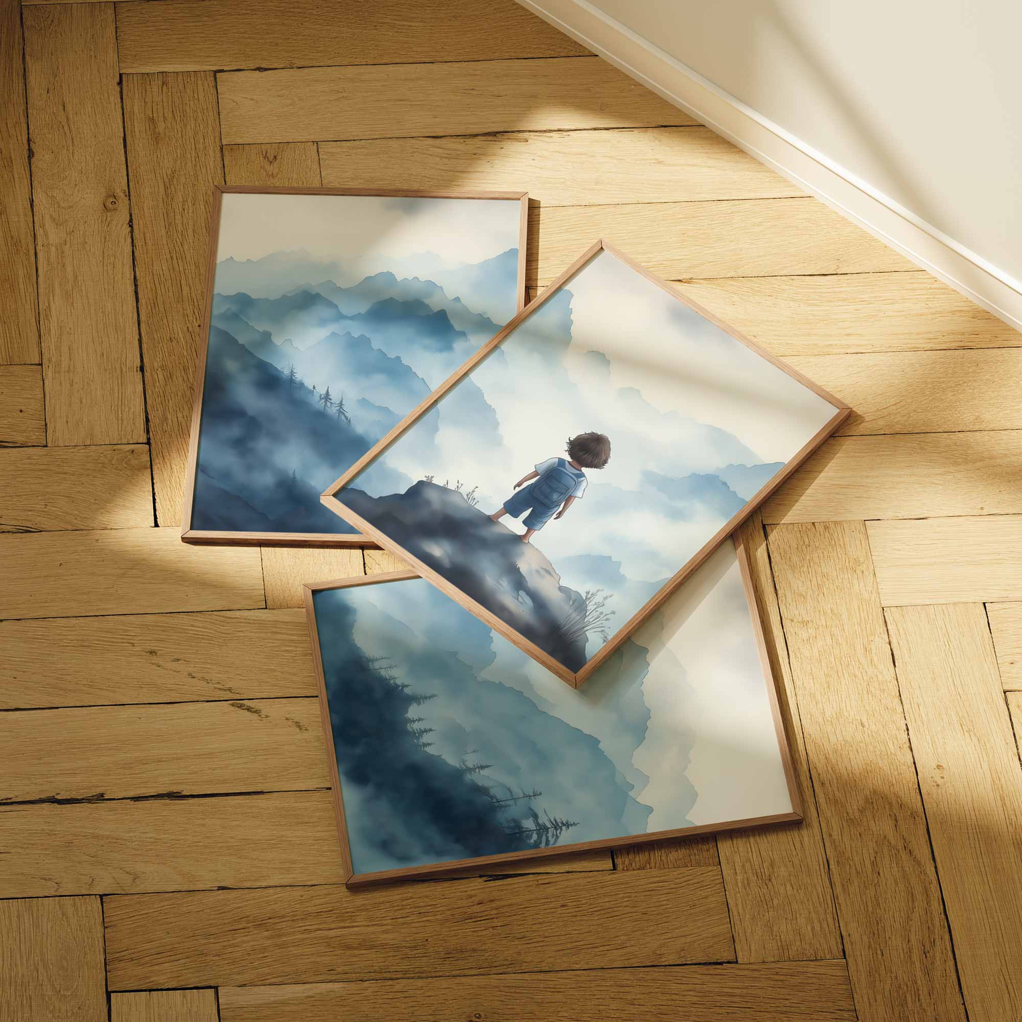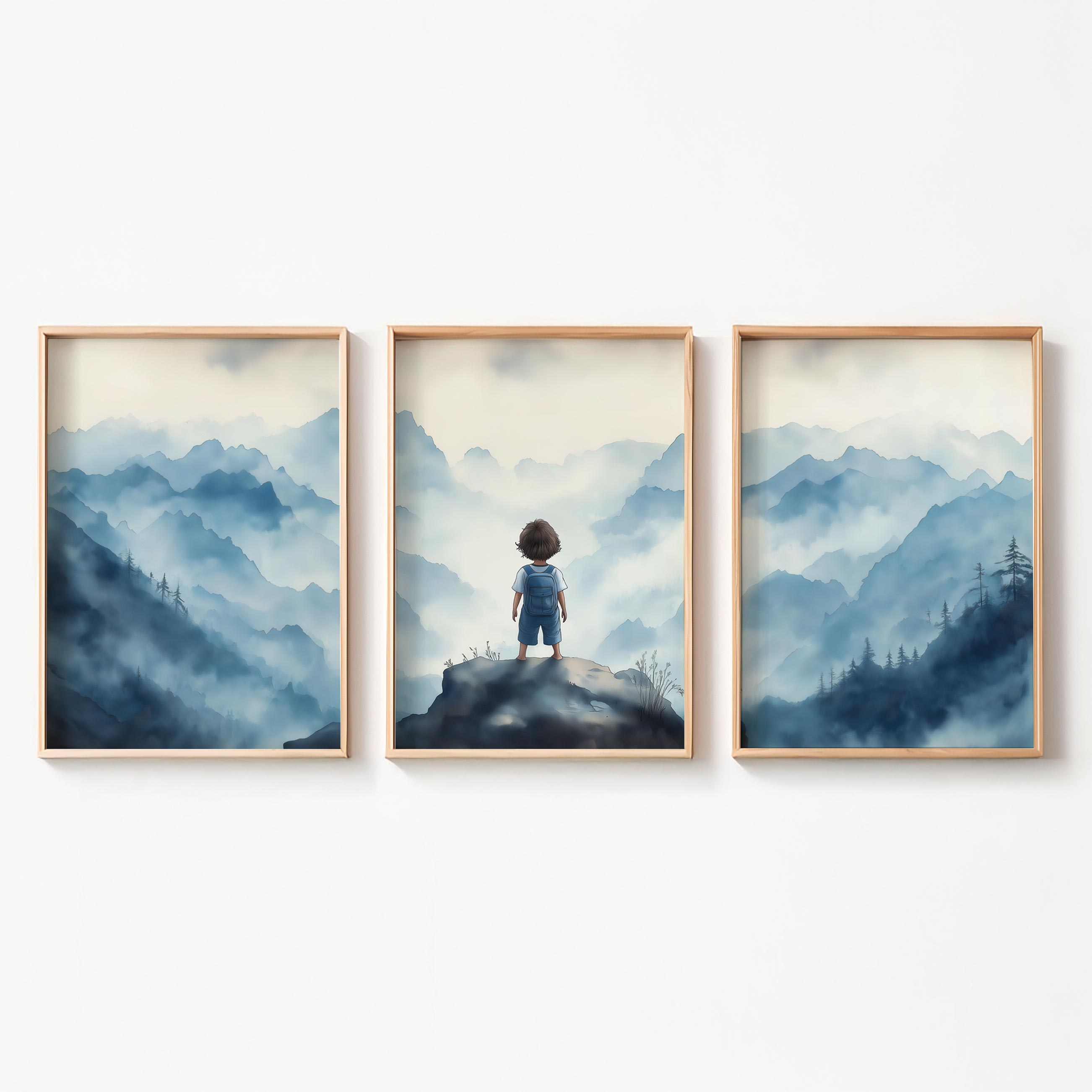 Jonge Avonturier in Mistige Bergen – Droom en Ontdek