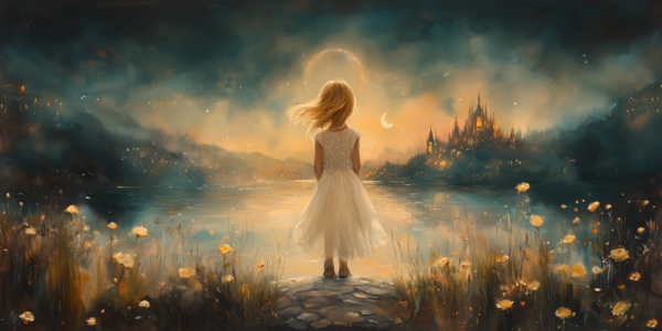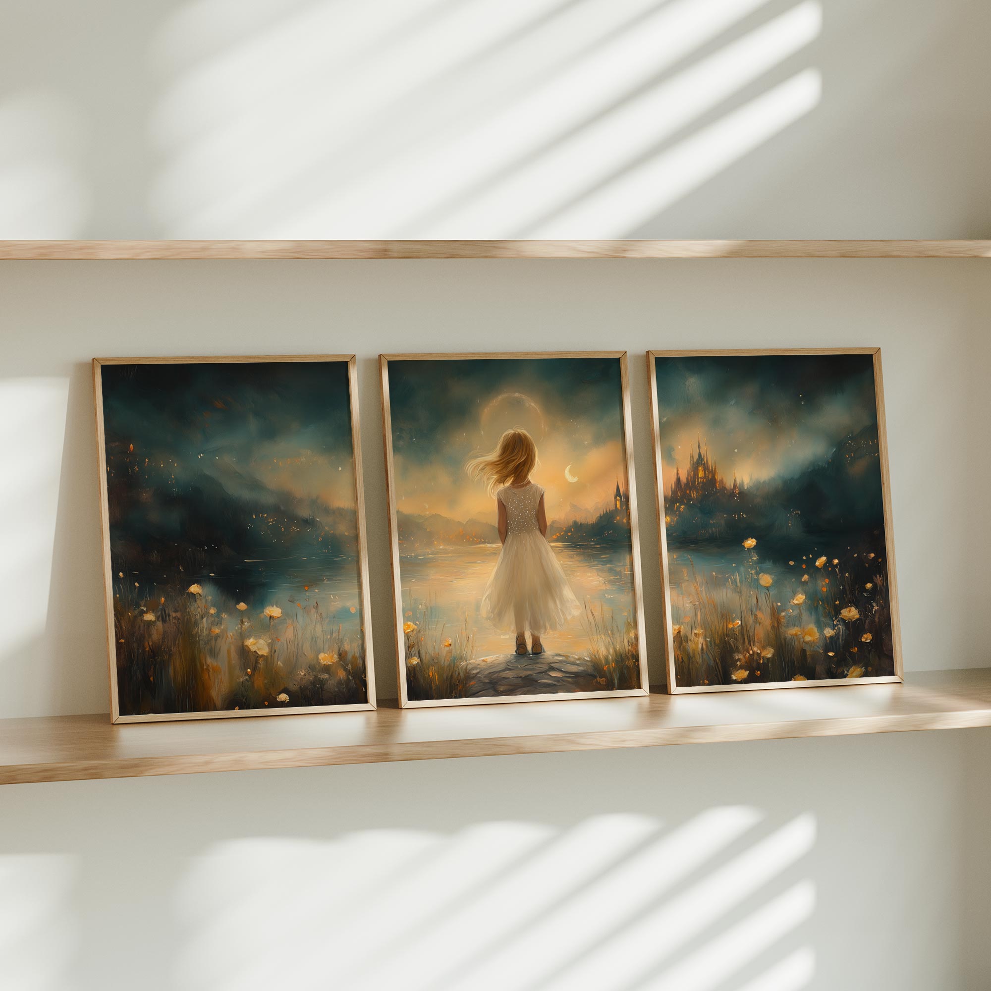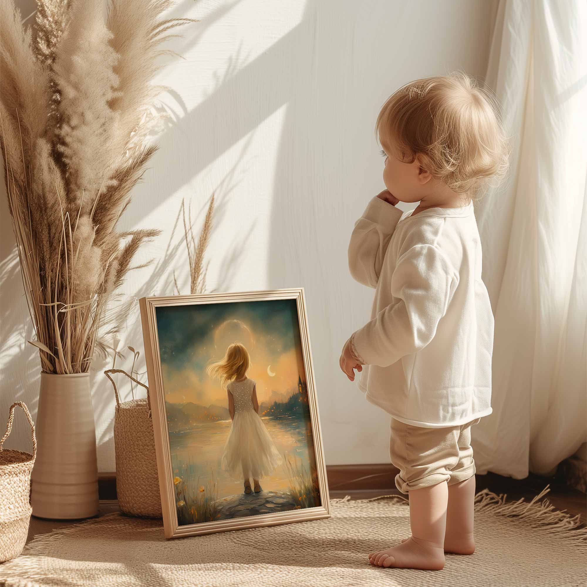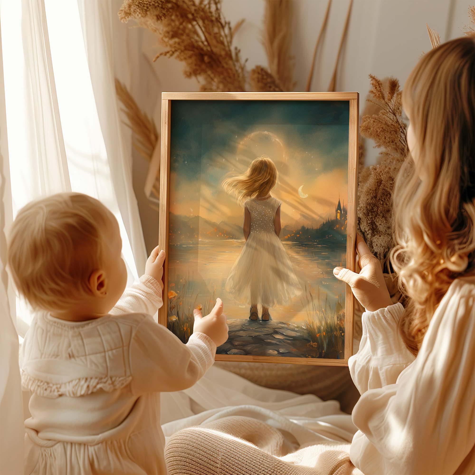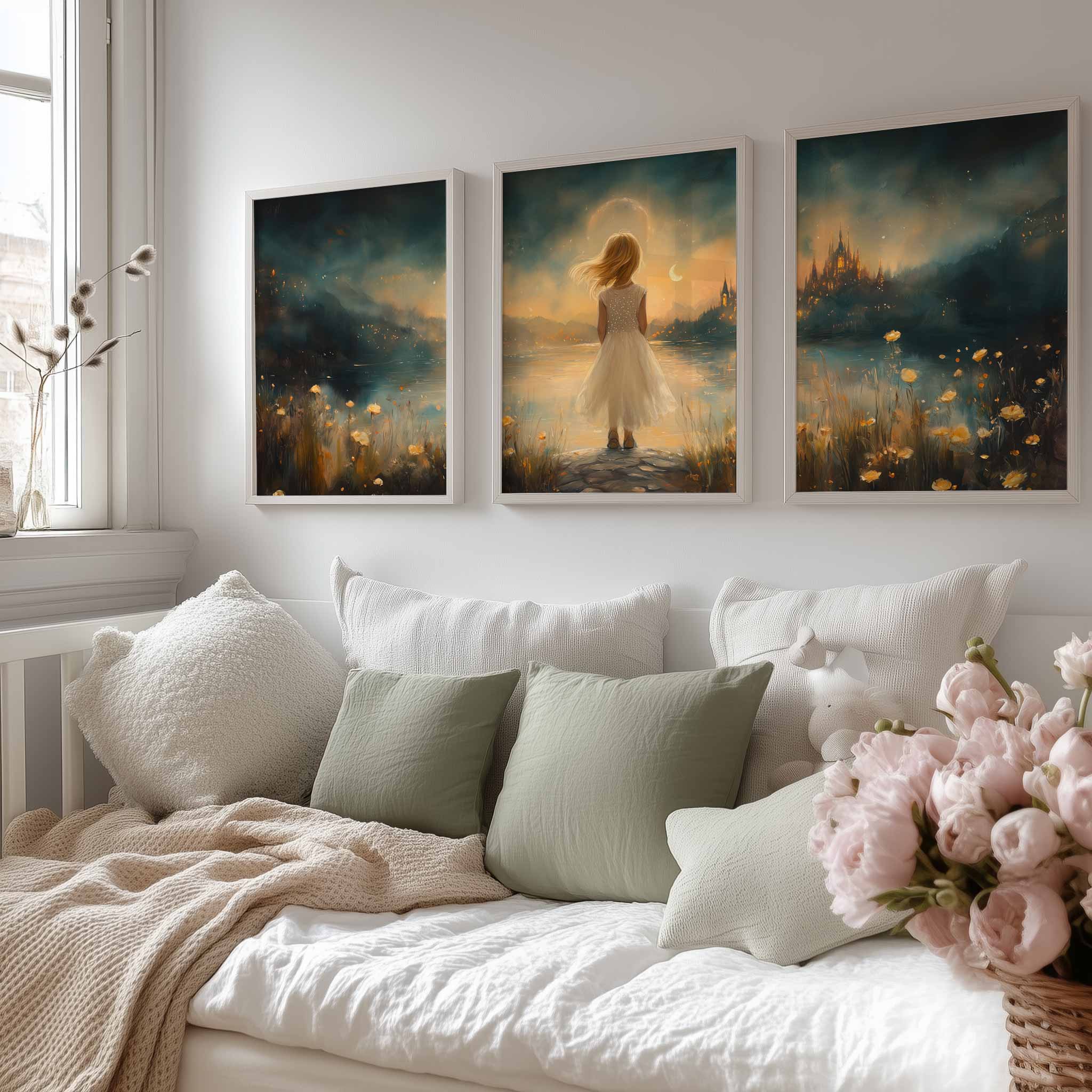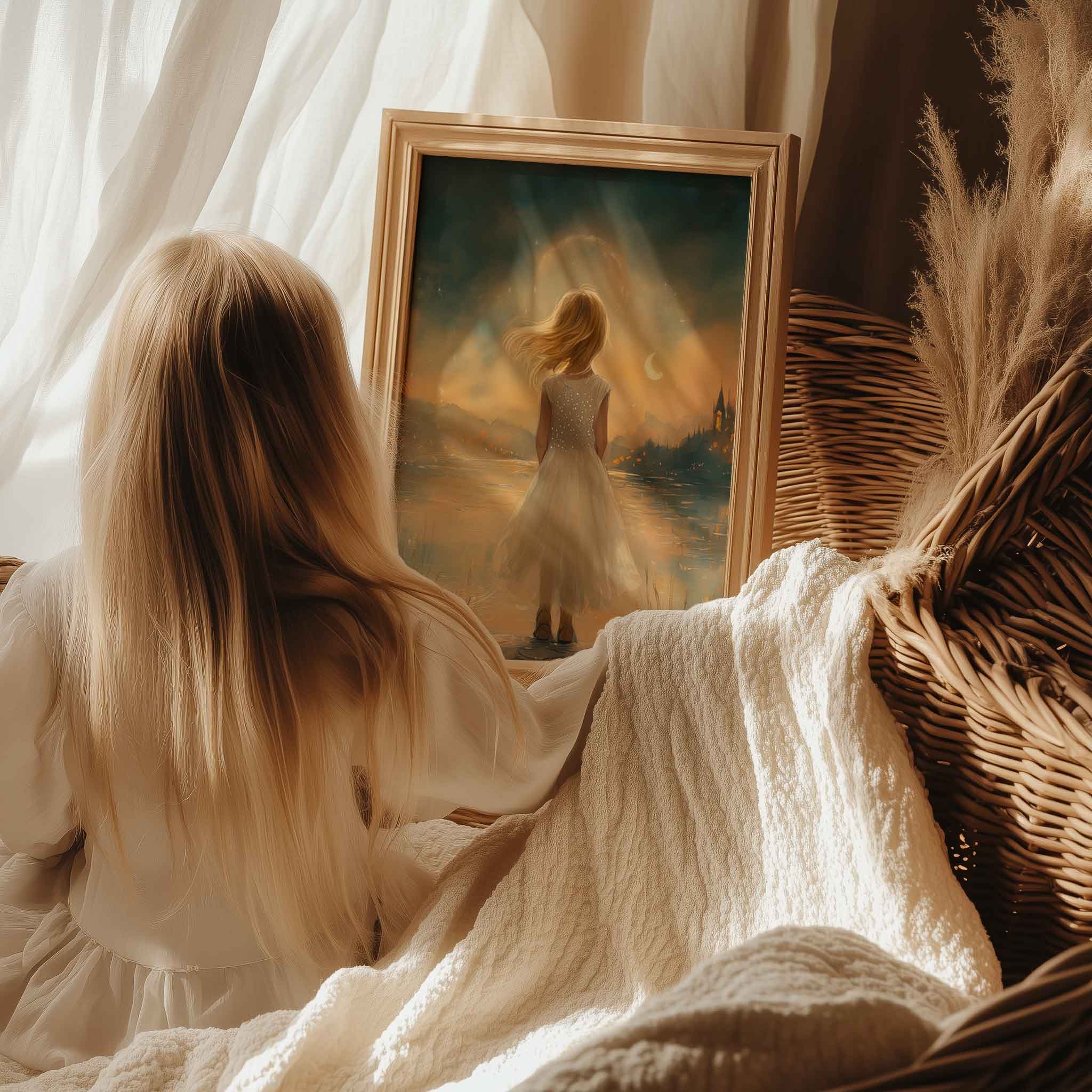 Terug naar collectie Posters Jonge Droomster bij Betoverend Kasteellandschap