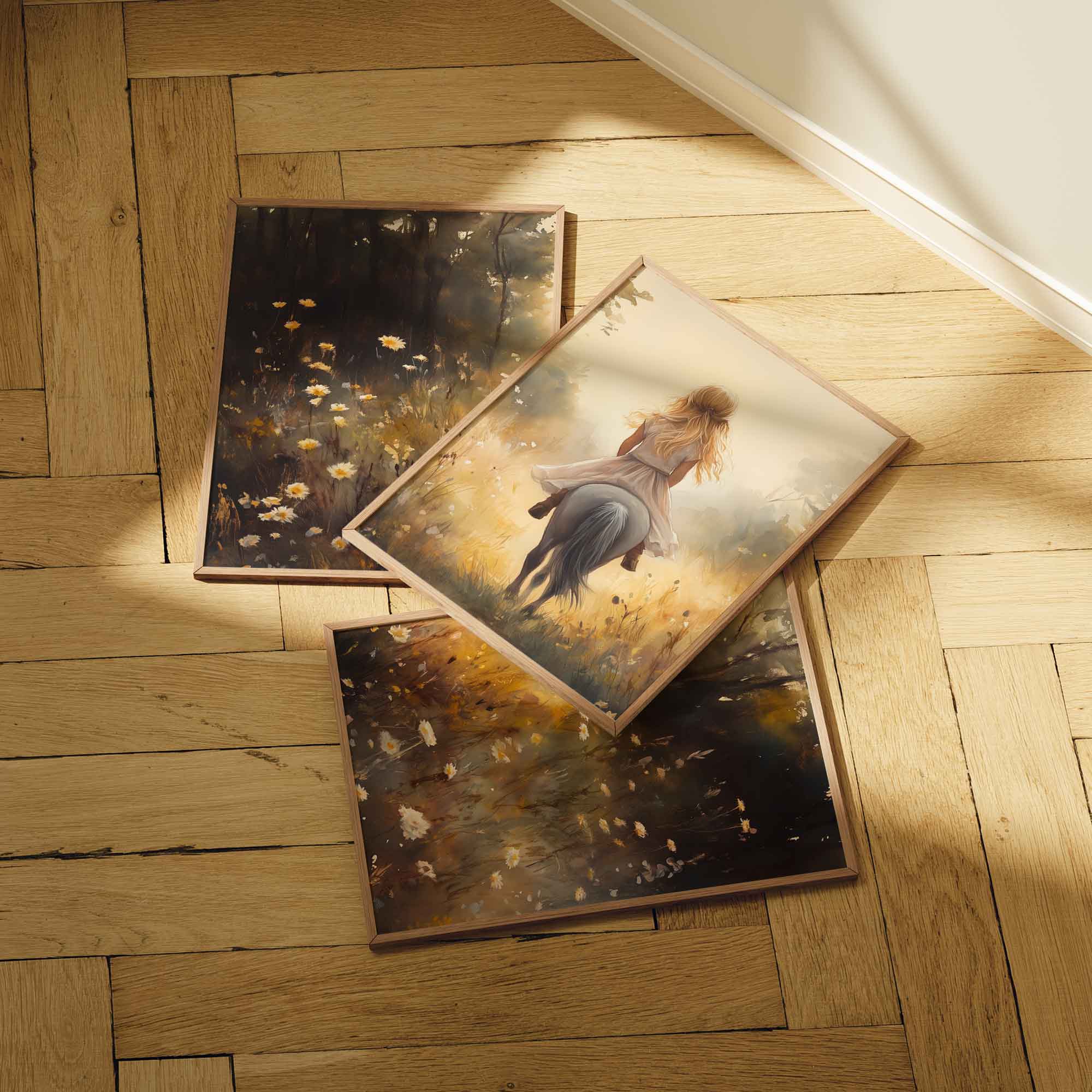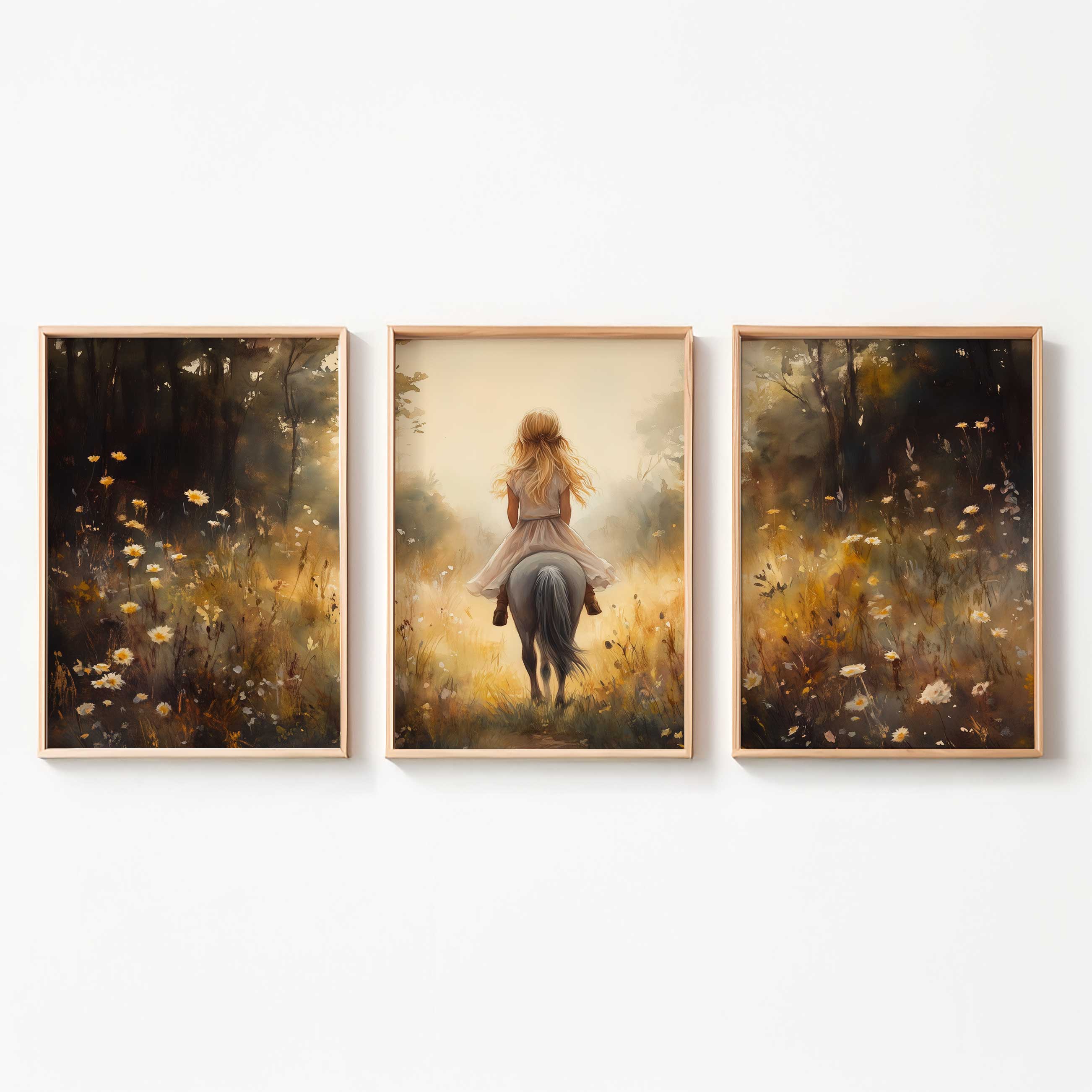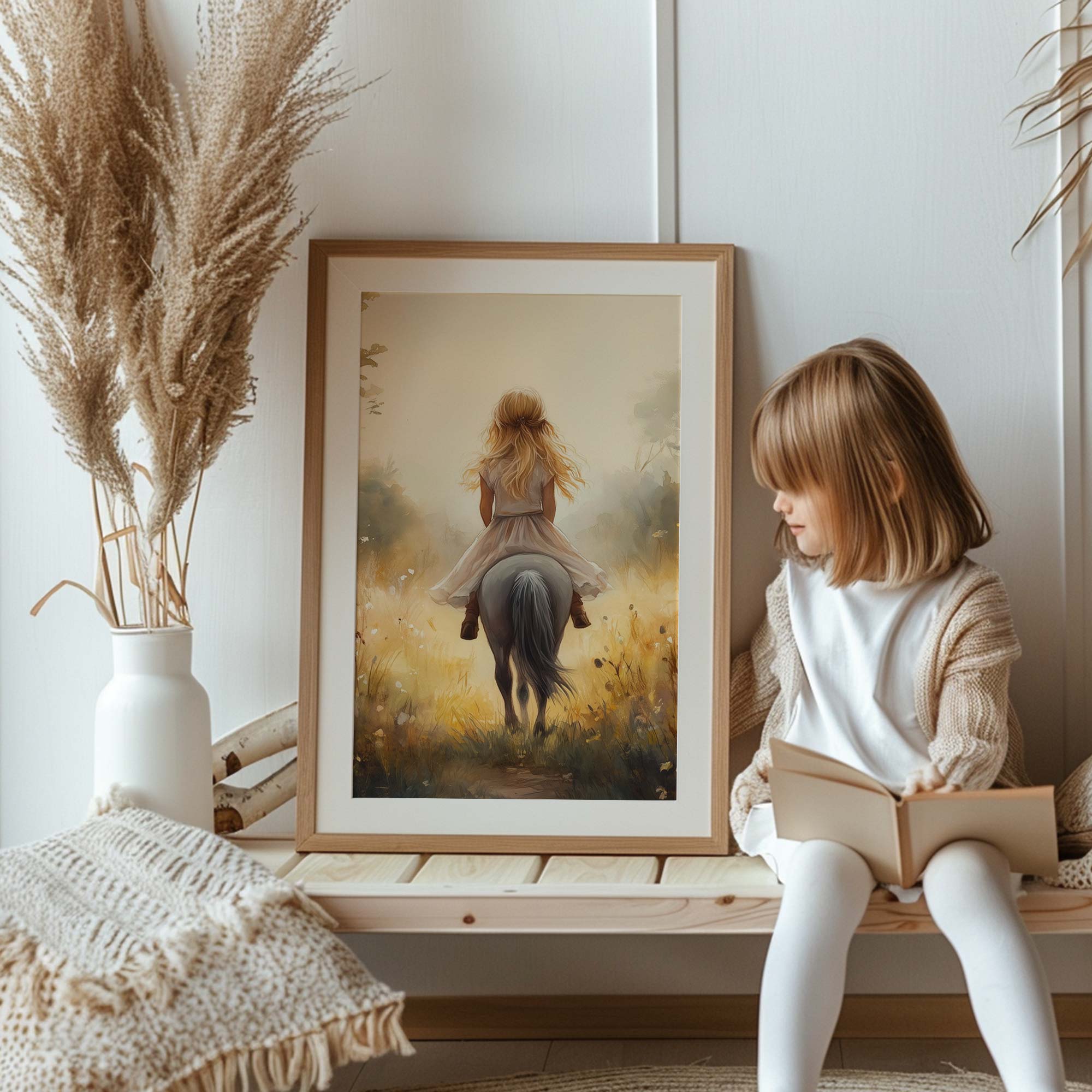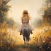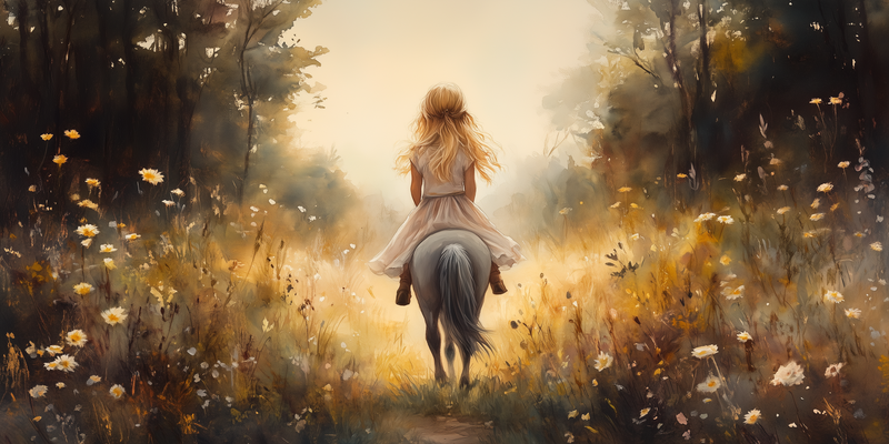 Jonge Meid op Paard in Bloemenveld – Pastel Schilderij