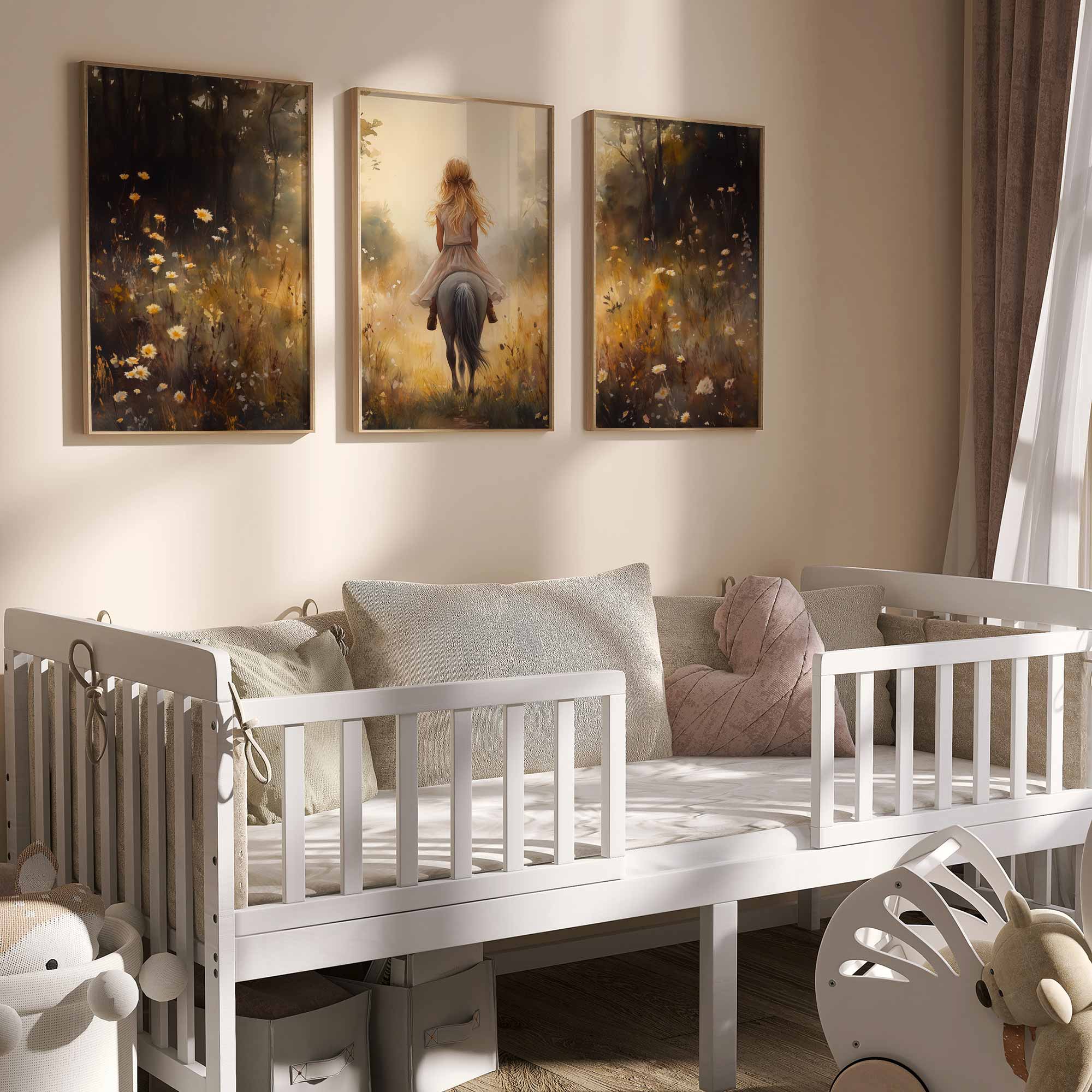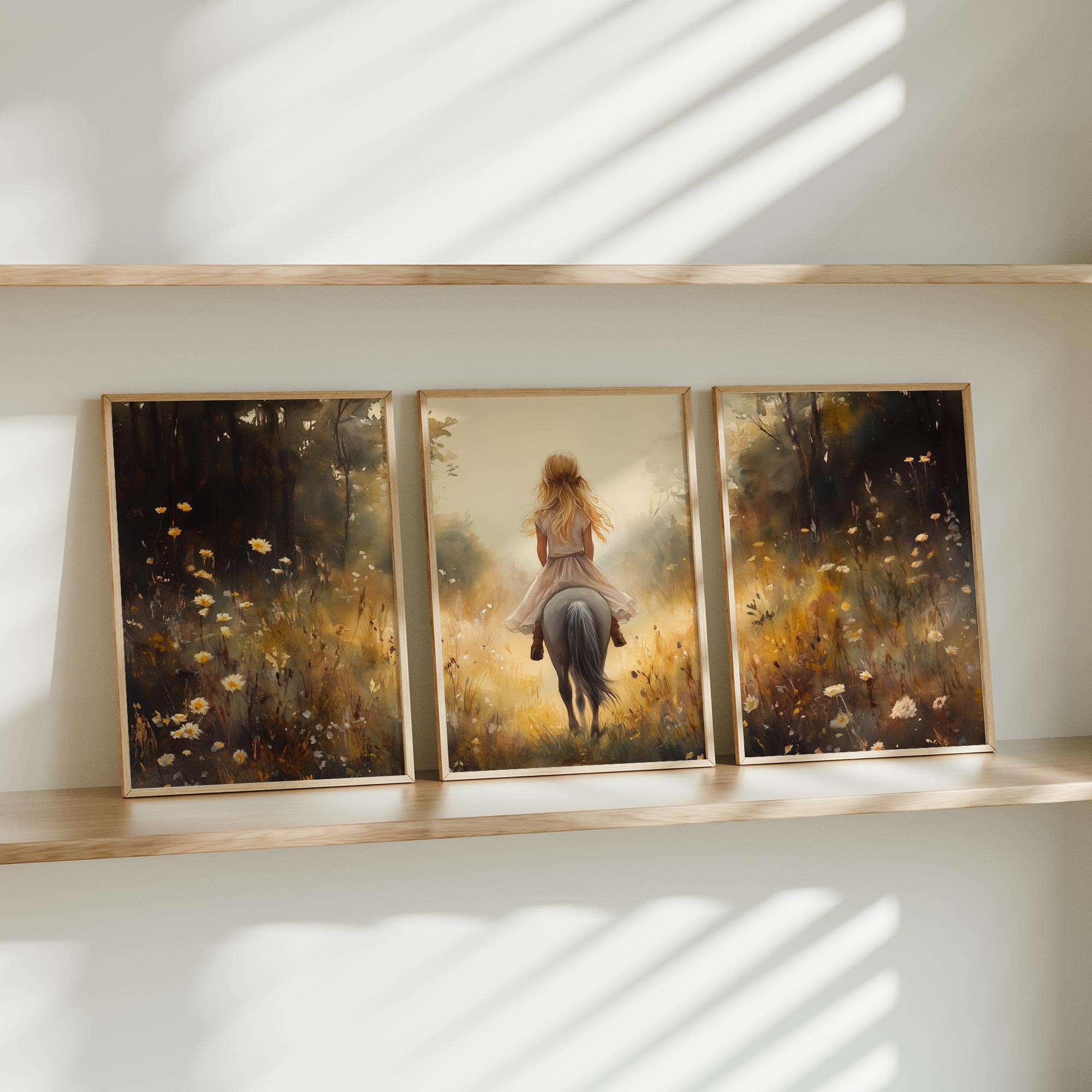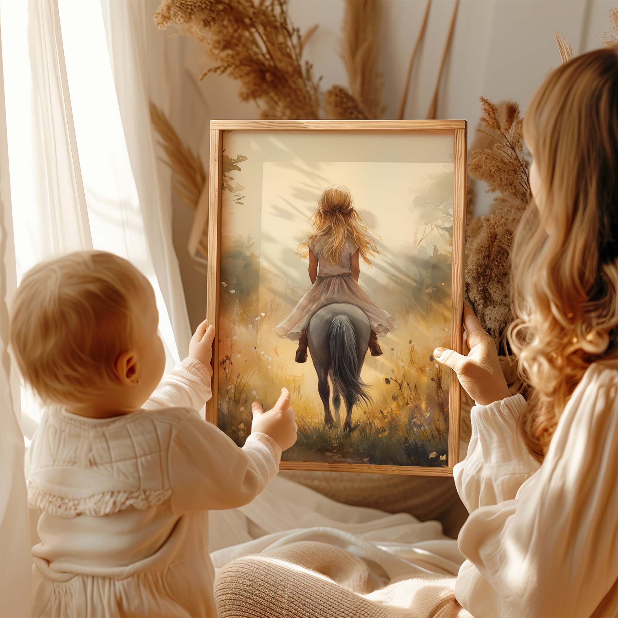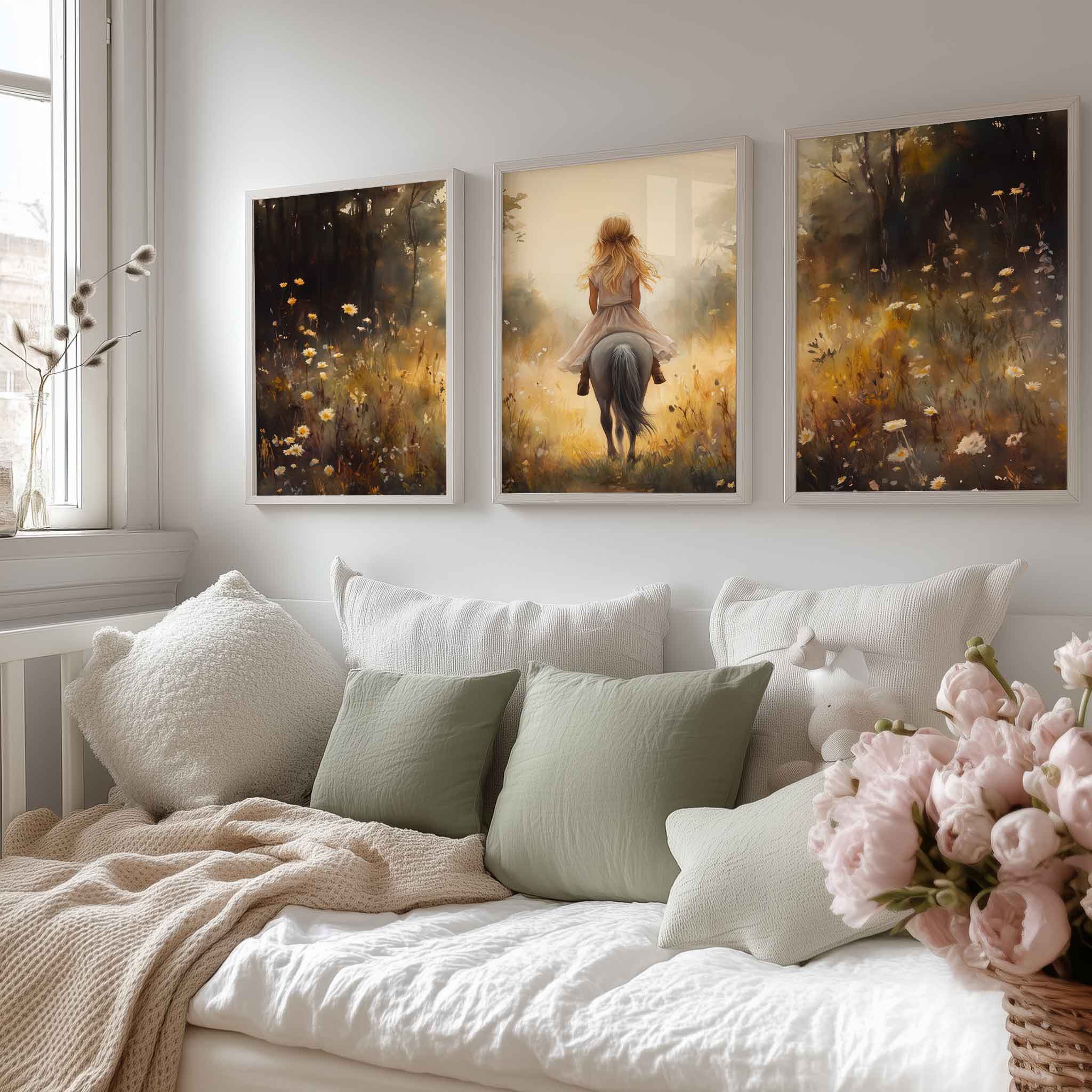 Jonge Meid op Paard in Bloemenveld – Pastel Schilderij
