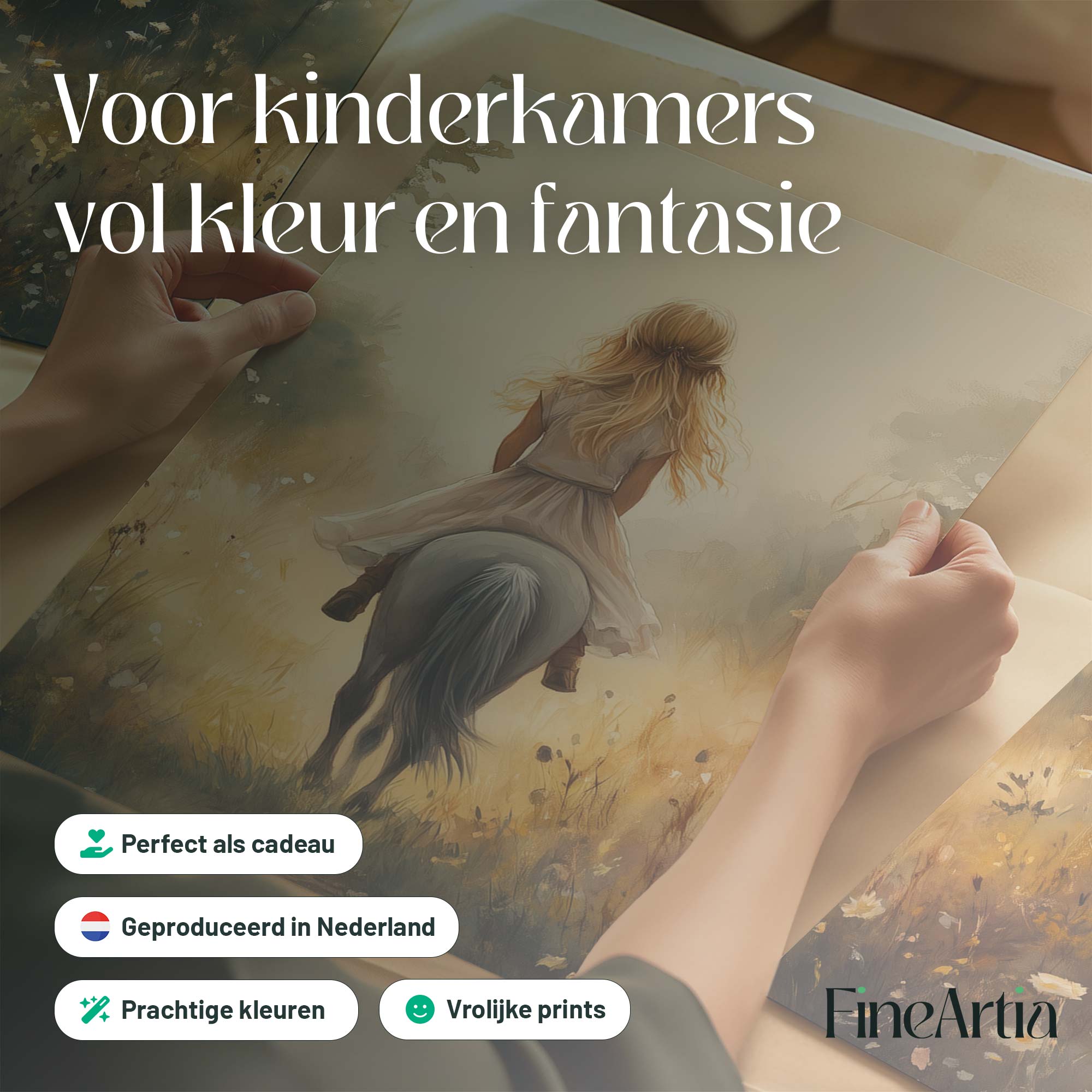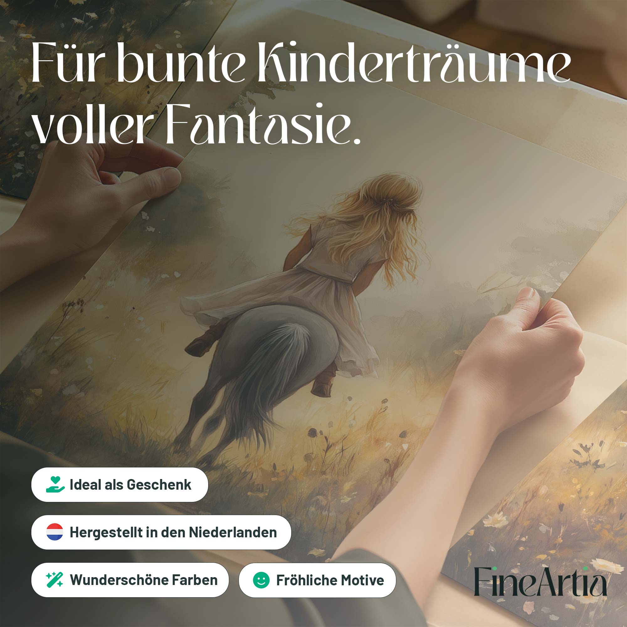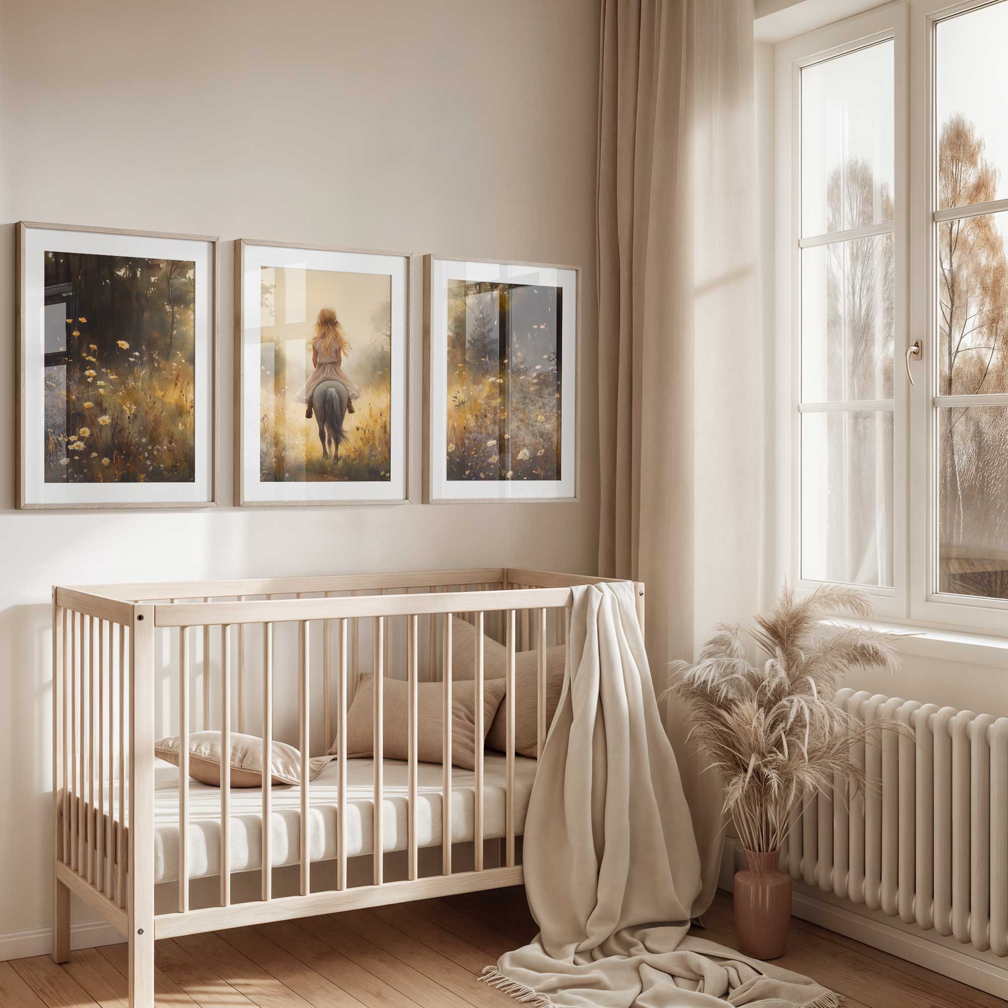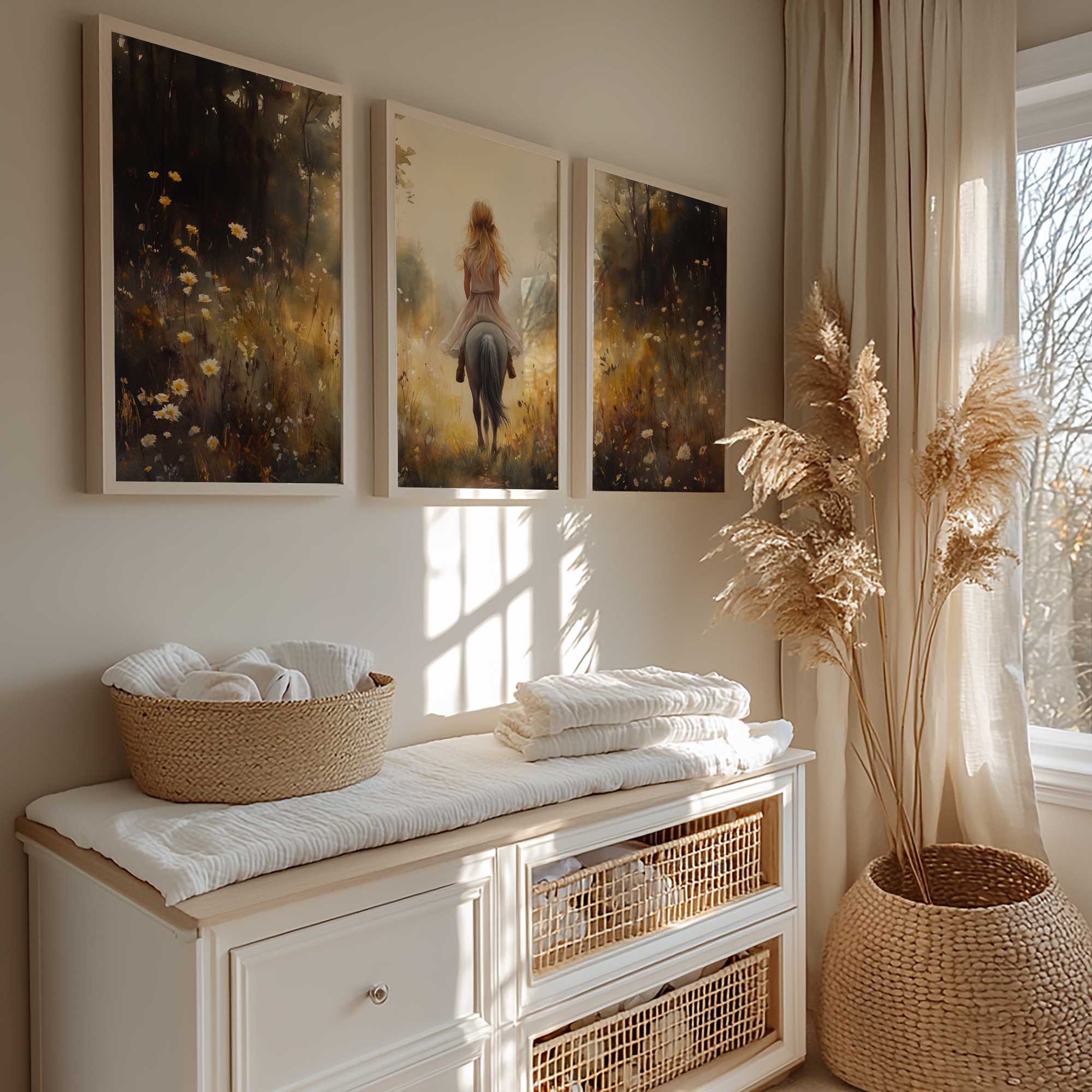 Jonge Meid op Paard in Bloemenveld – Pastel Schilderij