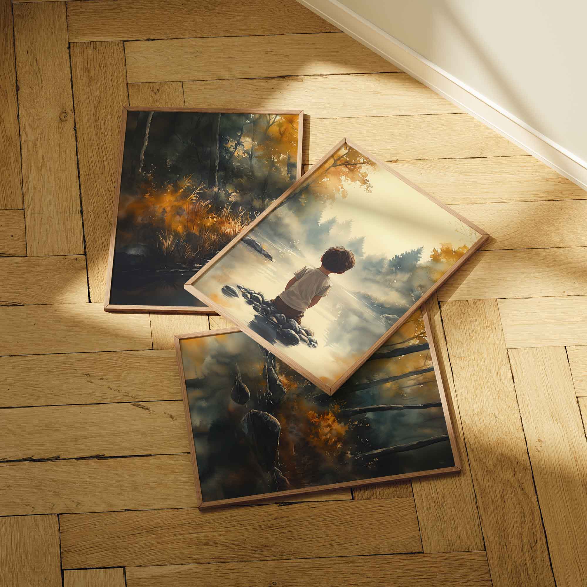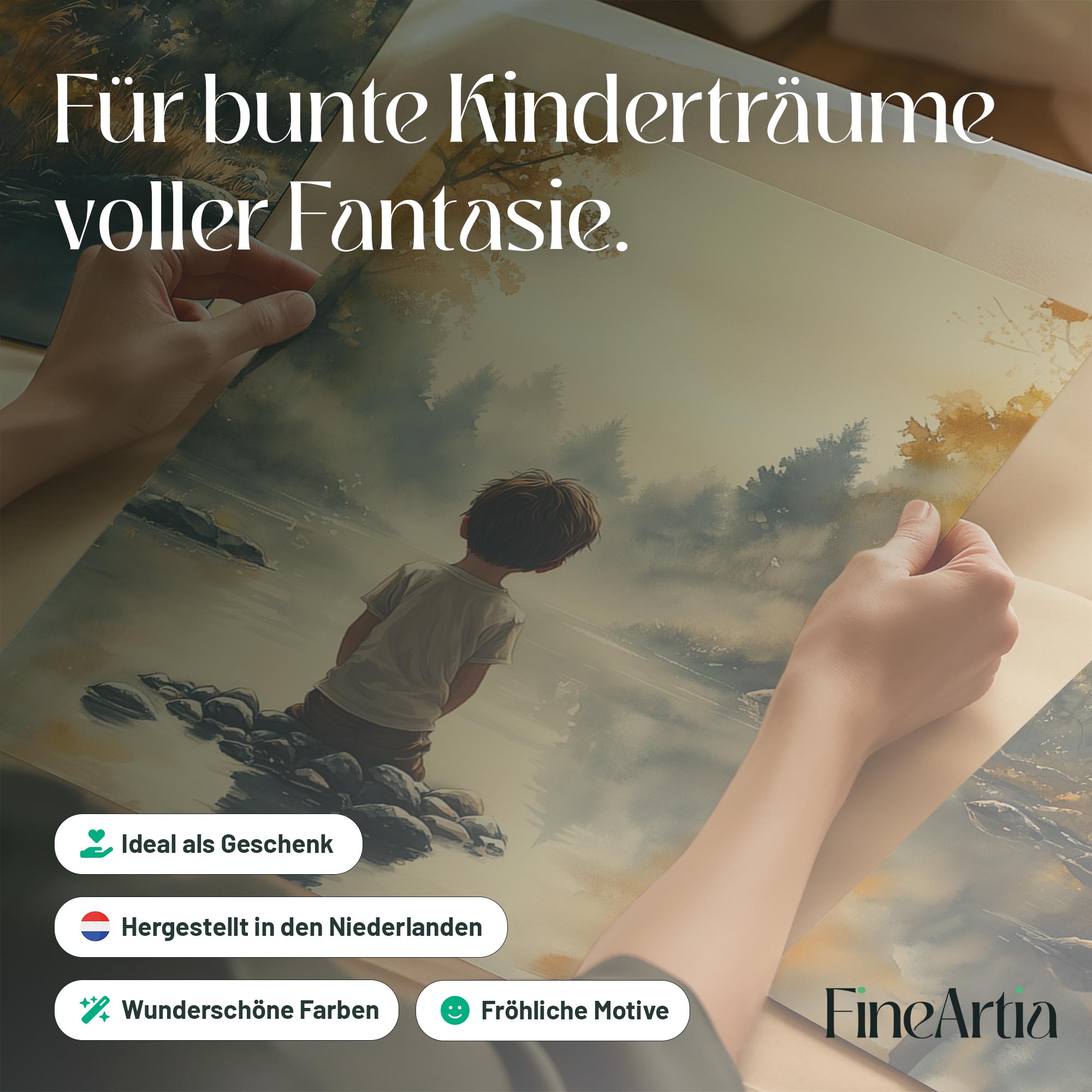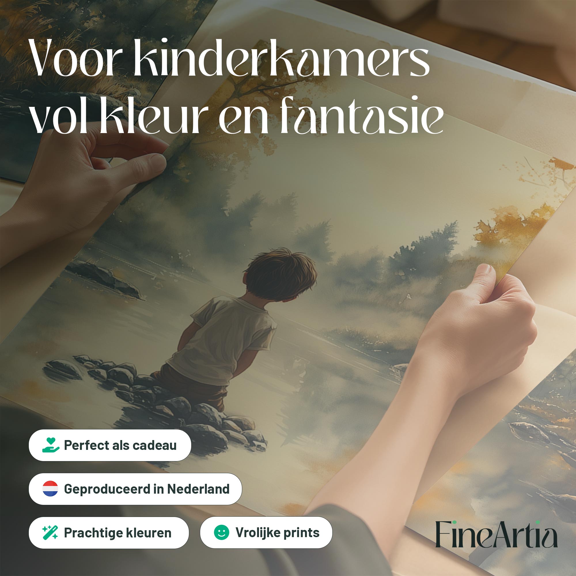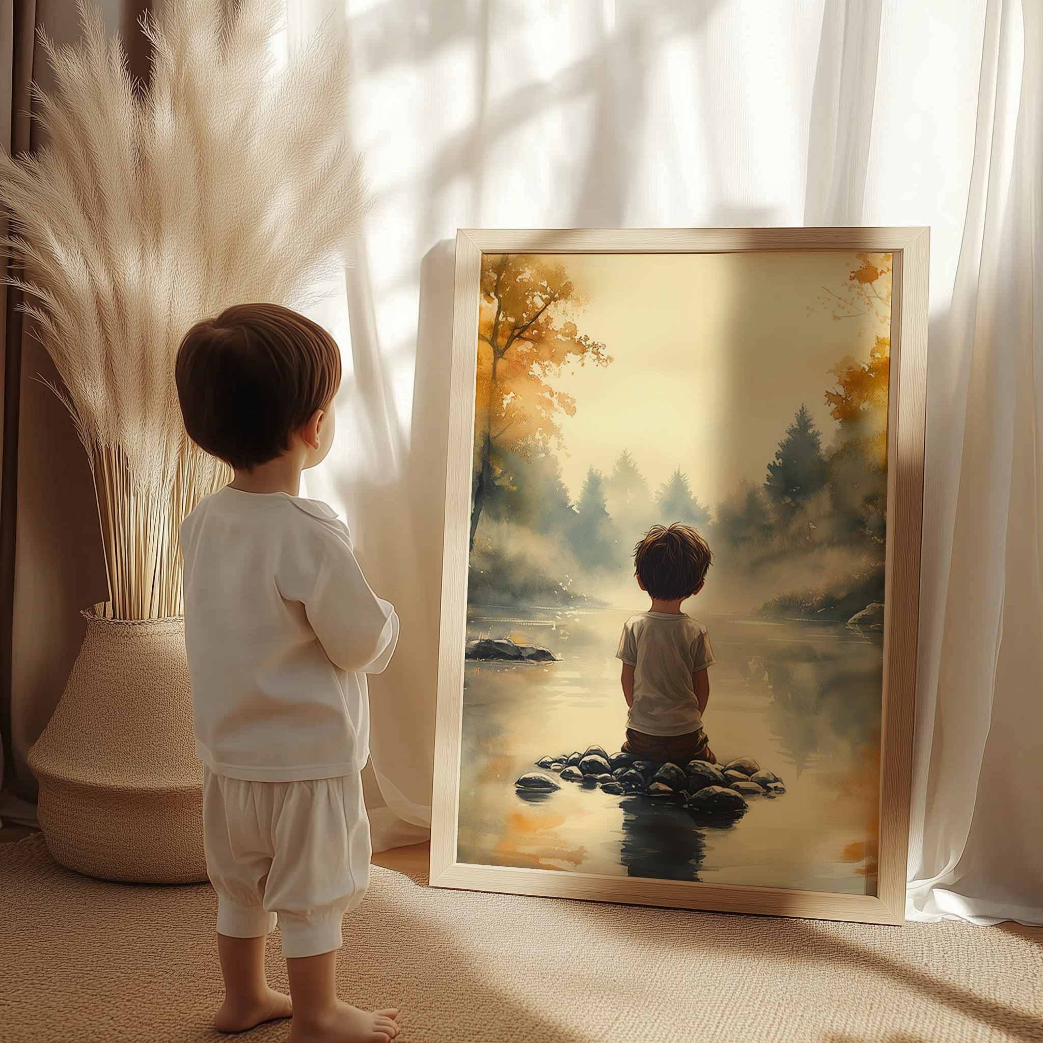 Terug naar collectie Posters Jongen bij de rivier: Dromerig herfsttafereel