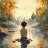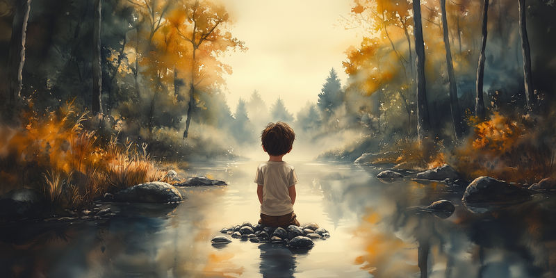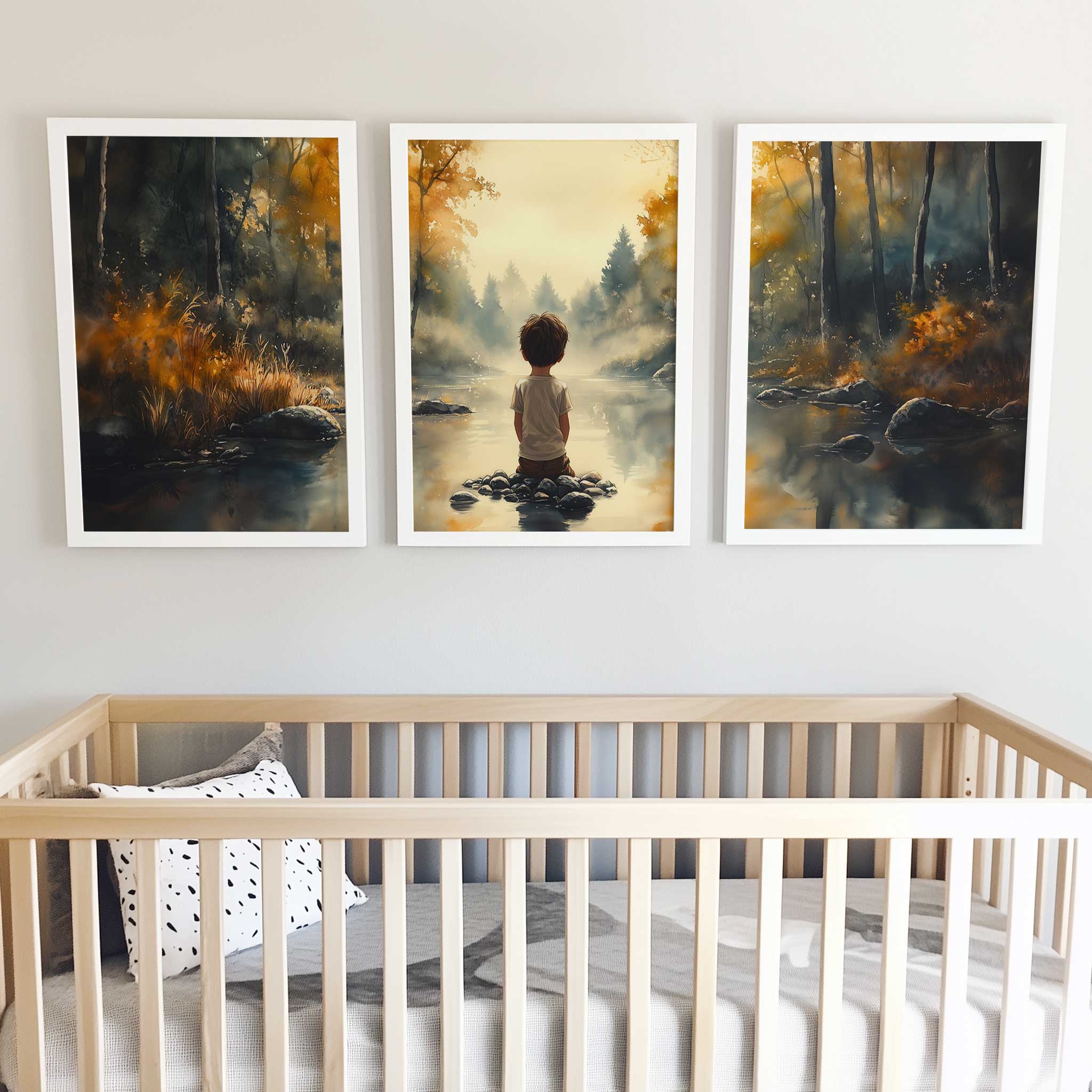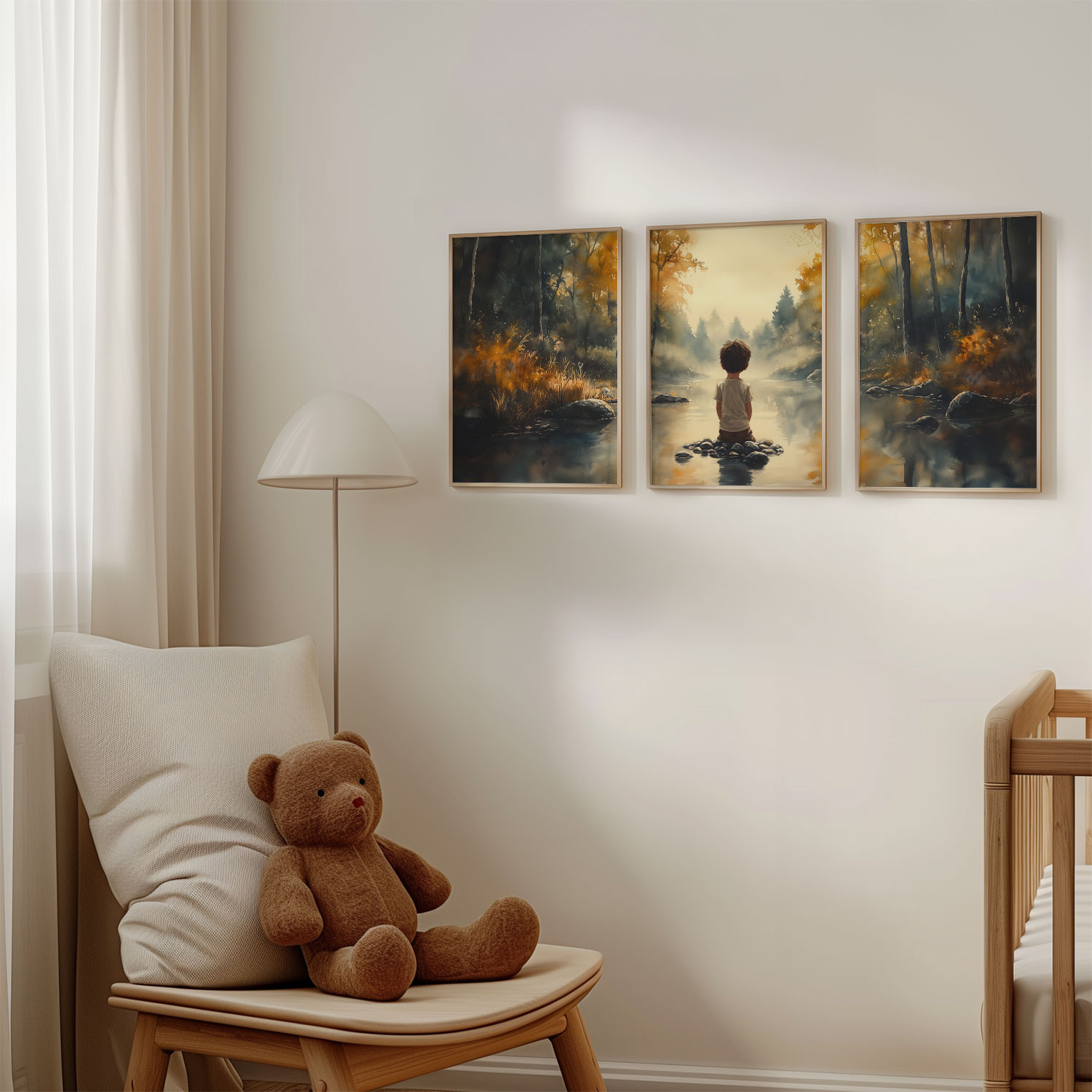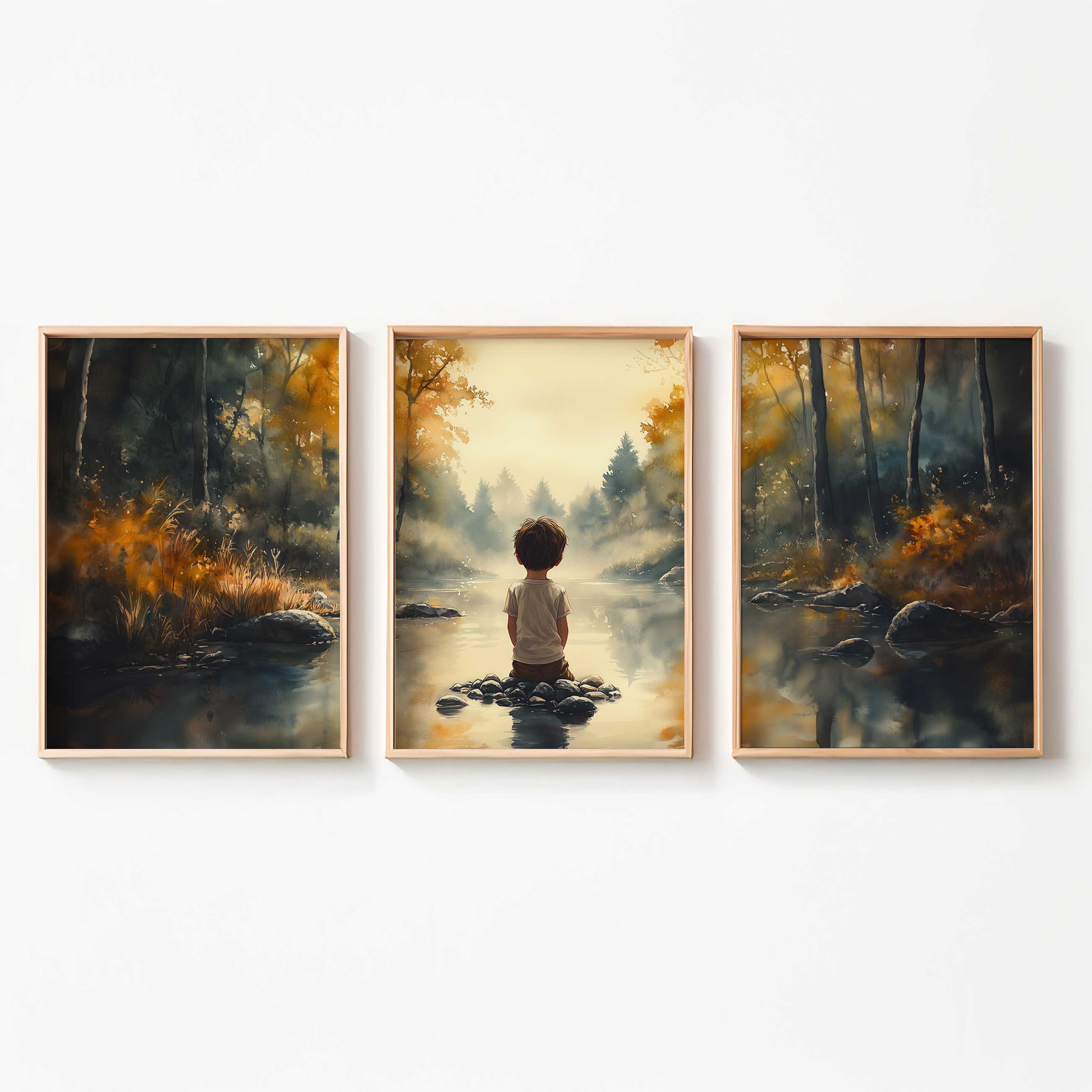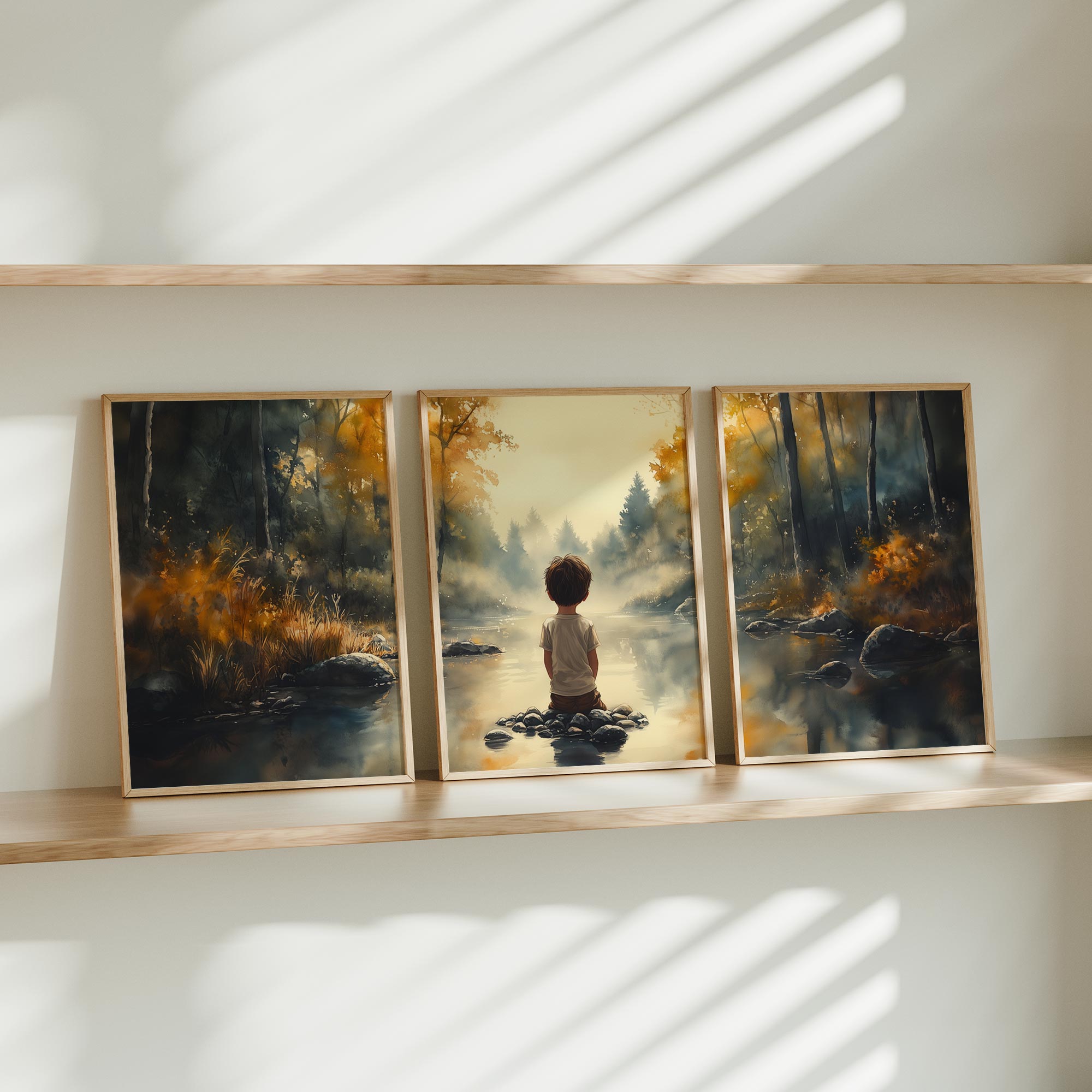 Terug naar collectie Posters Jongen bij de rivier: Dromerig herfsttafereel