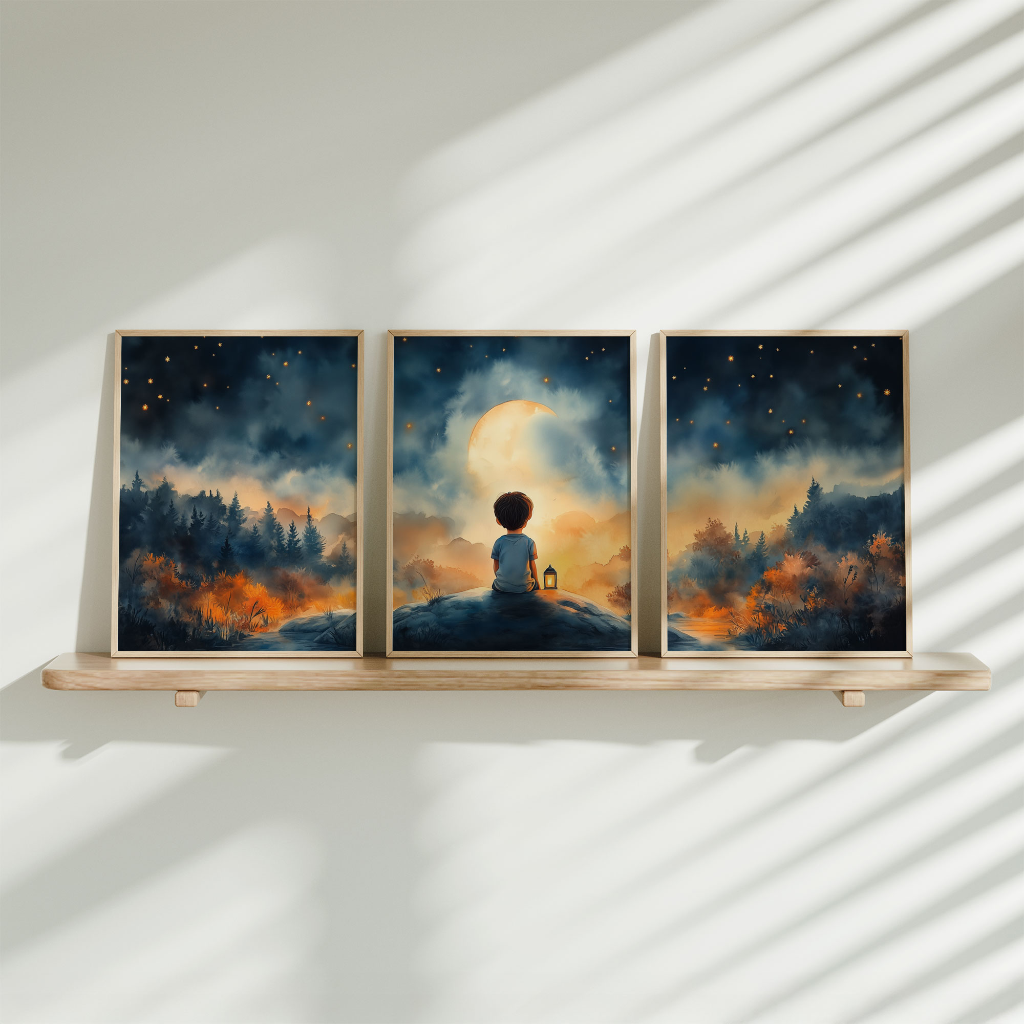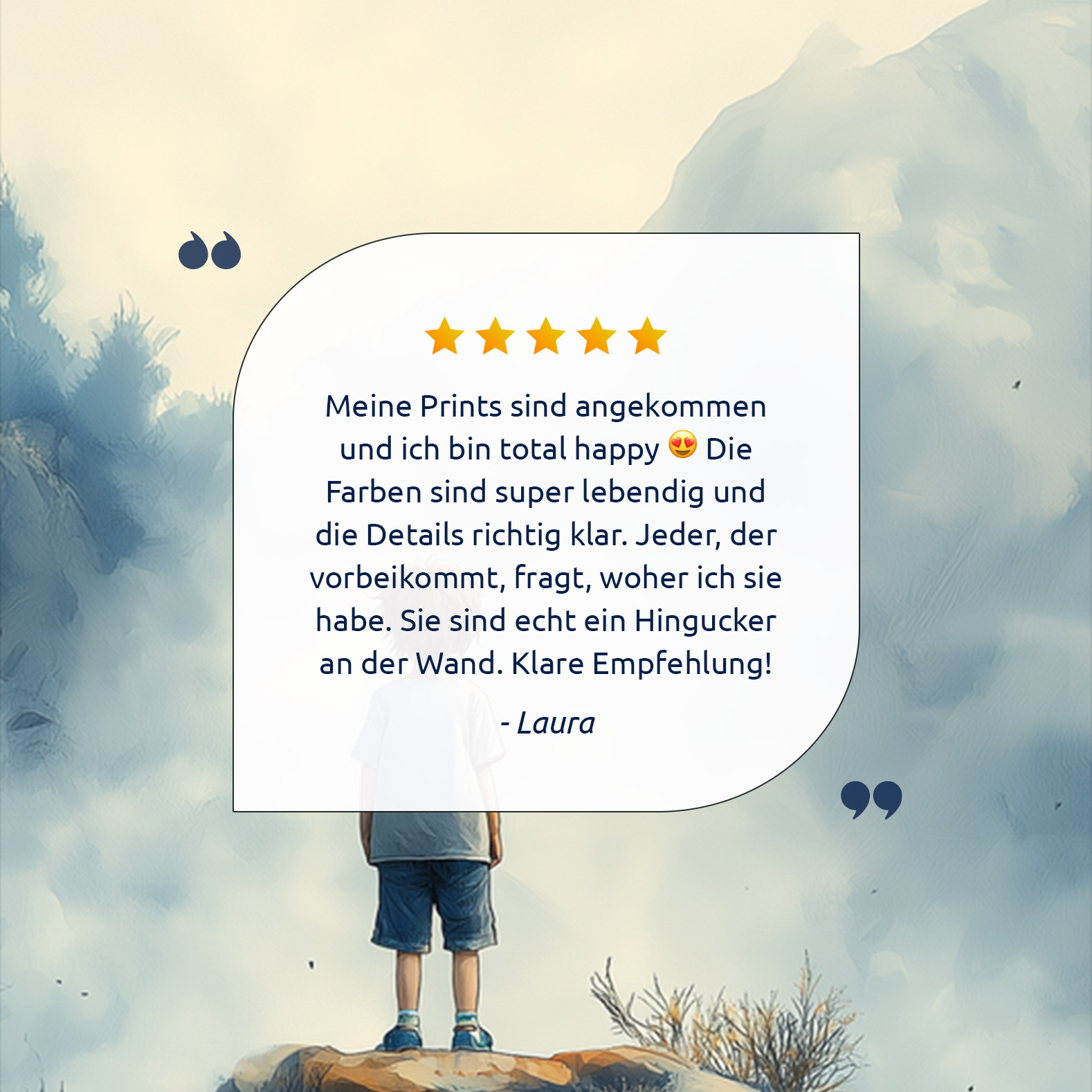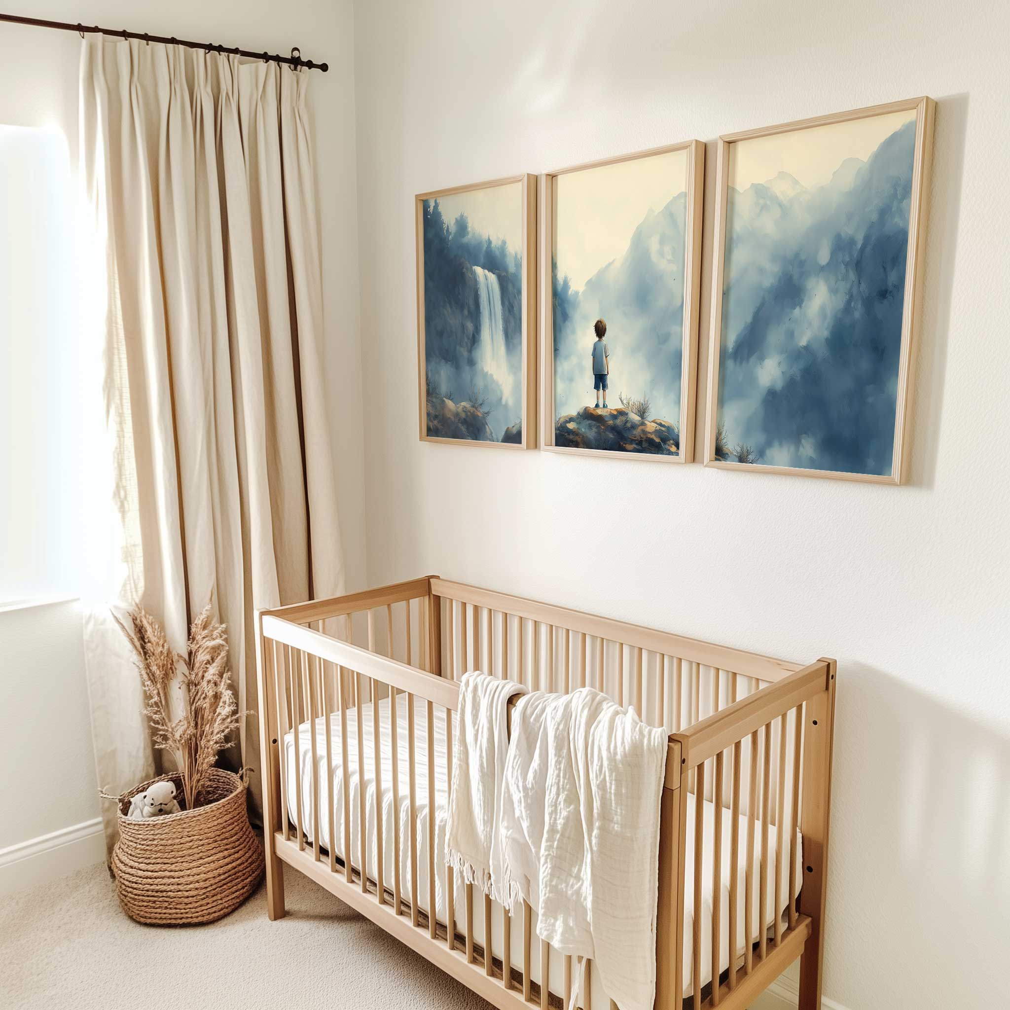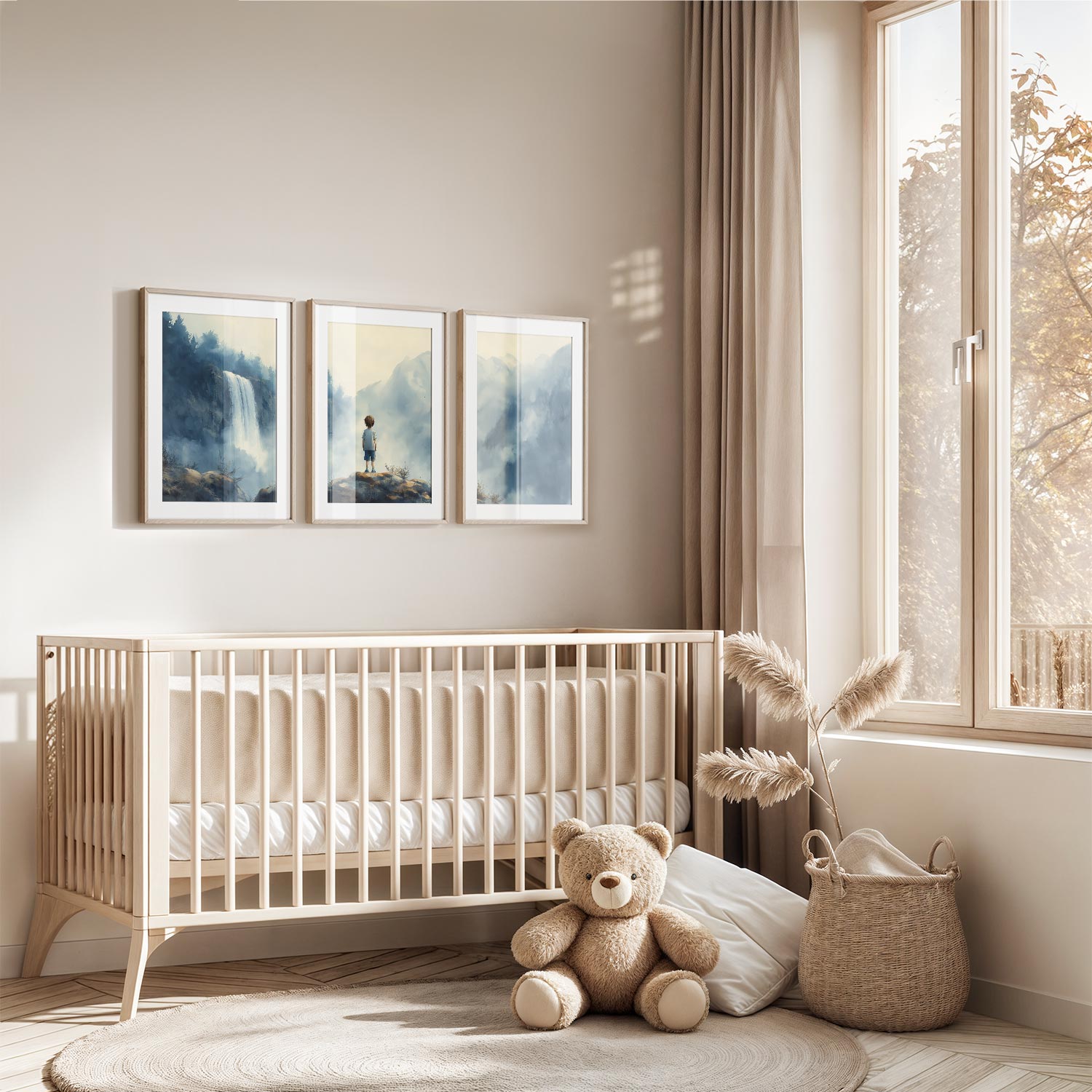 Jongen bij de Waterval – Dromerig Landschap in Blauw en Groen