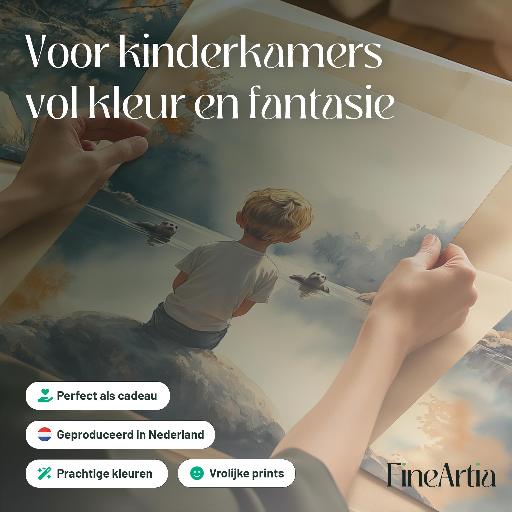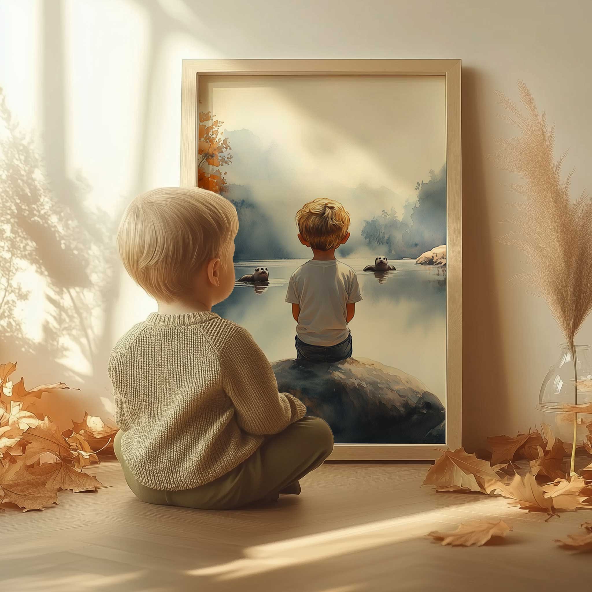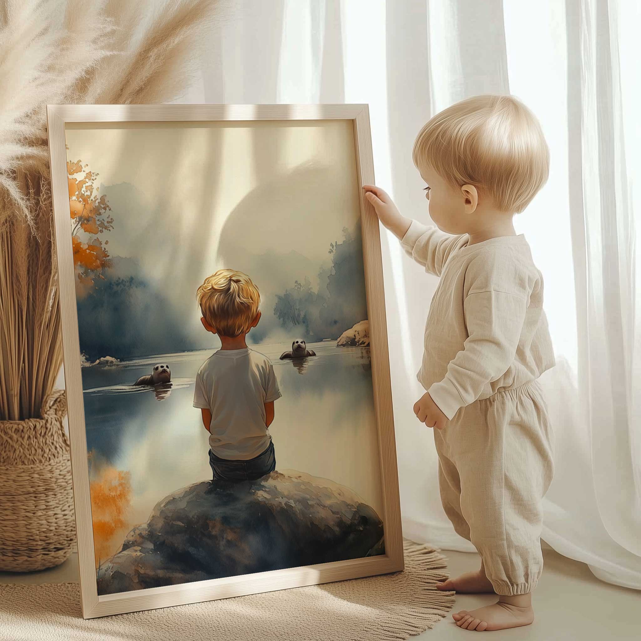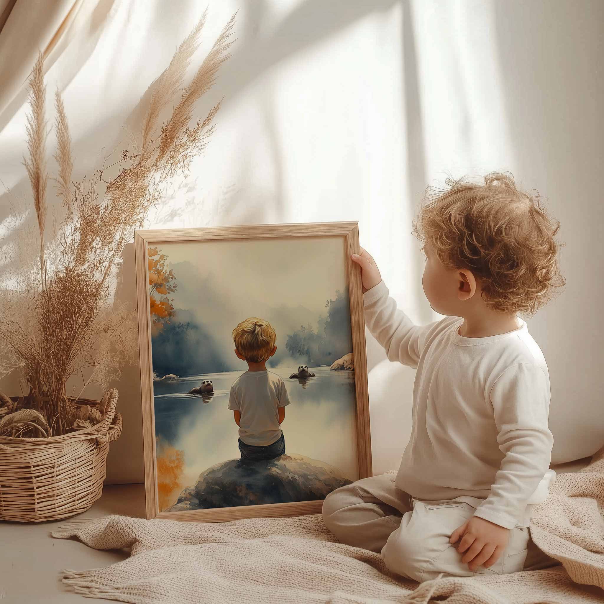 Terug naar collectie Posters Jongen bij het meer – Vrolijk en rustig landschap