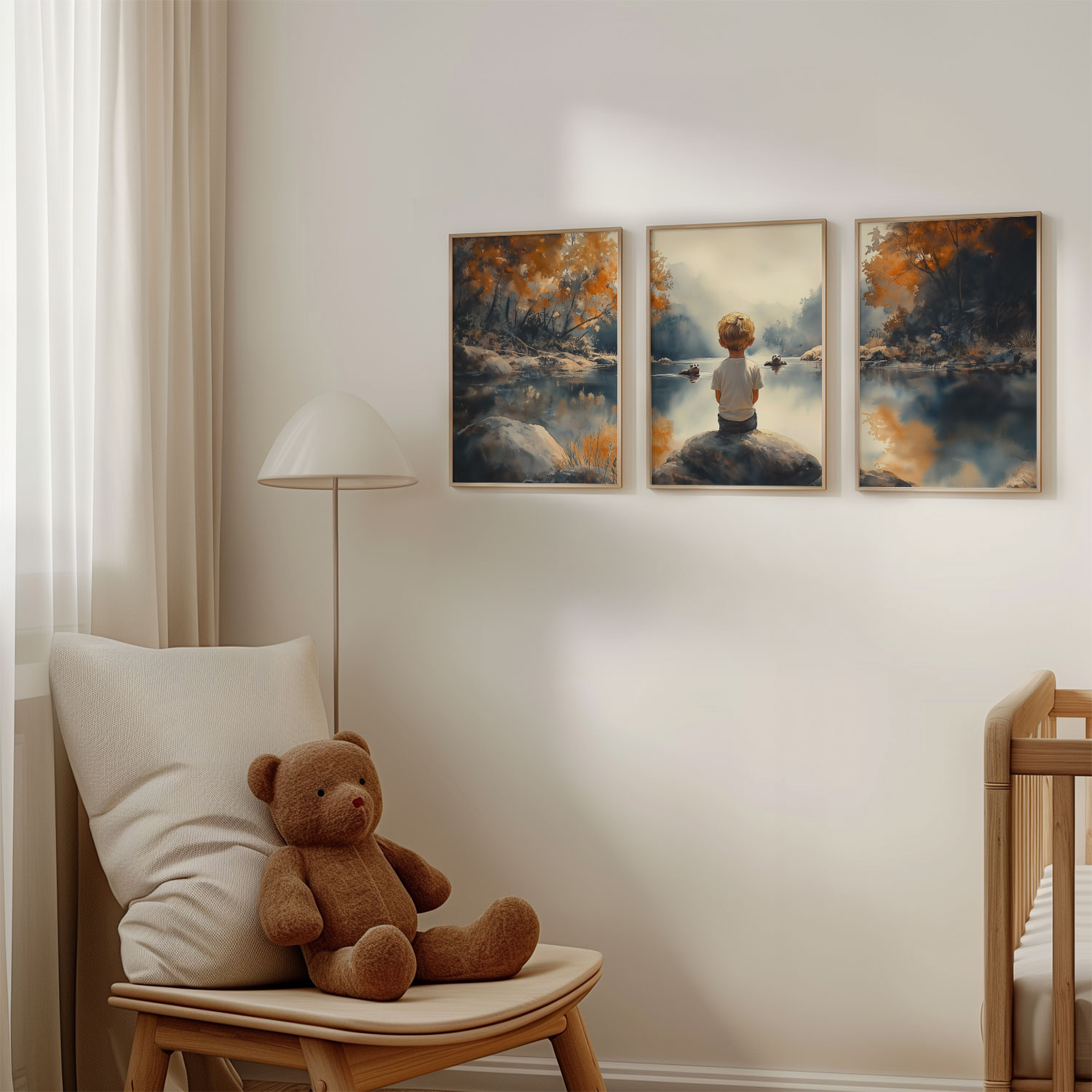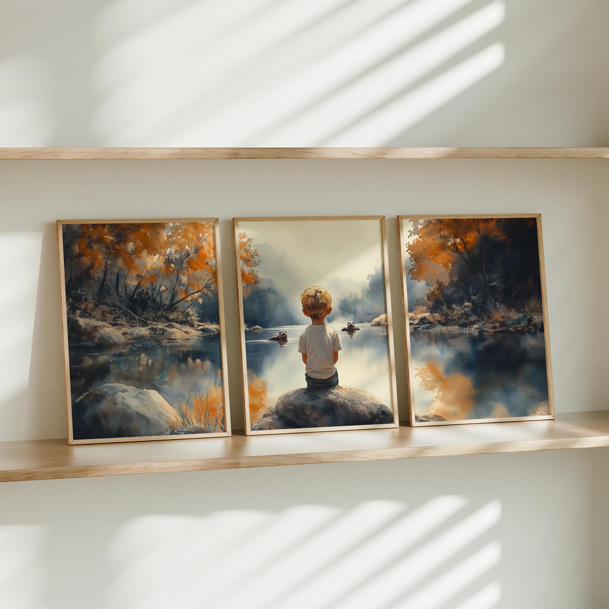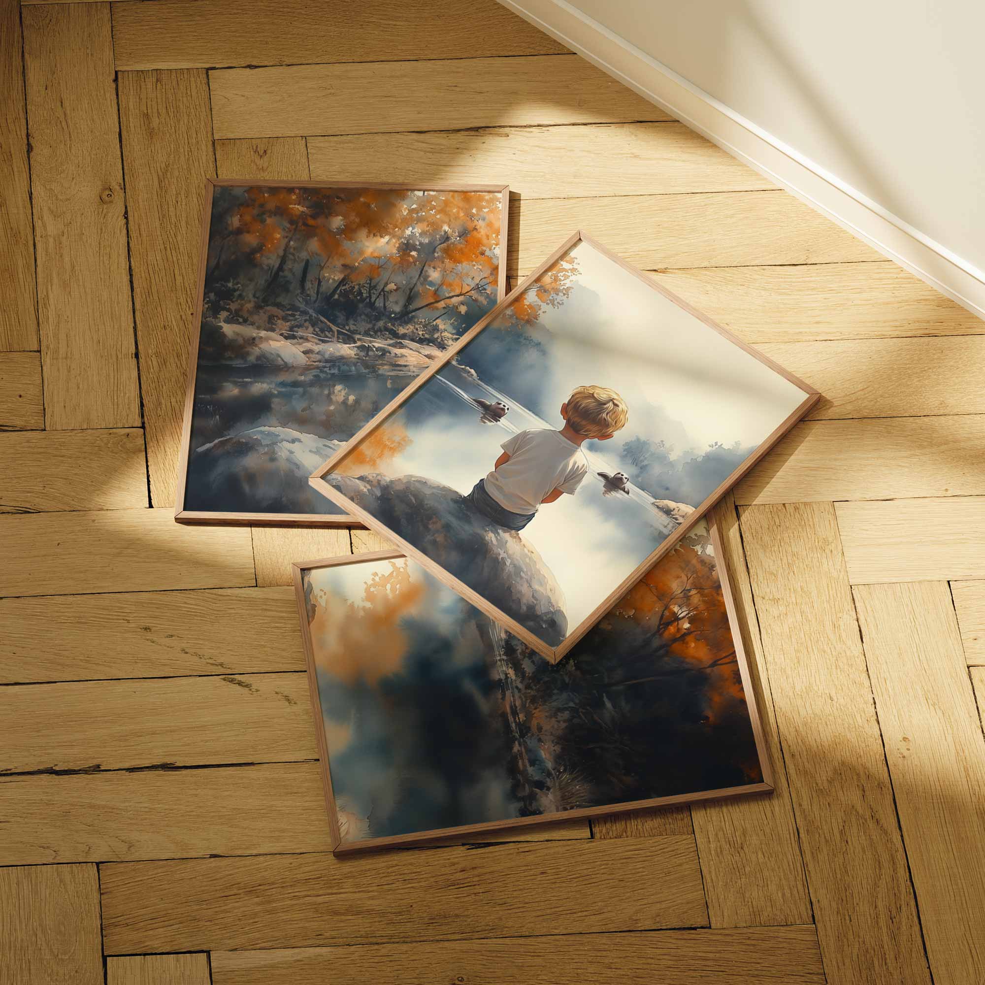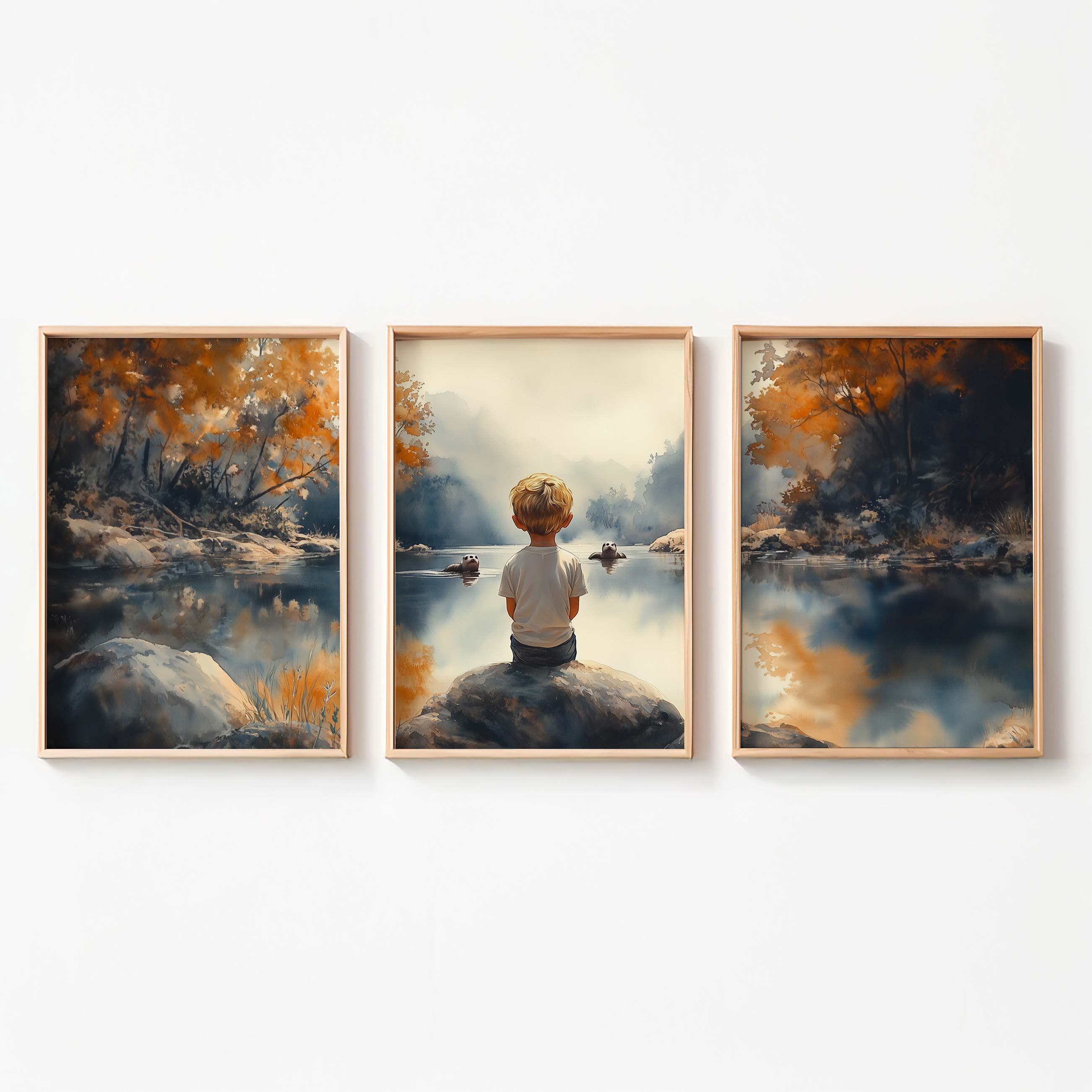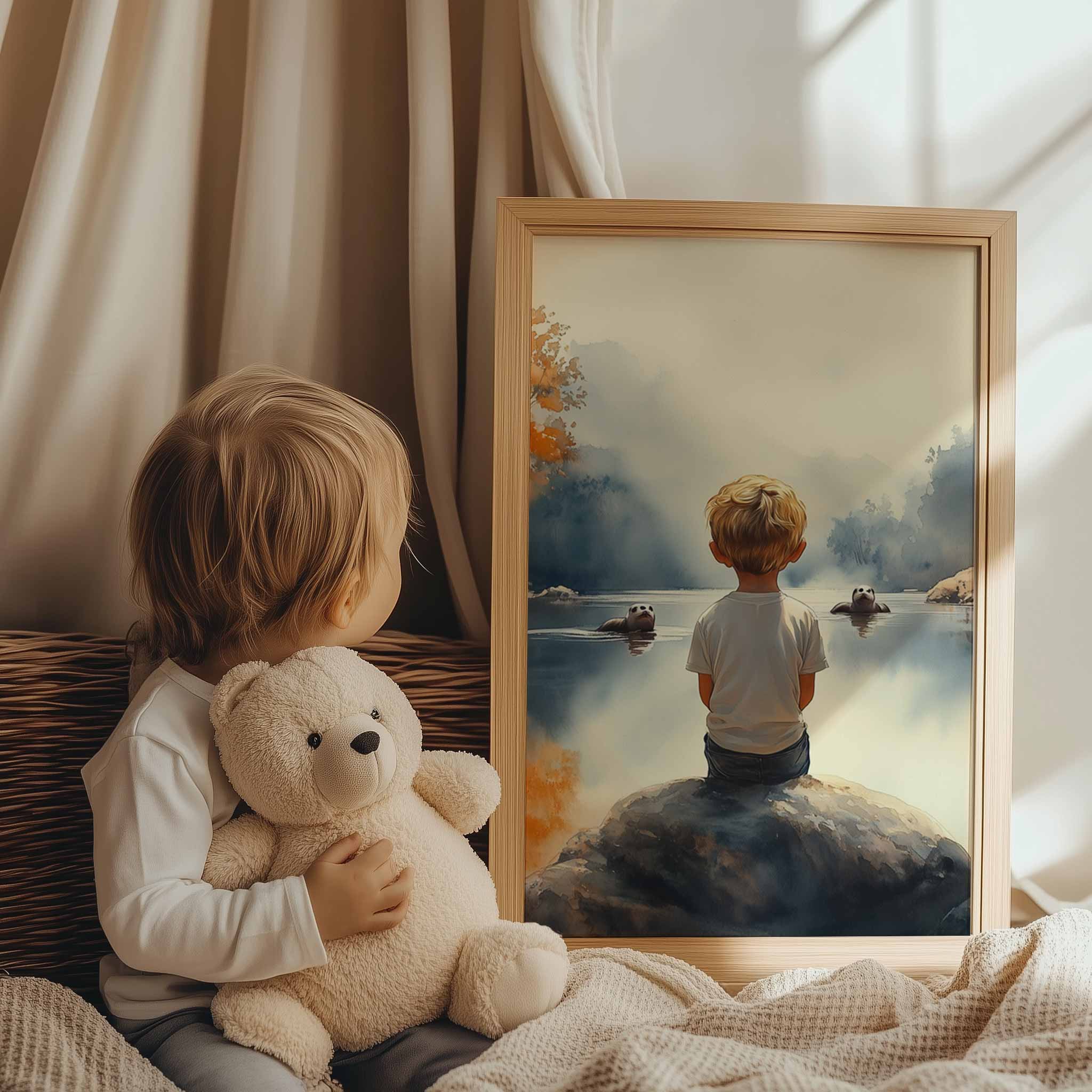Terug naar collectie Posters Jongen bij het meer – Vrolijk en rustig landschap
