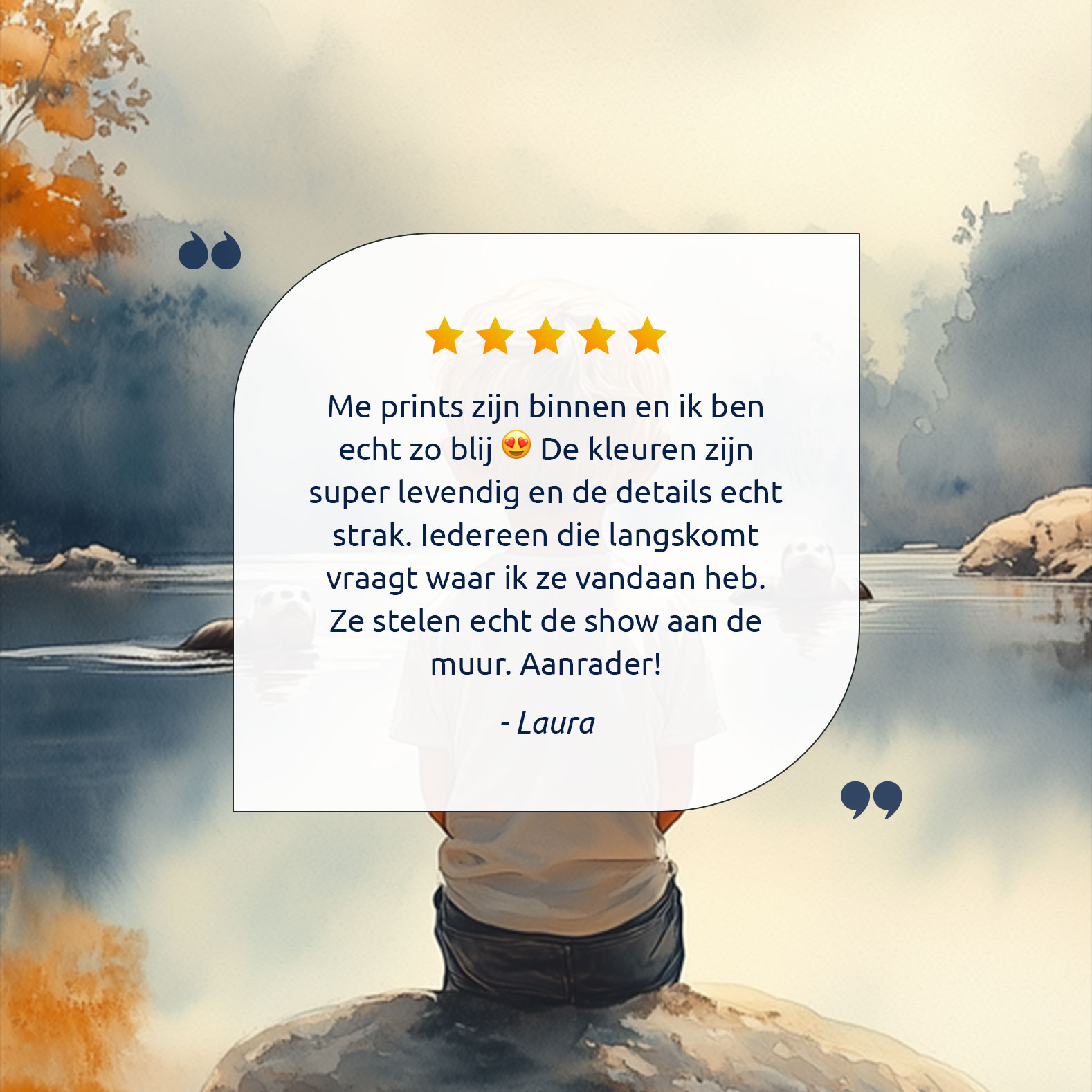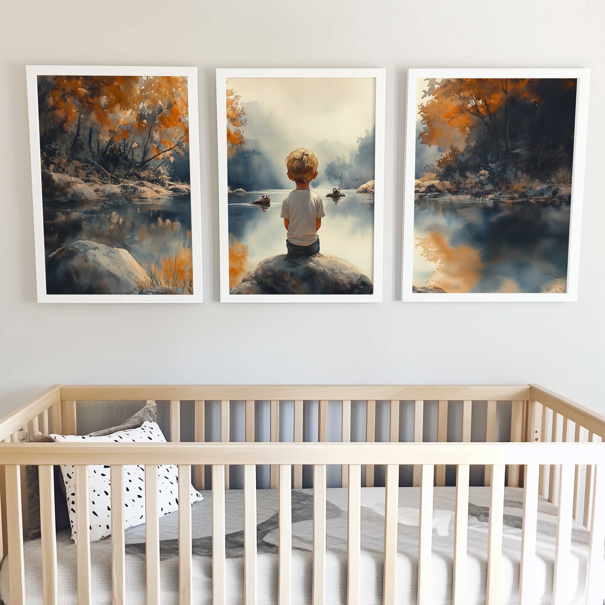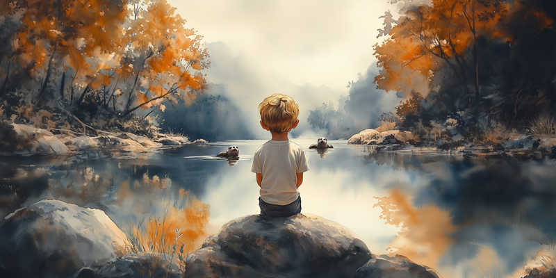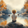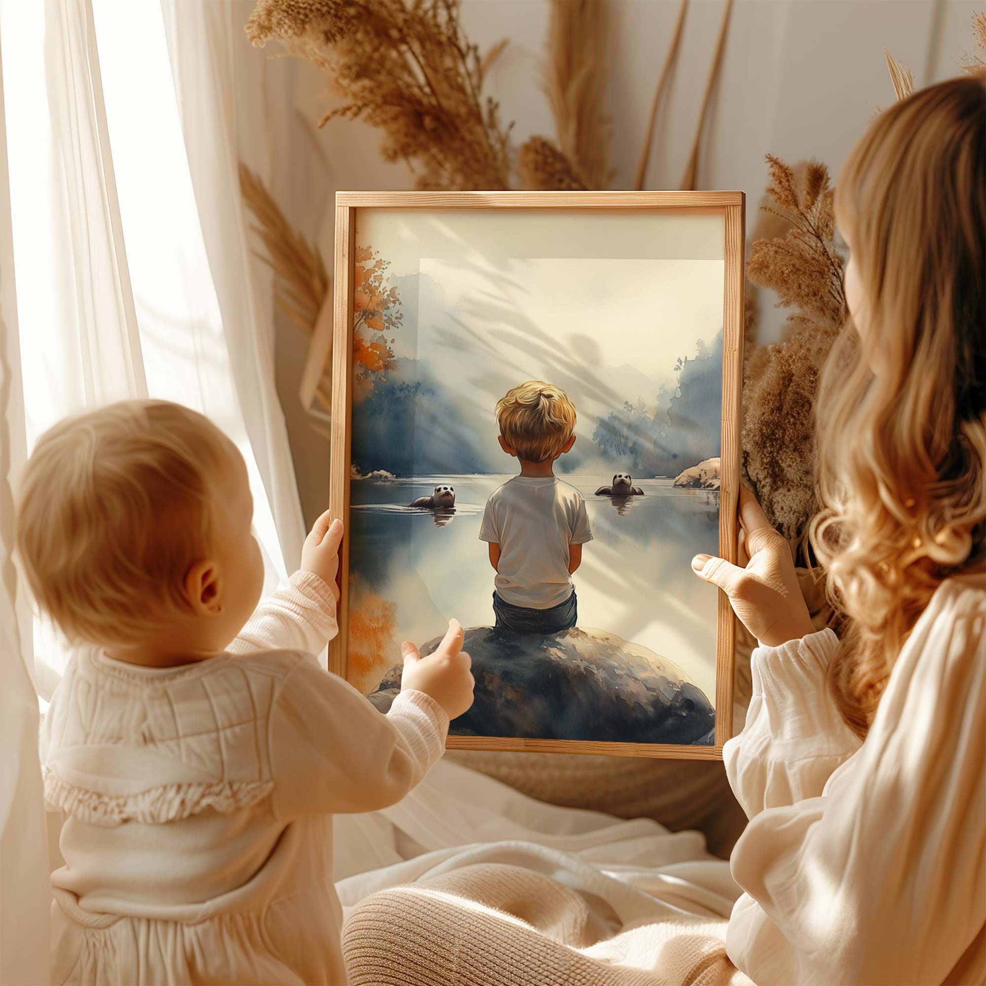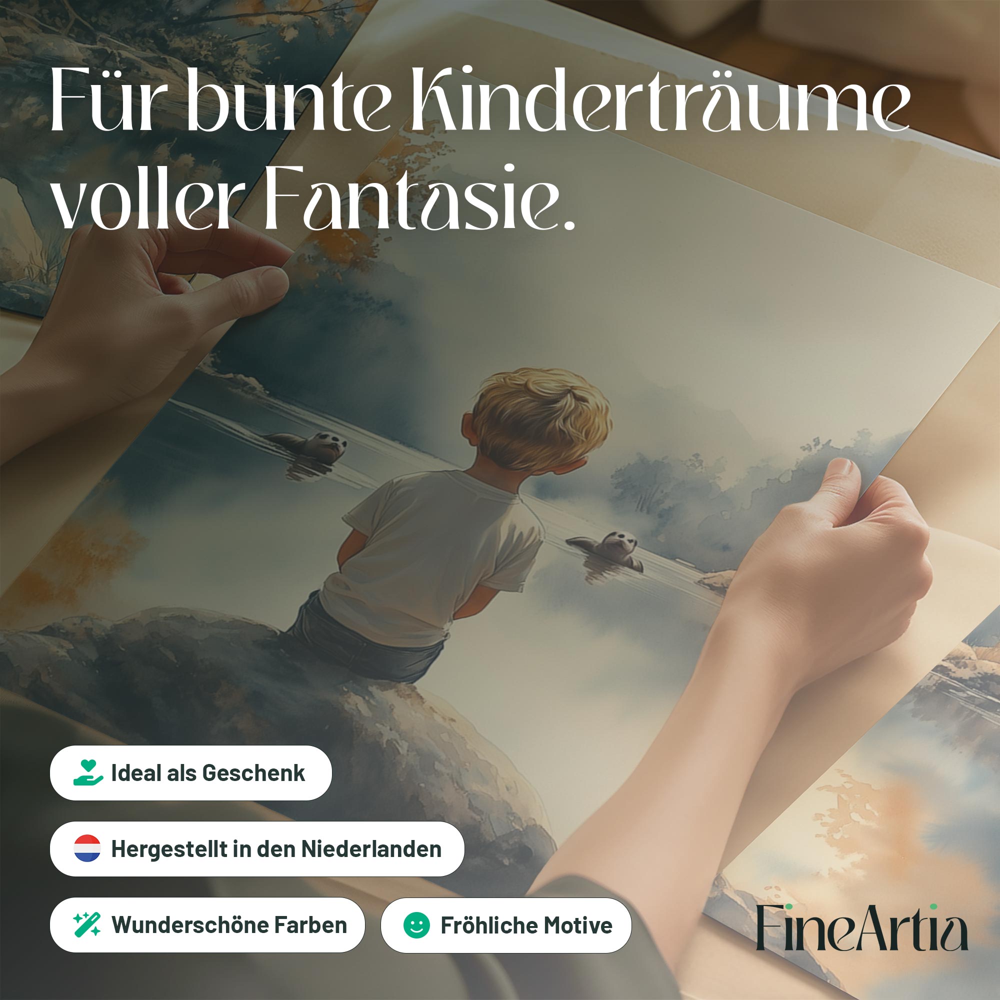 Terug naar collectie Posters Jongen bij het meer – Vrolijk en rustig landschap