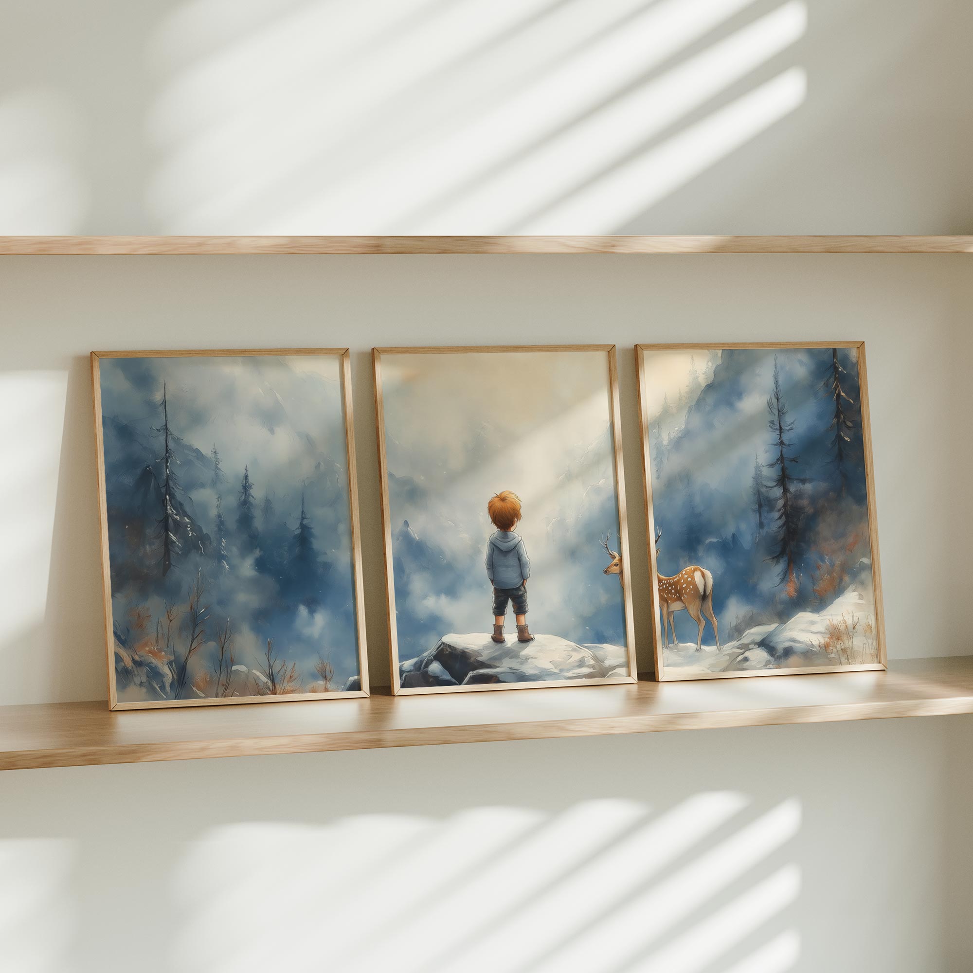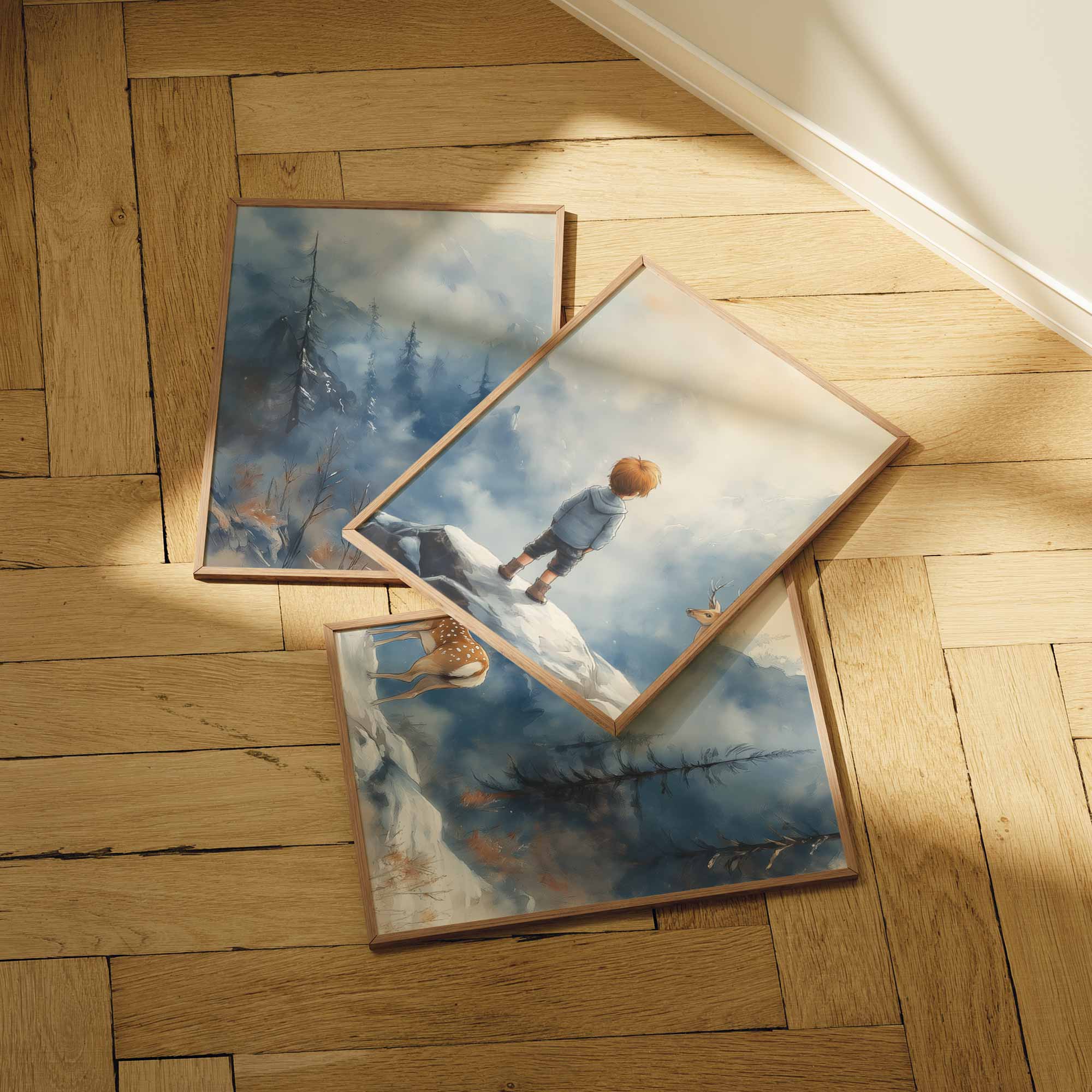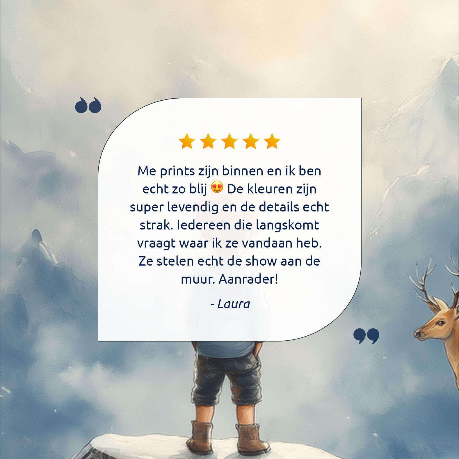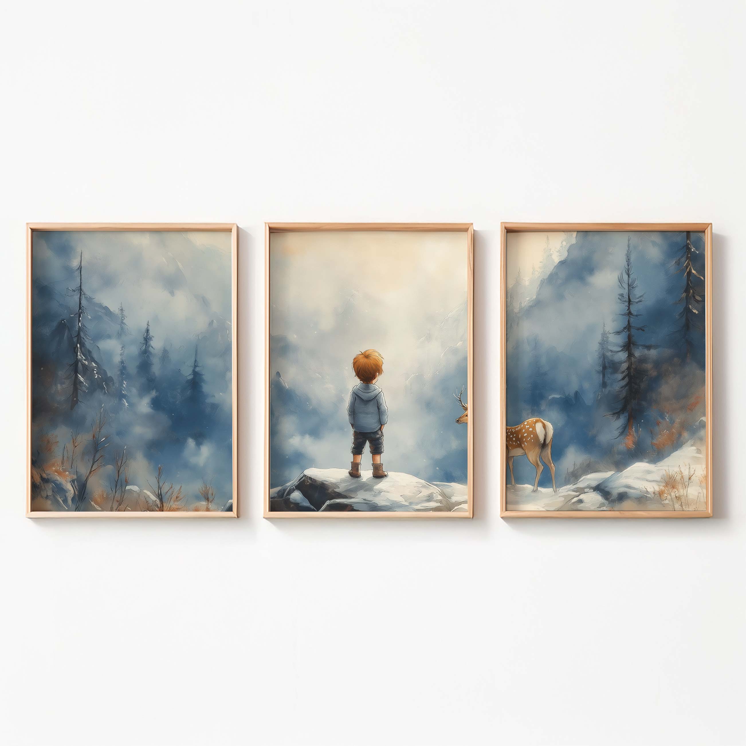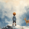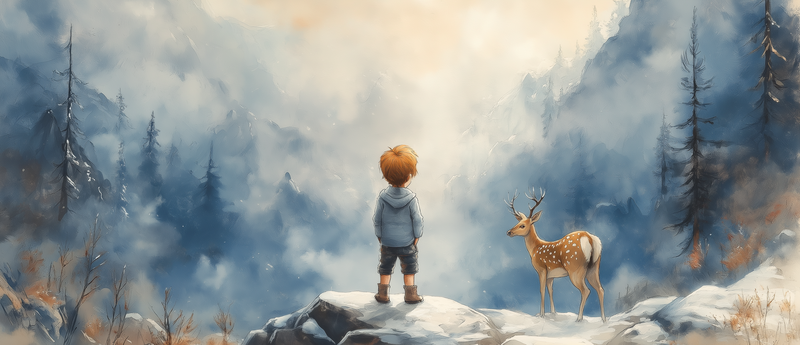 Jongen en Hert in Betoverend Winters Landschap