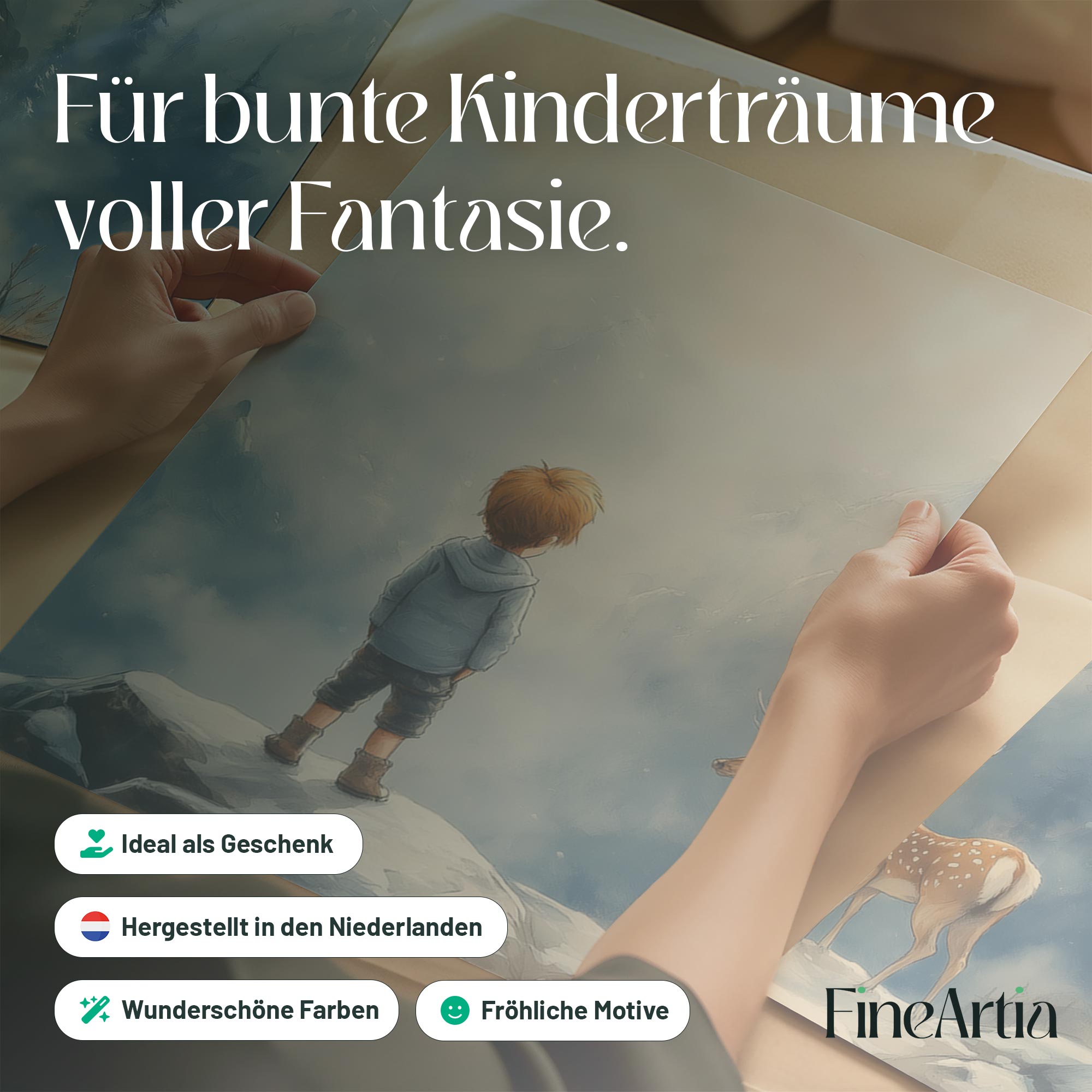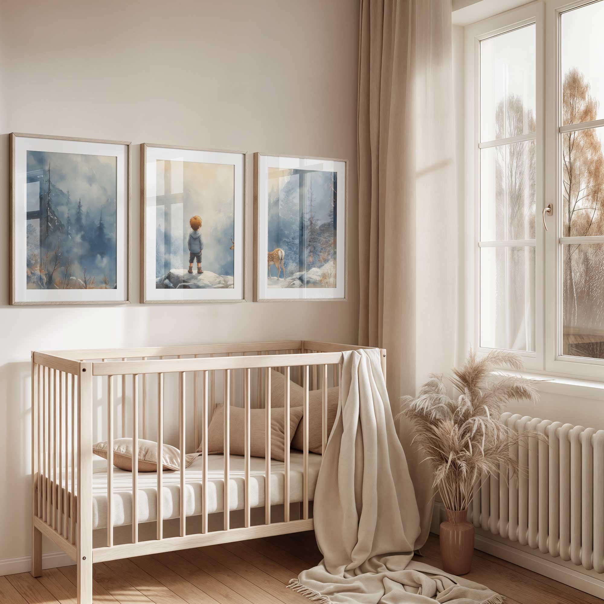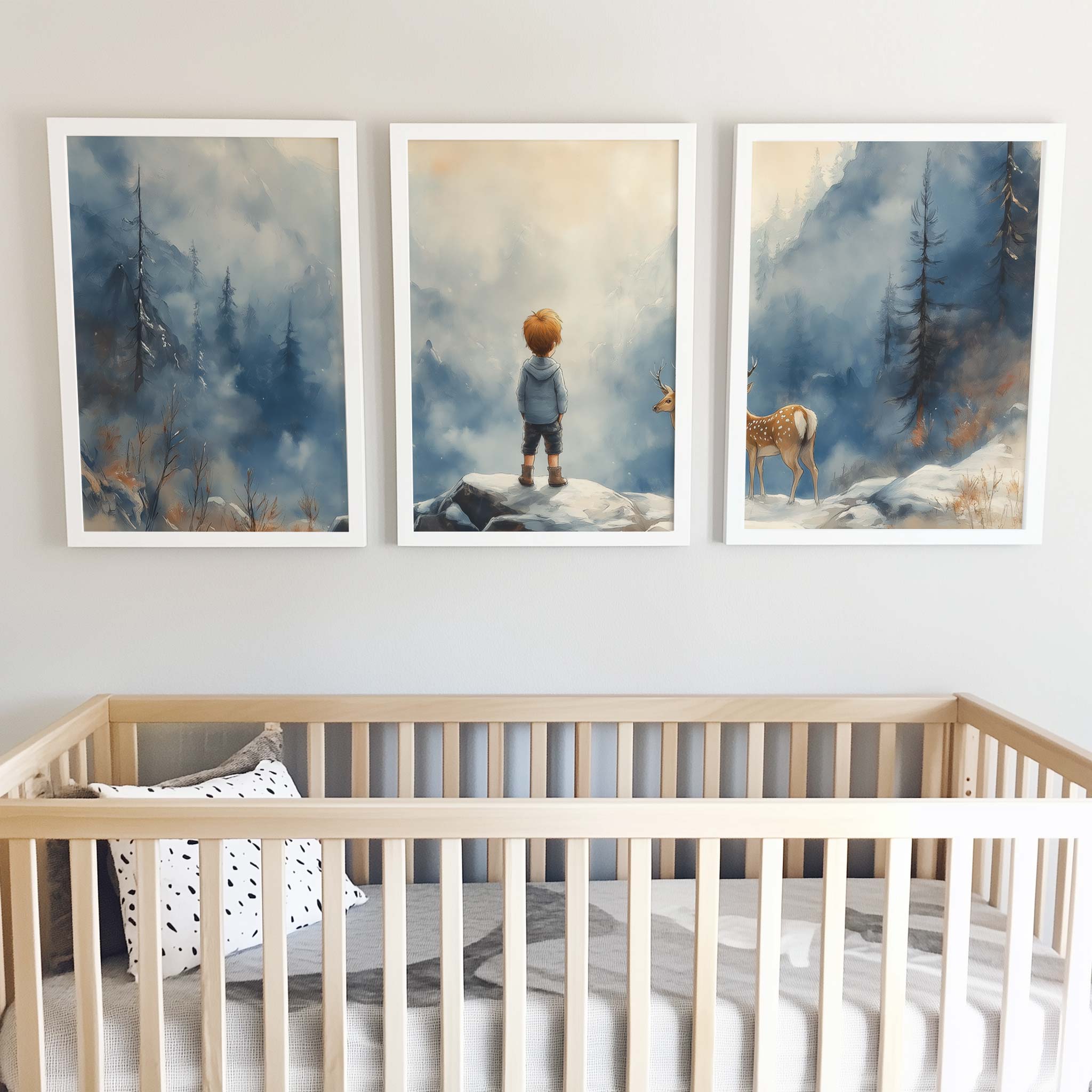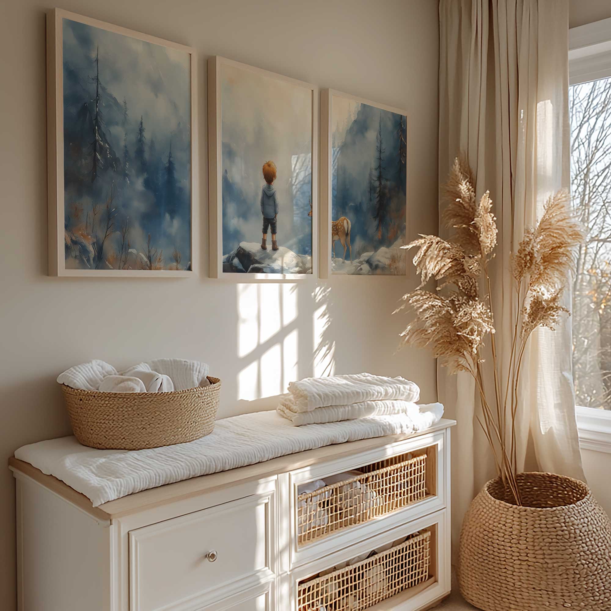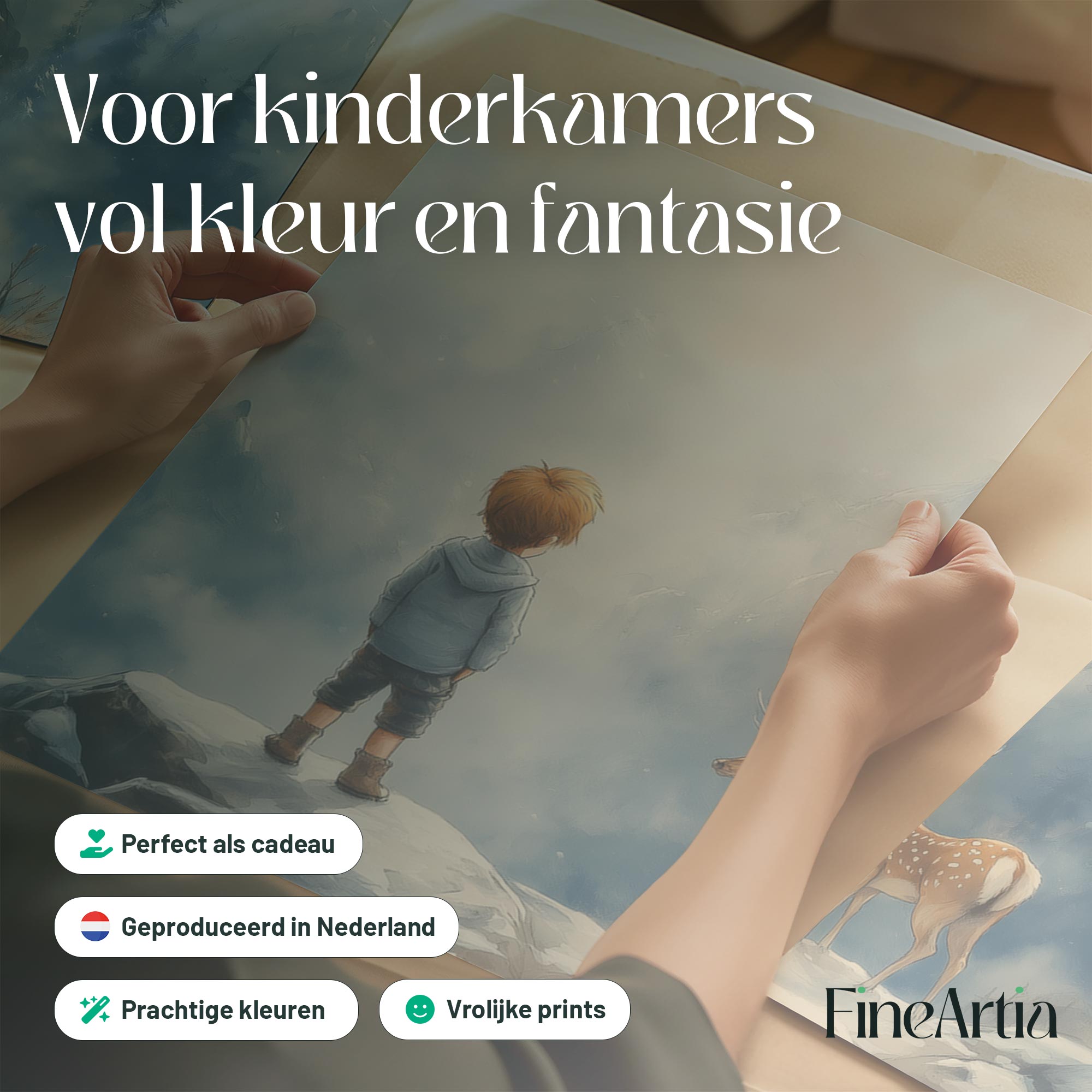 Jongen en Hert in Betoverend Winters Landschap
