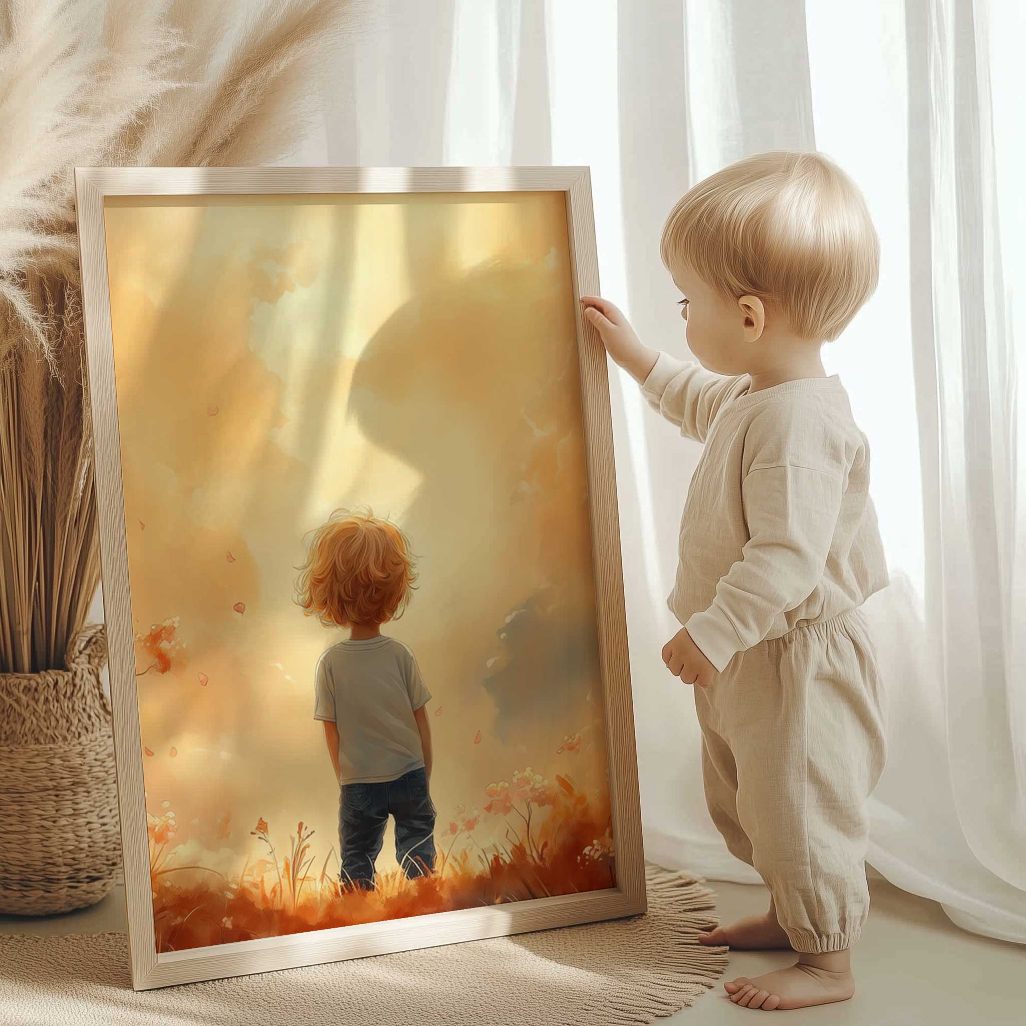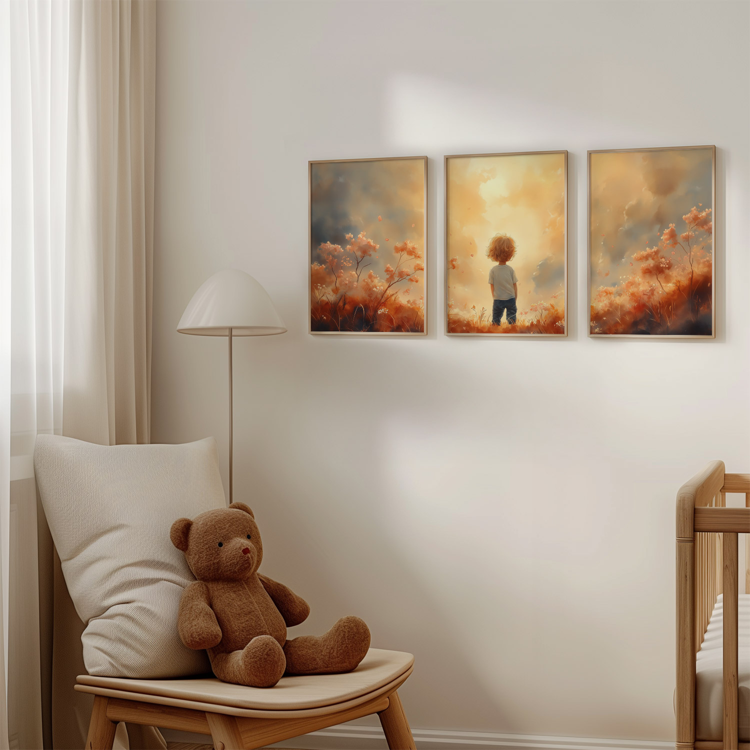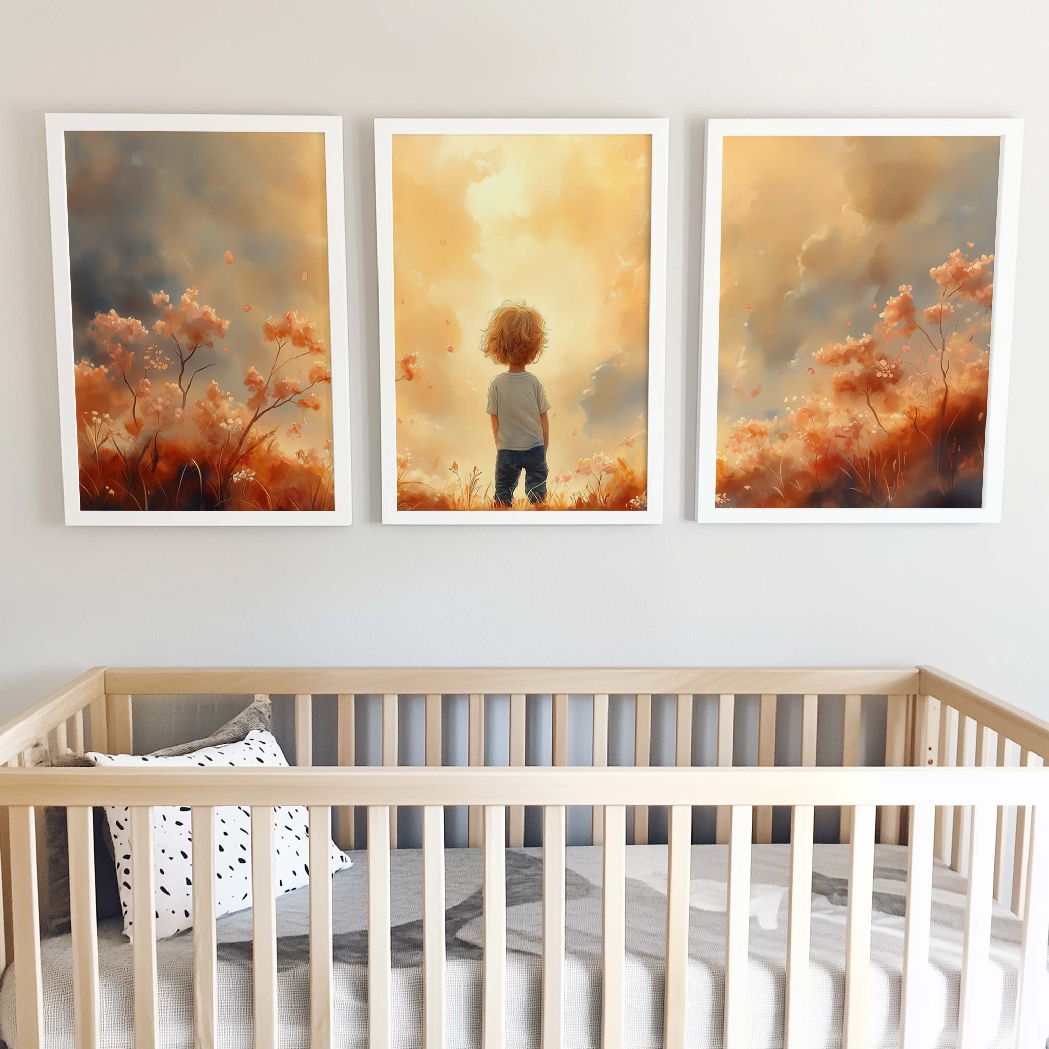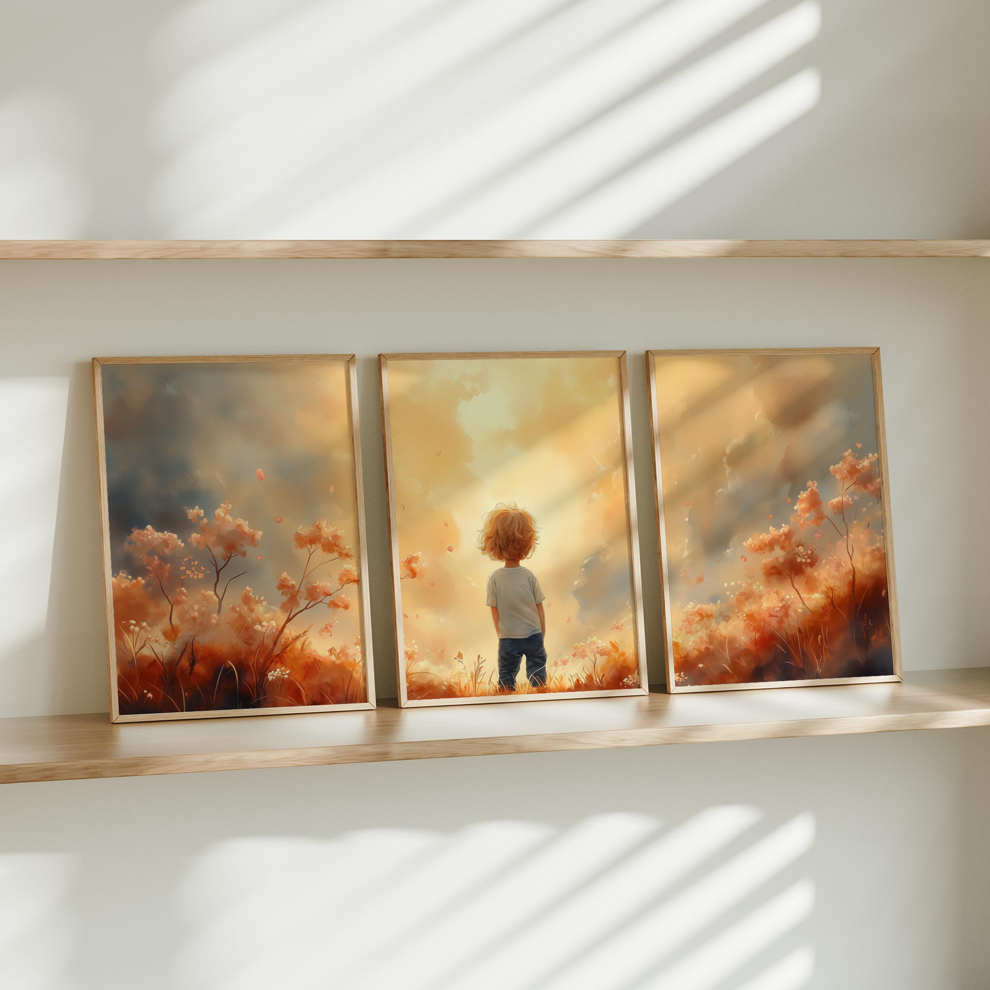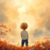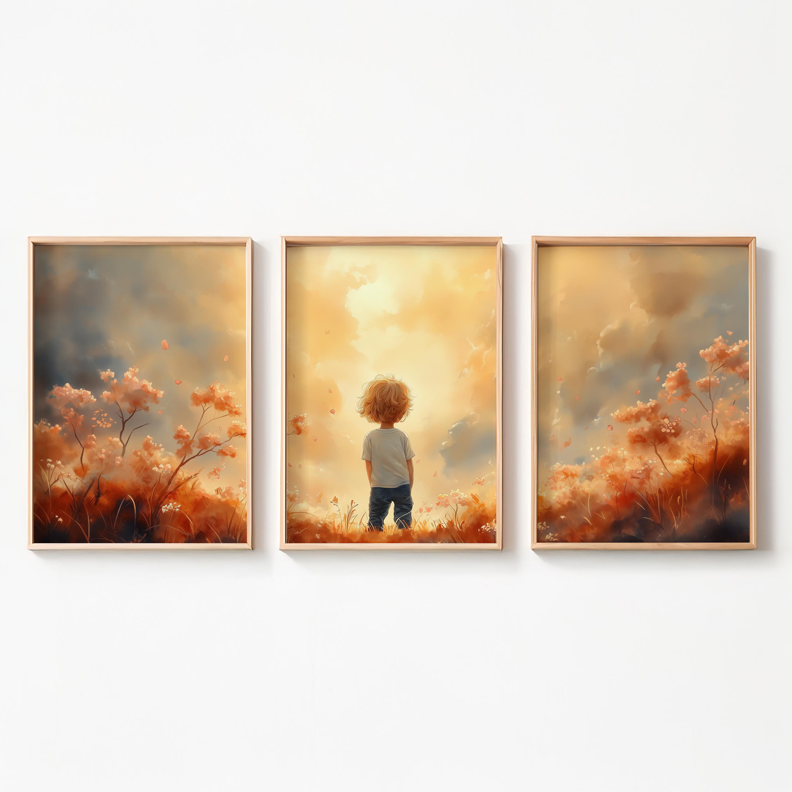 Jongen in Bloeiend Landschap onder Kleurrijke Hemel
