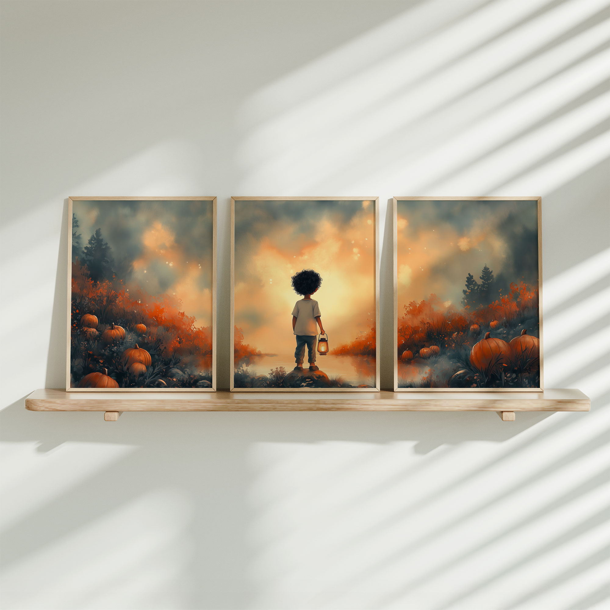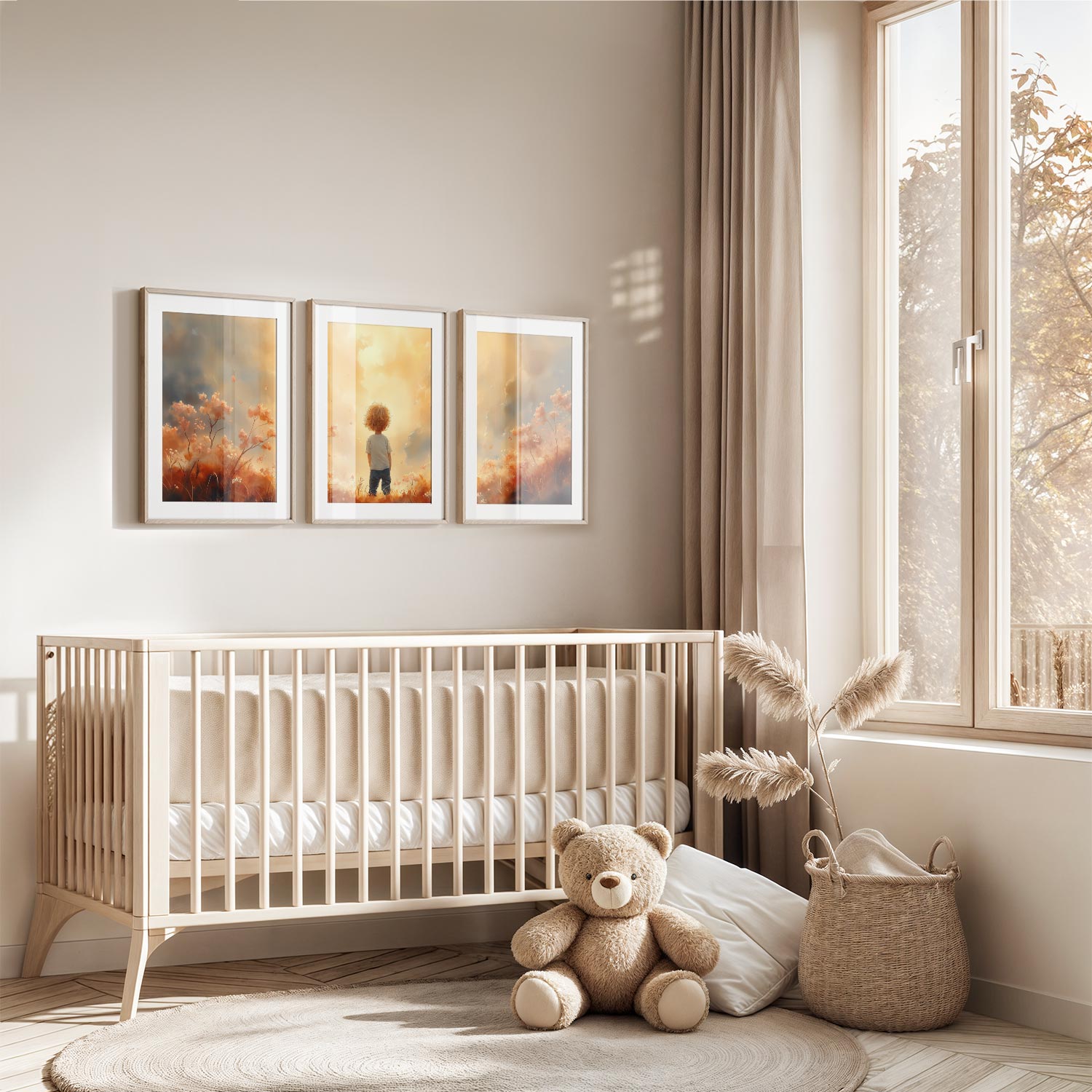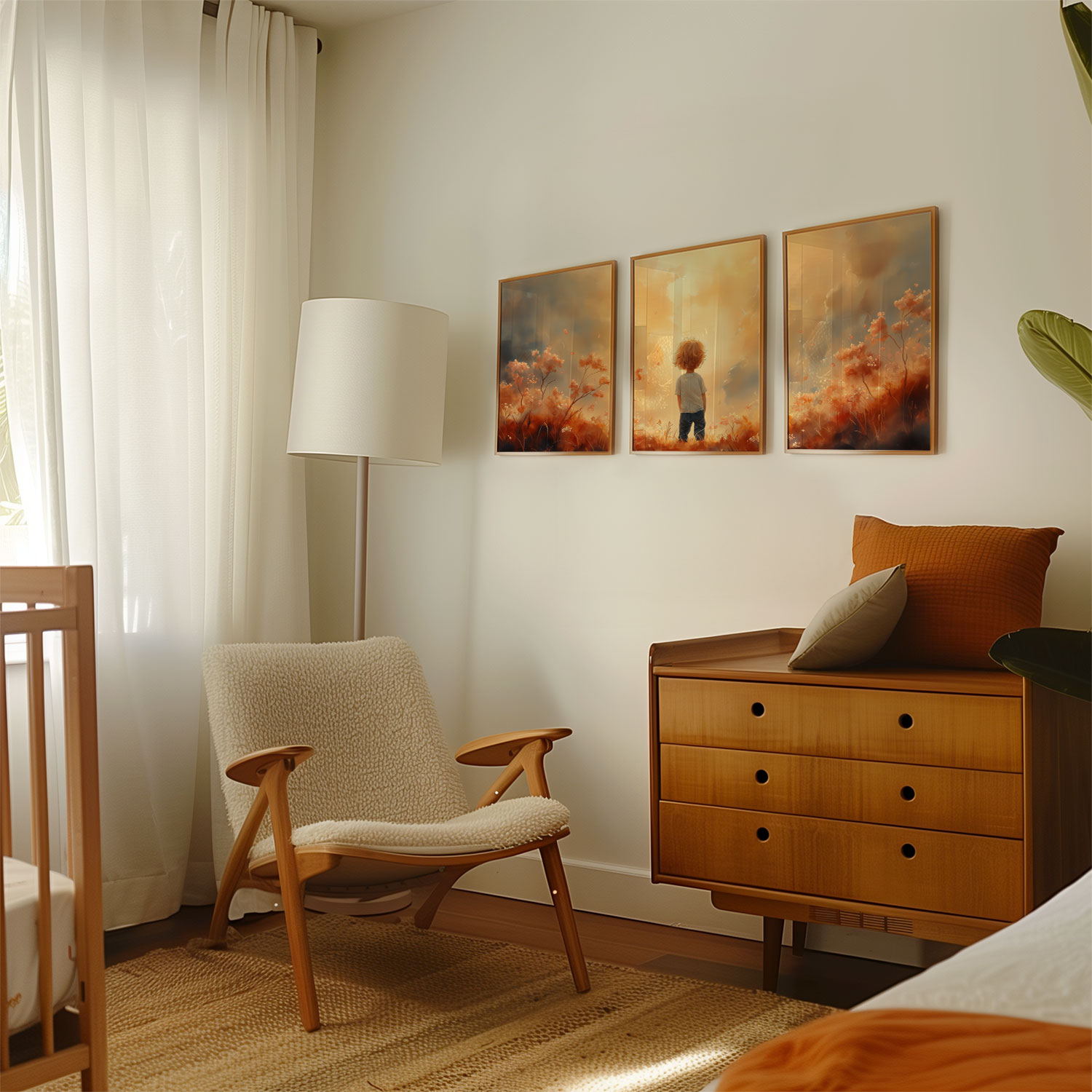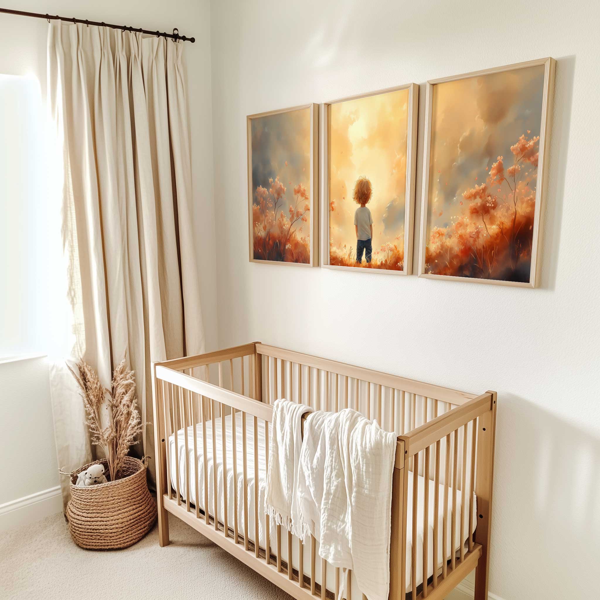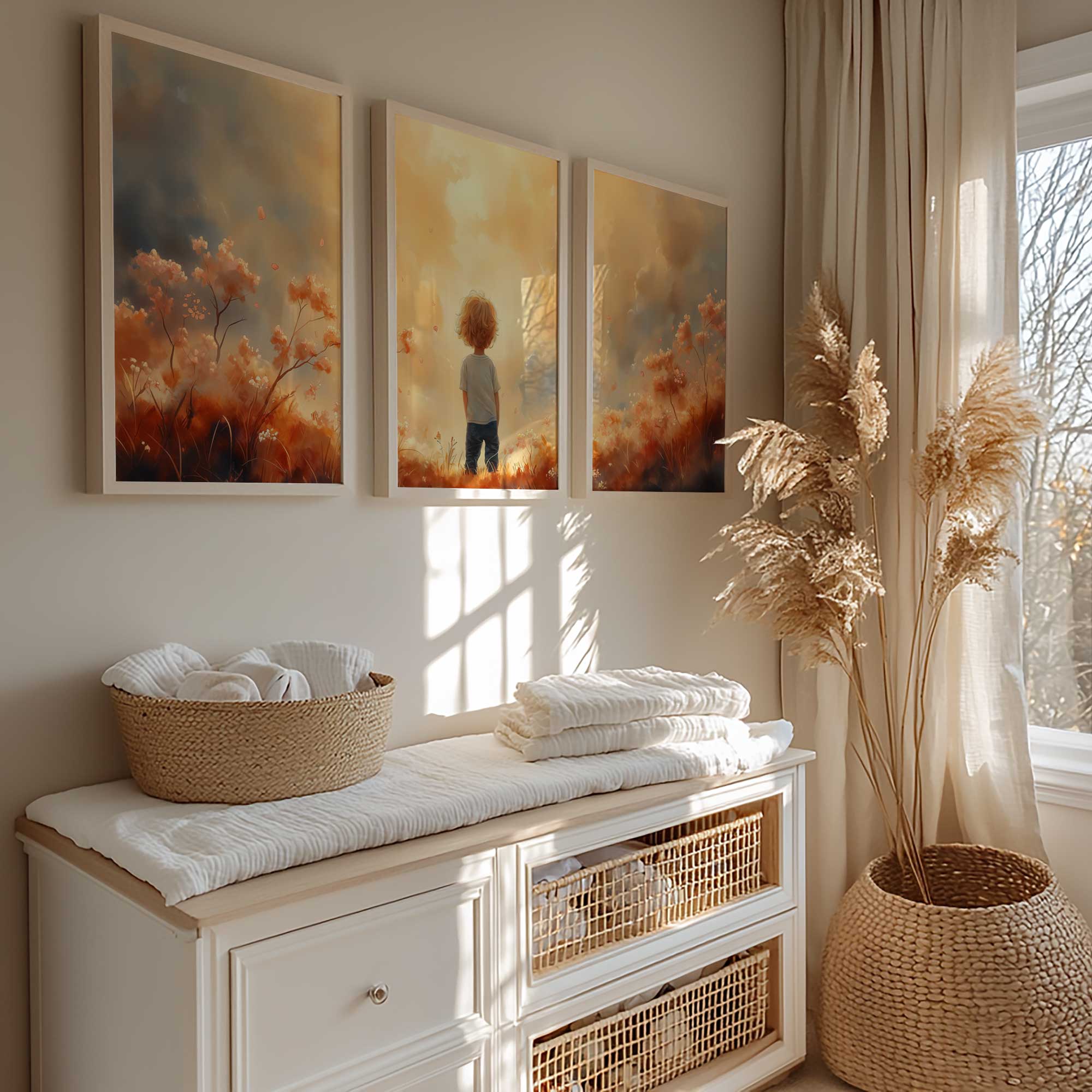 Jongen in Bloeiend Landschap onder Kleurrijke Hemel
