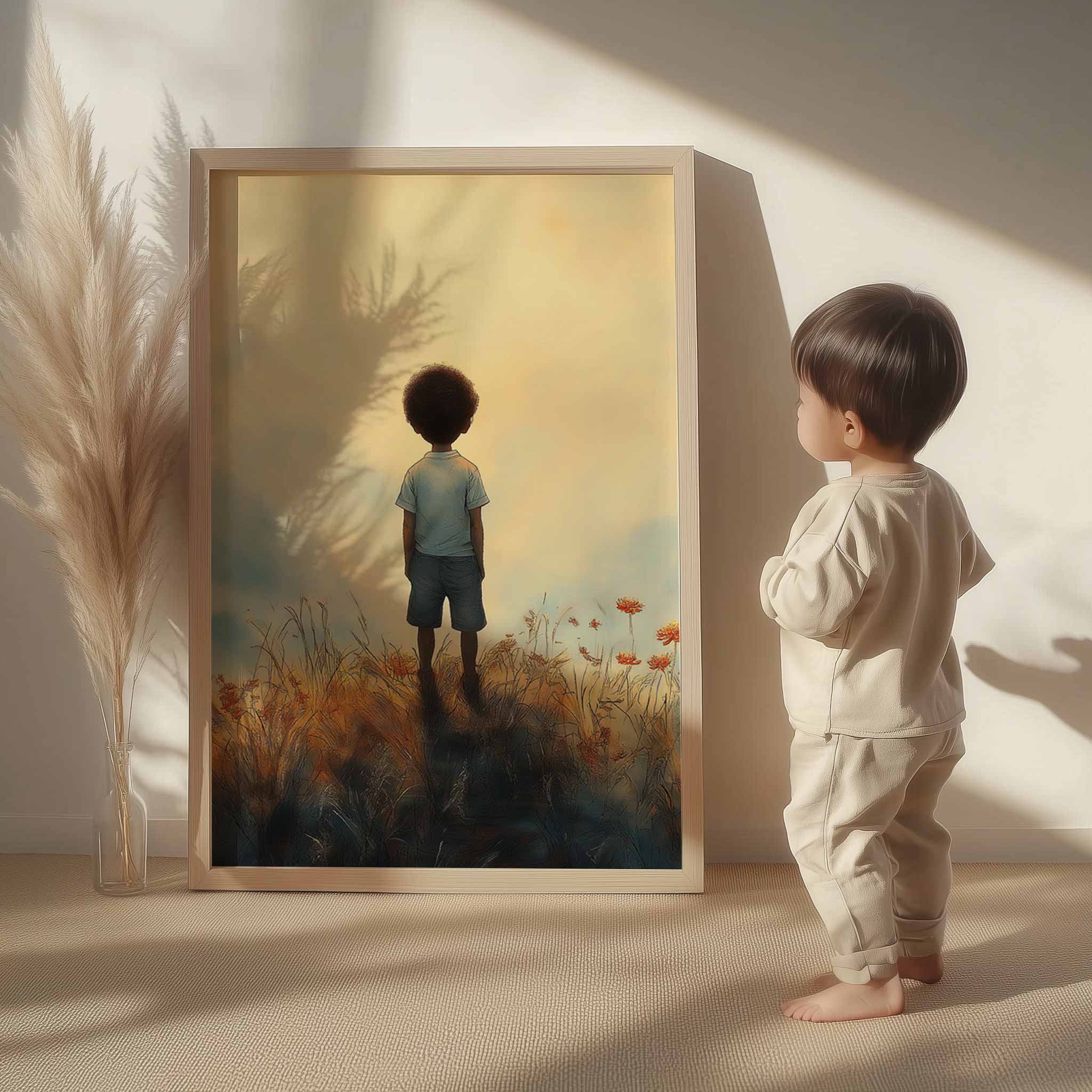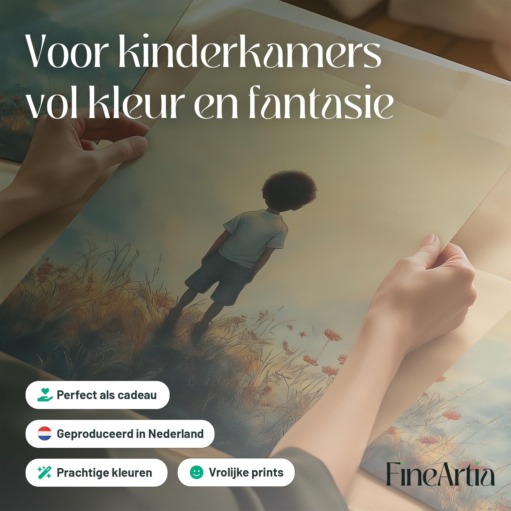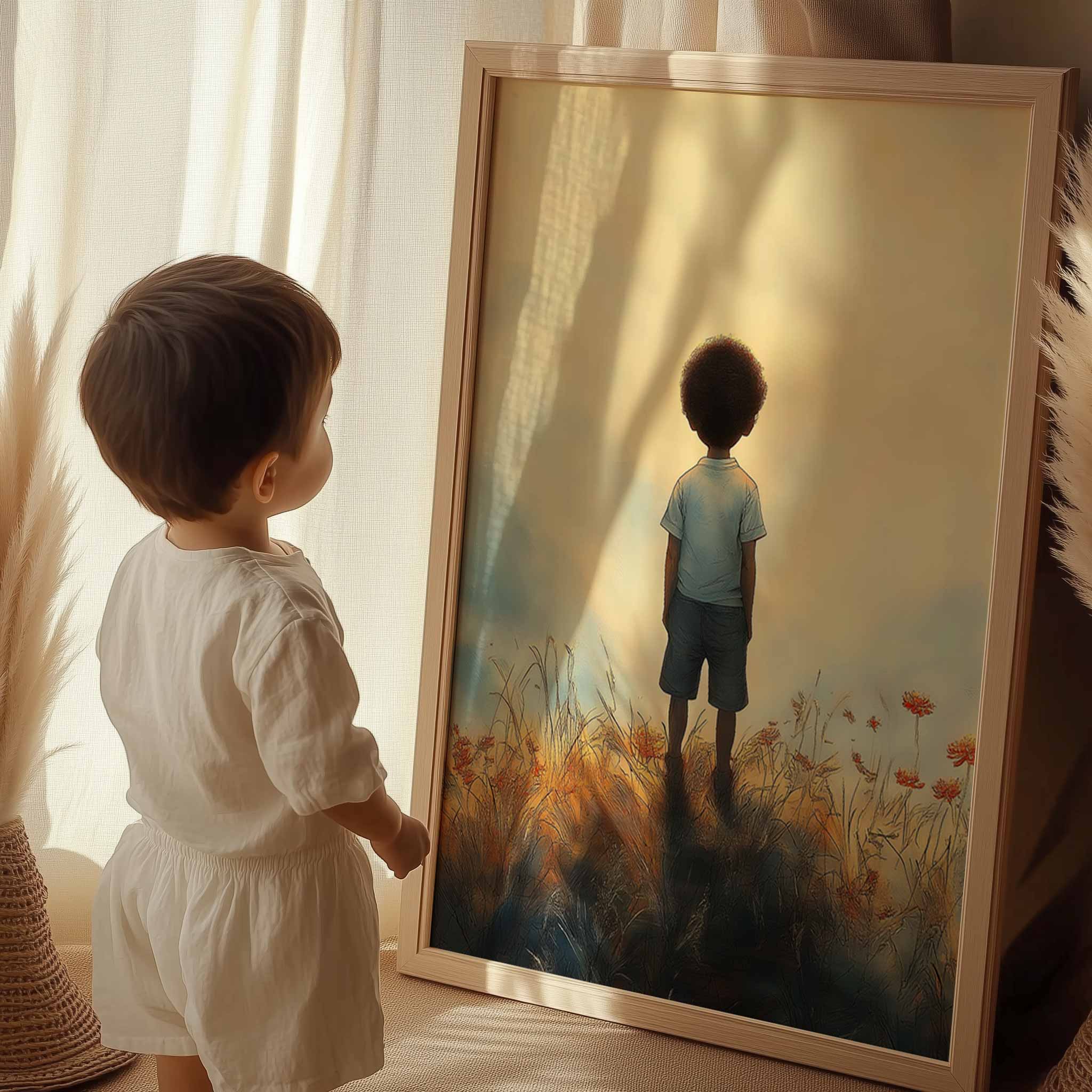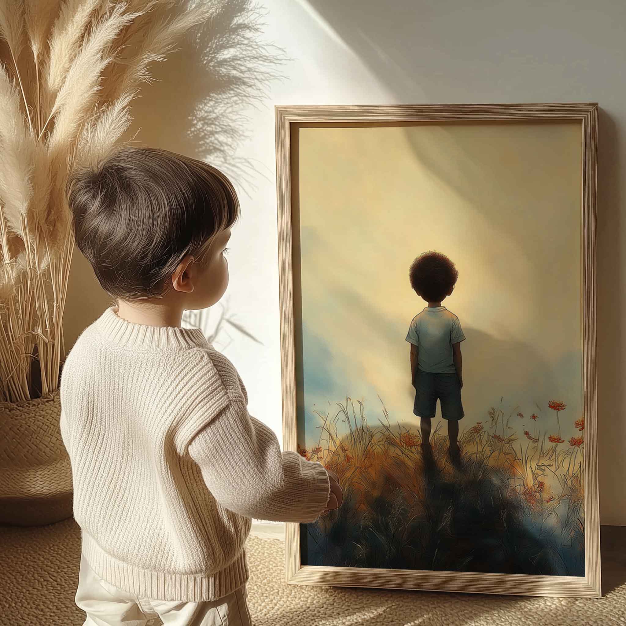 Terug naar collectie Posters Jongen in Bloemenveld: Onschuld en Verwondering
