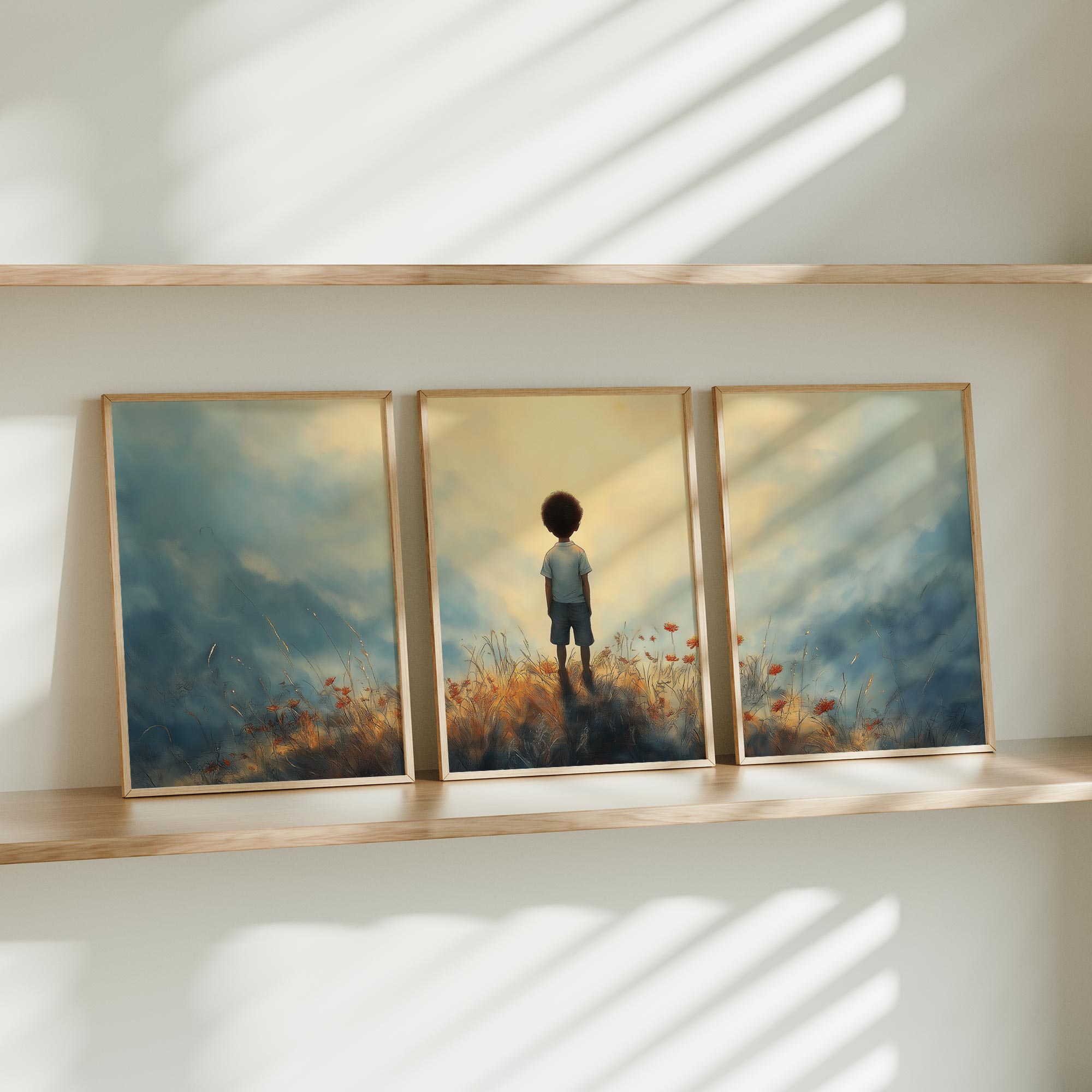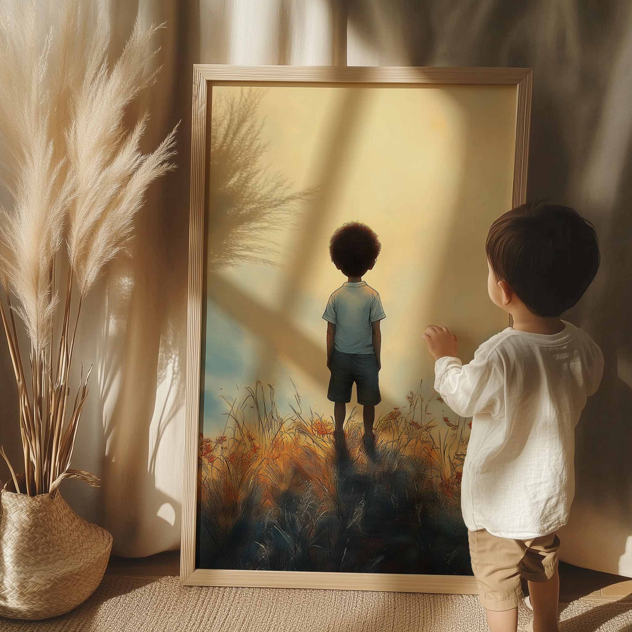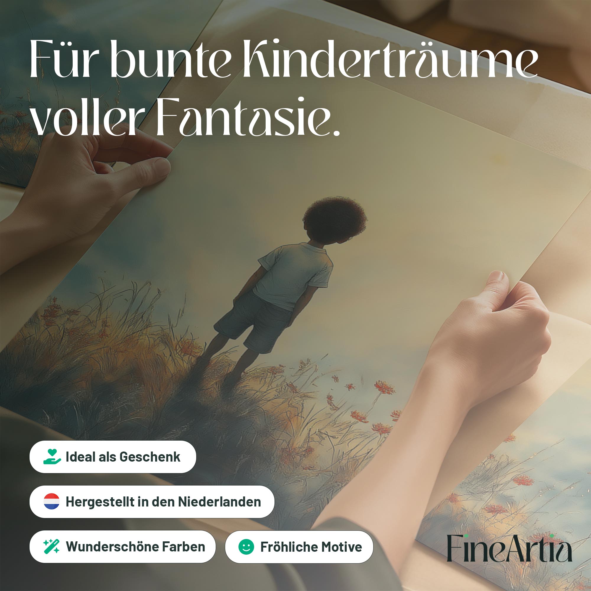Terug naar collectie Posters Jongen in Bloemenveld: Onschuld en Verwondering