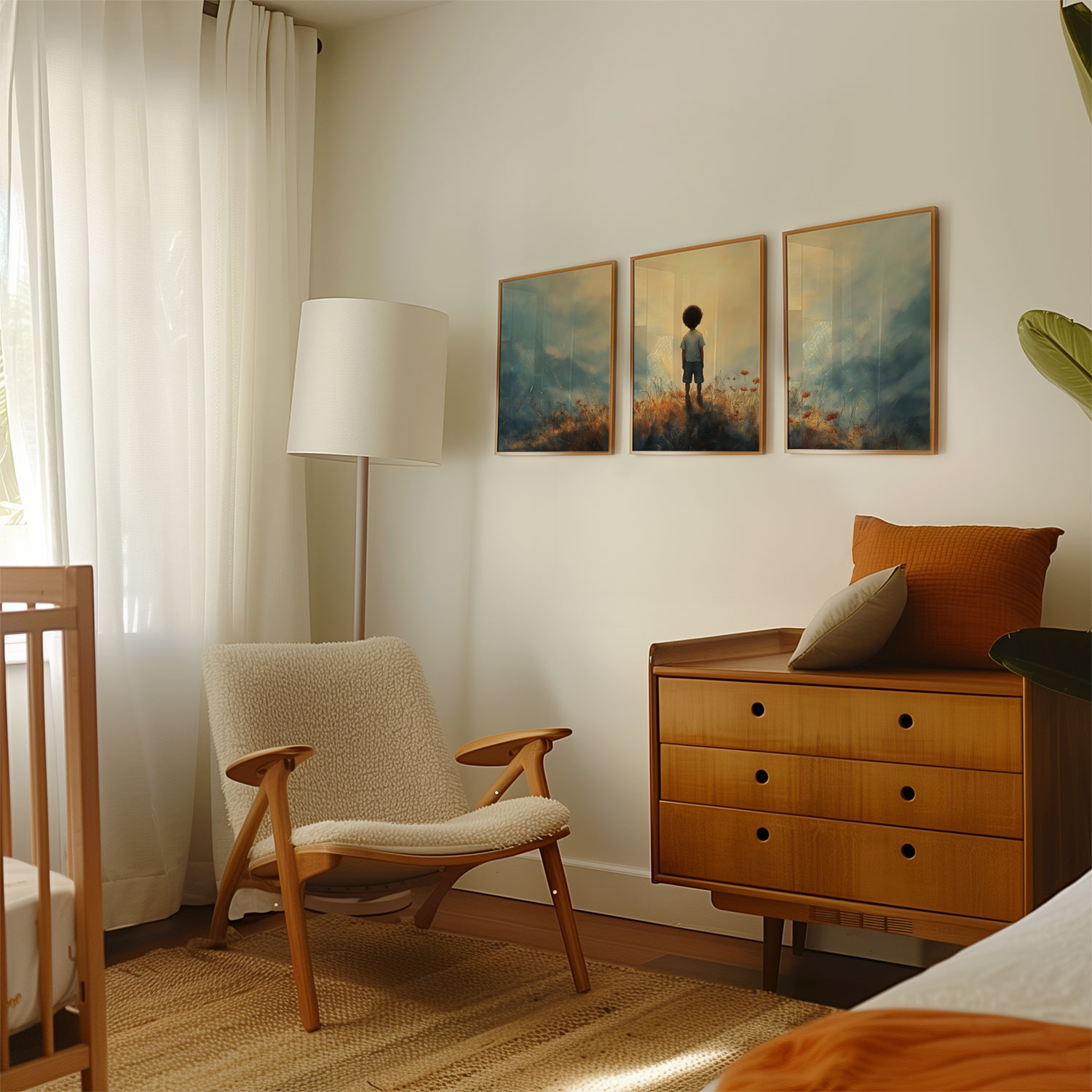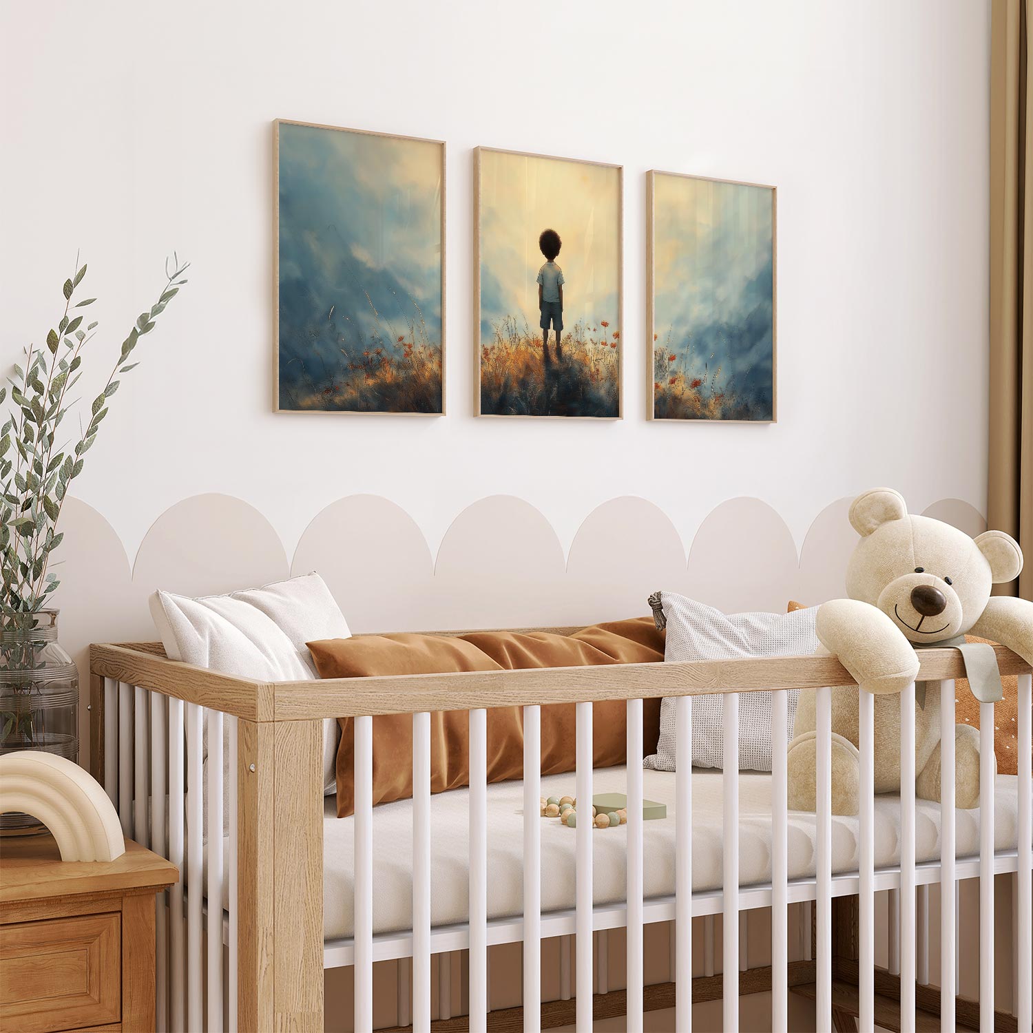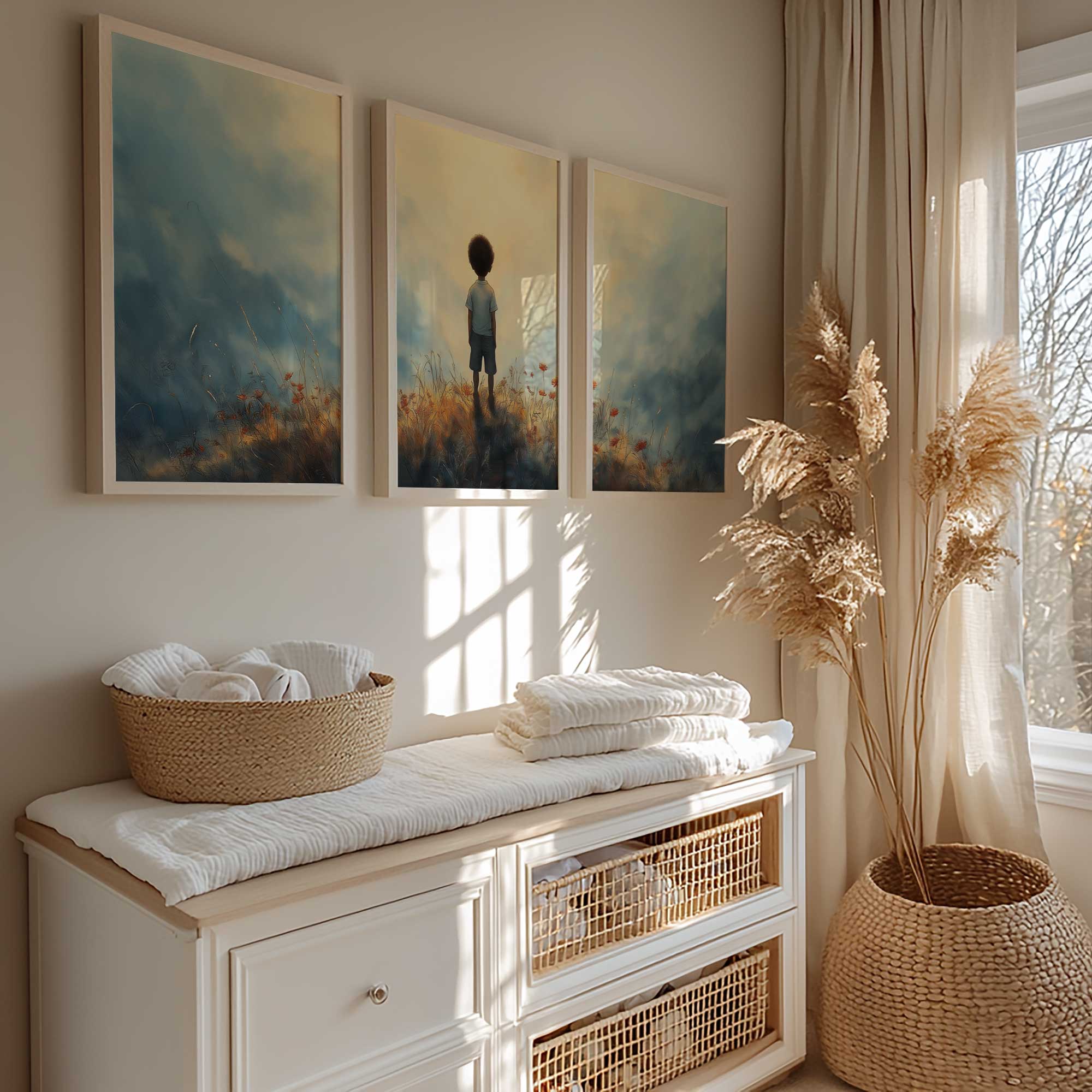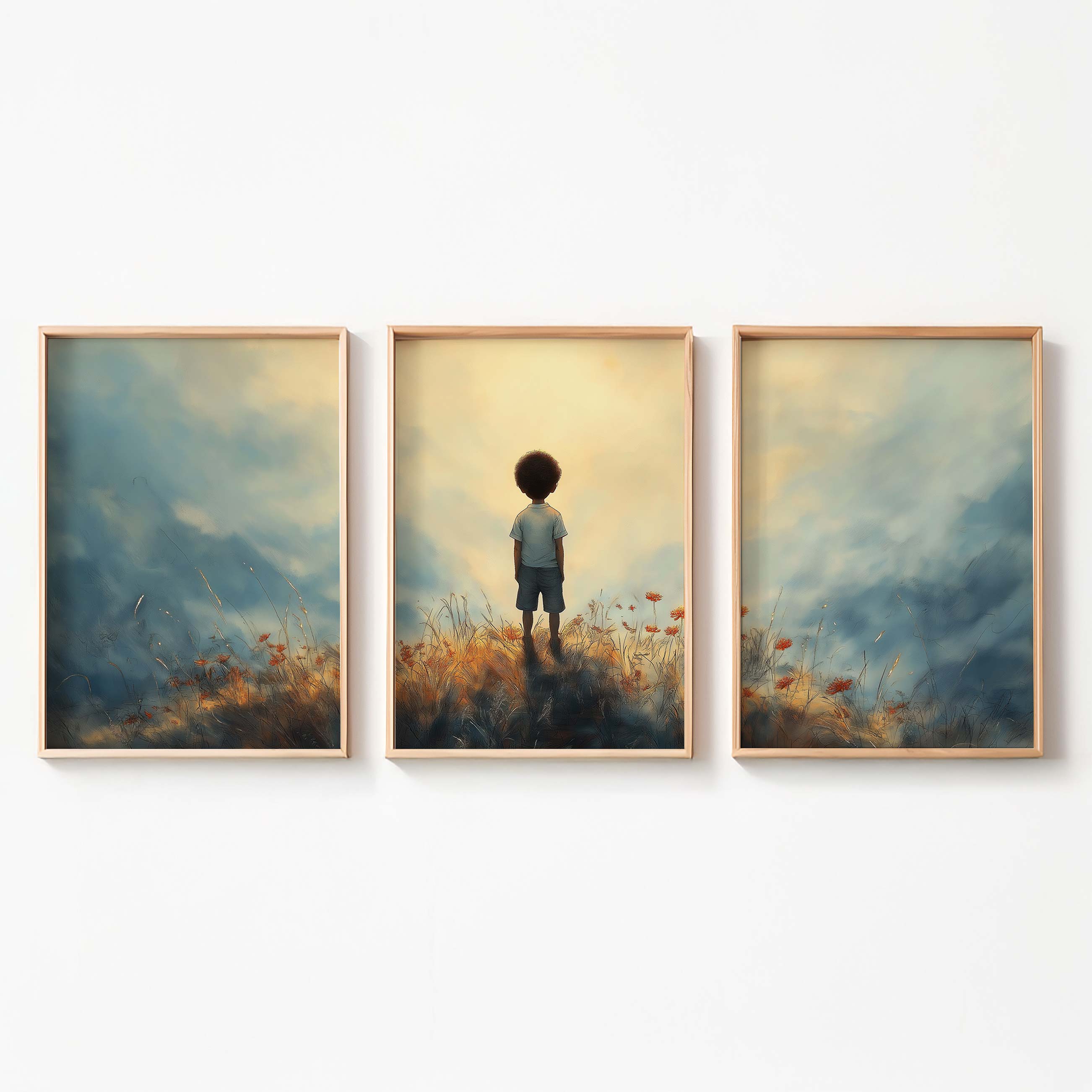Terug naar collectie Posters Jongen in Bloemenveld: Onschuld en Verwondering