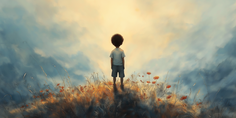 Jongen in Bloemenveld: Onschuld en Verwondering
