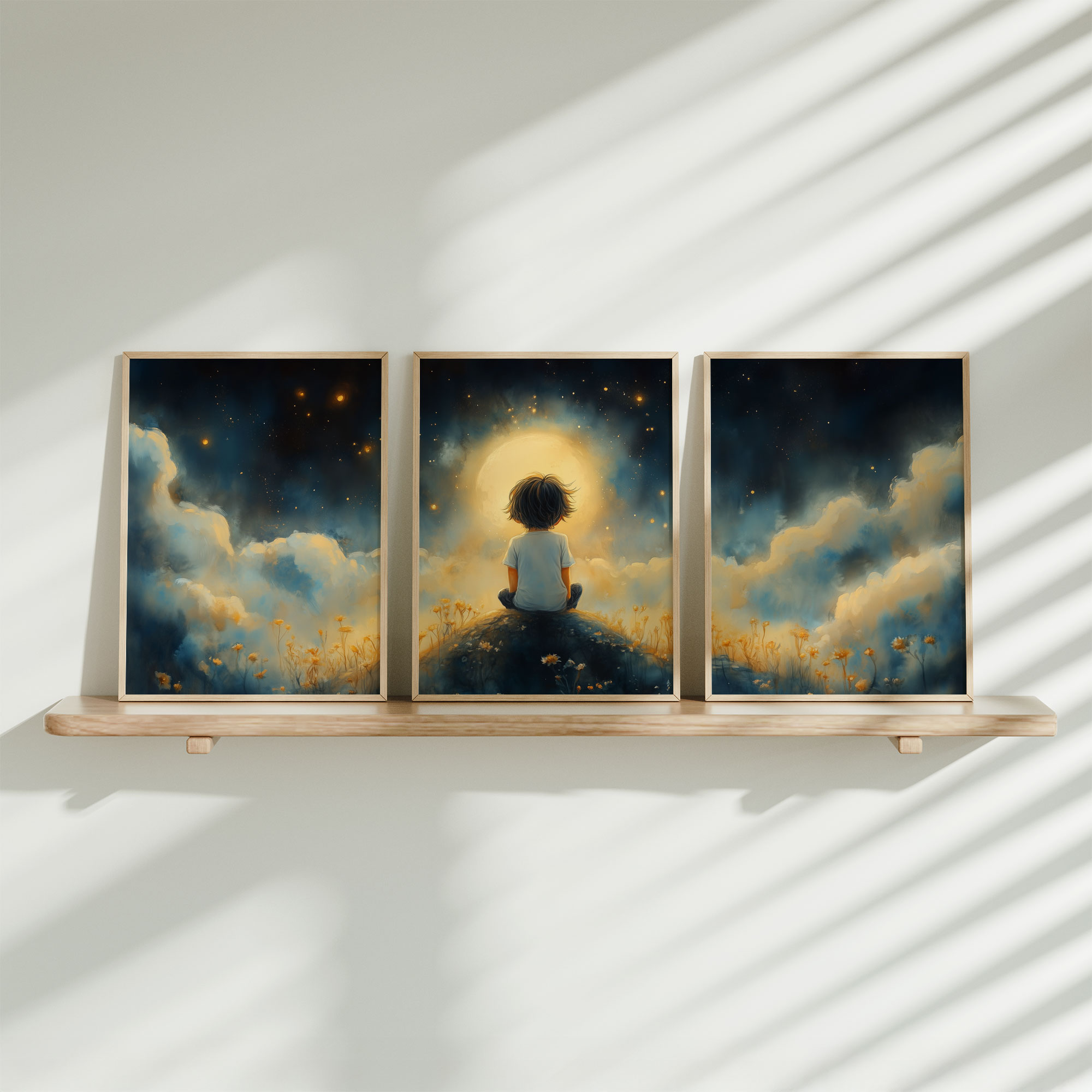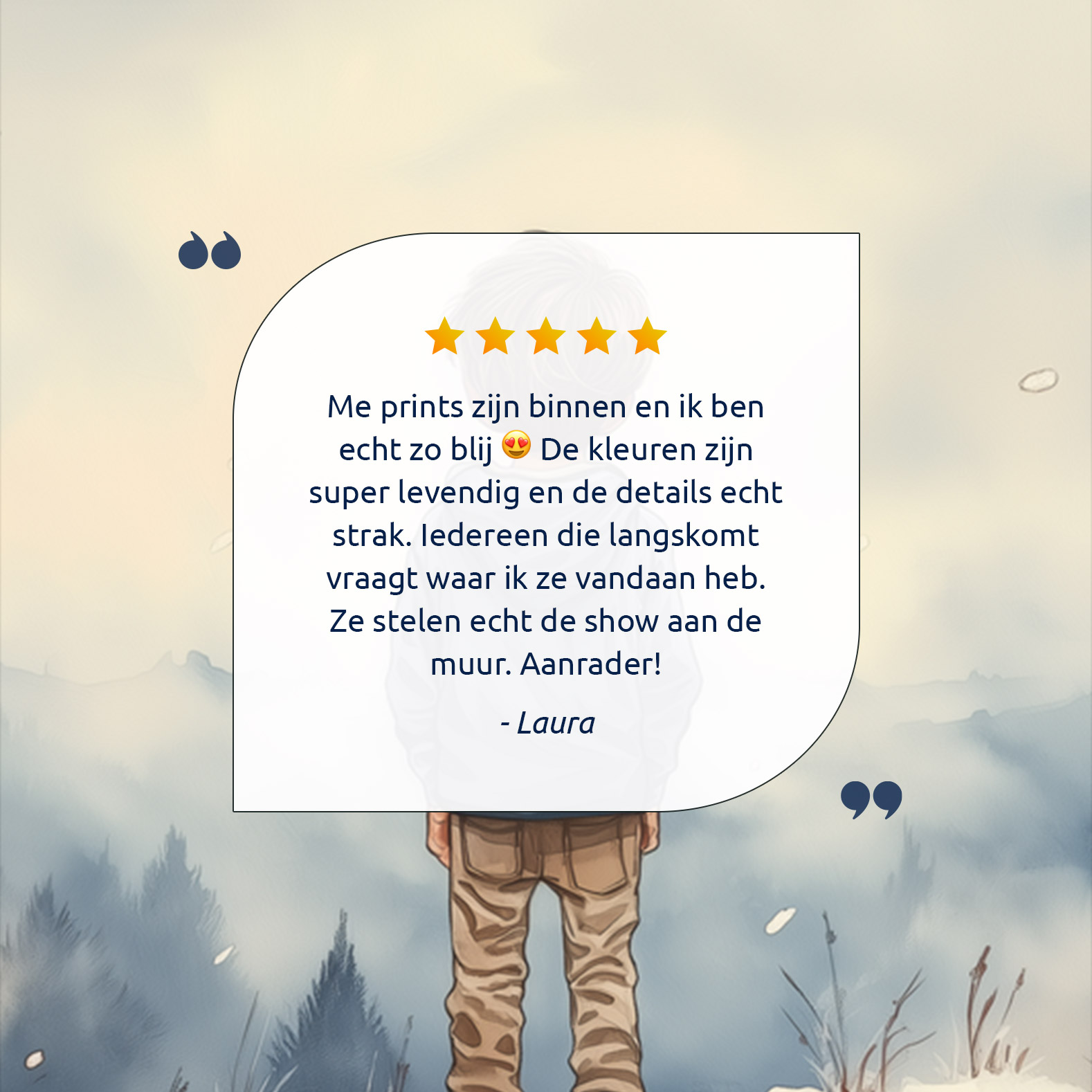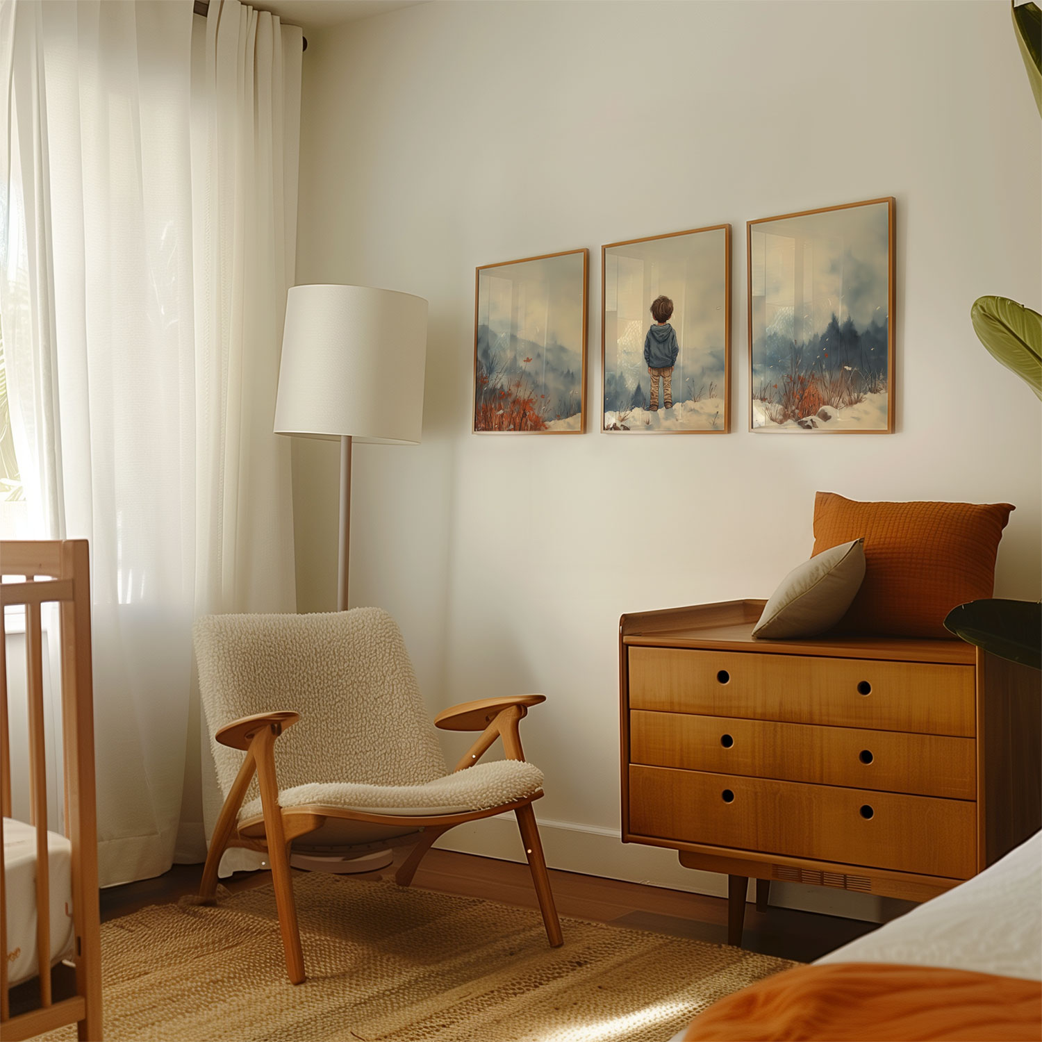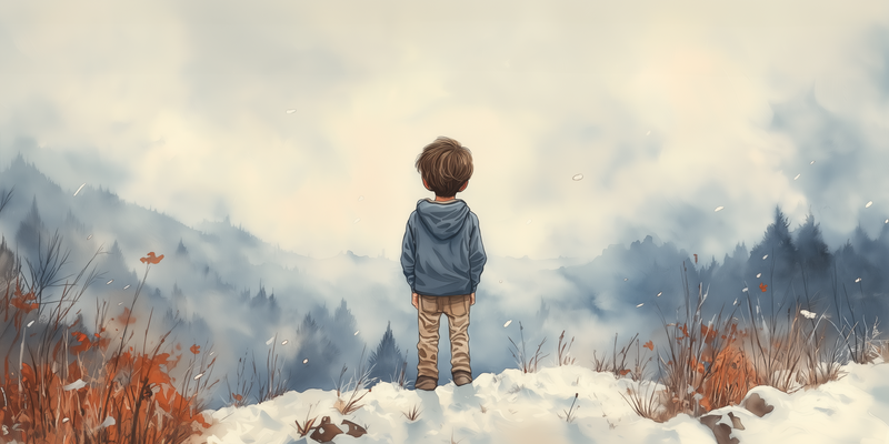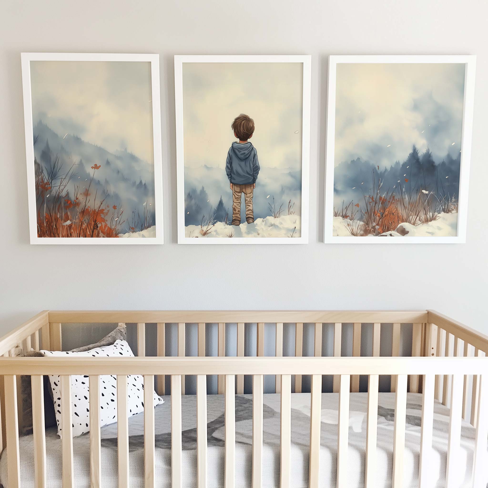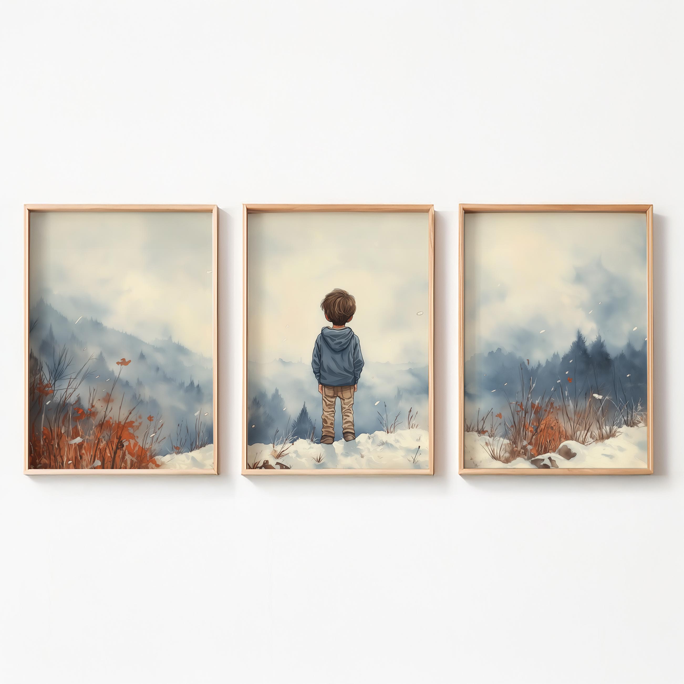 Terug naar collectie Posters Jongen in de sneeuw: Dromerig winters landschap