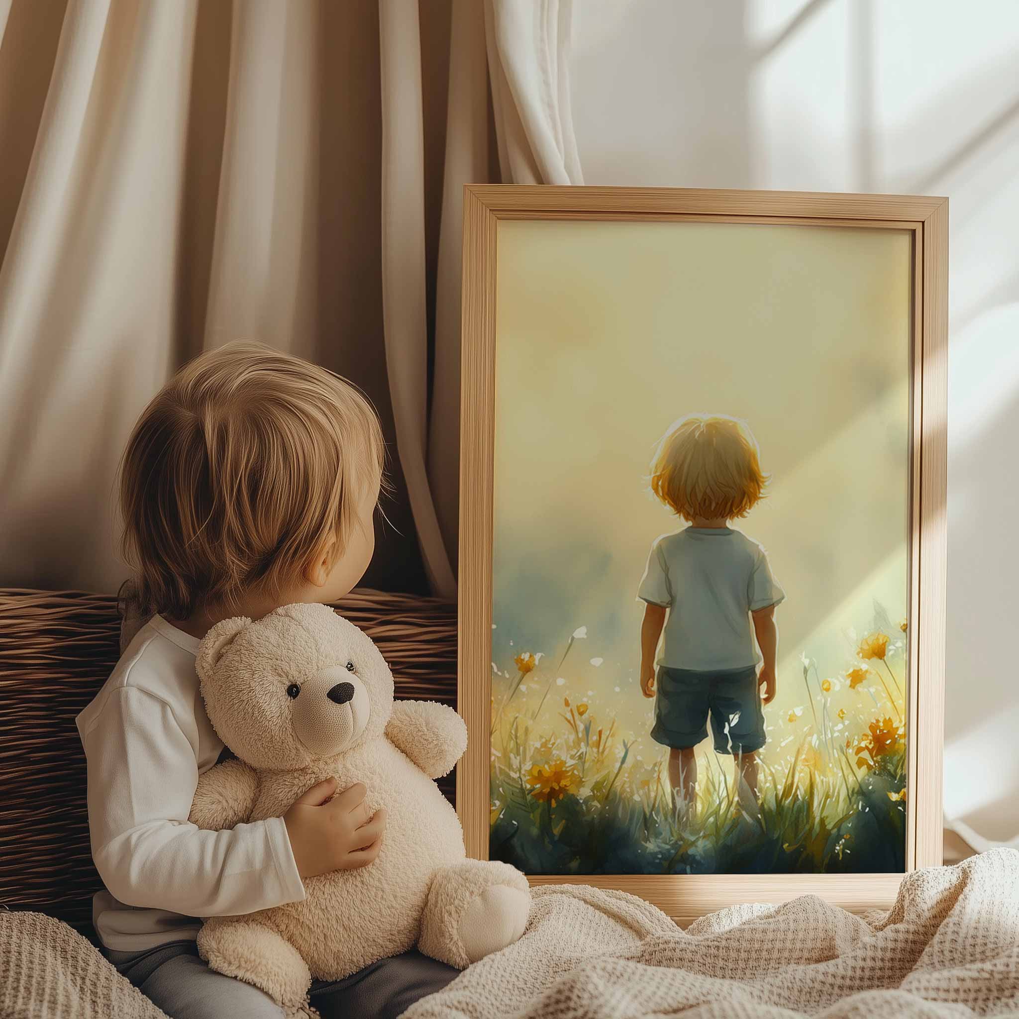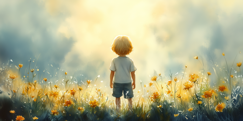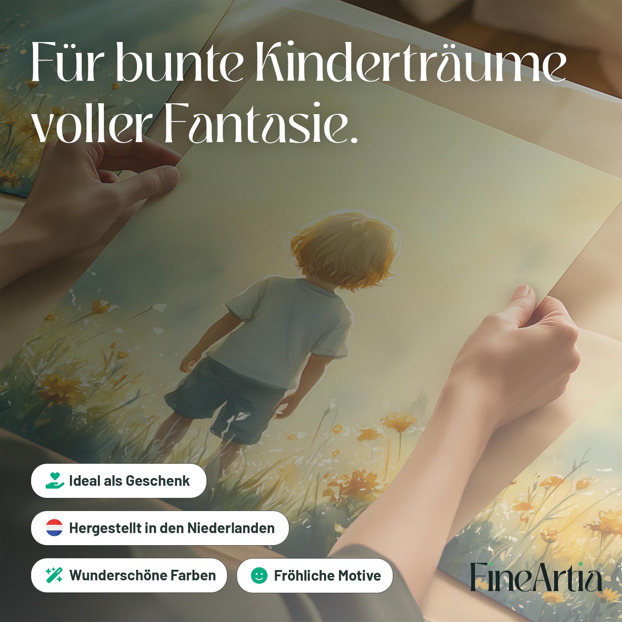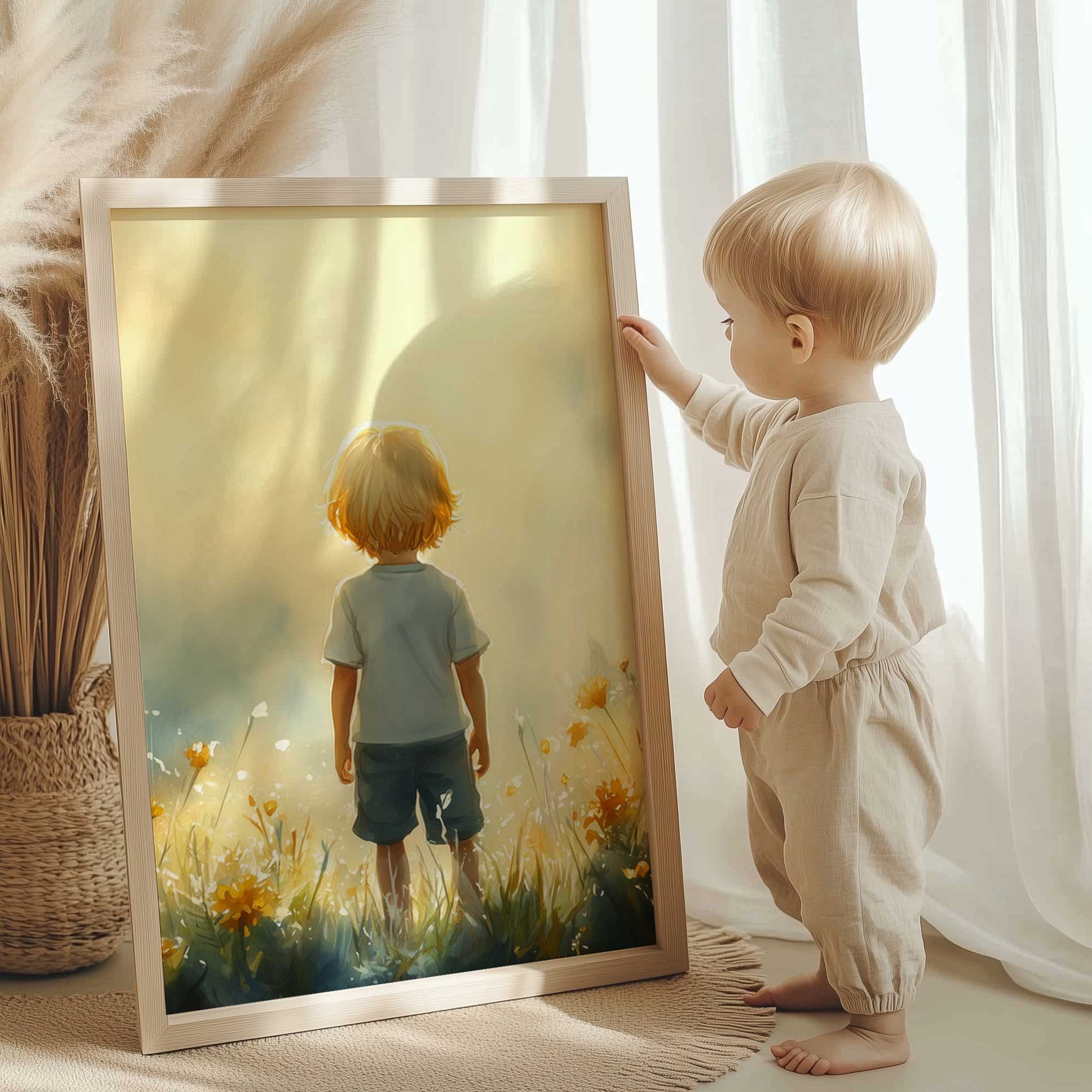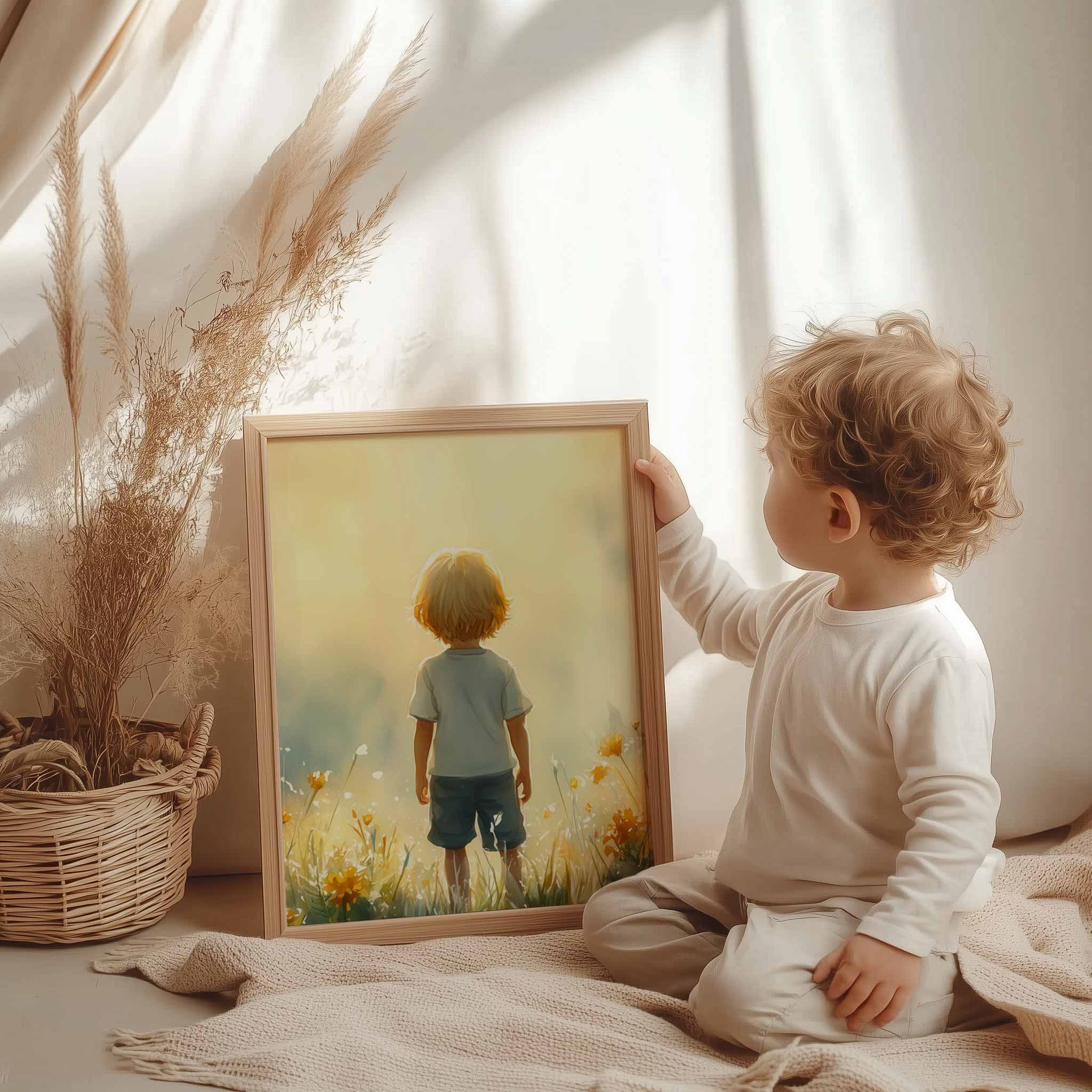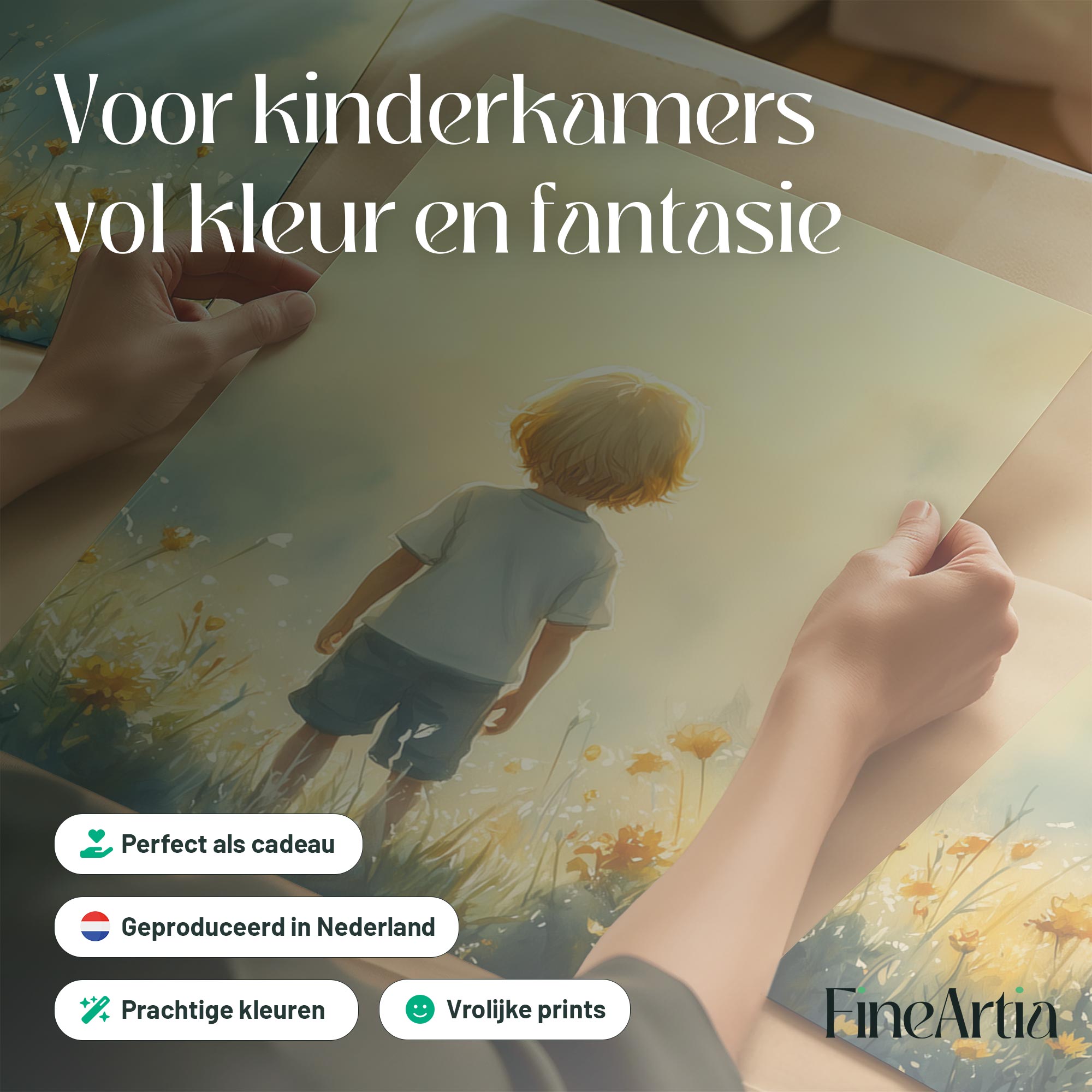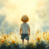 Jongen in Gele Bloemenveld – Dromerige Illustratie