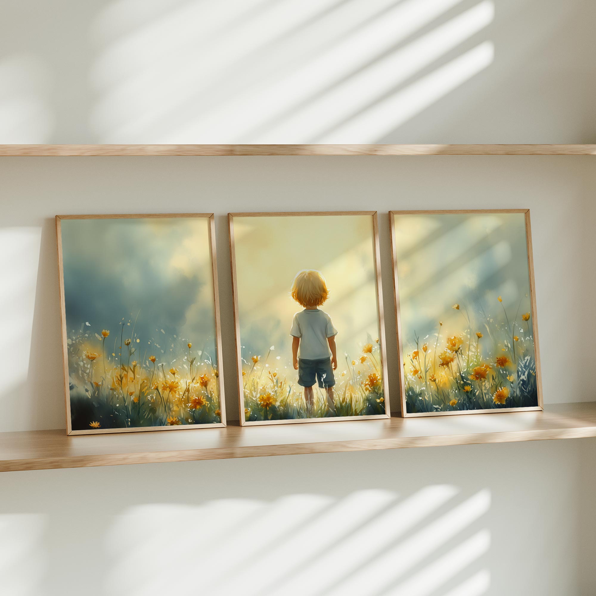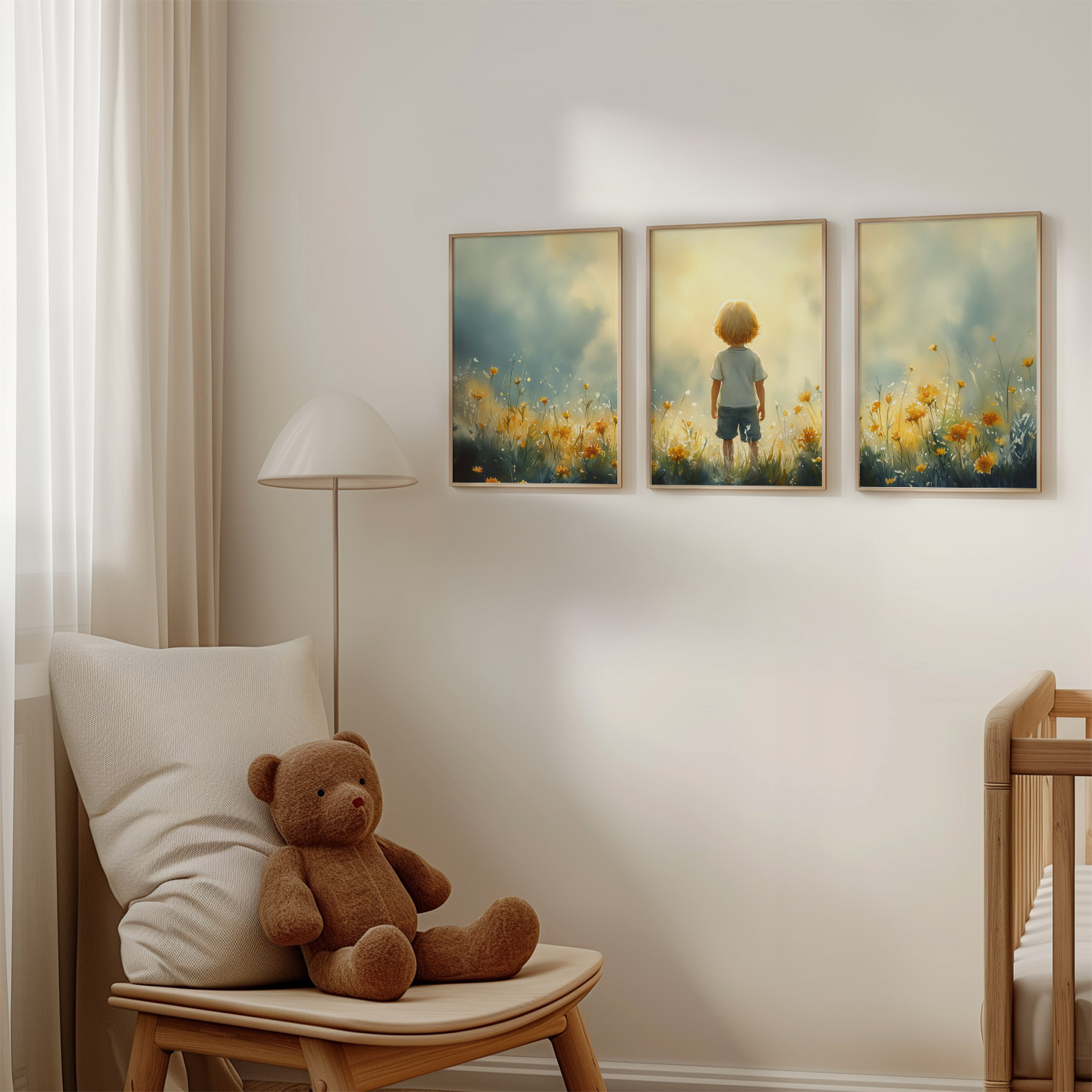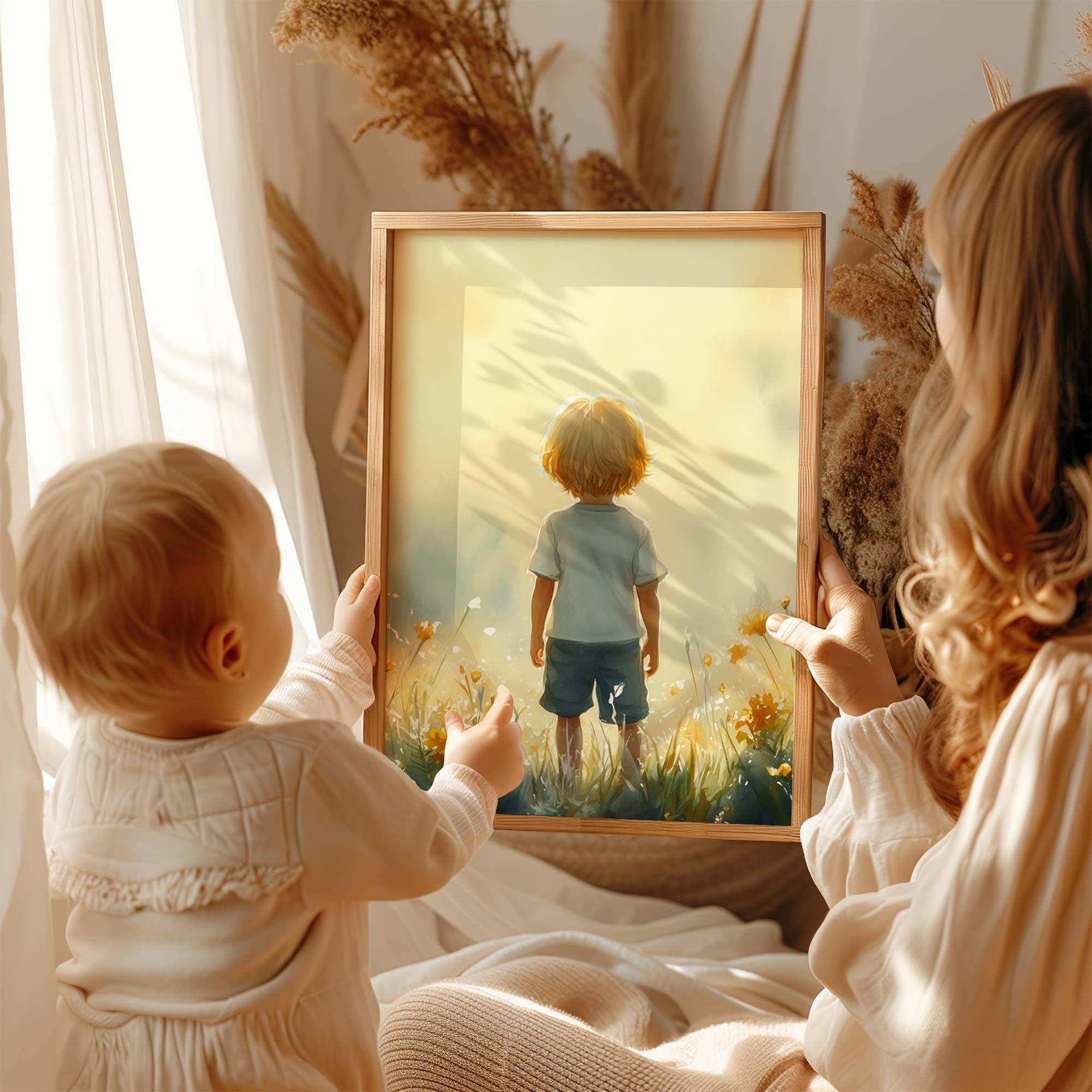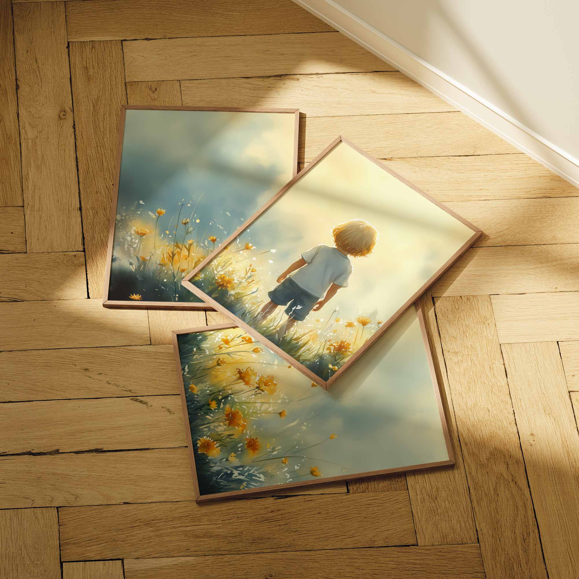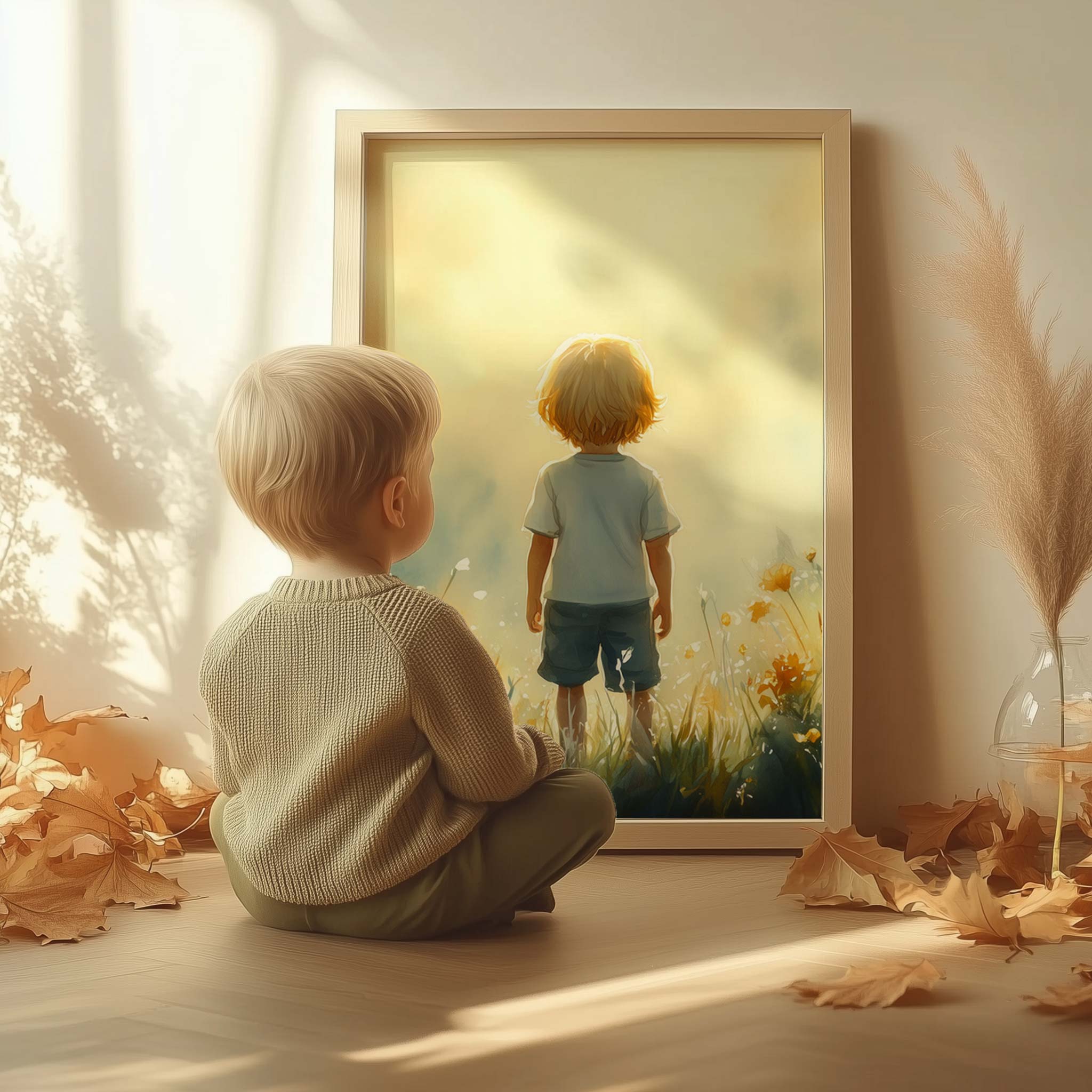 Jongen in Gele Bloemenveld – Dromerige Illustratie