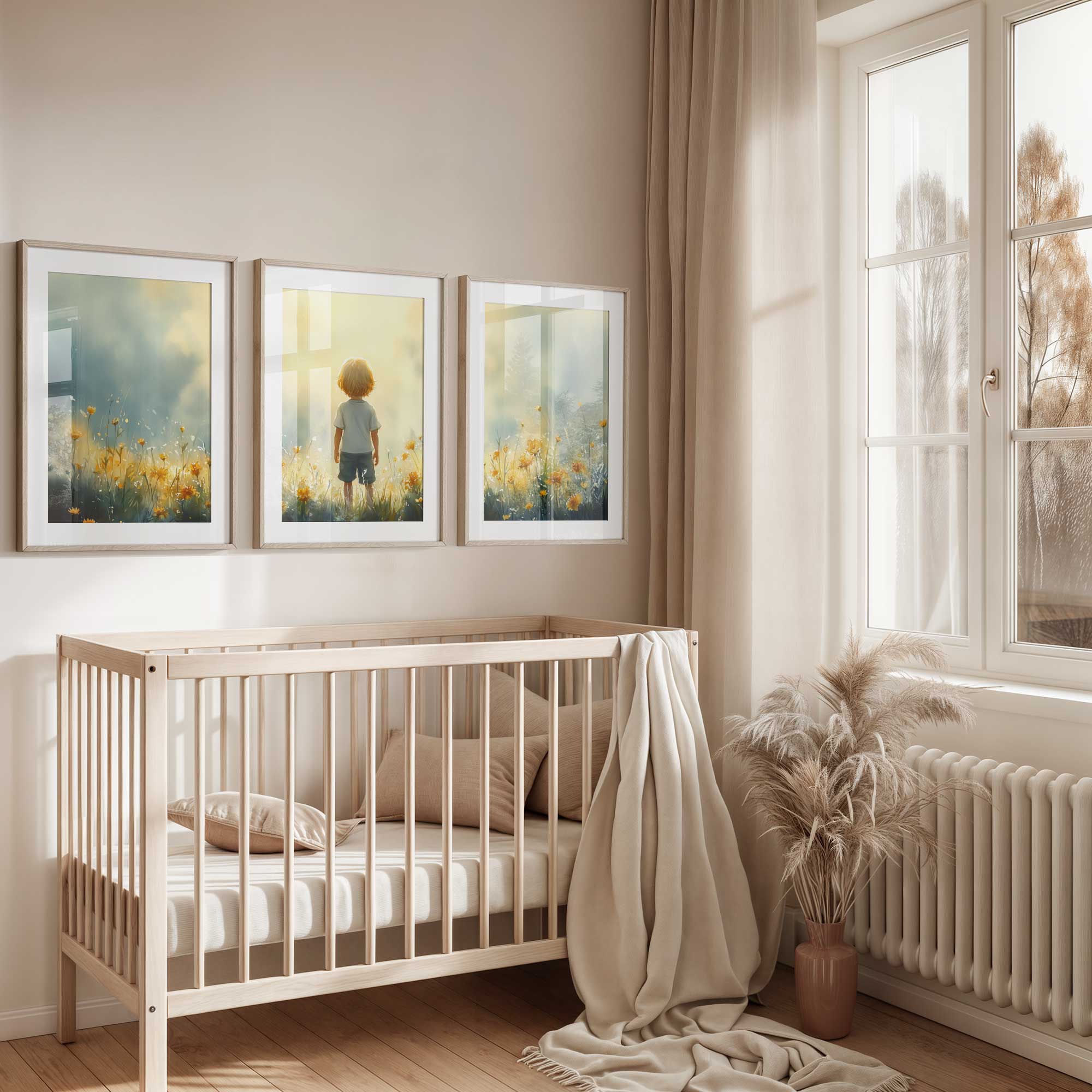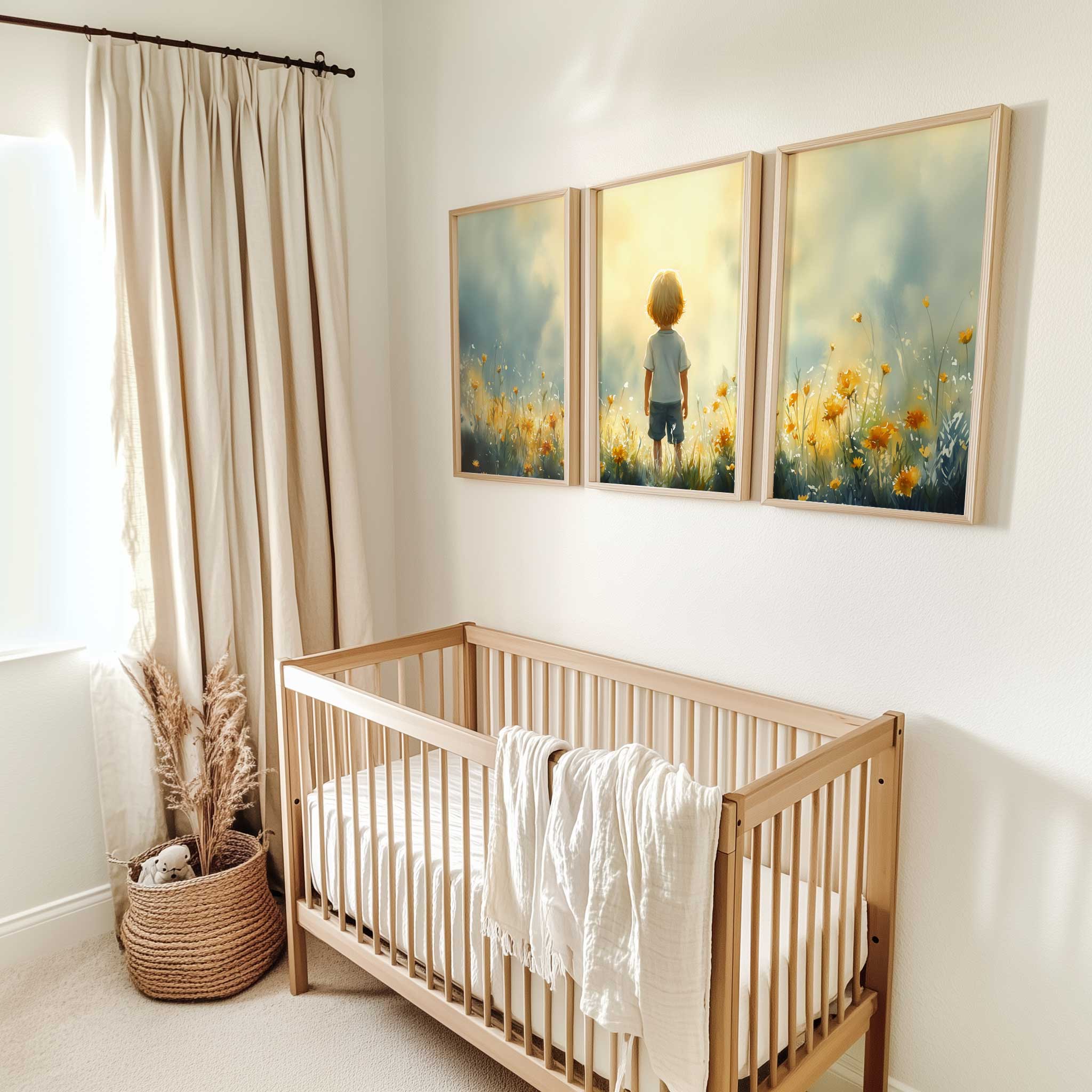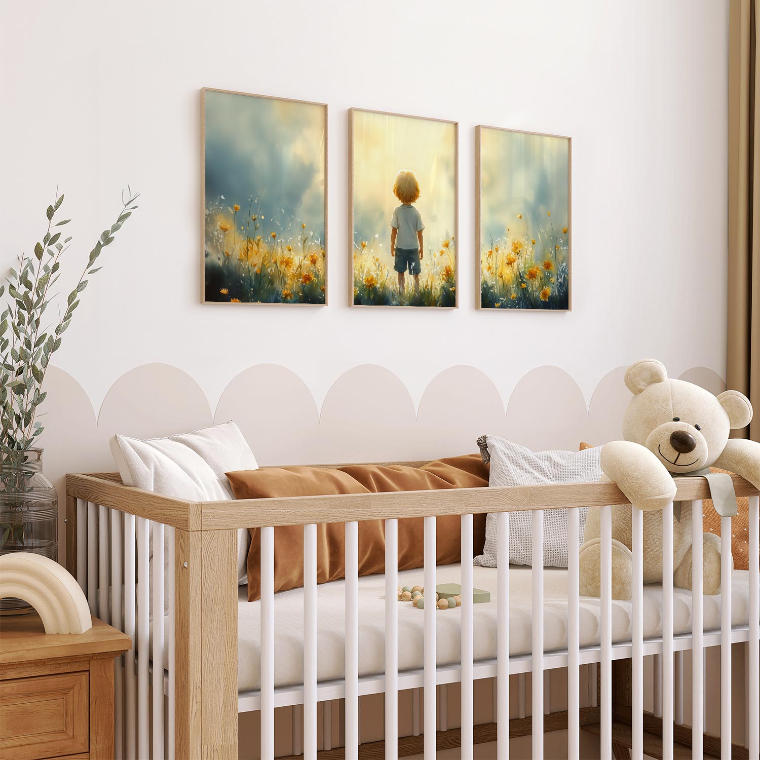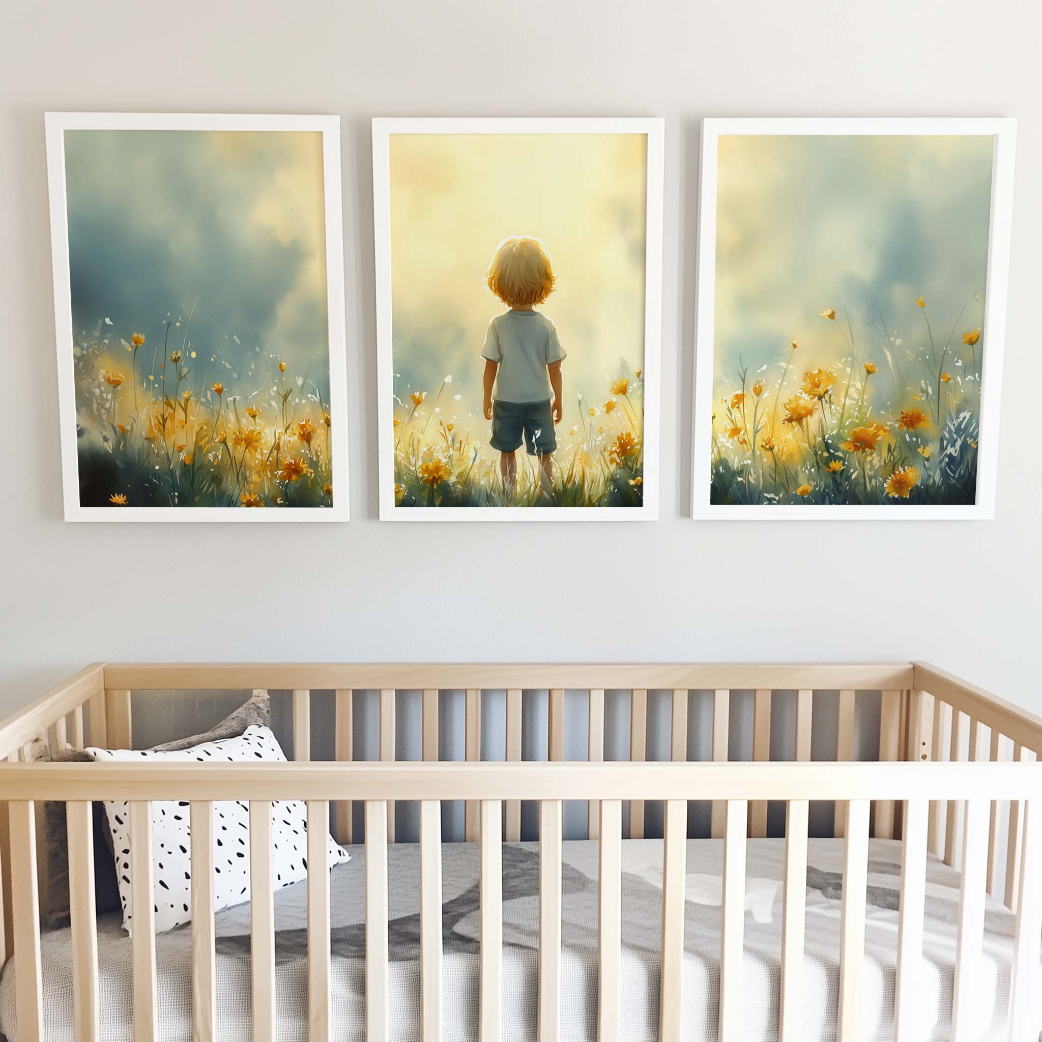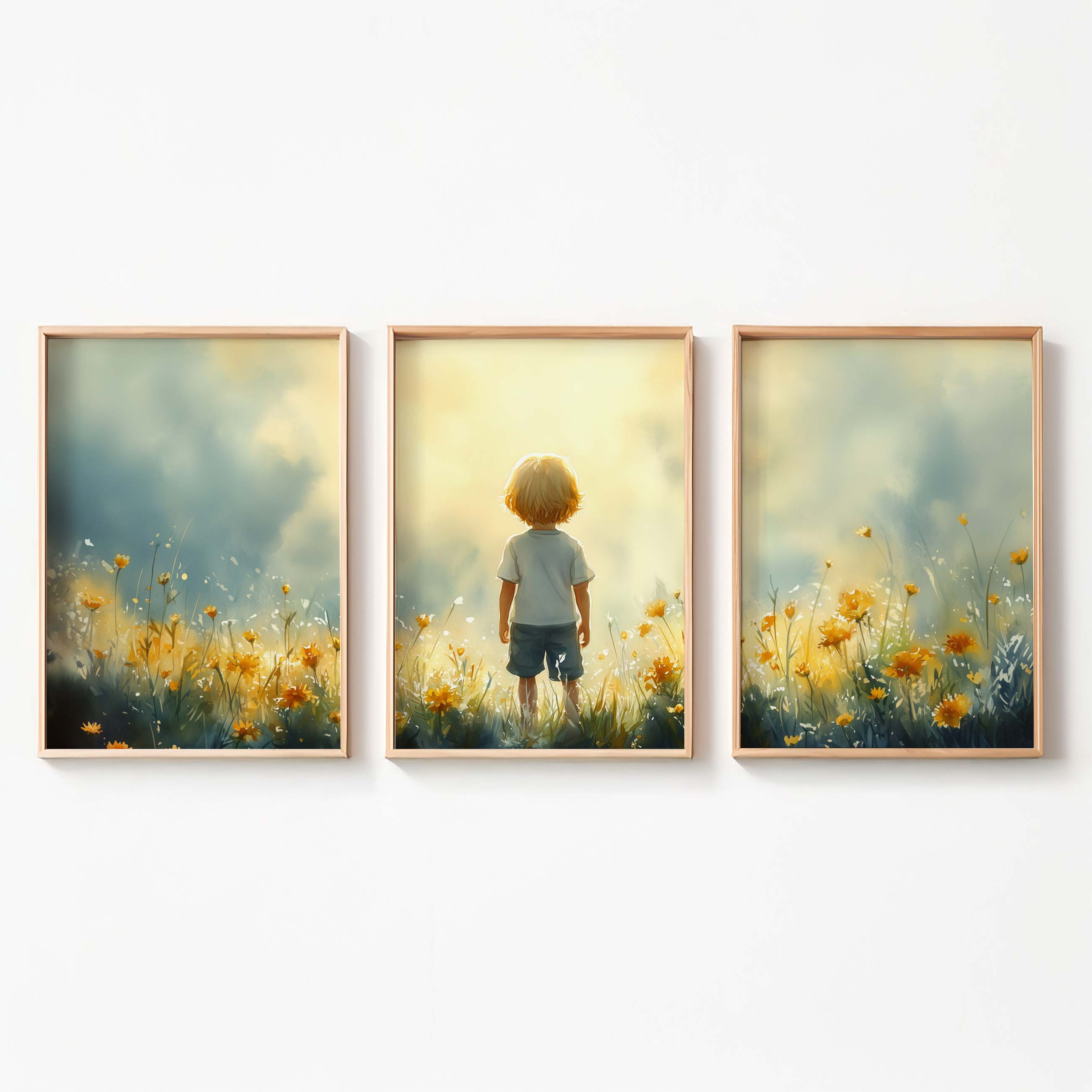 Jongen in Gele Bloemenveld – Dromerige Illustratie