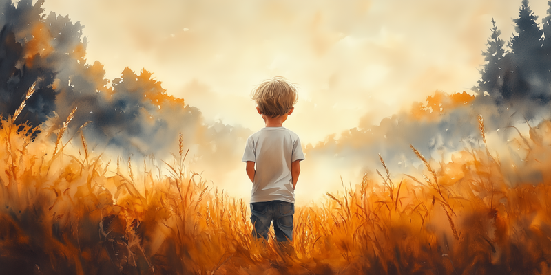 Terug naar collectie Posters Jongen in Gouden Gras – Dromerig Landschap