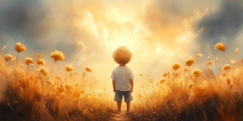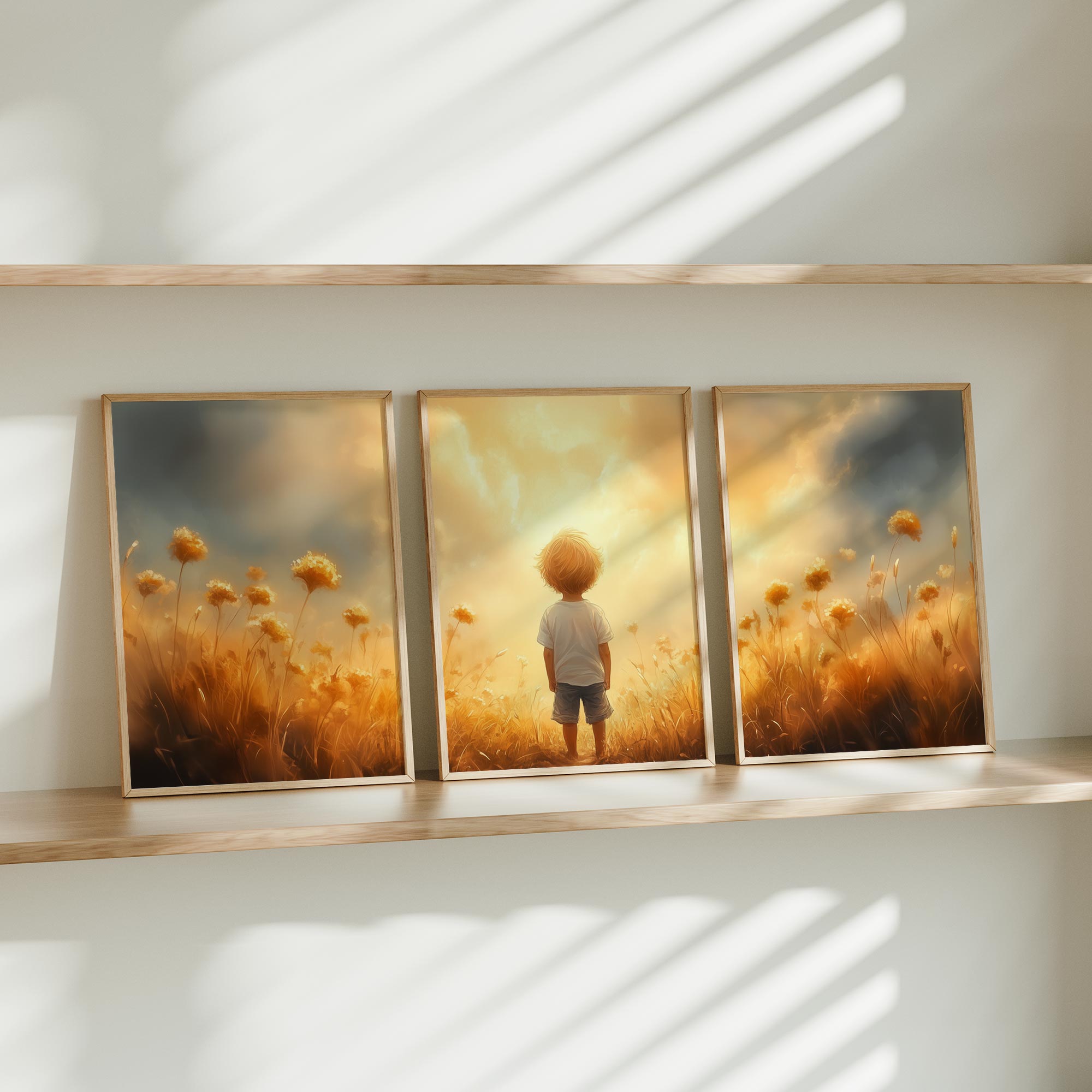 Terug naar collectie Posters Jongen in Gouden Gras: Dromerige Luchten