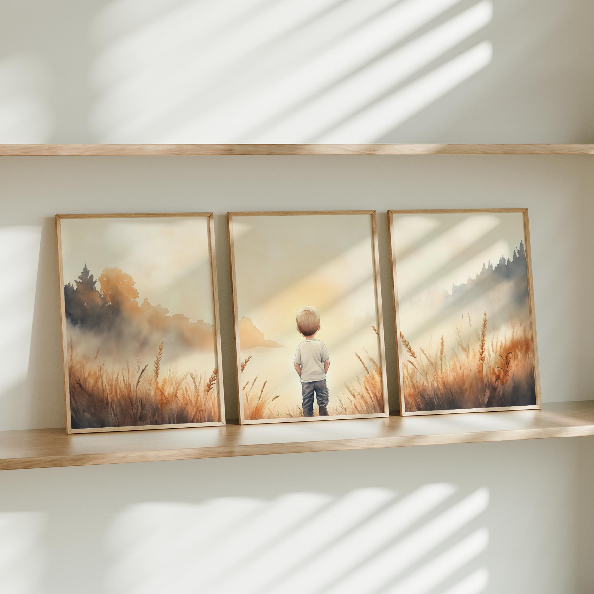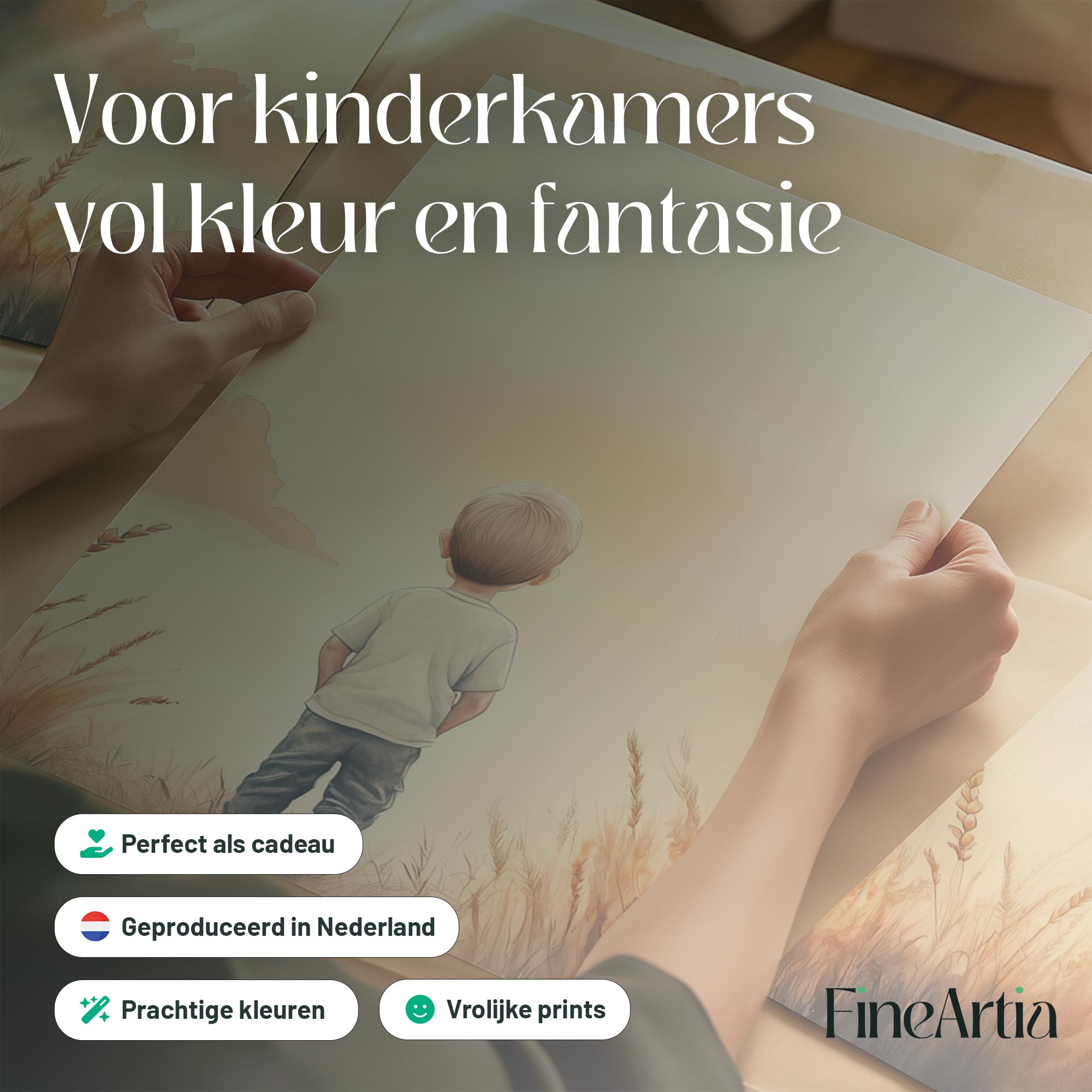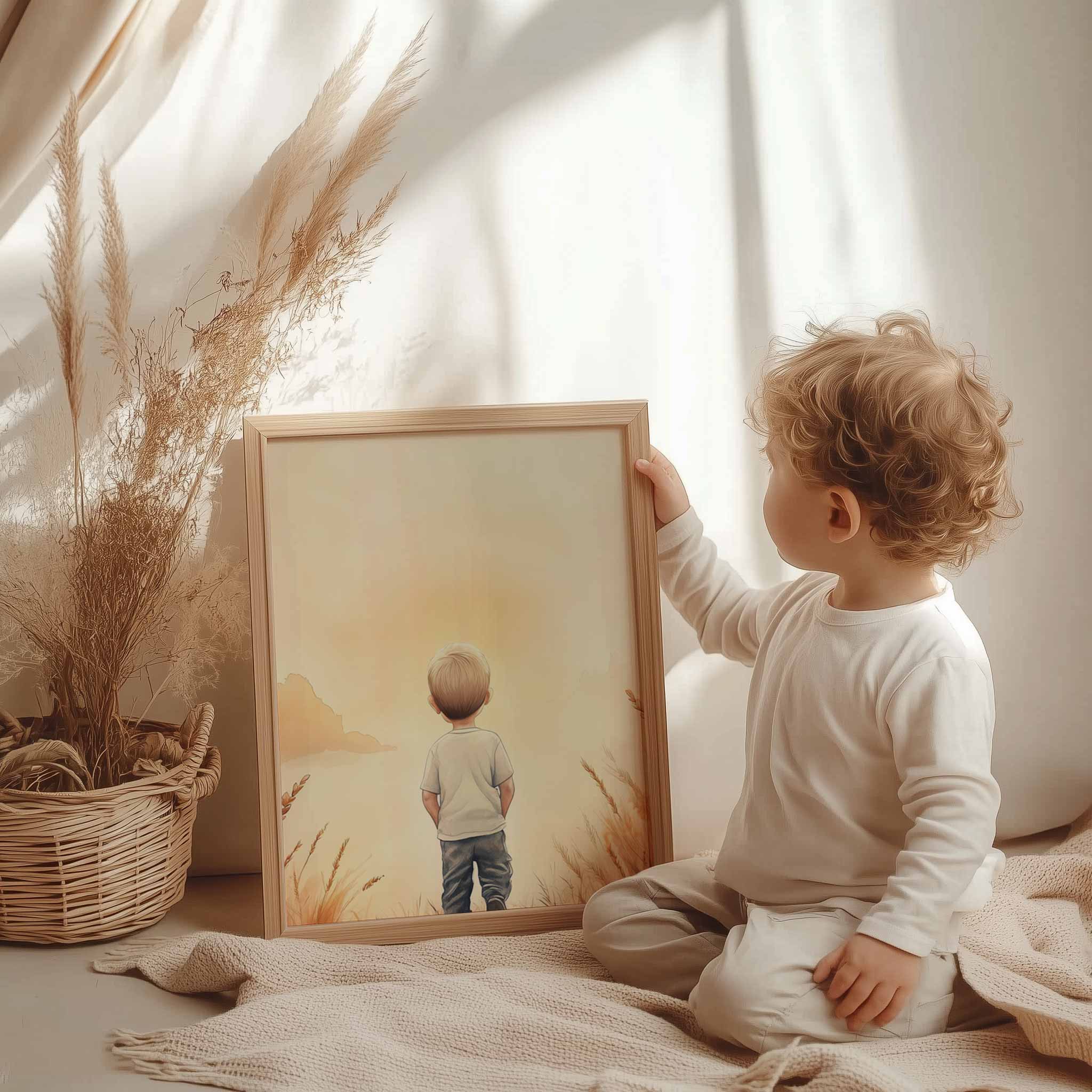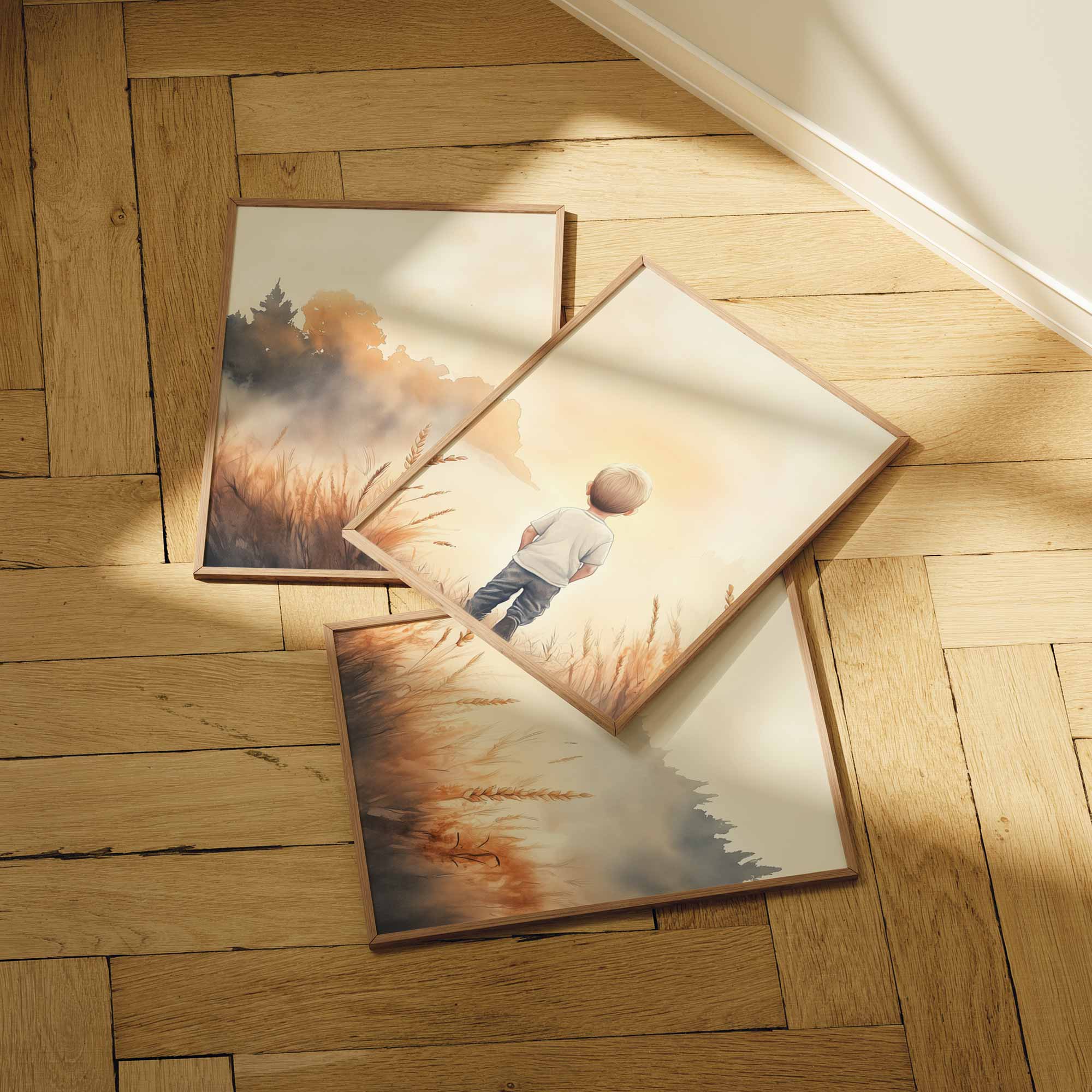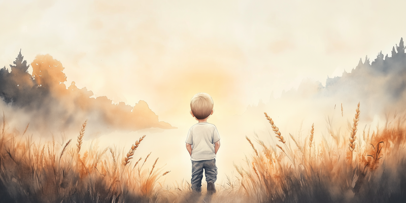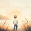 Jongen in Gouden Gras – Serene Horizon Illustratie