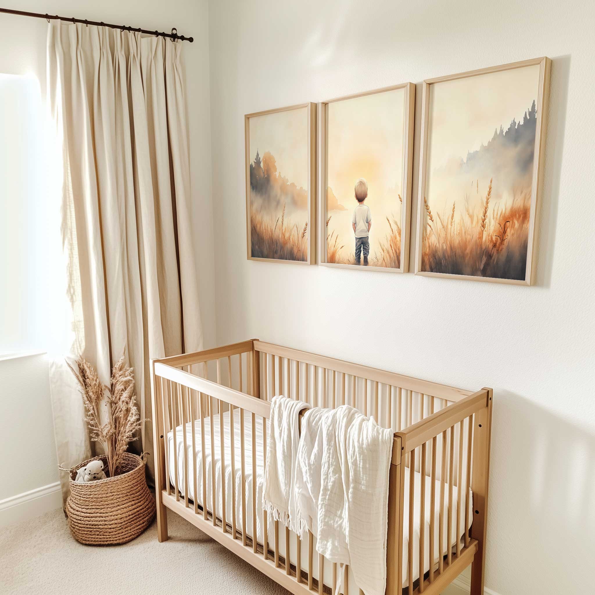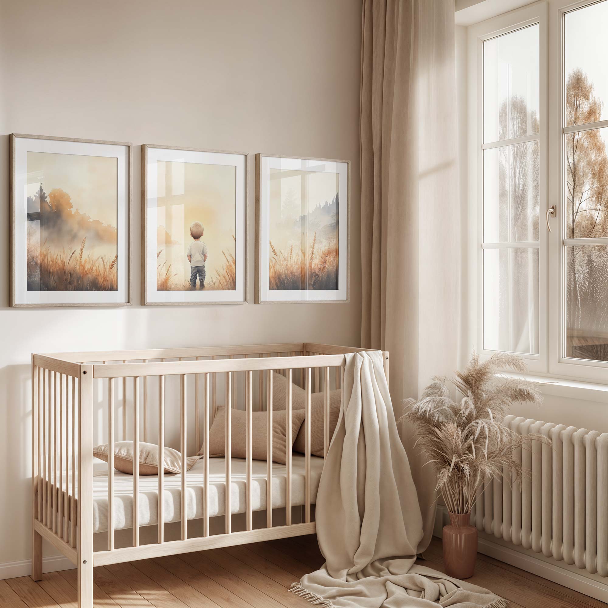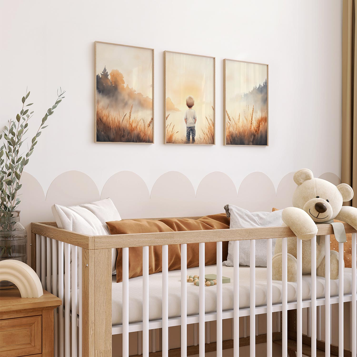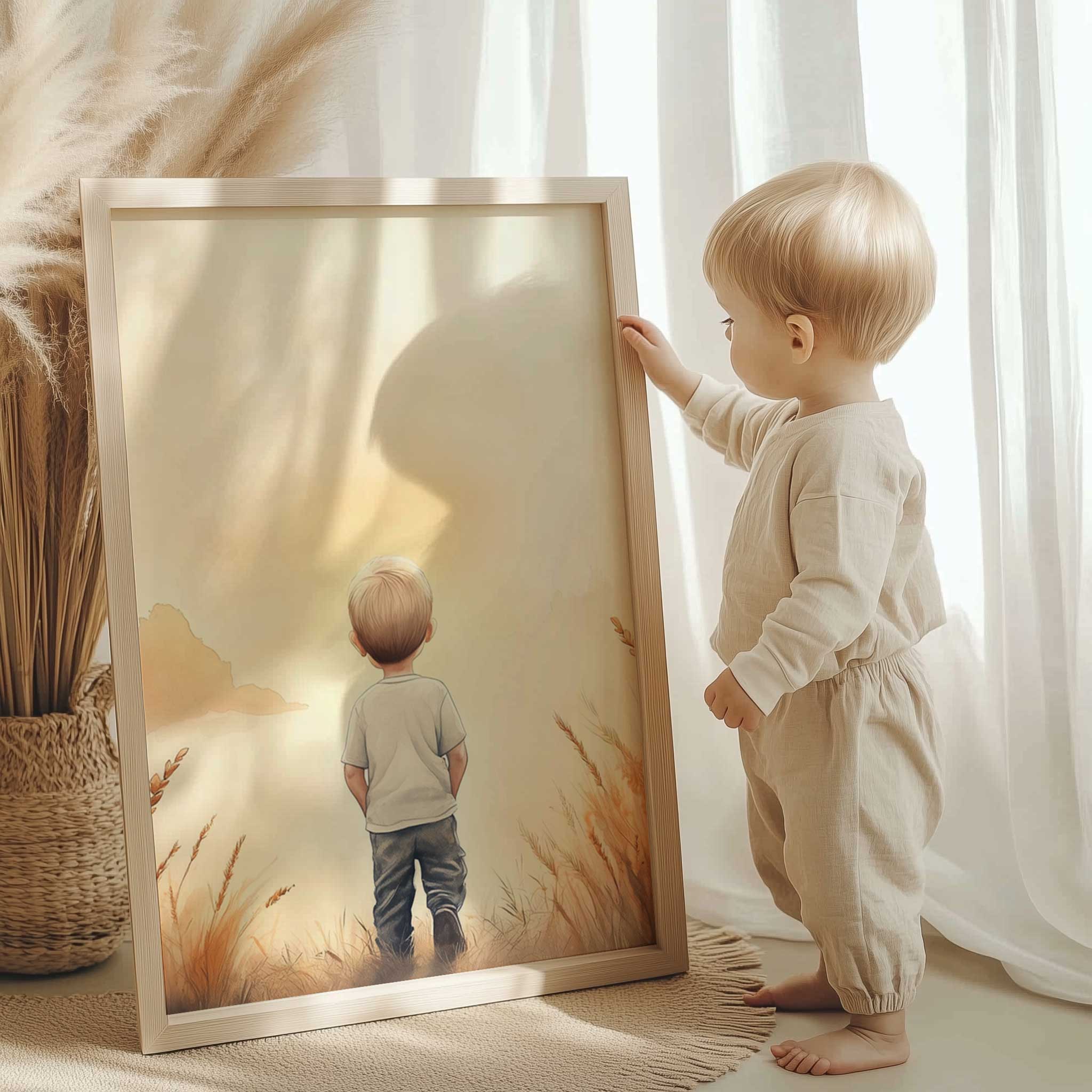 Jongen in Gouden Gras – Serene Horizon Illustratie