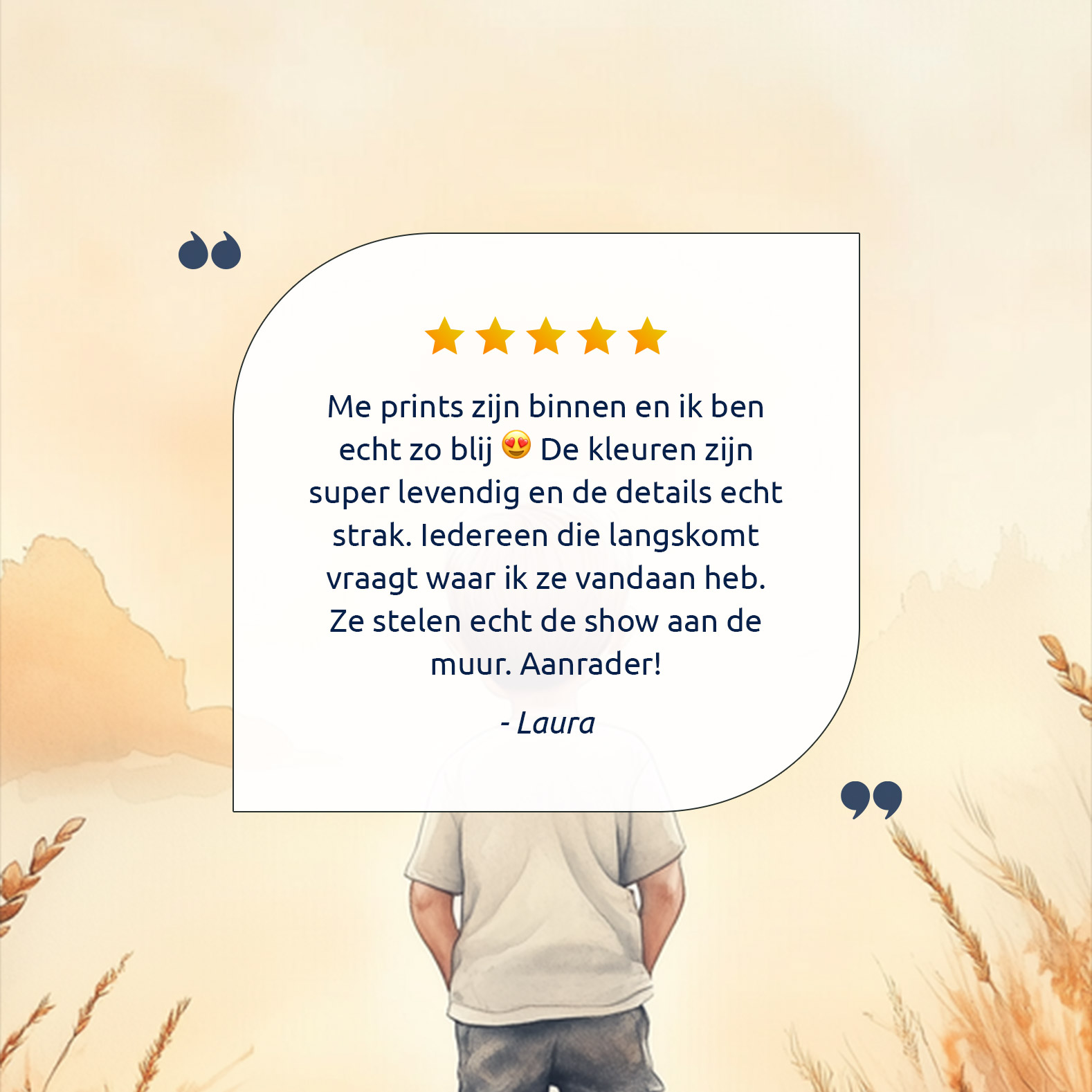 Bijvoorbeeld een vraag over (alternatieve) formaten, over zwart-wit mogelijkheden of over bestellen.