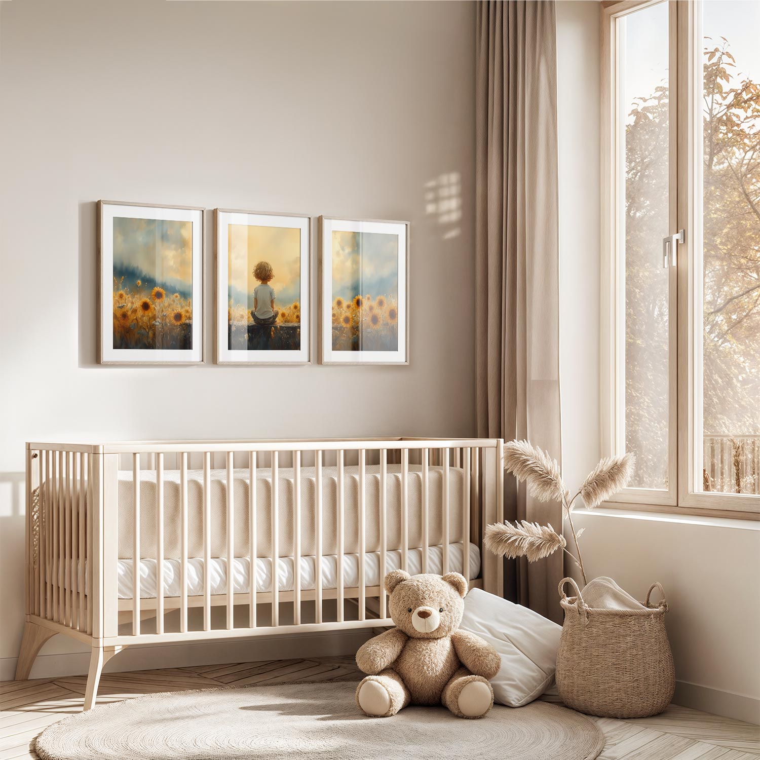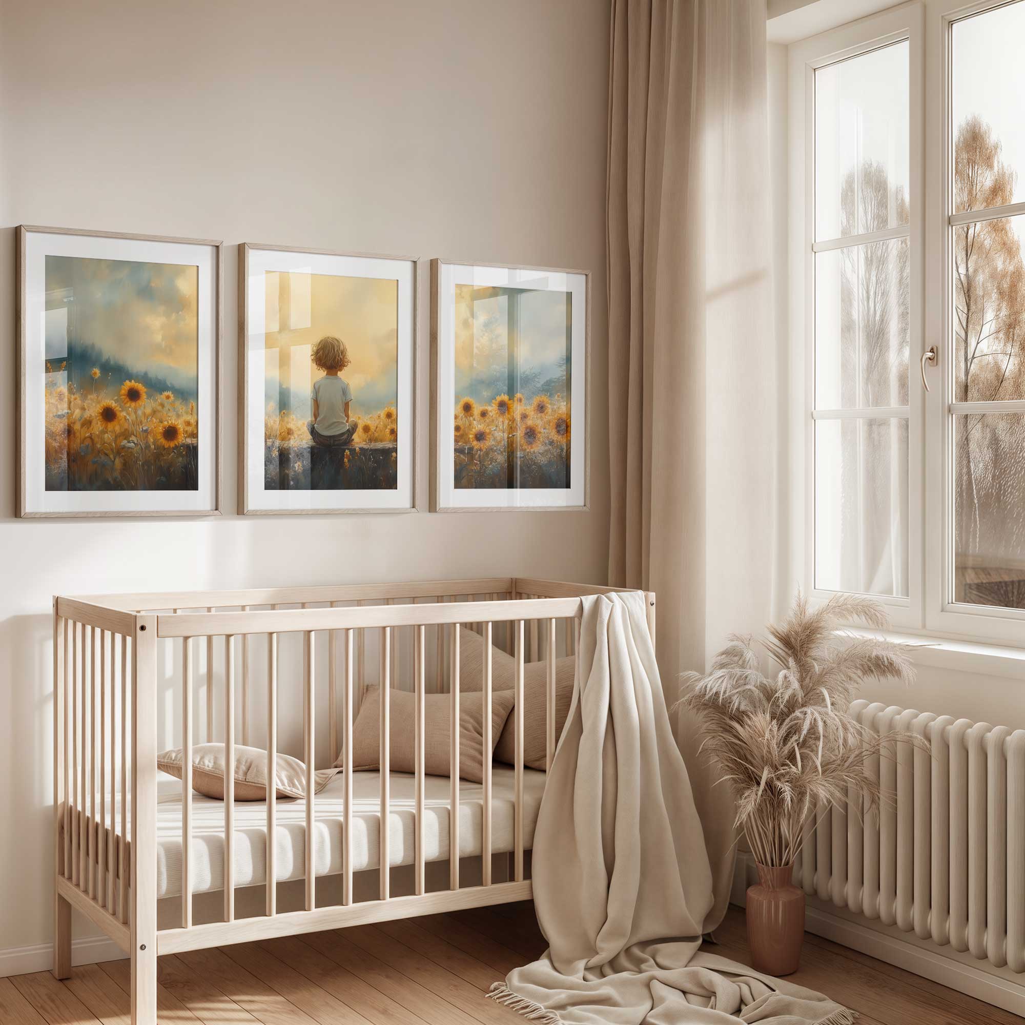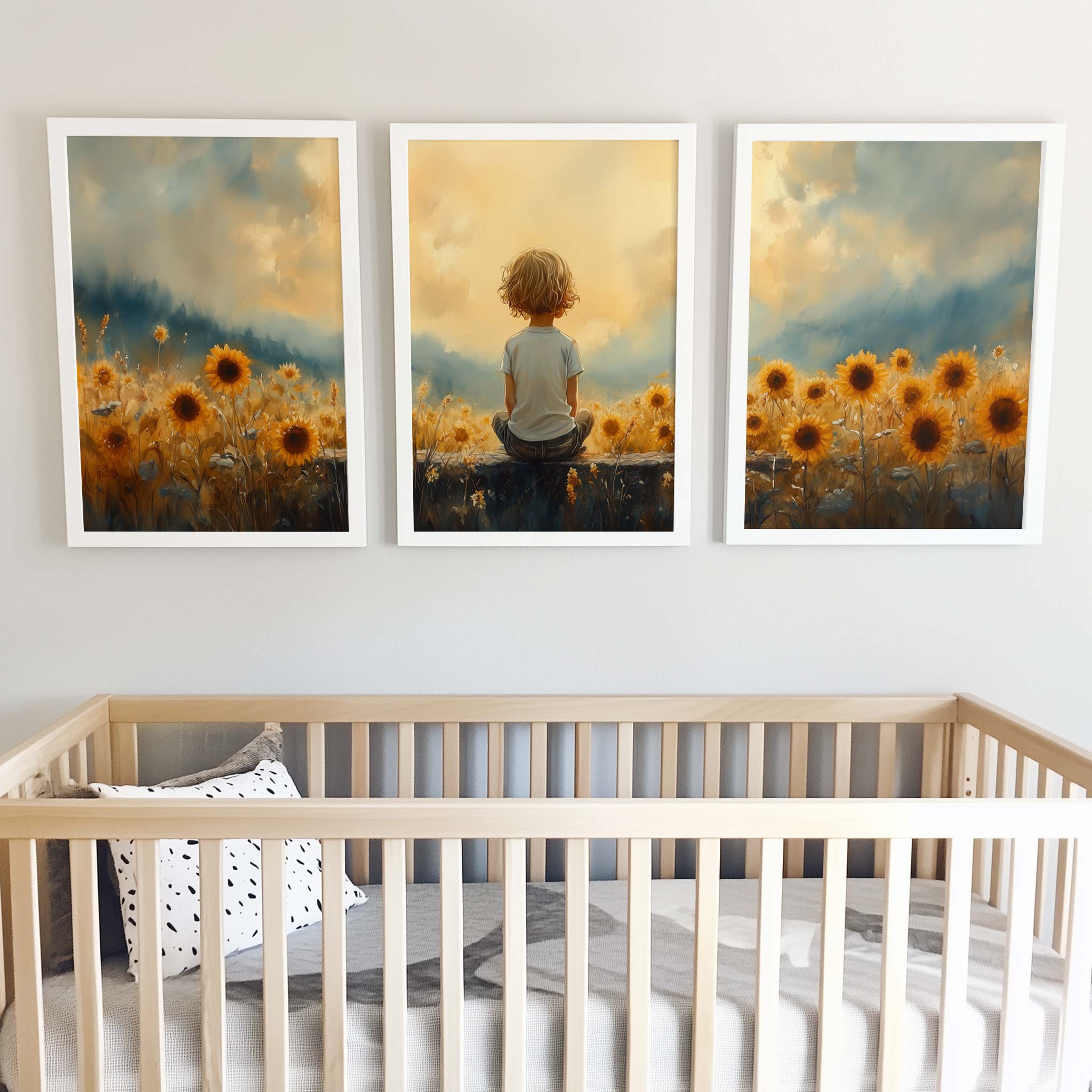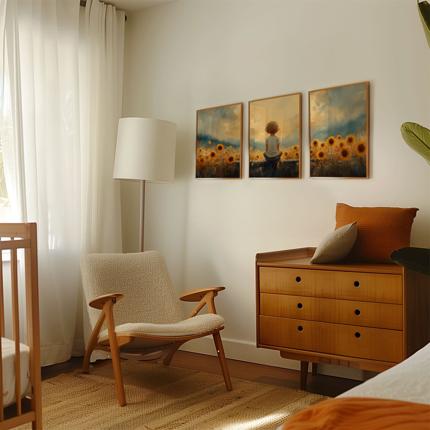 Jongen in Zonnebloemenveld – Dromerig Pastel Landschap