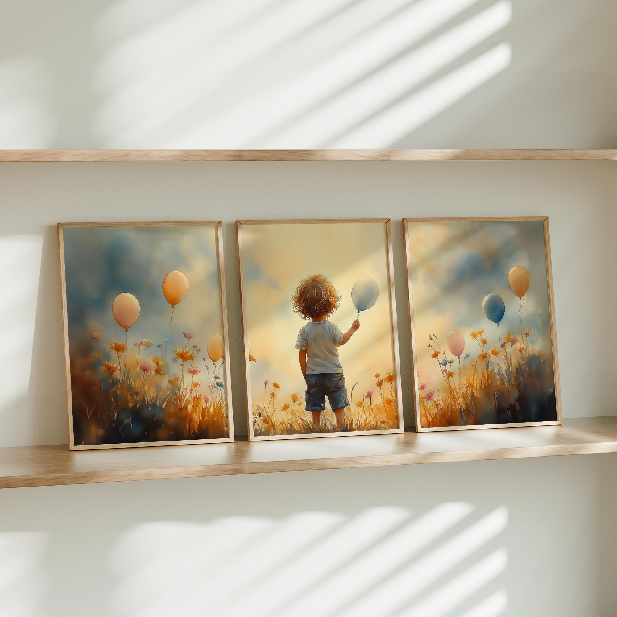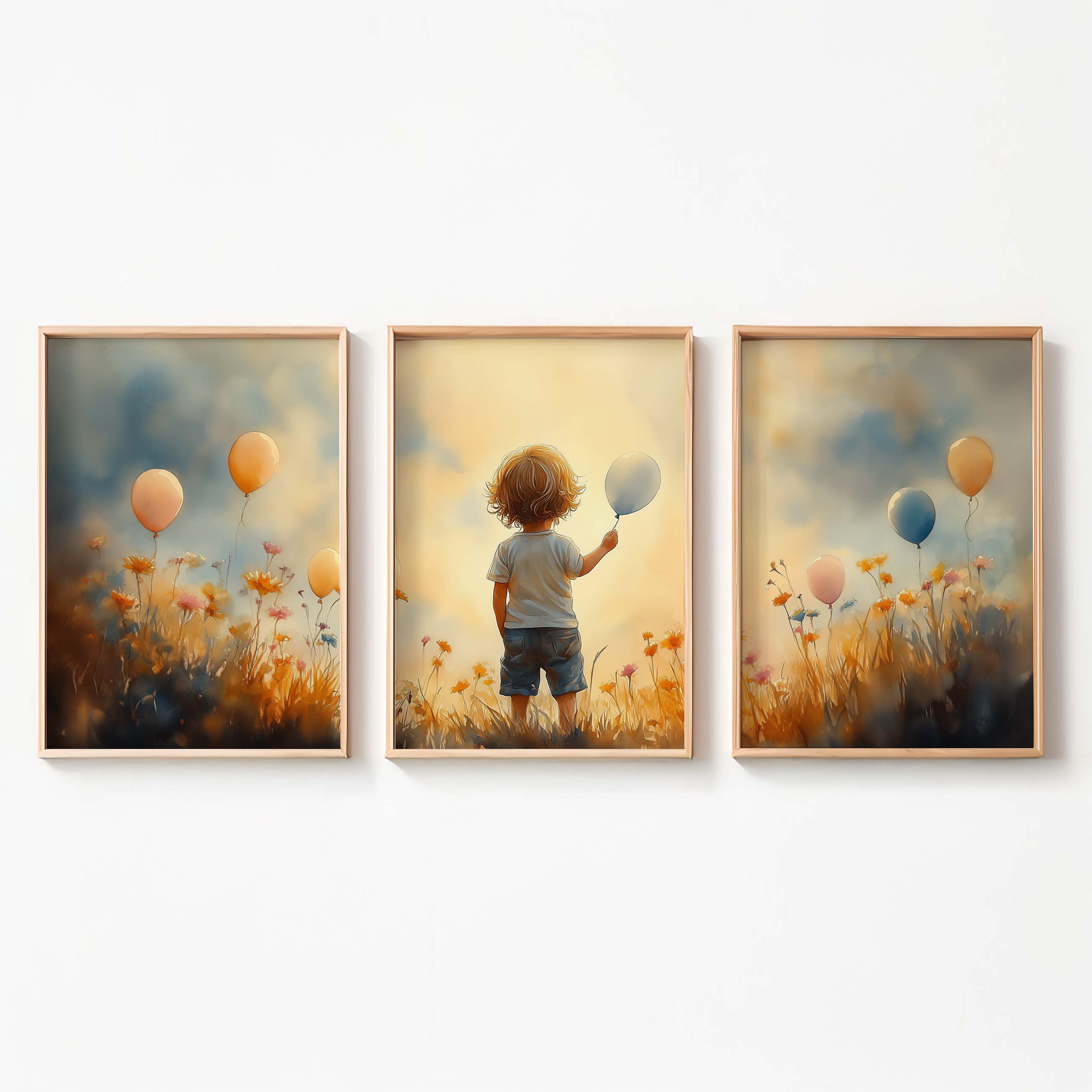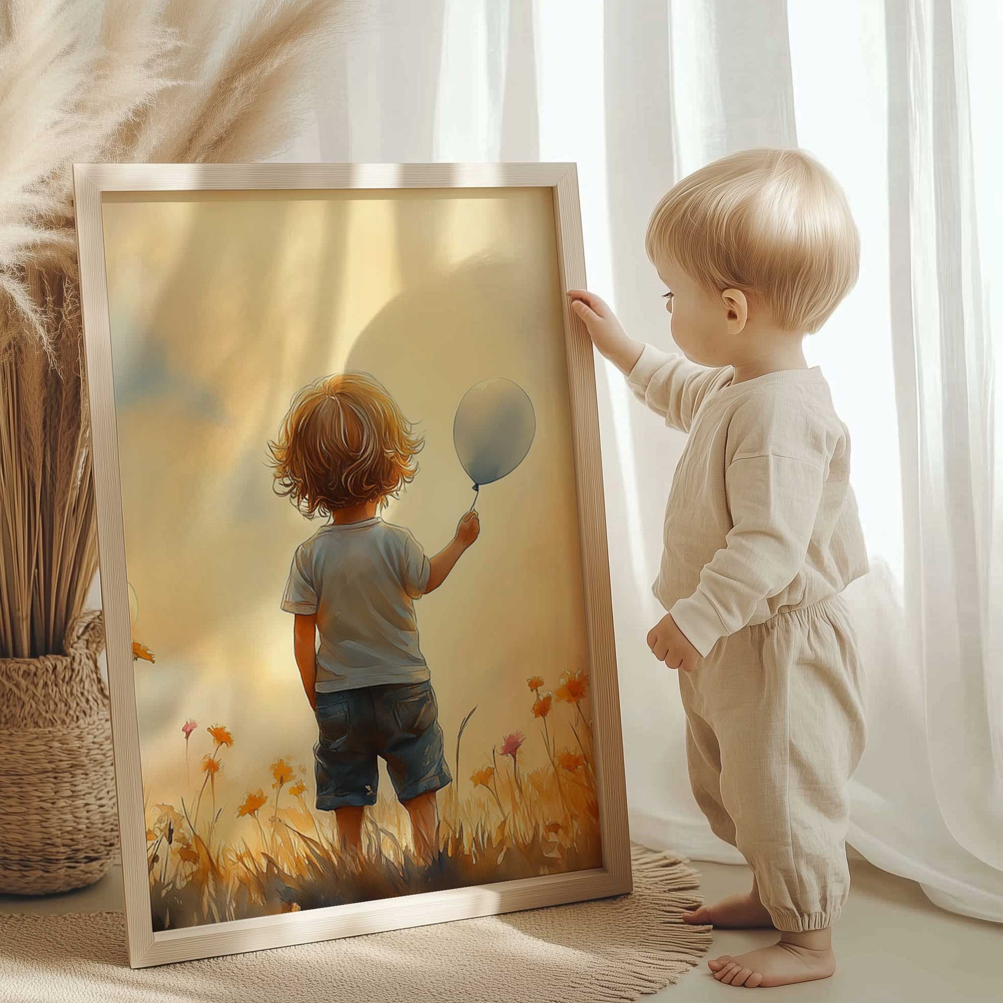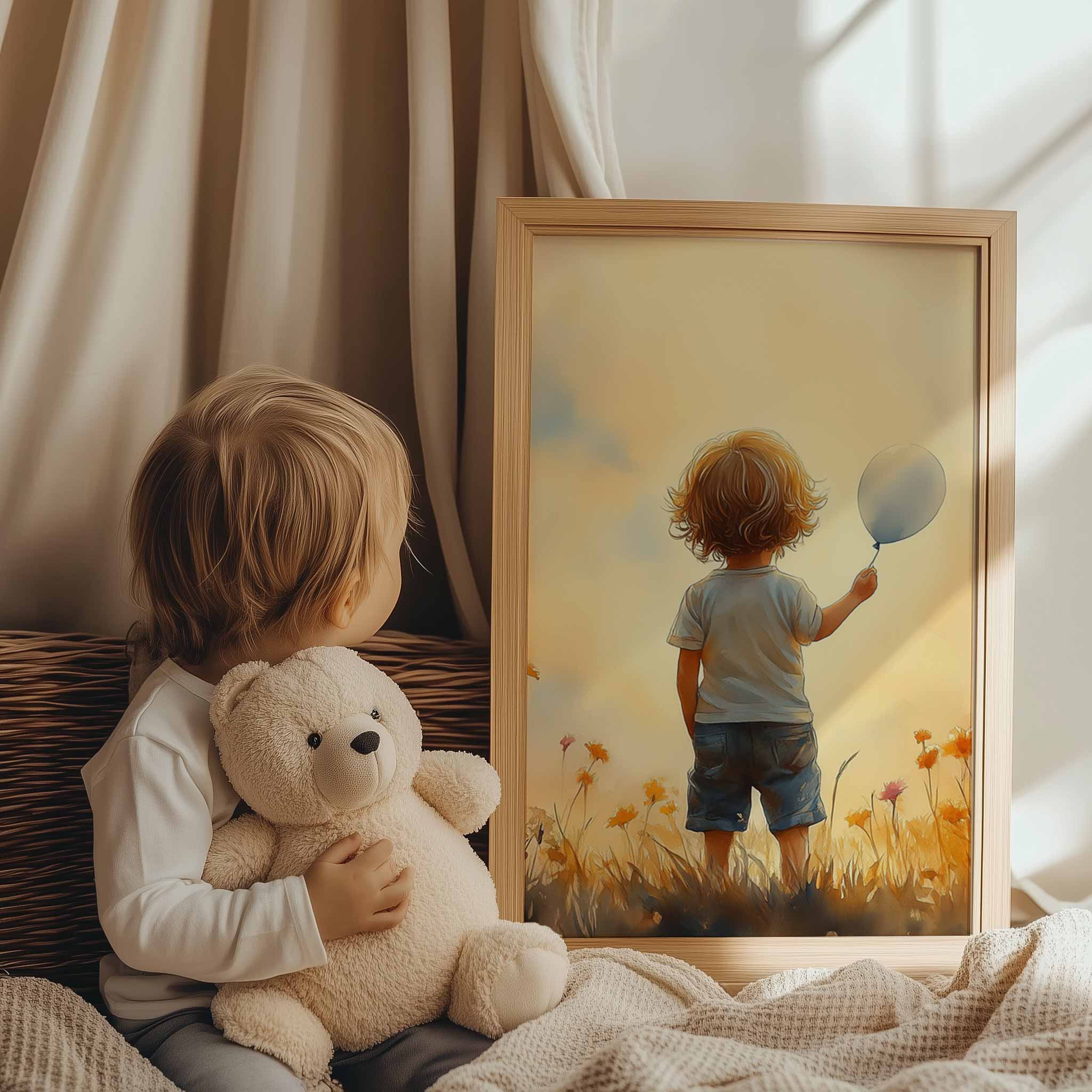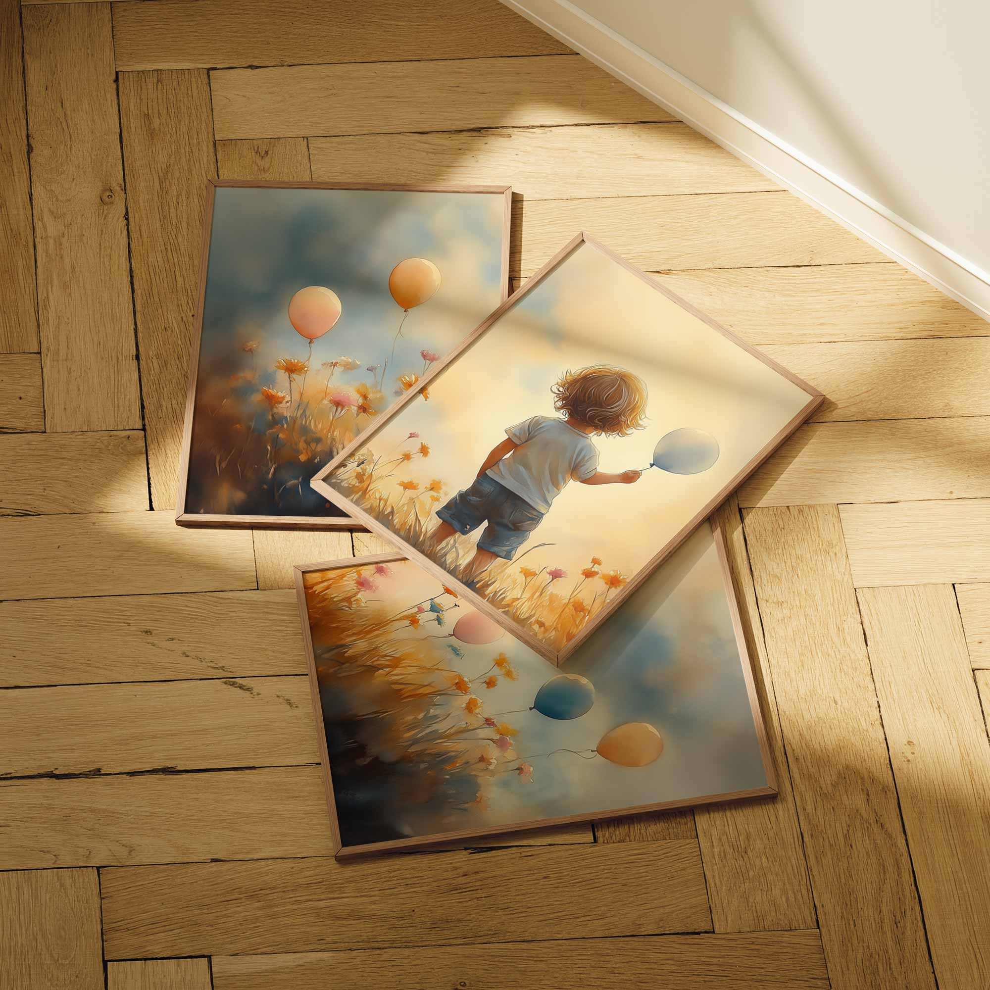 Jongen met Ballonnen in Bloeiend Bloemenveld
