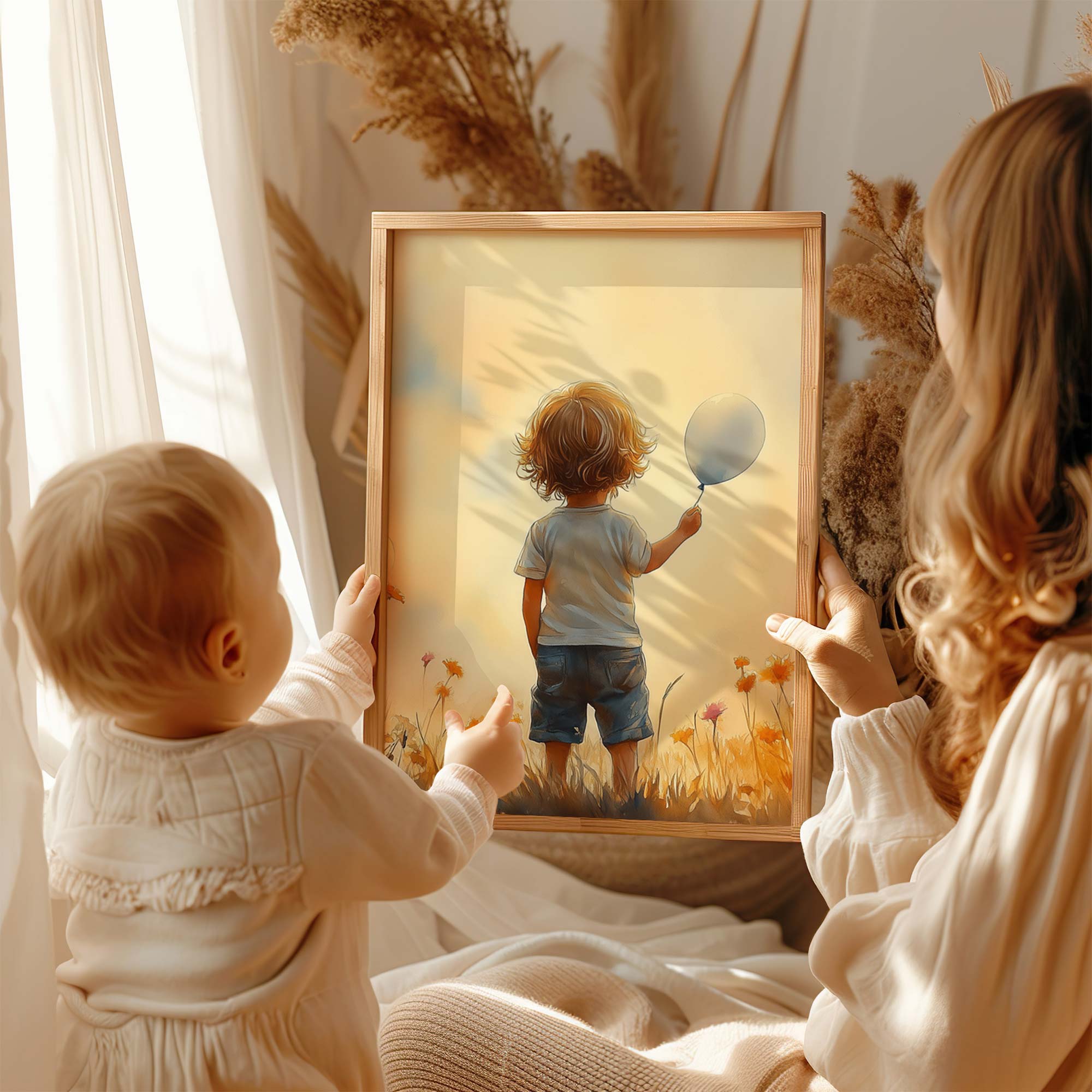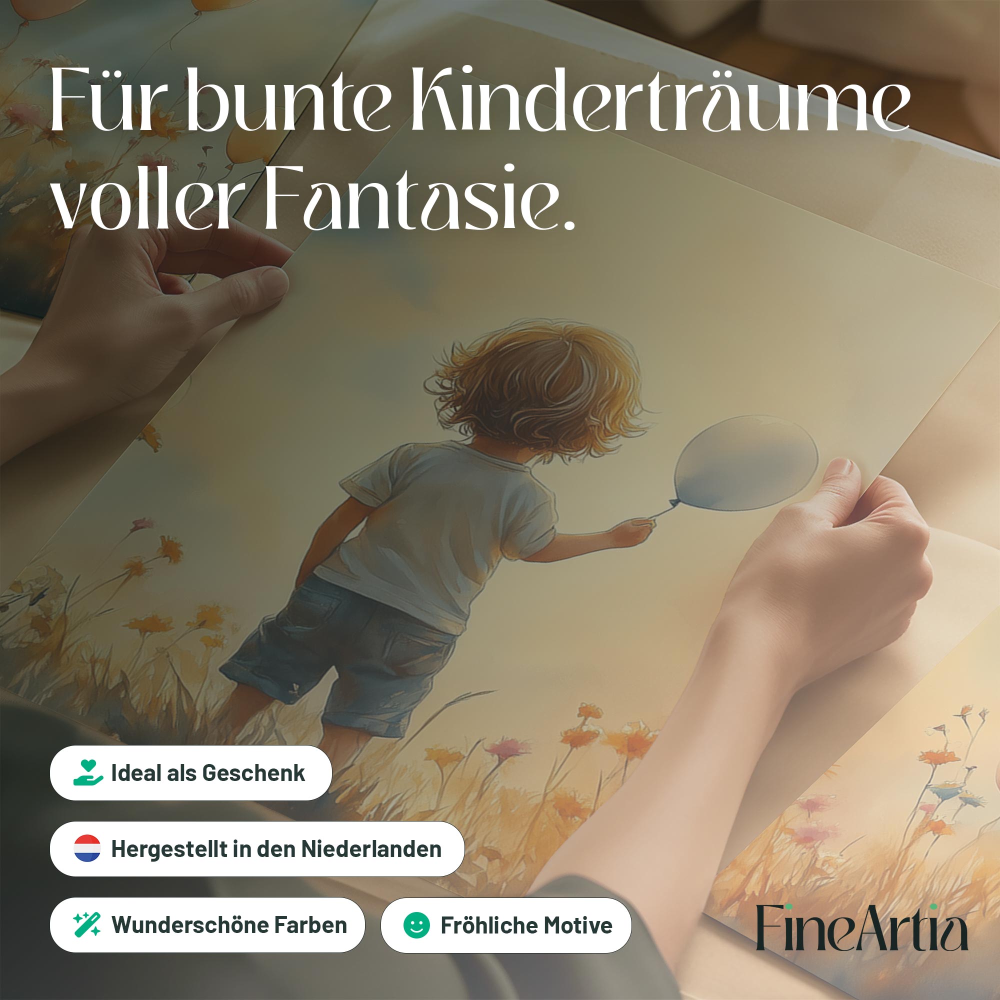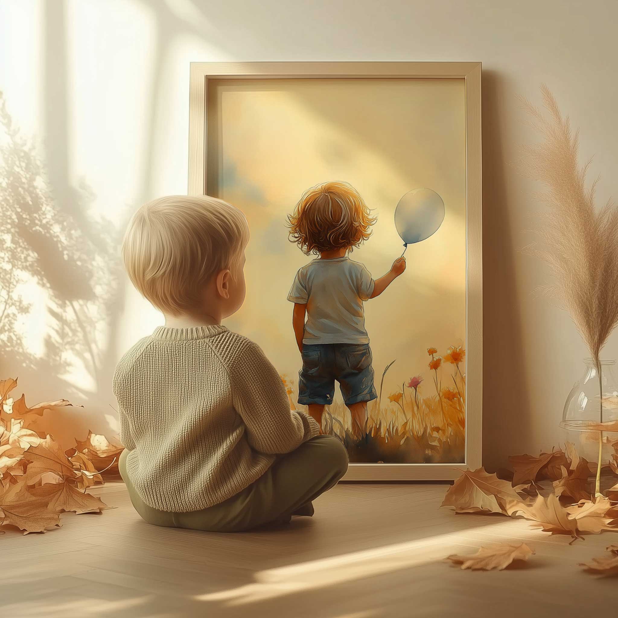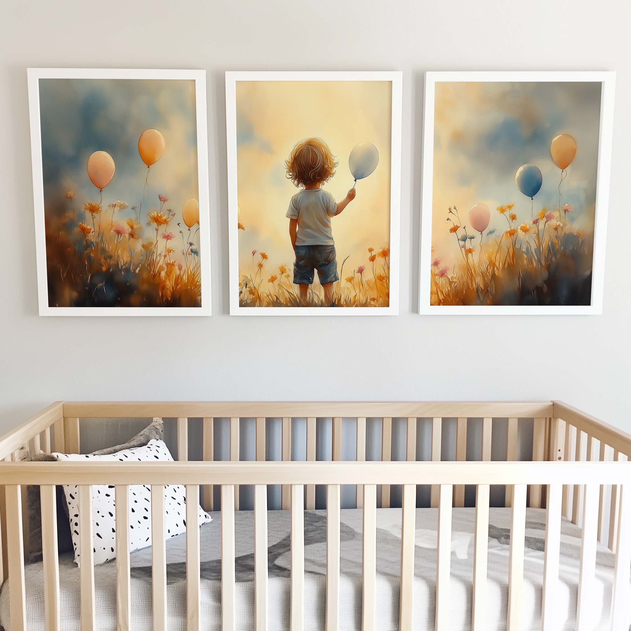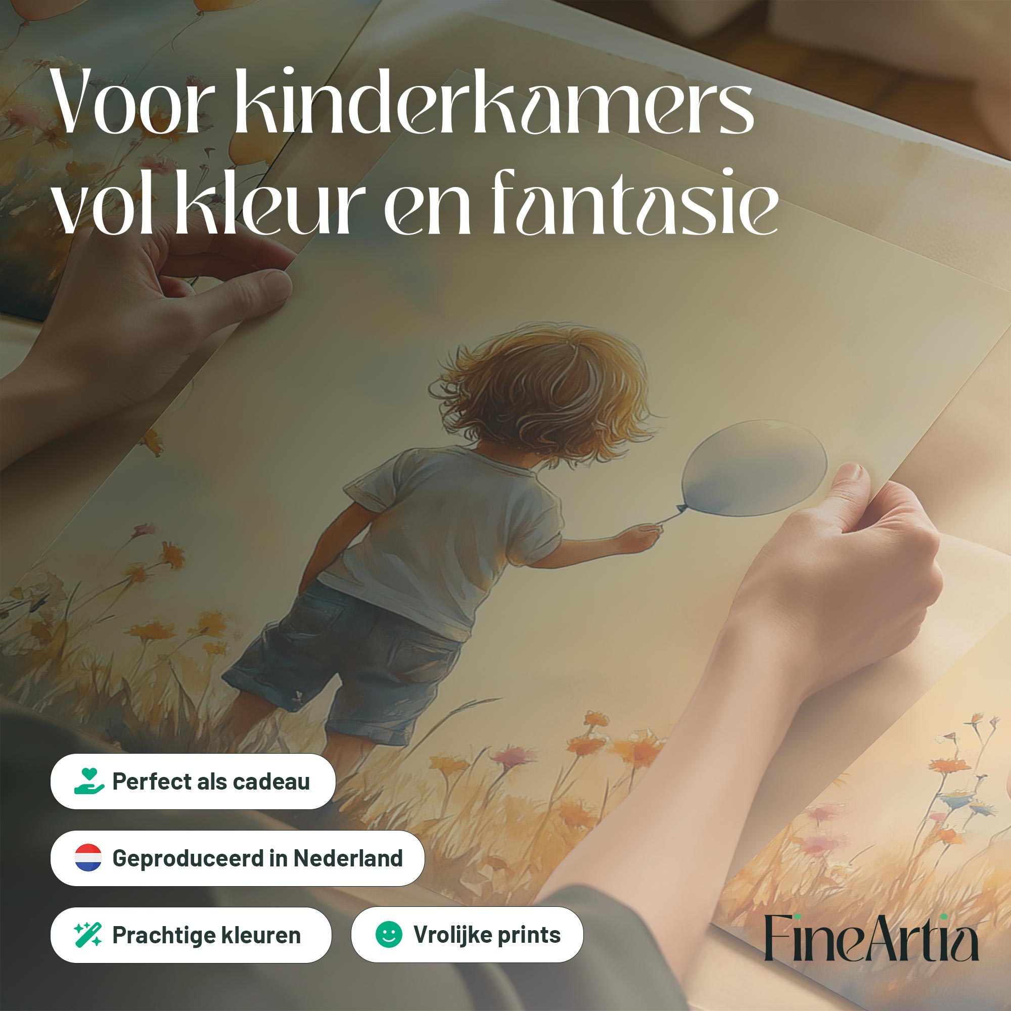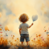 Jongen met Ballonnen in Bloeiend Bloemenveld