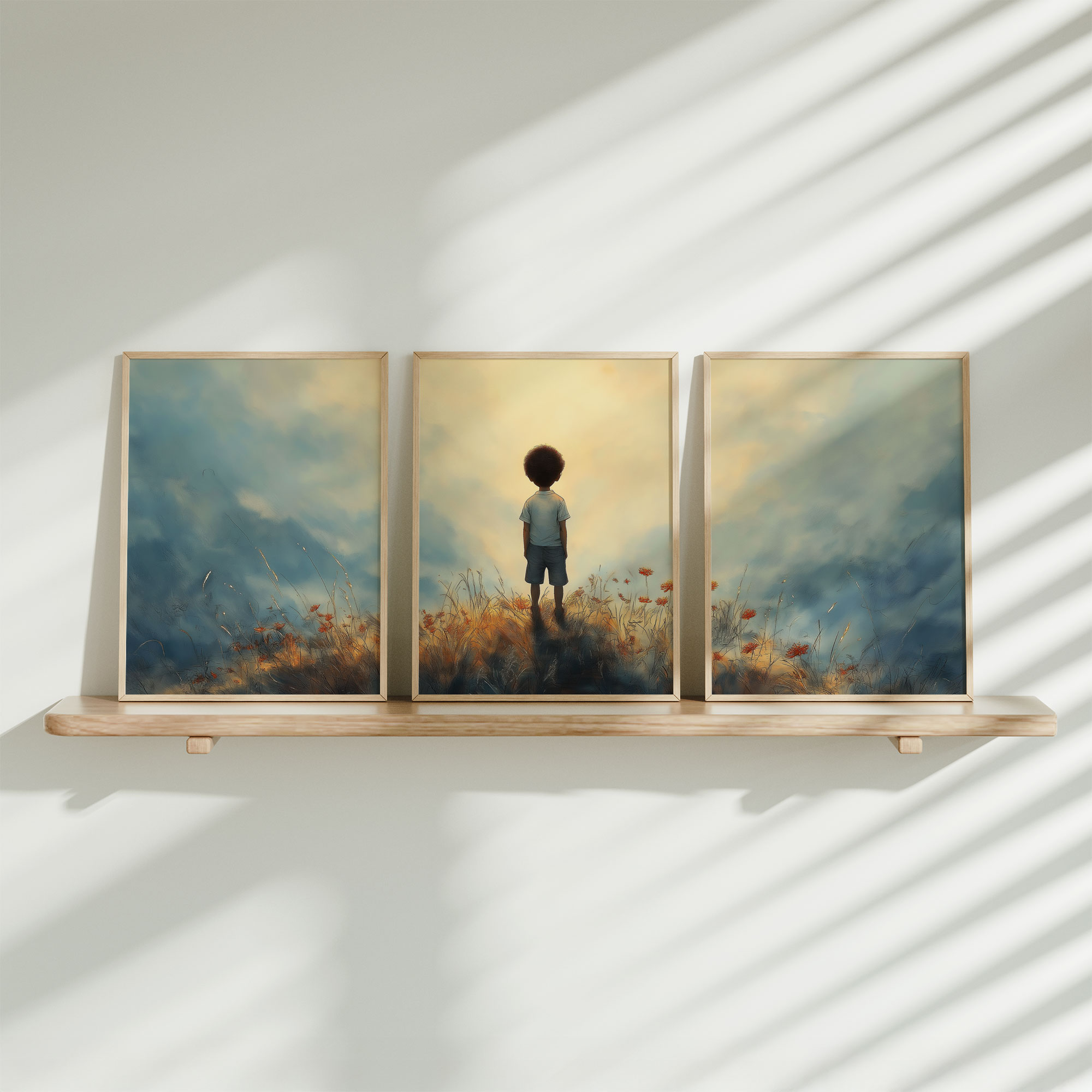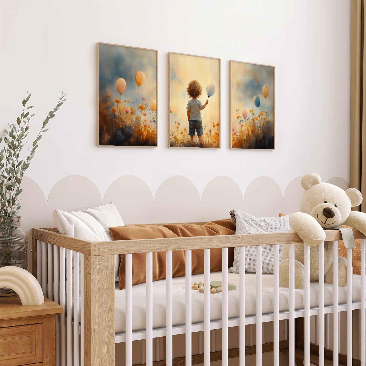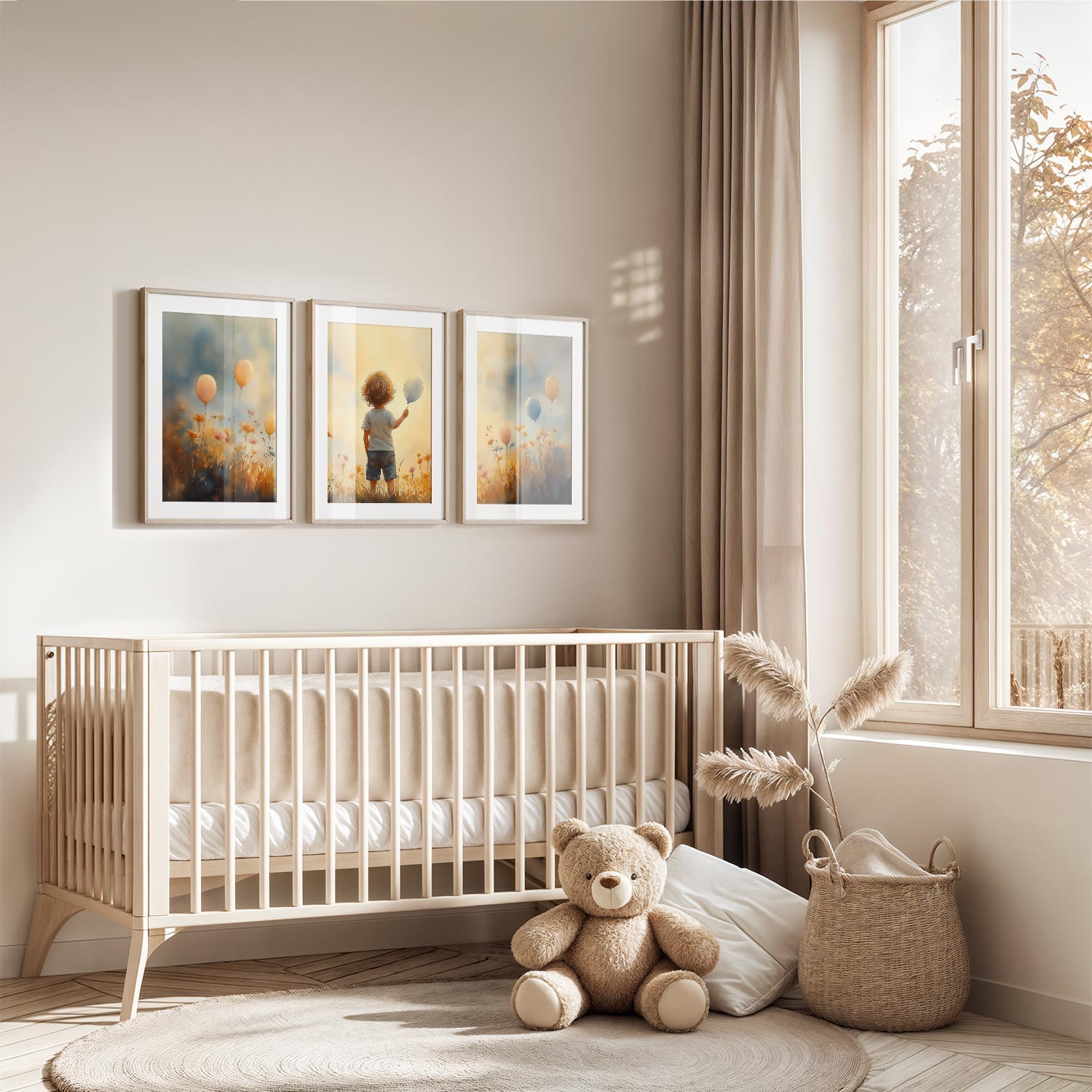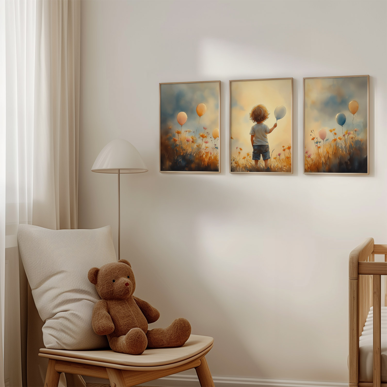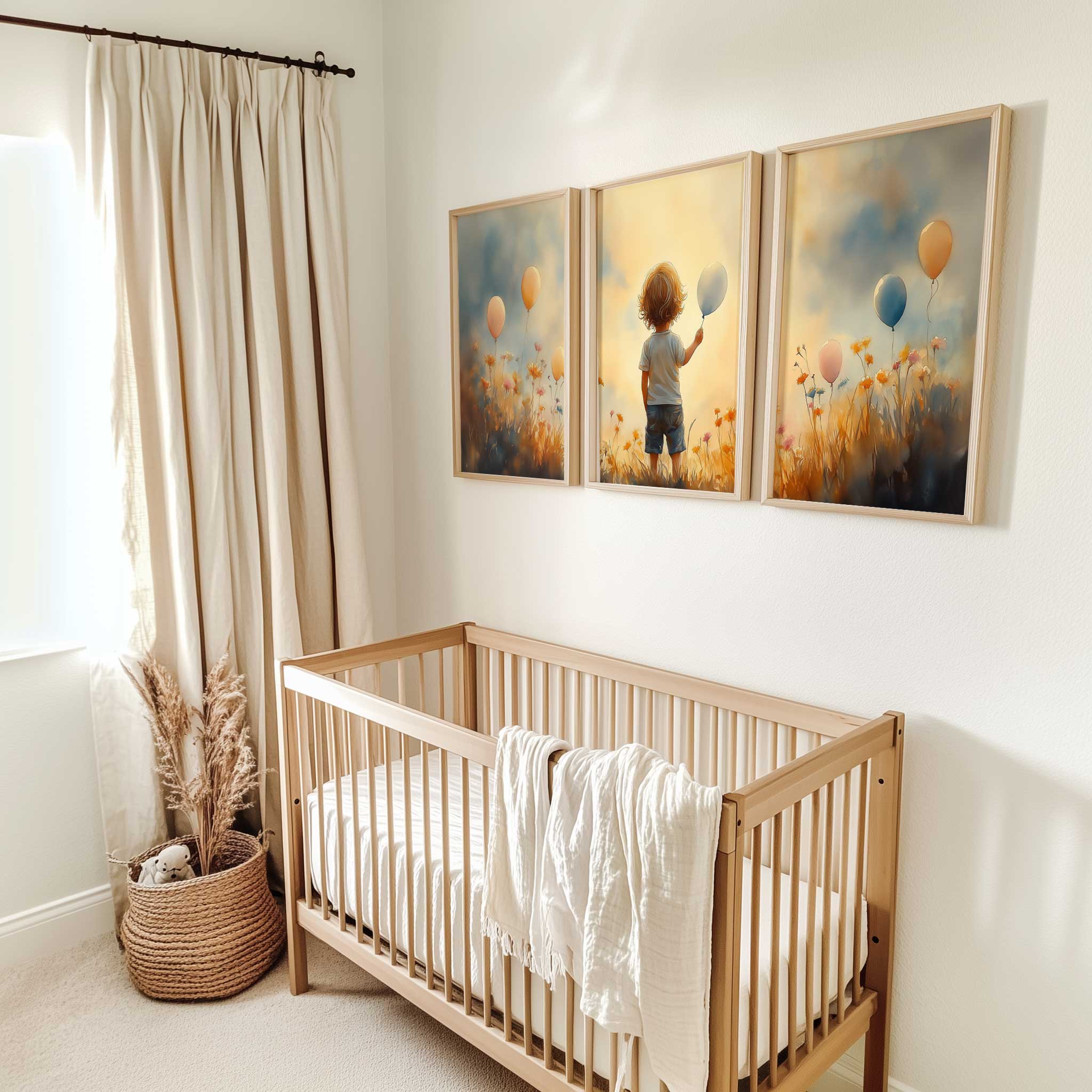 Jongen met Ballonnen in Bloeiend Bloemenveld