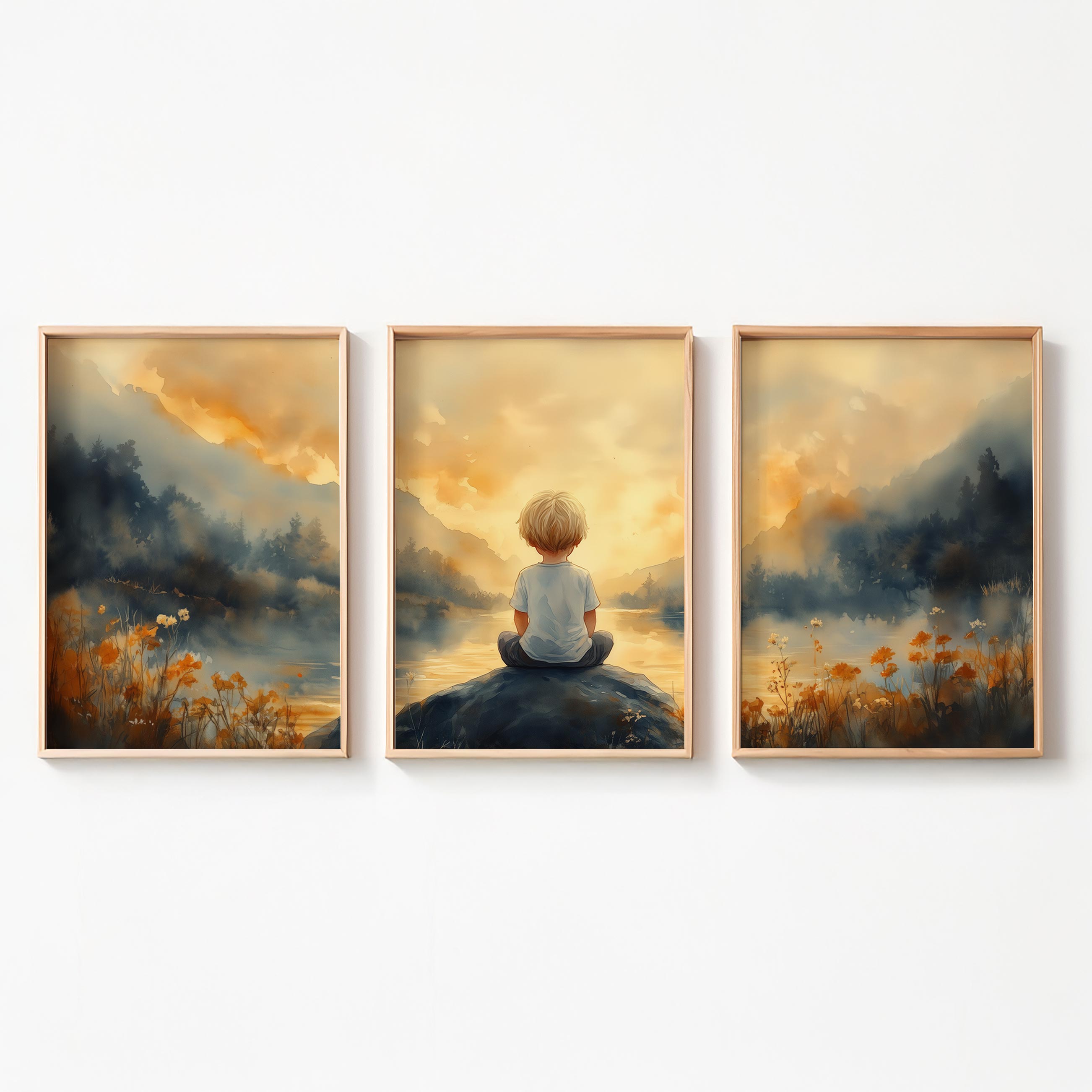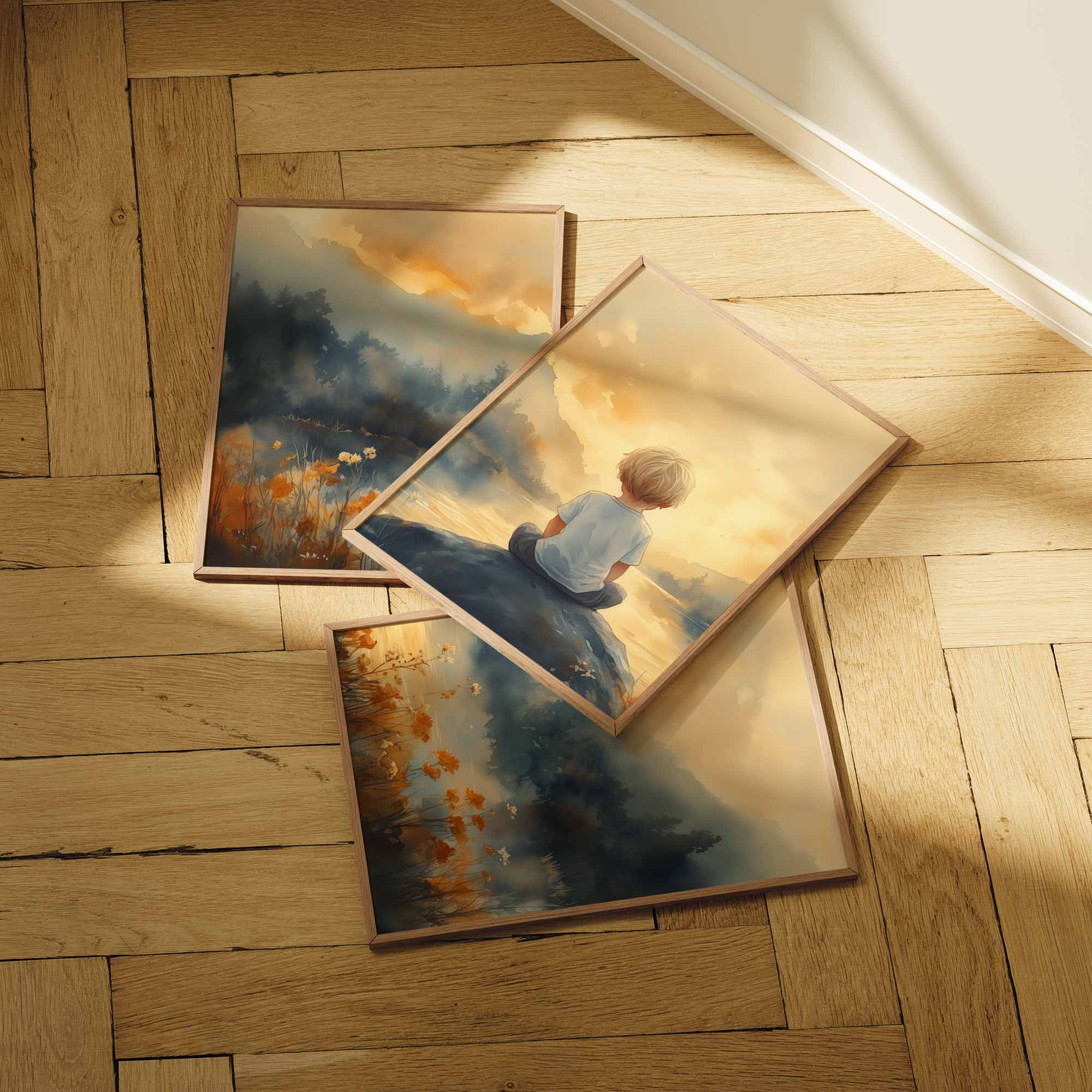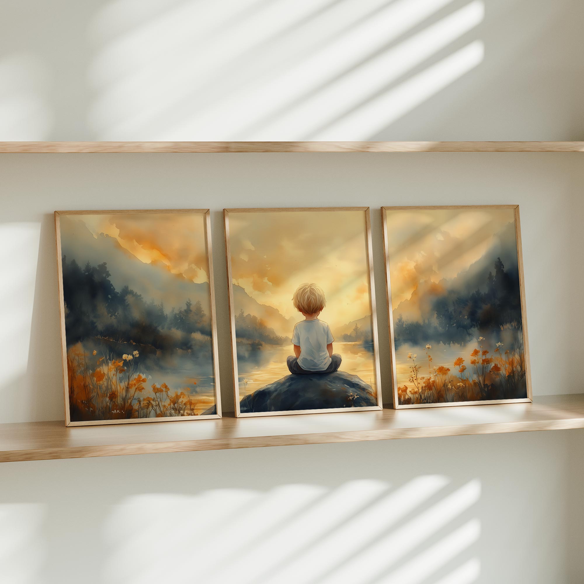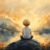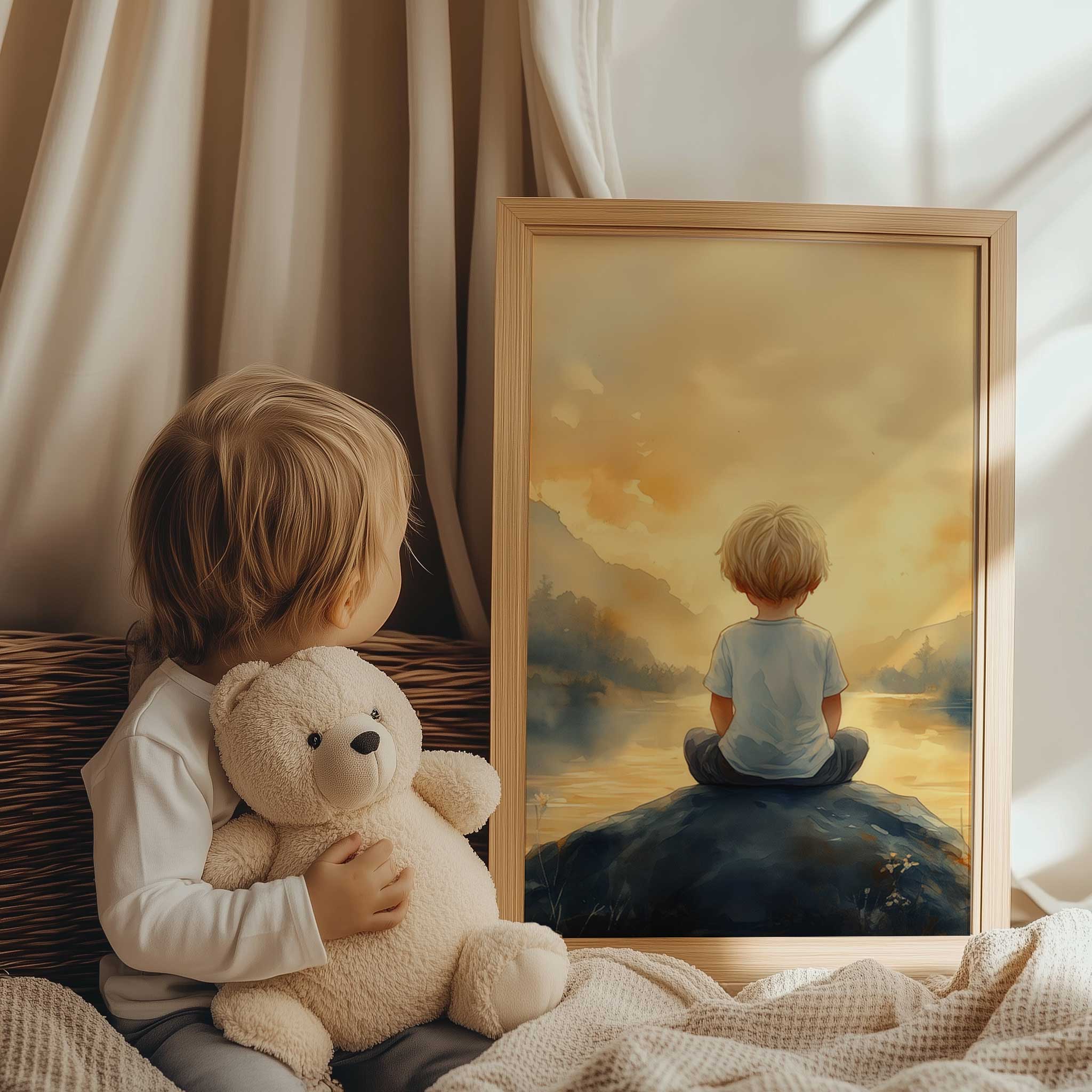 Jongen op rots bij water – warme, speelse sfeer